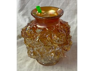 6758 Imperial Marigold Cabbage Roses Carnival Glass Vase 6.5”