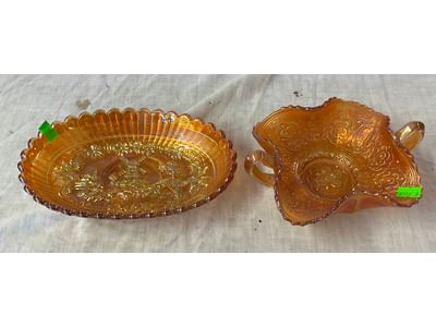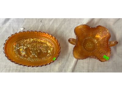 6761 Persian medallion marigold carnival glass bowl w/handles 5”x7”, imperial Carnival Glass " Windmill " Marigold Oval Bowl 8.5”