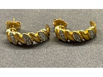 6760 2 - Iridescent Flora Gold Large Ruffle Edge Fruit Bowls 9.5”11.5”