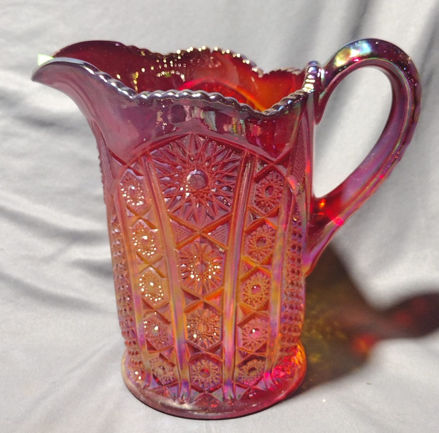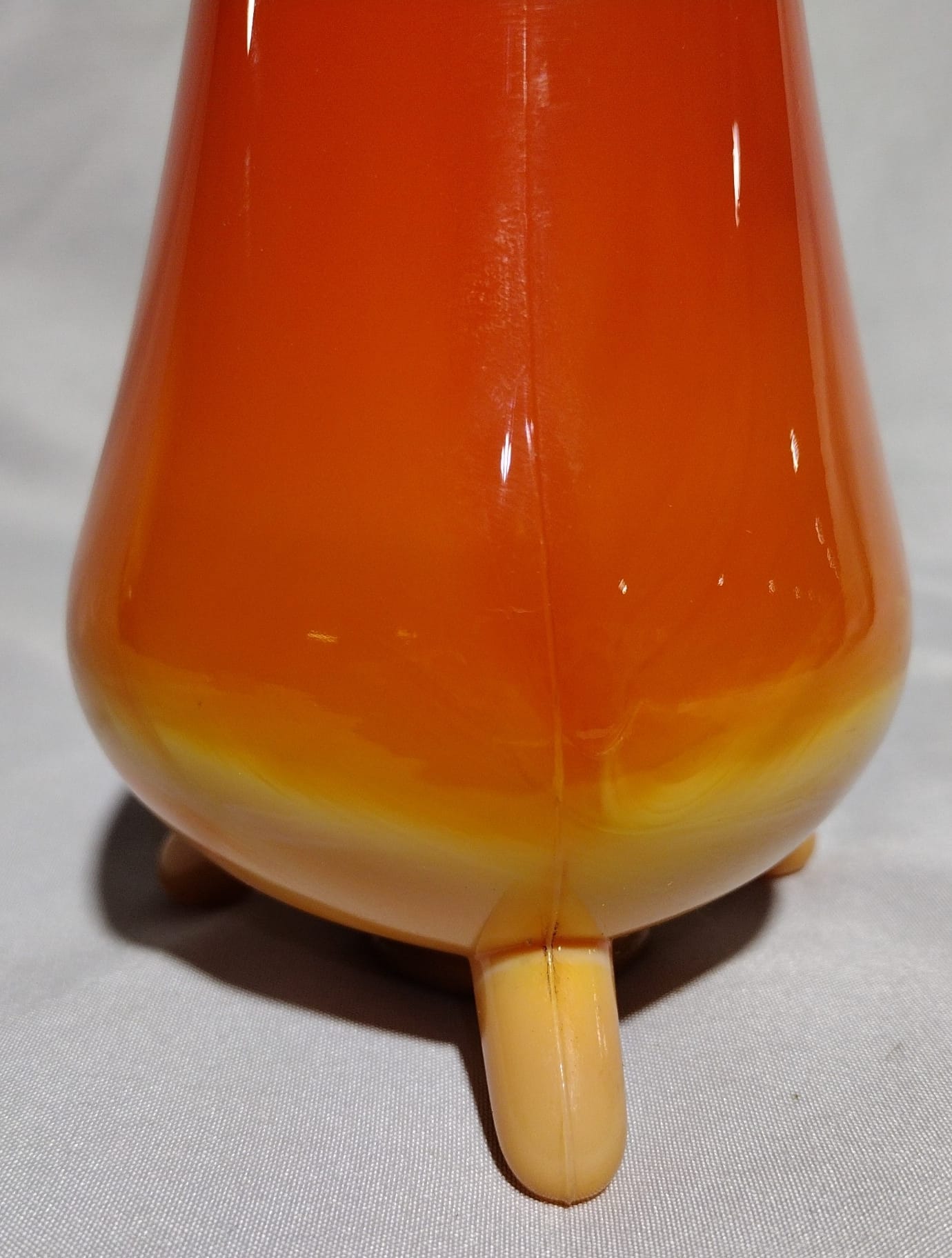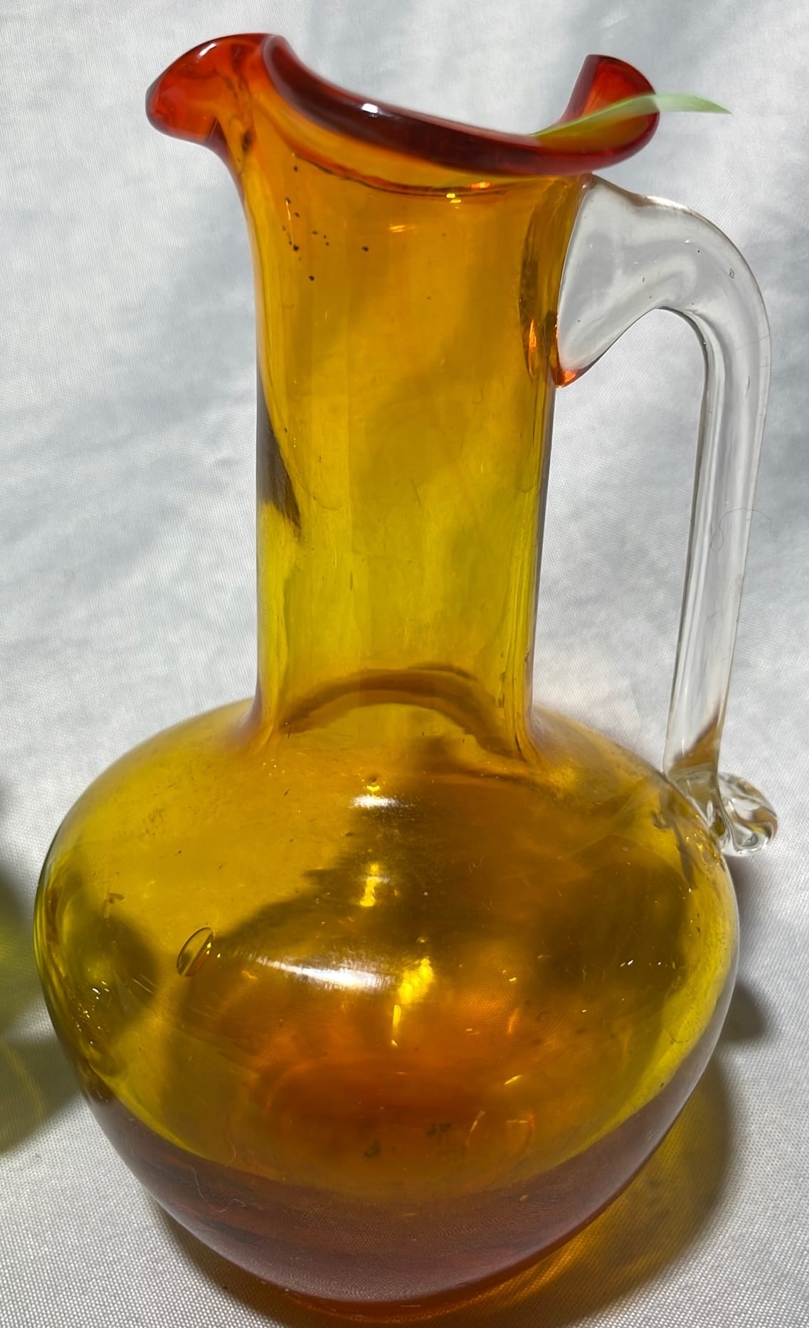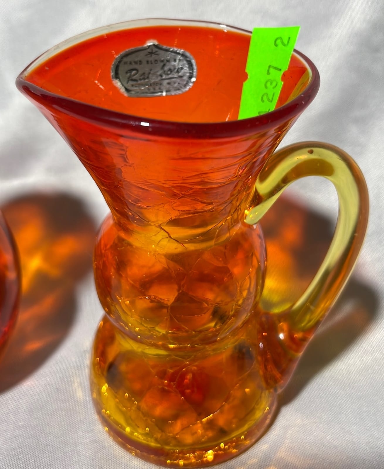 1237 Rainbow amberina crackle creamer 4", orange glass creamer 4"