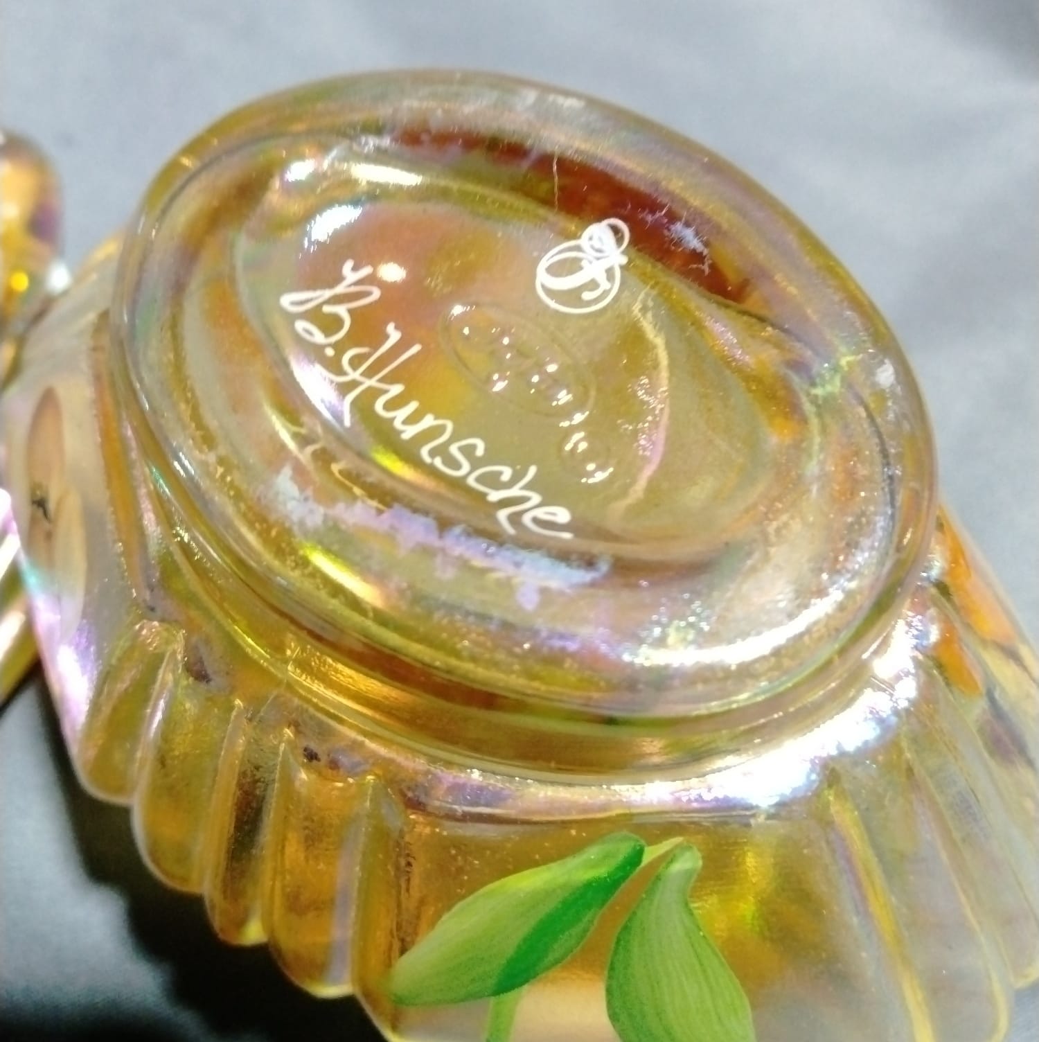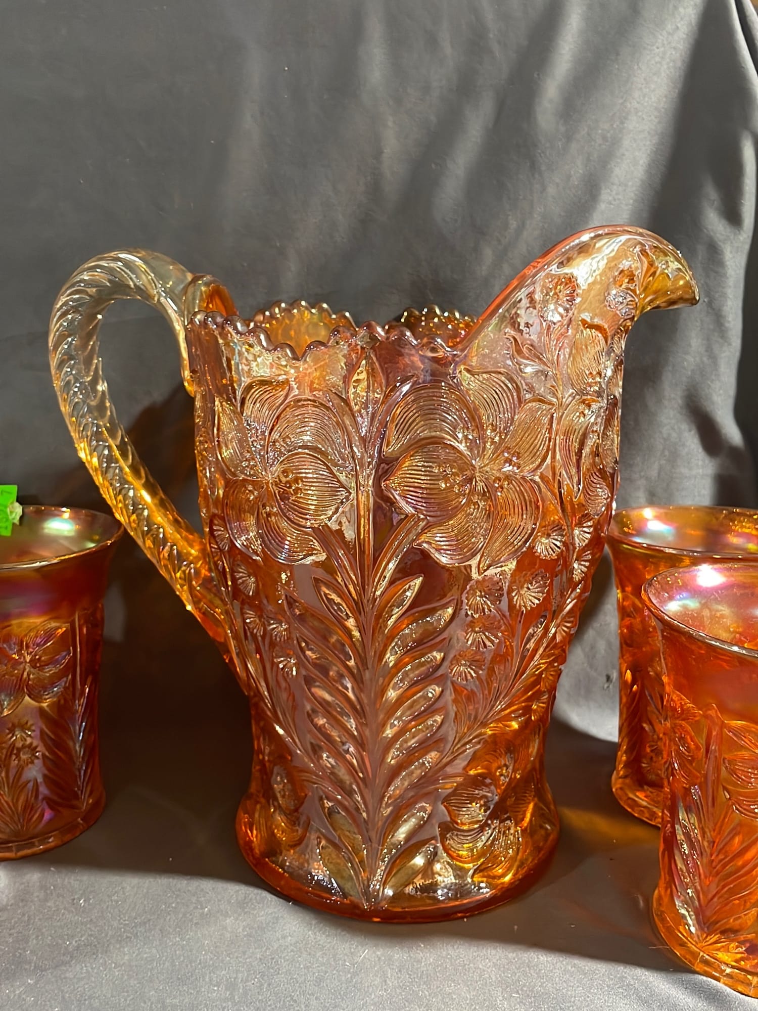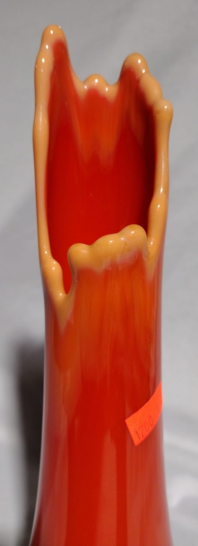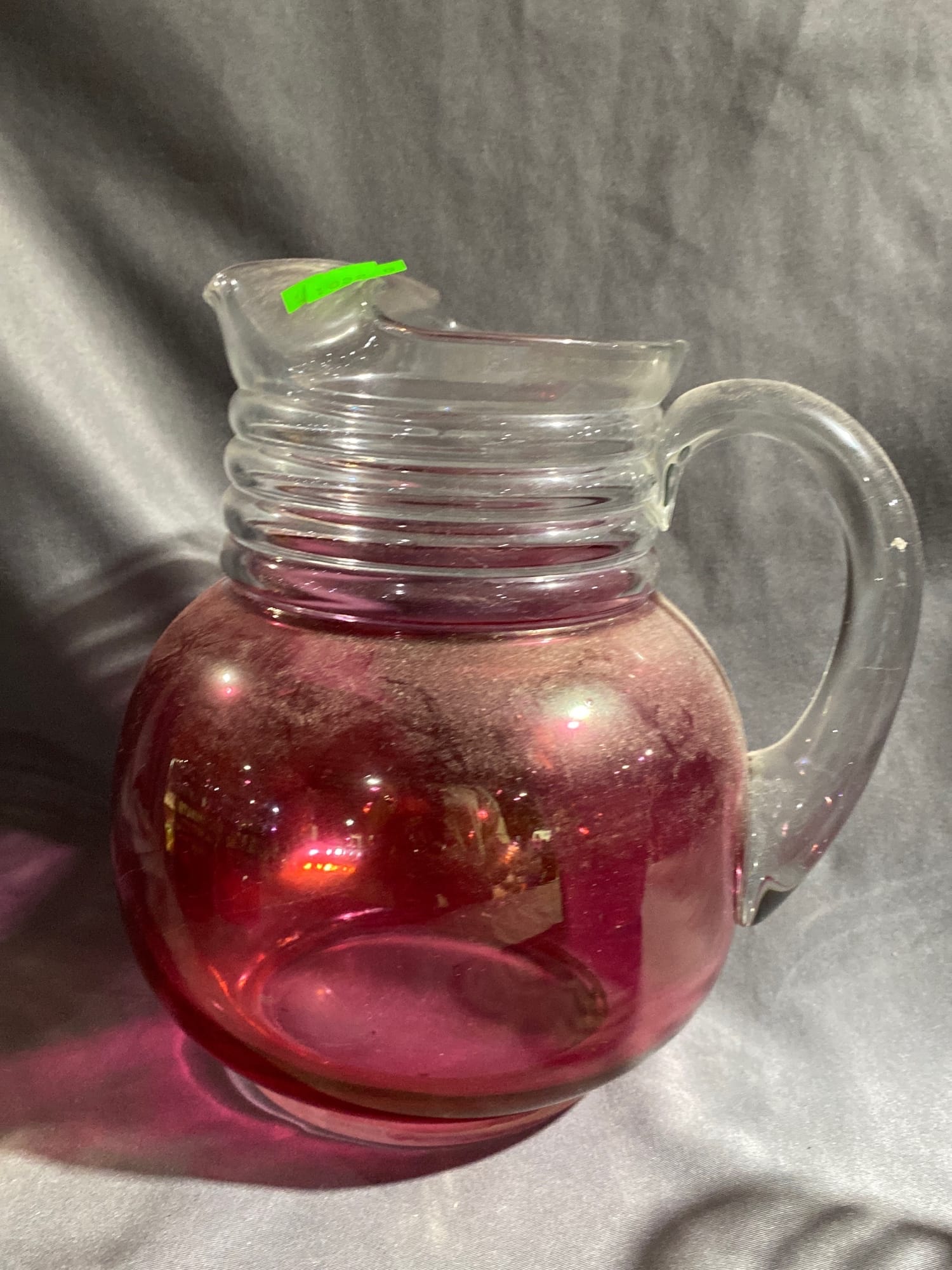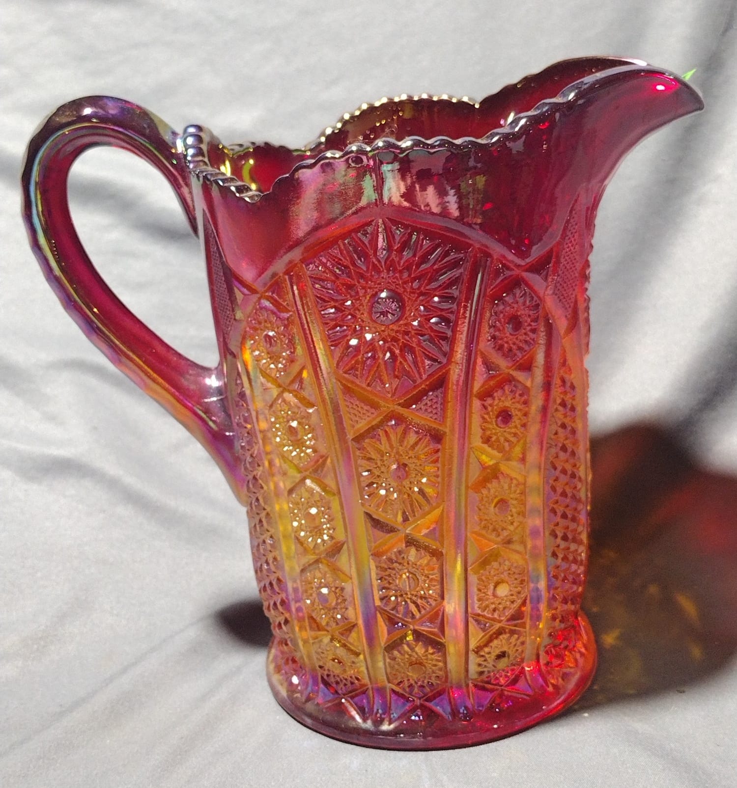 1237 Rainbow amberina crackle creamer 4", orange glass creamer 4"