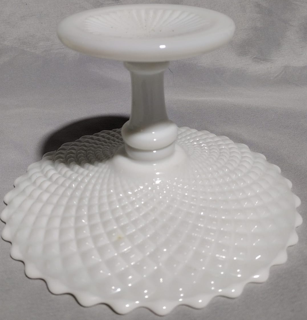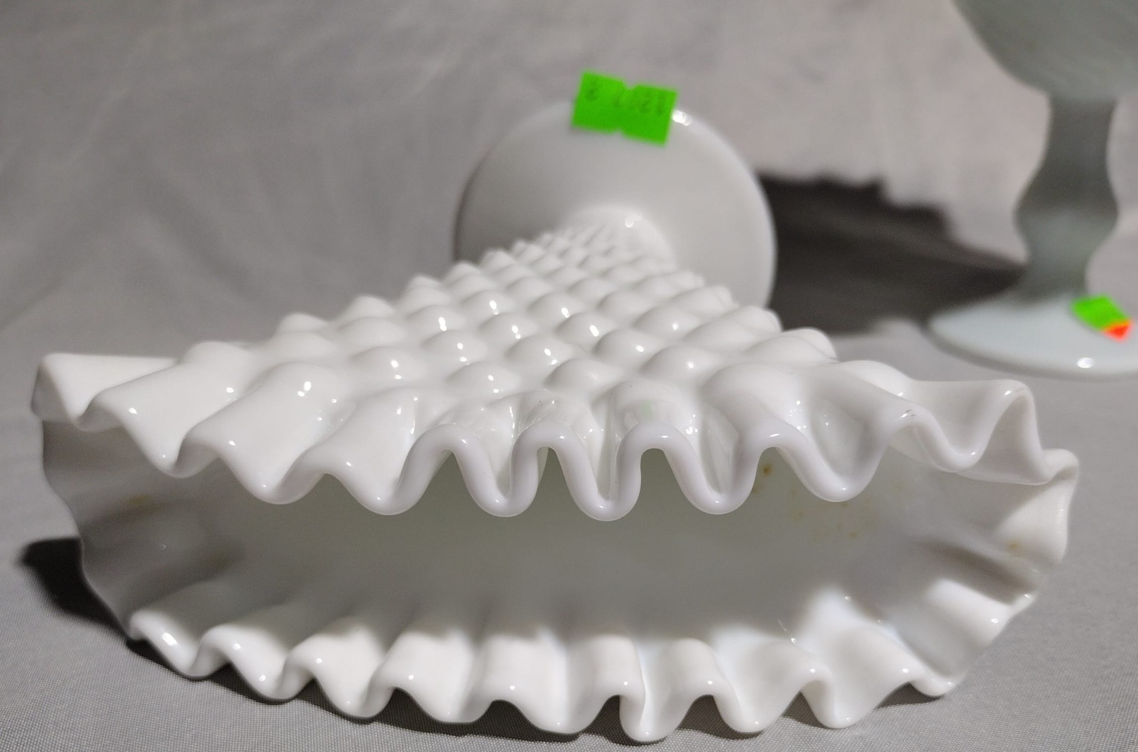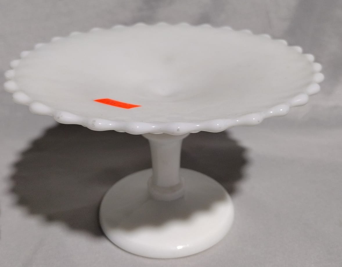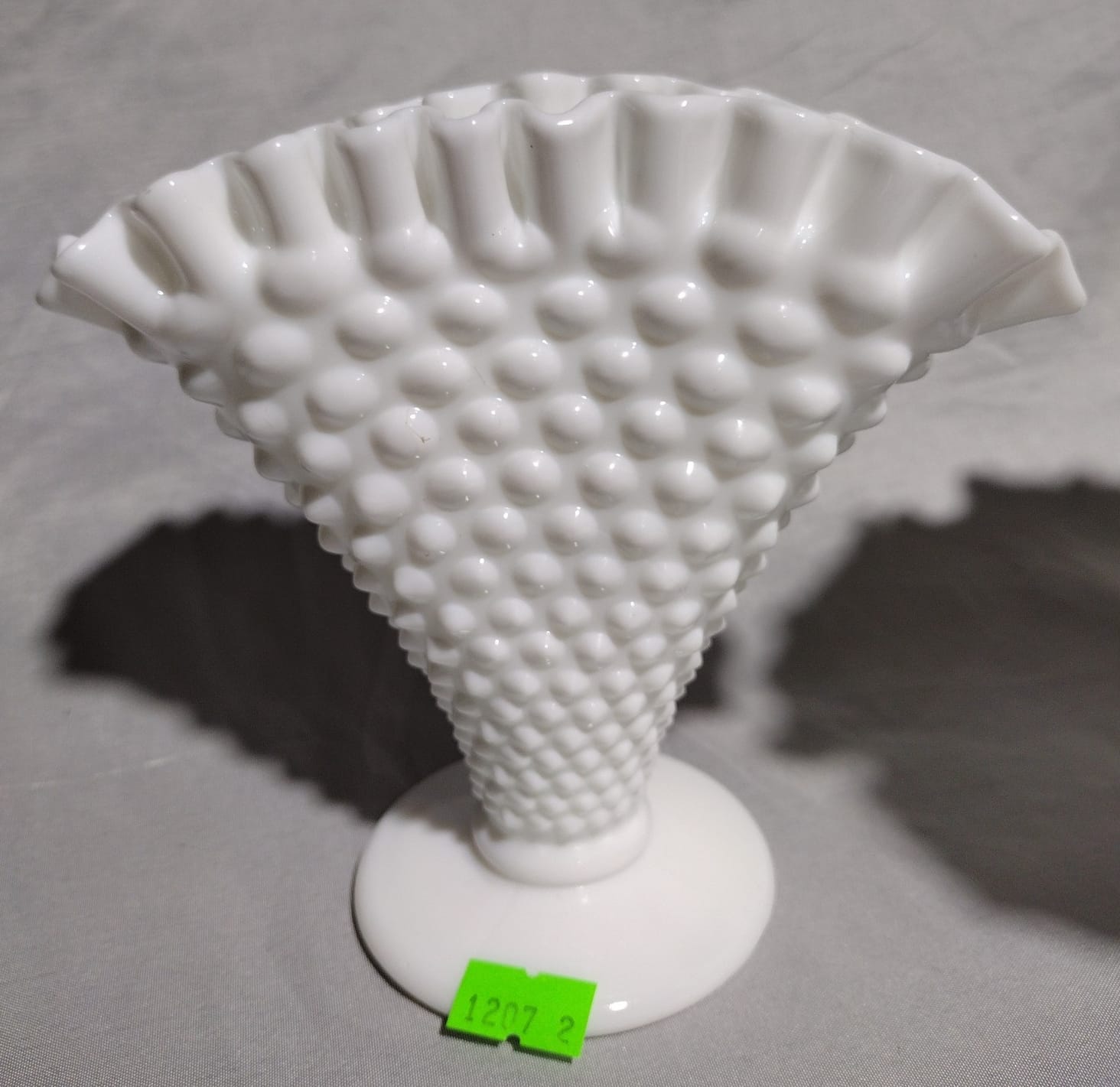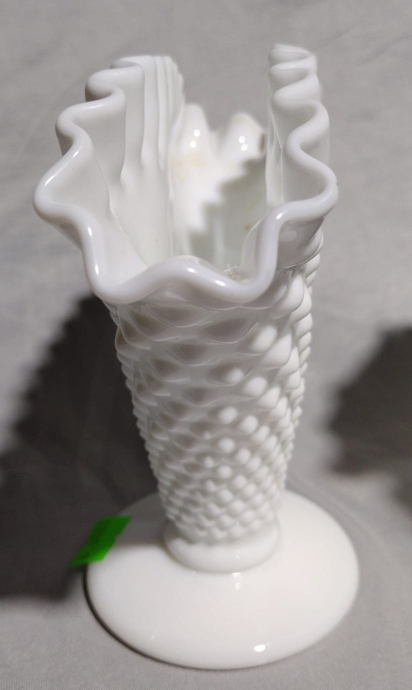 1207 Hobnail ruffle milk glass vase 6"x6", milk glass pedestal dish 6"
