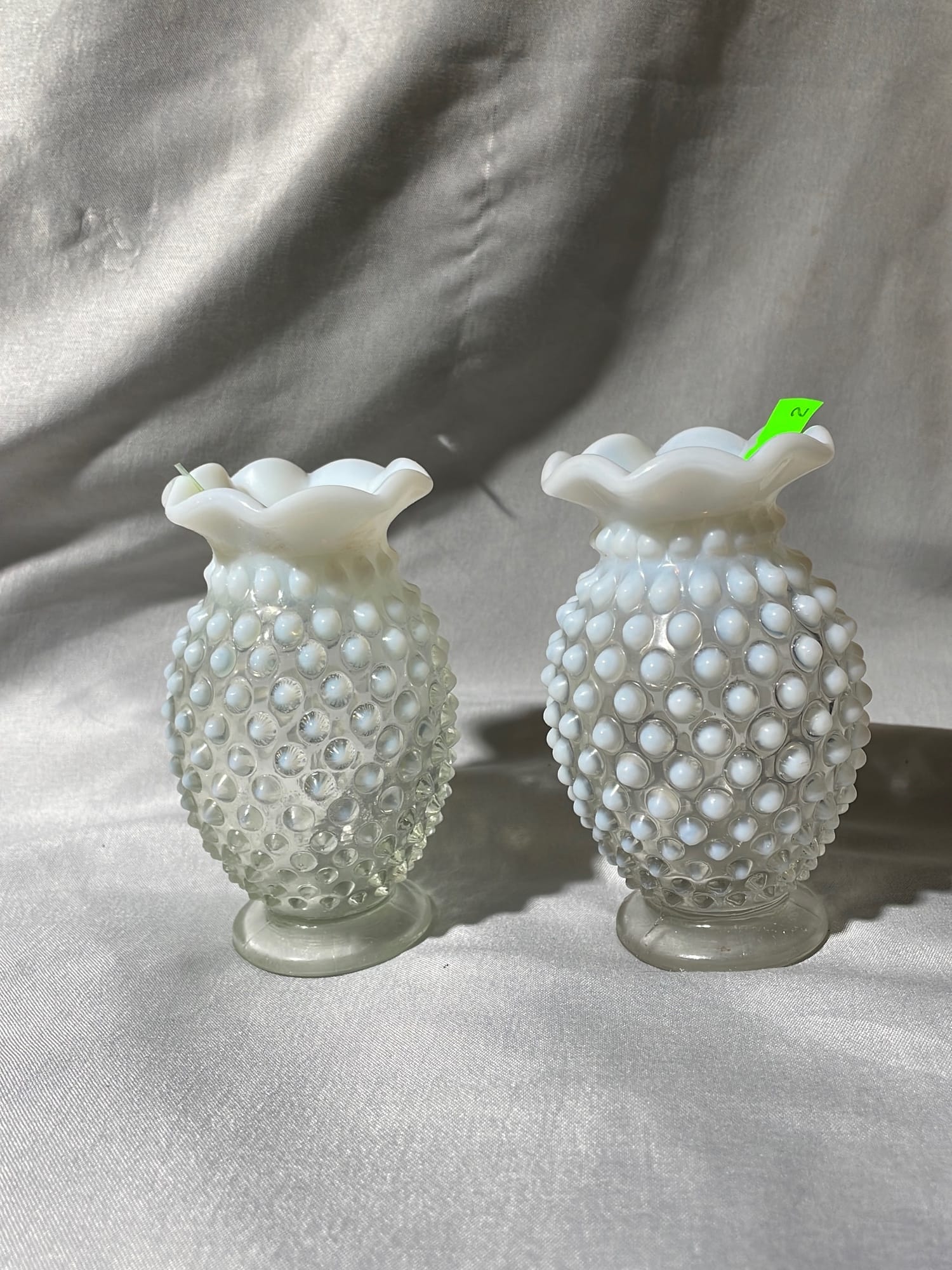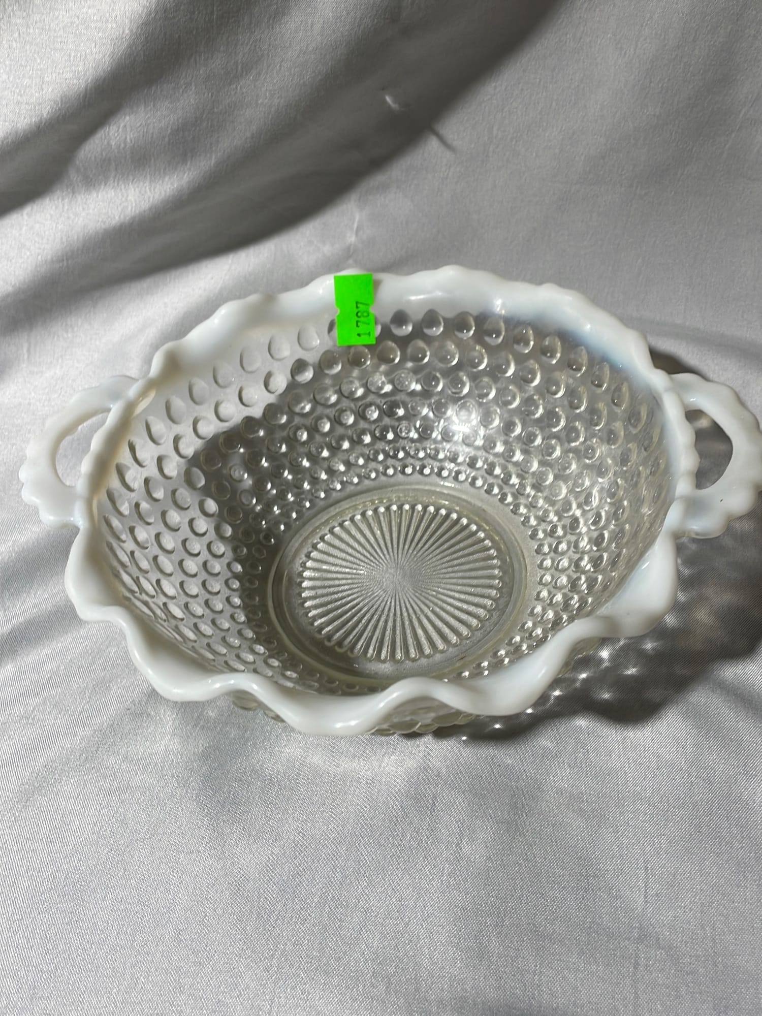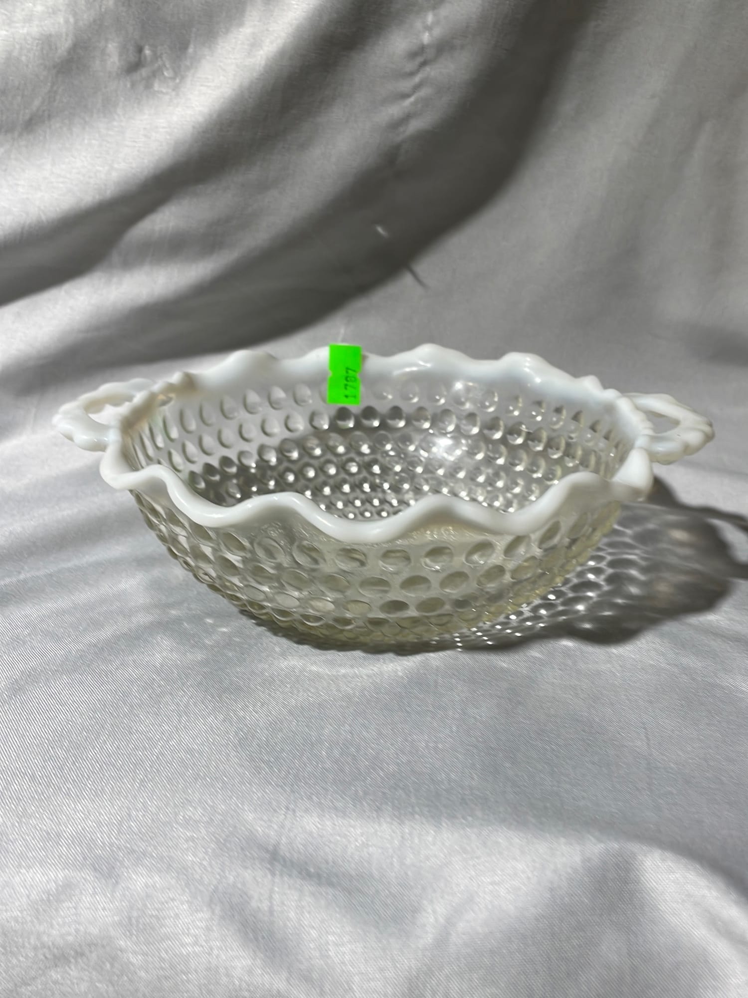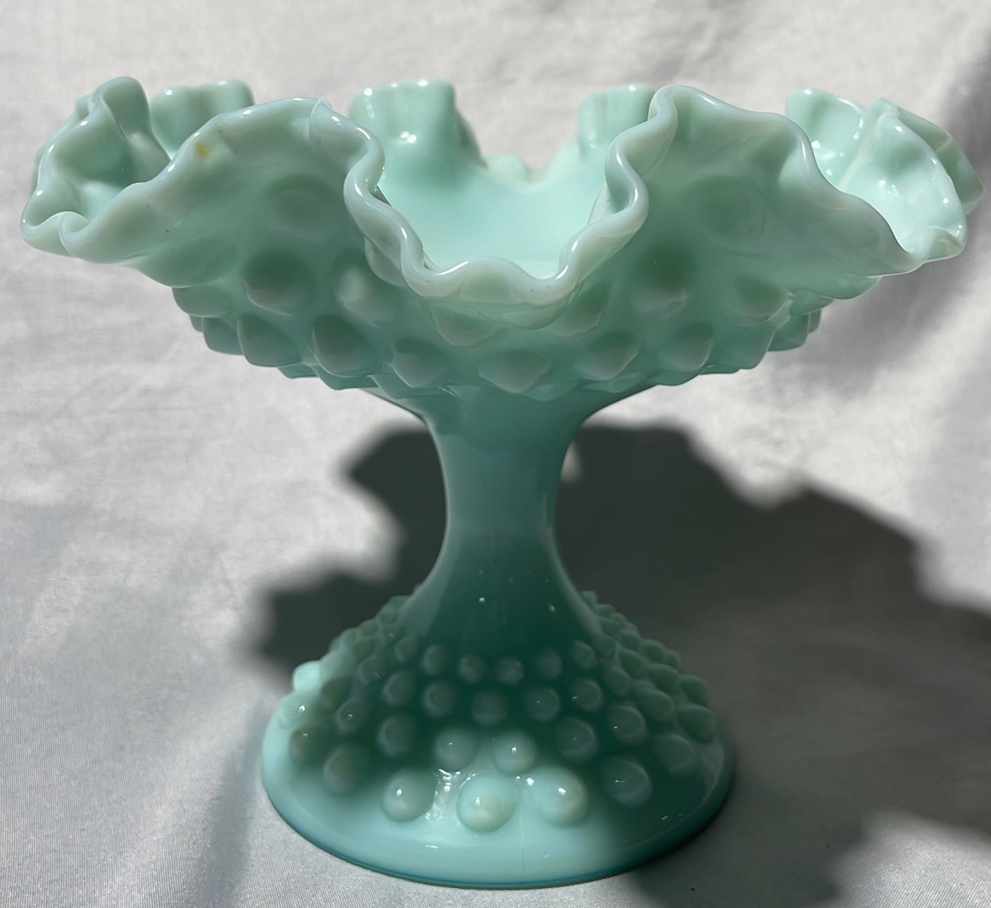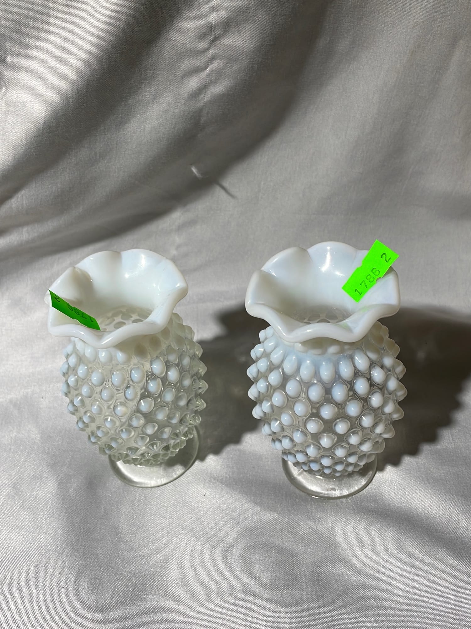 1207 Hobnail ruffle milk glass vase 6"x6", milk glass pedestal dish 6"