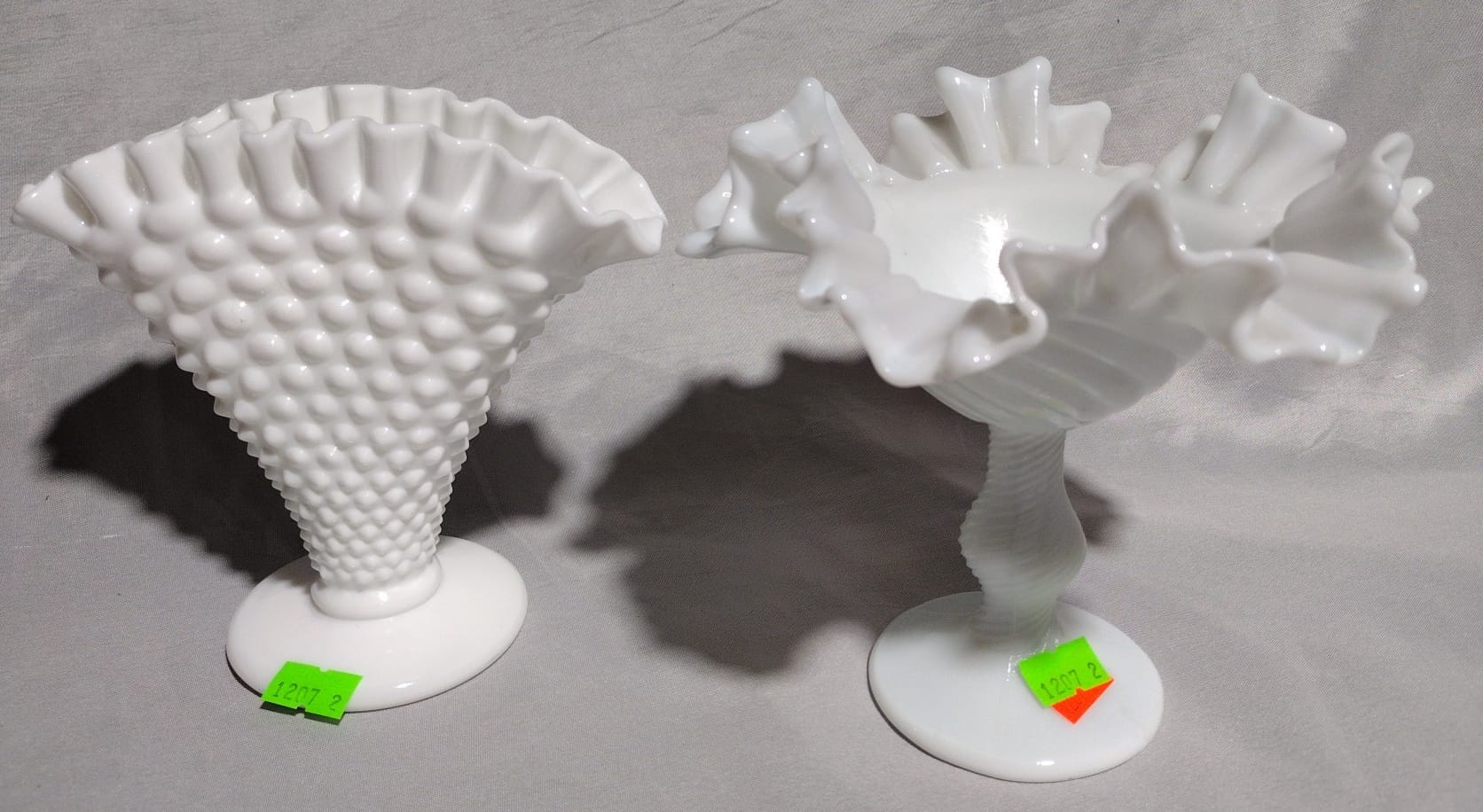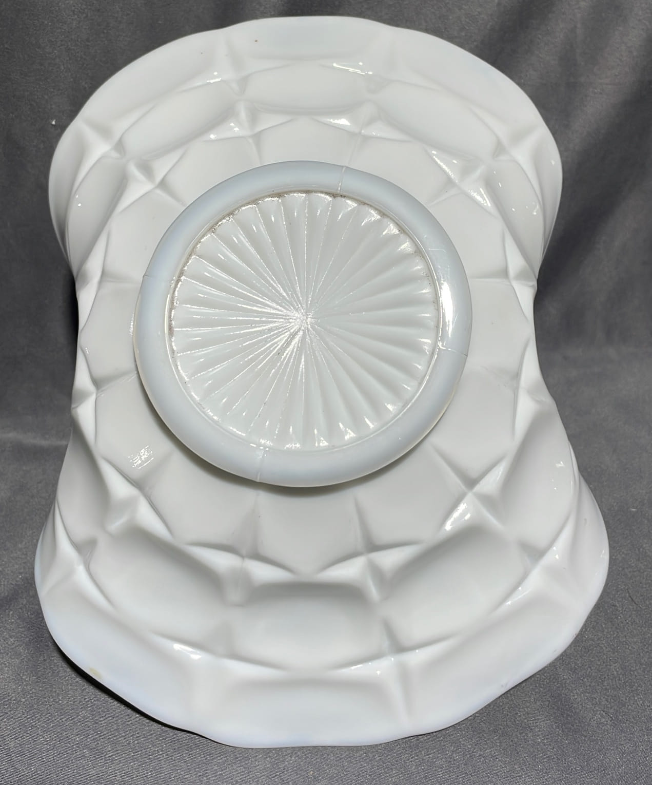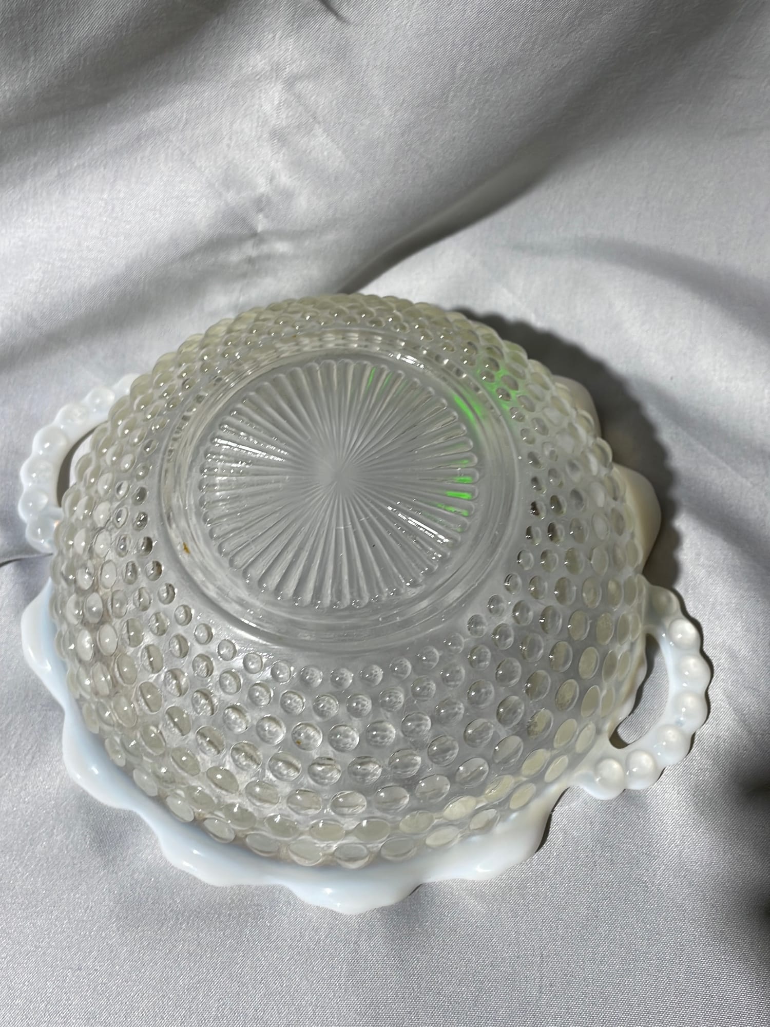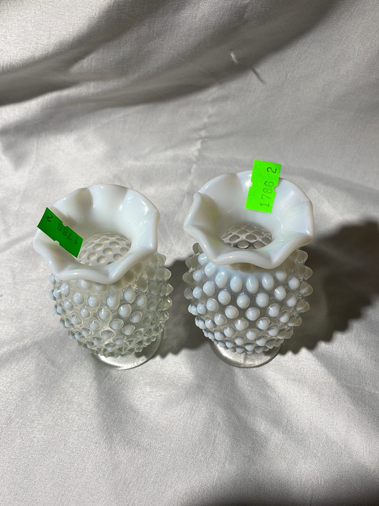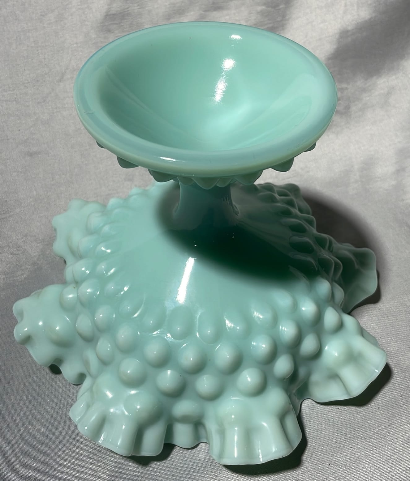 1207 Hobnail ruffle milk glass vase 6"x6", milk glass pedestal dish 6"