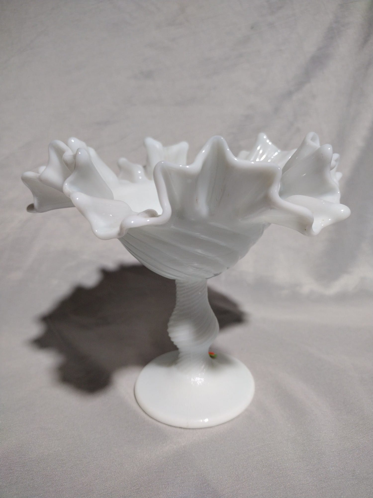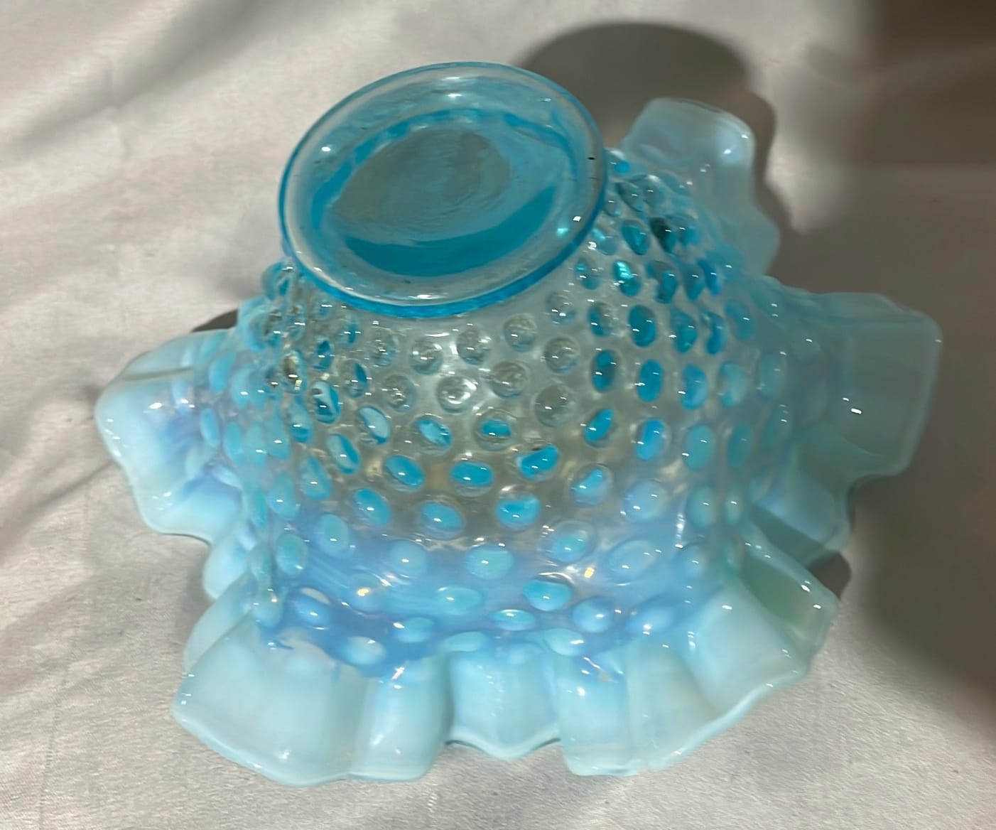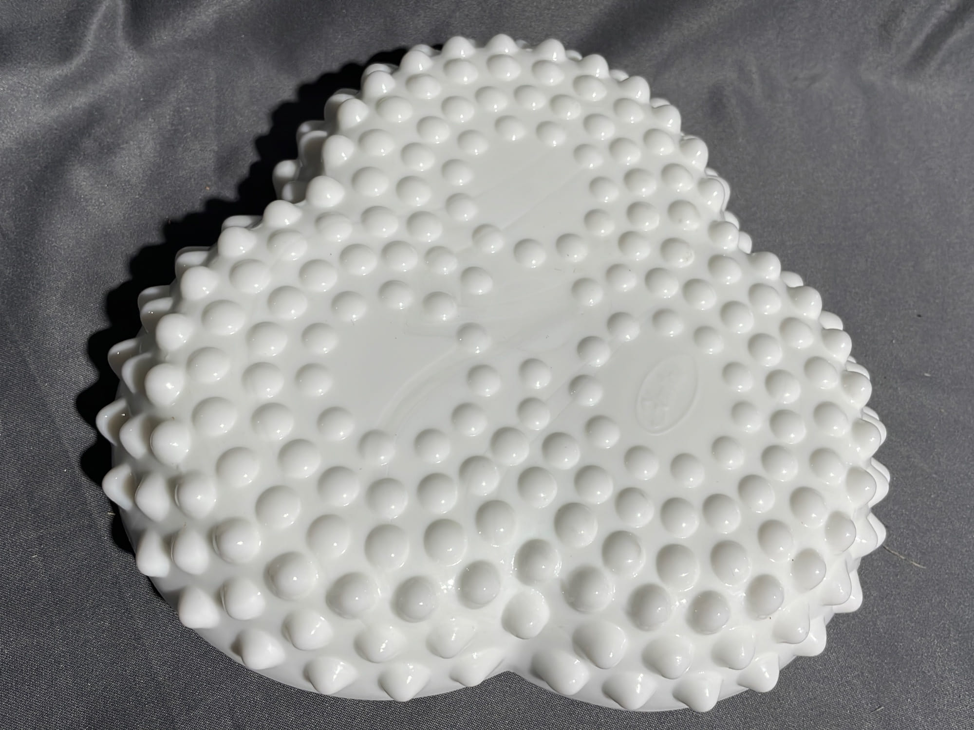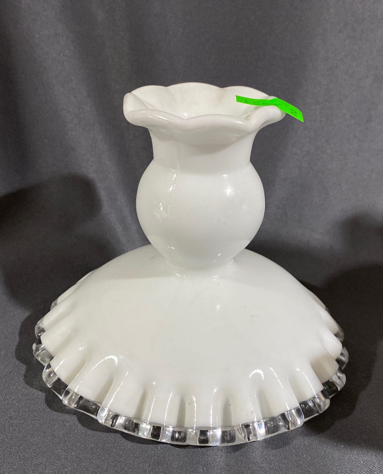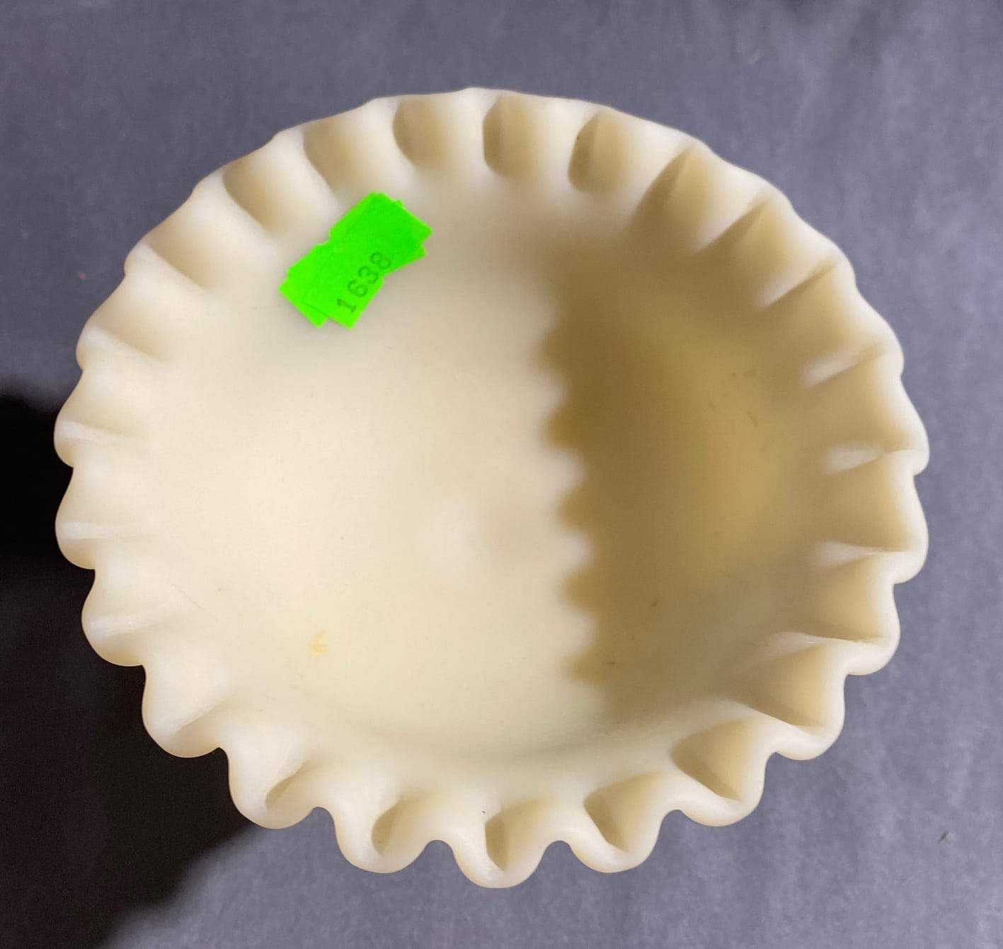 1207 Hobnail ruffle milk glass vase 6"x6", milk glass pedestal dish 6"