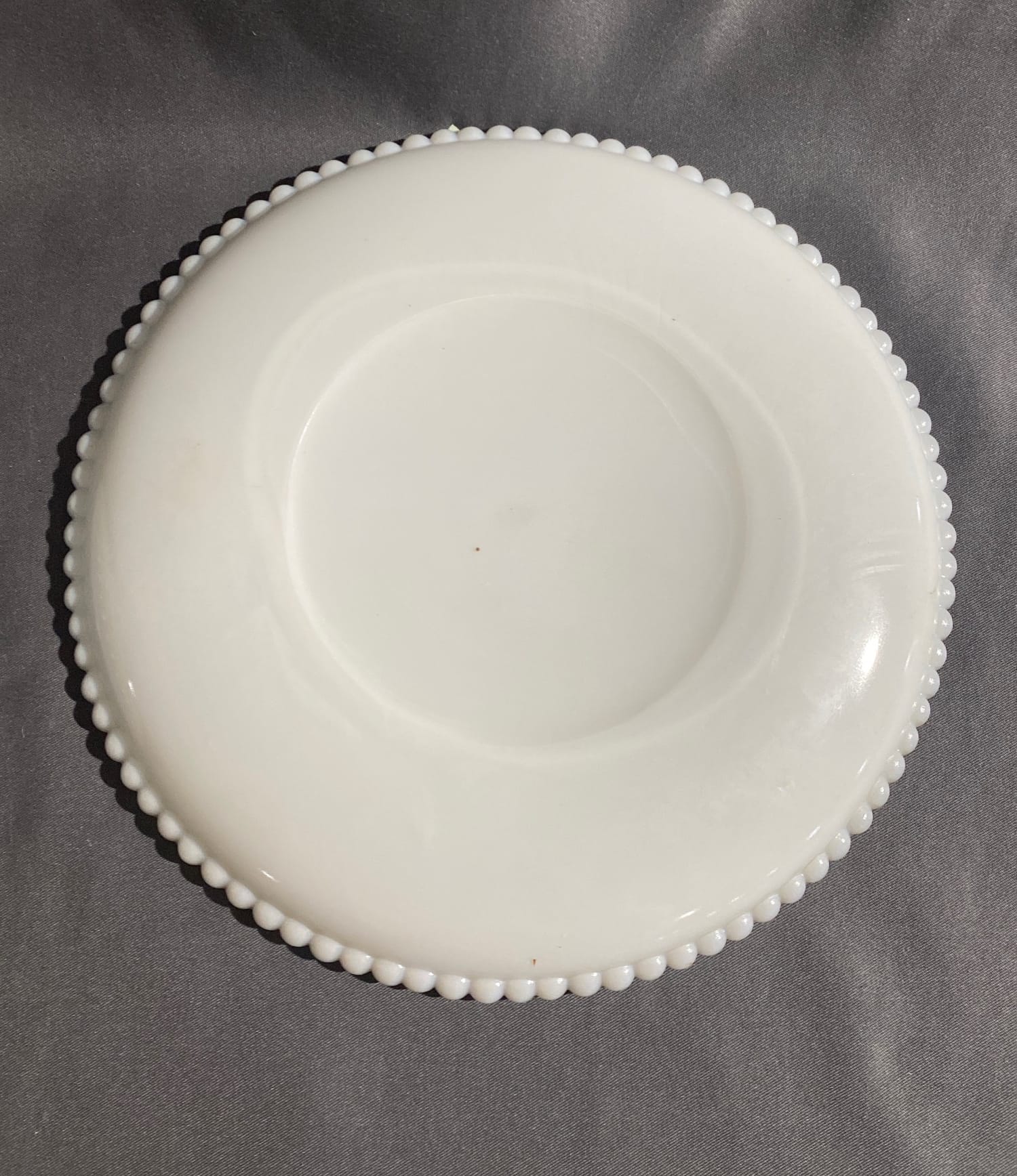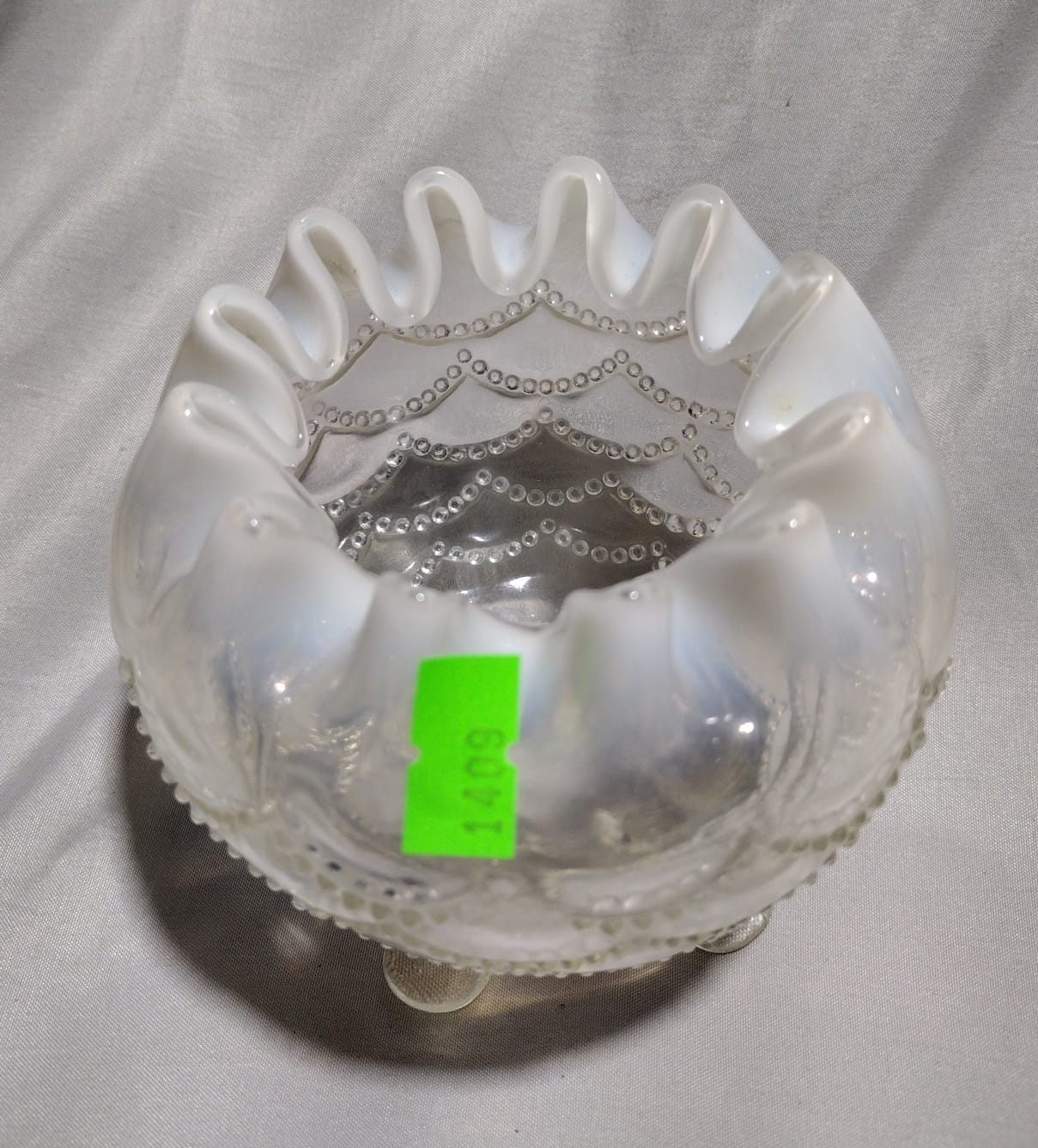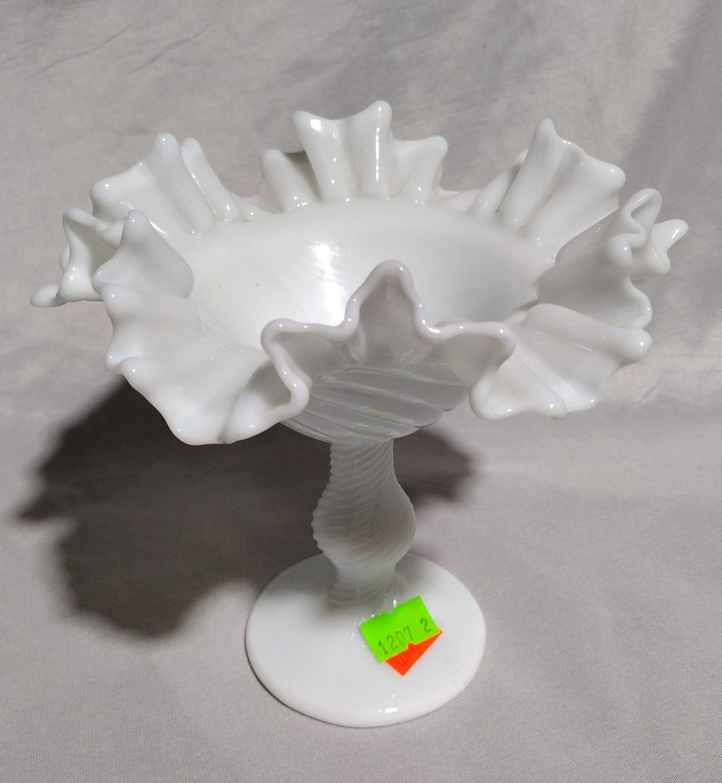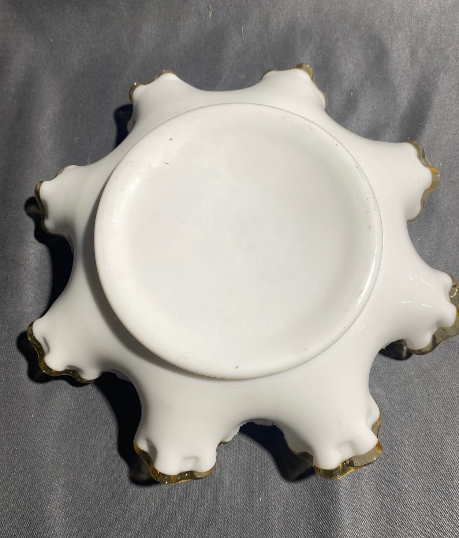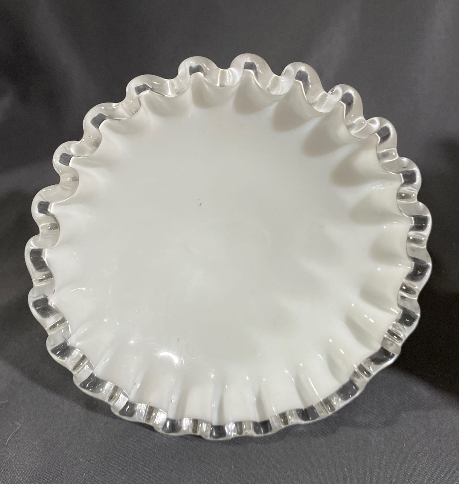 1207 Hobnail ruffle milk glass vase 6"x6", milk glass pedestal dish 6"