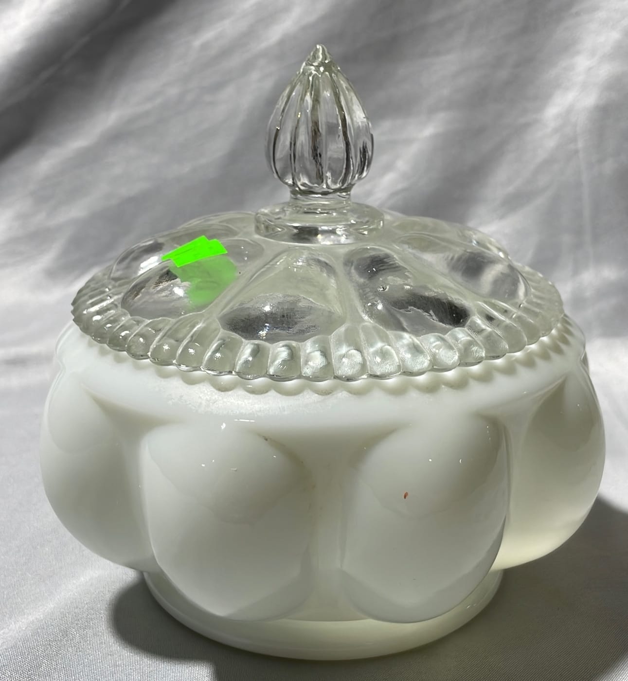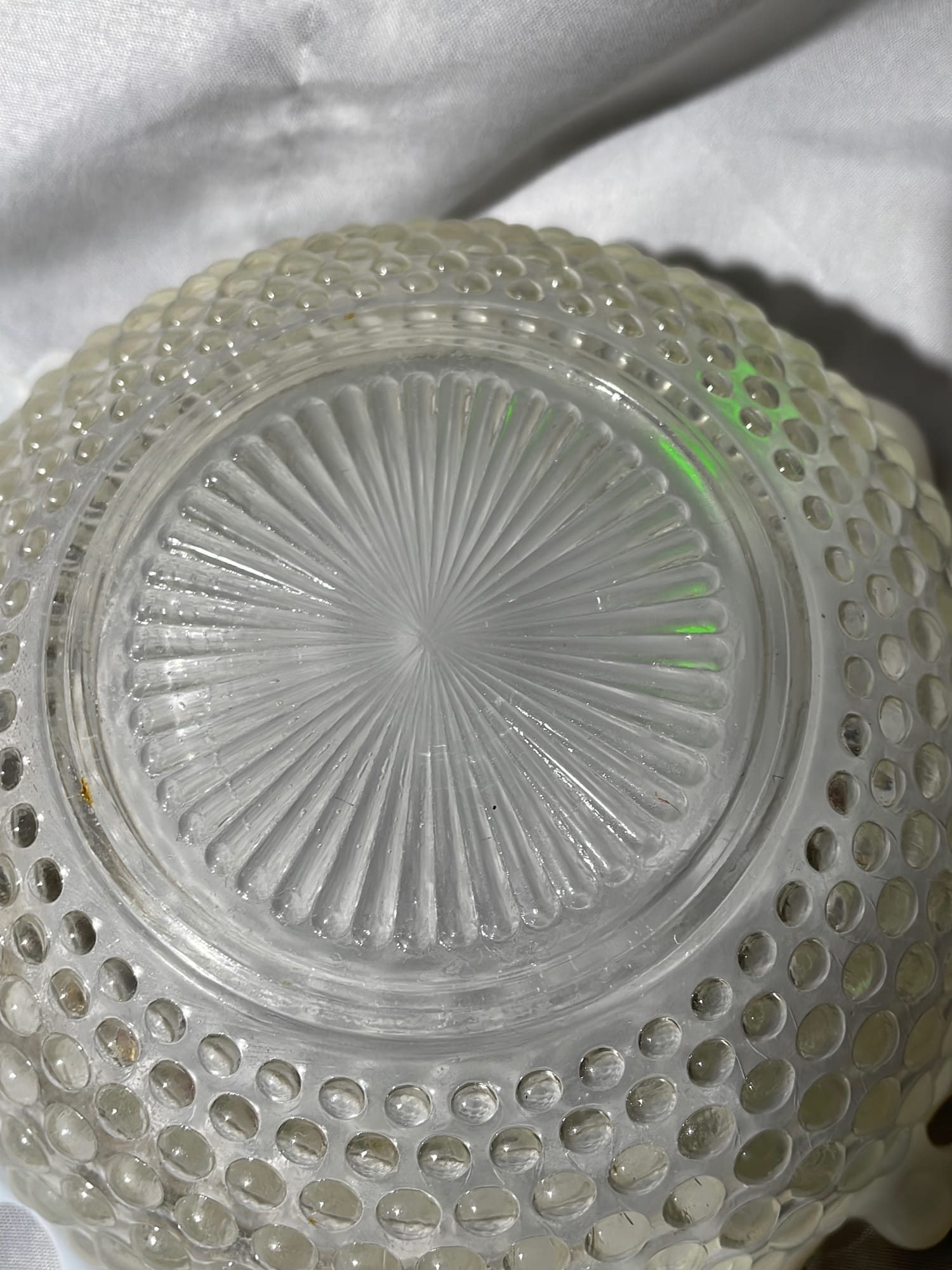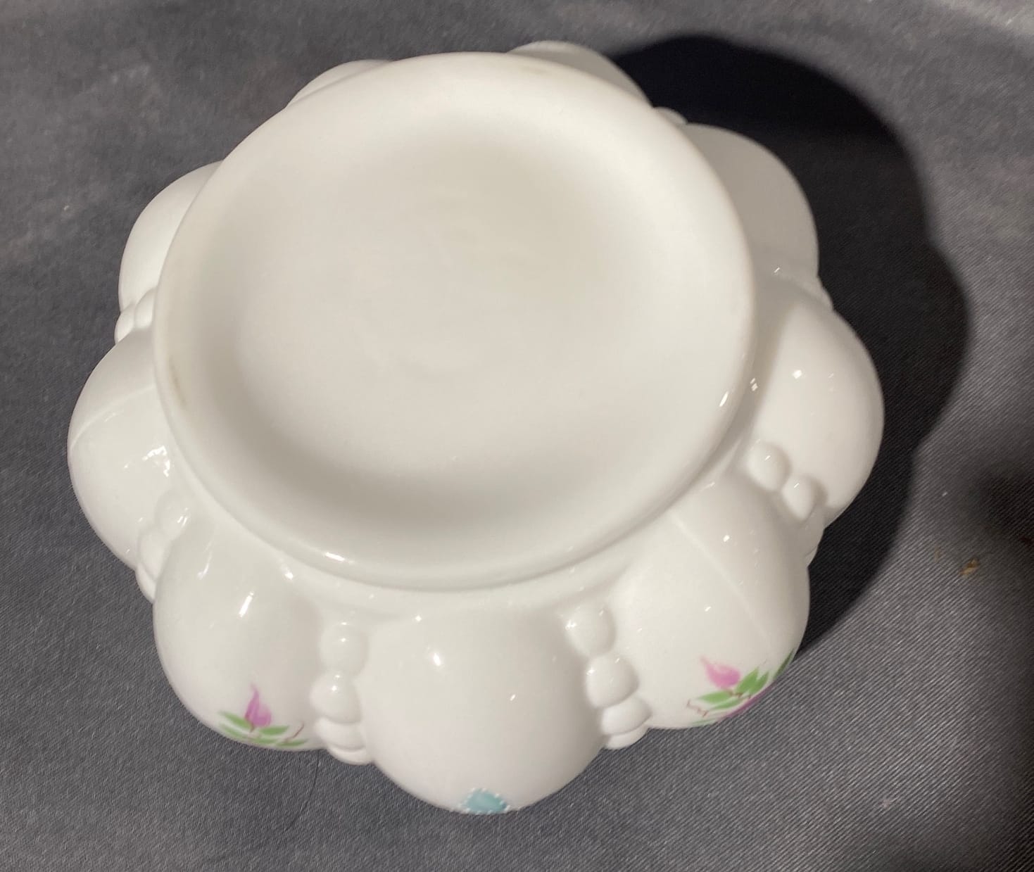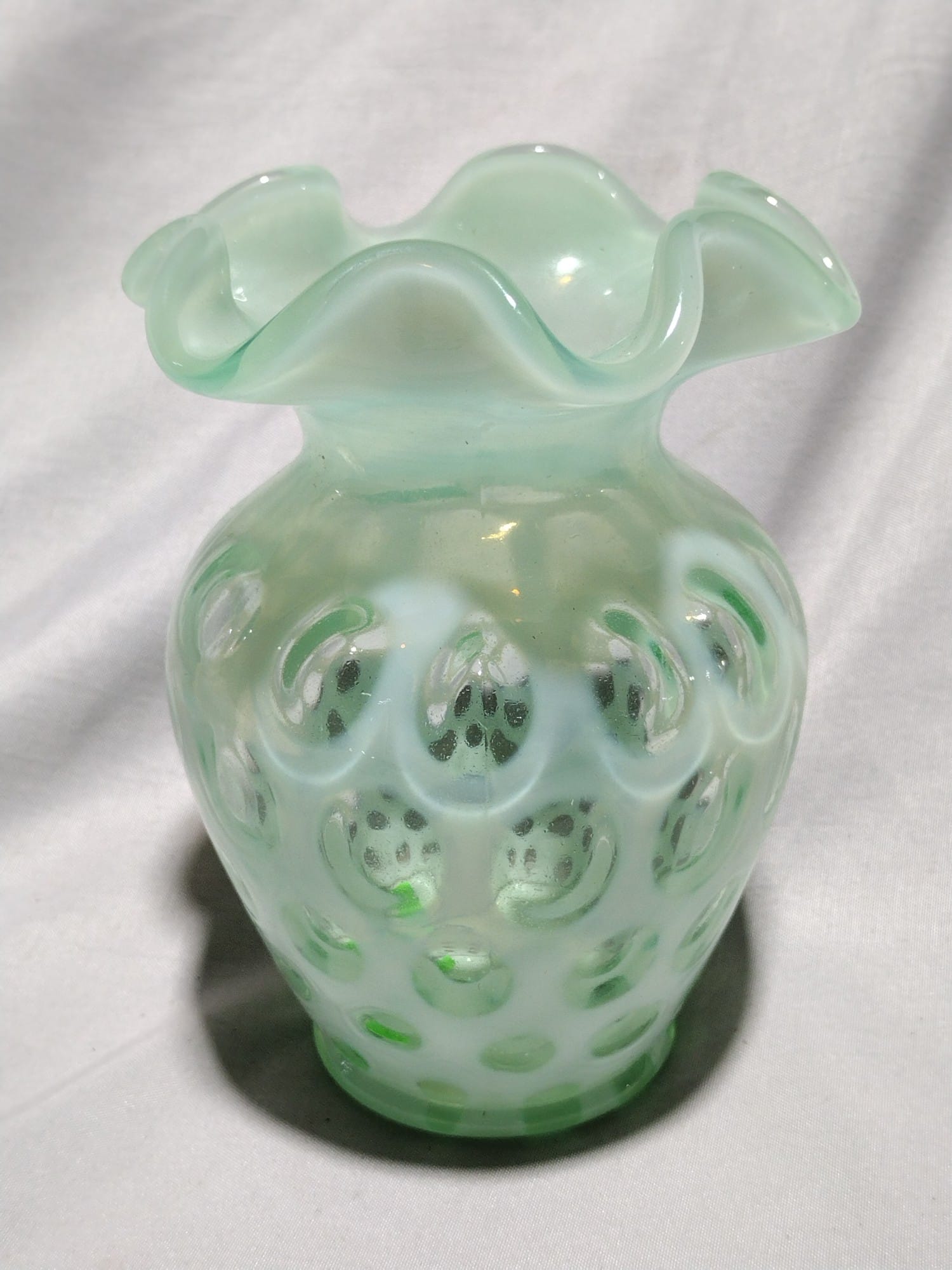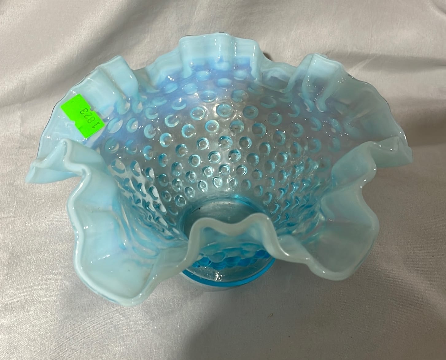 1207 Hobnail ruffle milk glass vase 6"x6", milk glass pedestal dish 6"