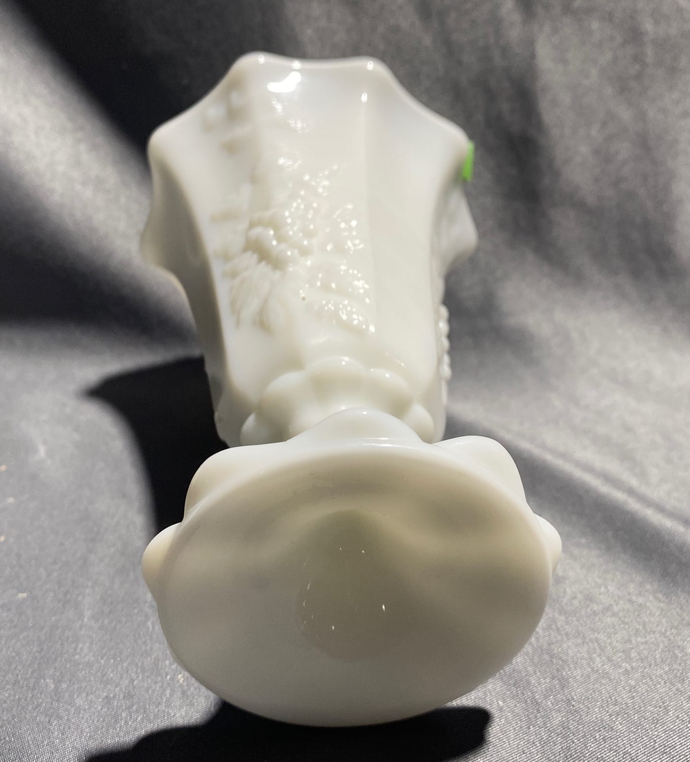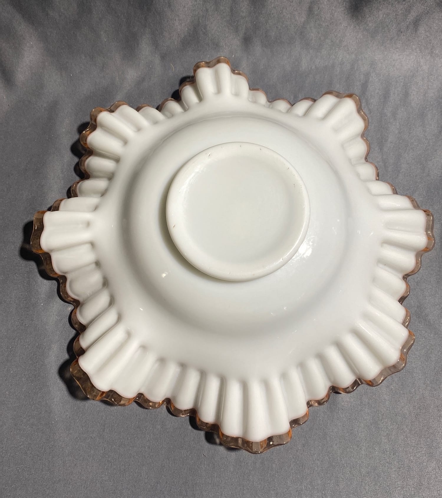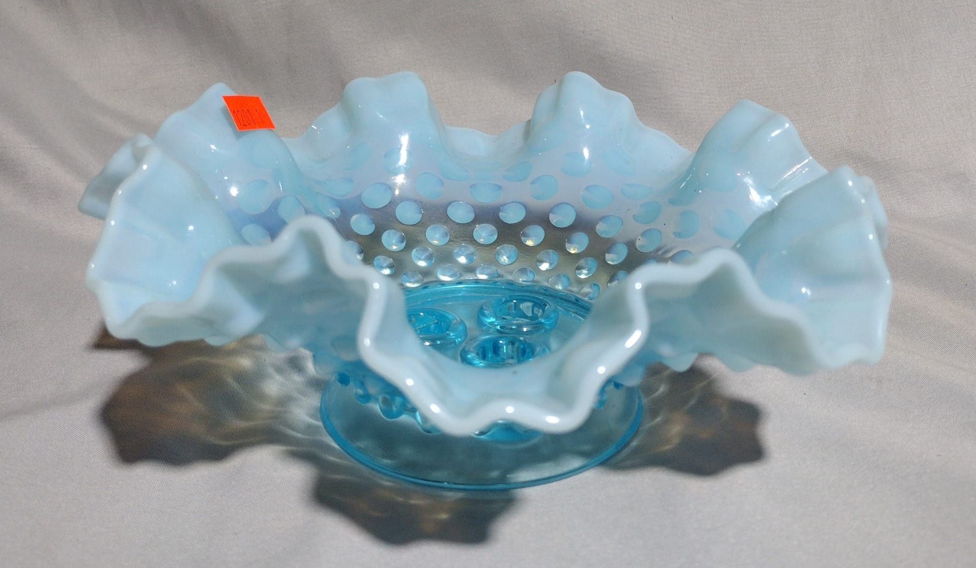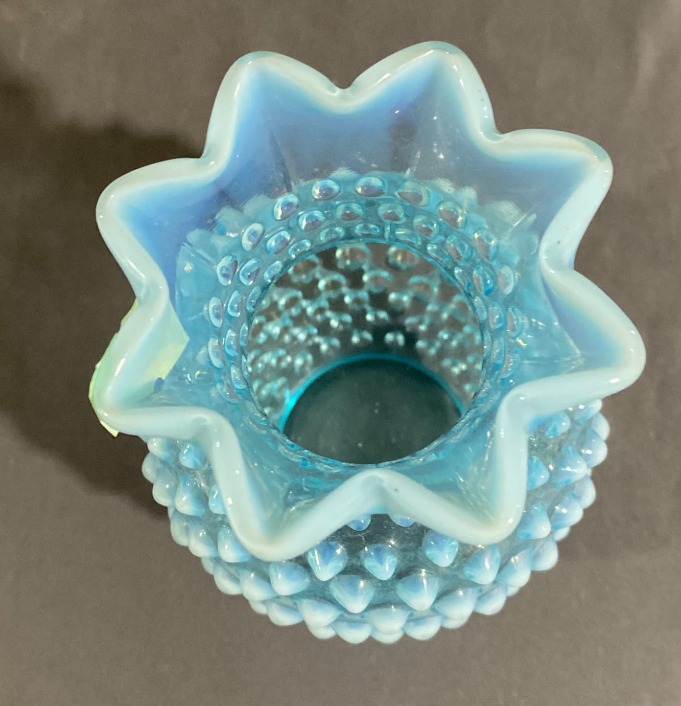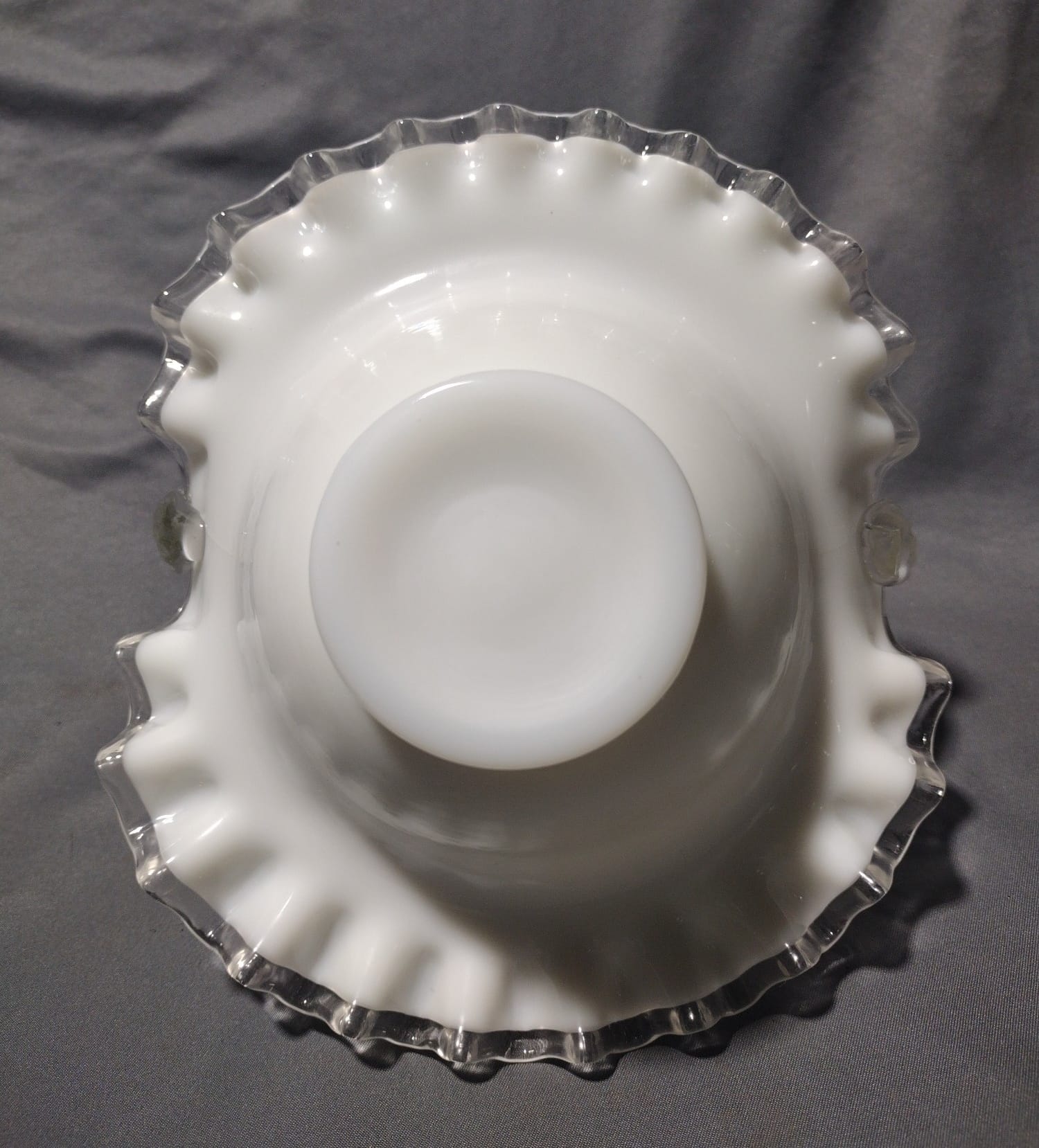 1207 Hobnail ruffle milk glass vase 6"x6", milk glass pedestal dish 6"