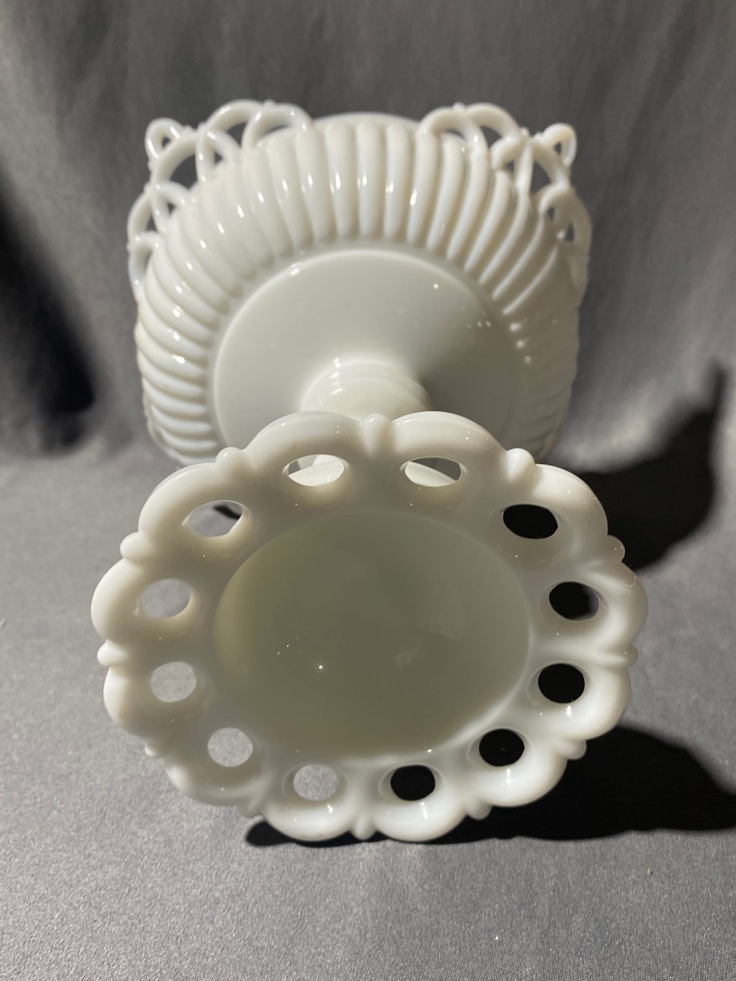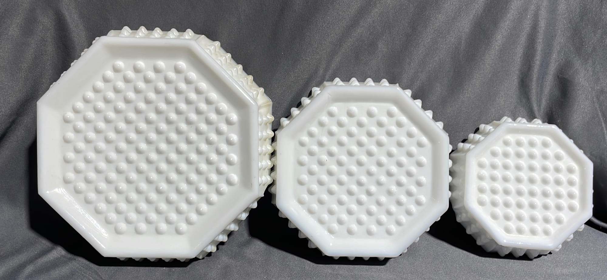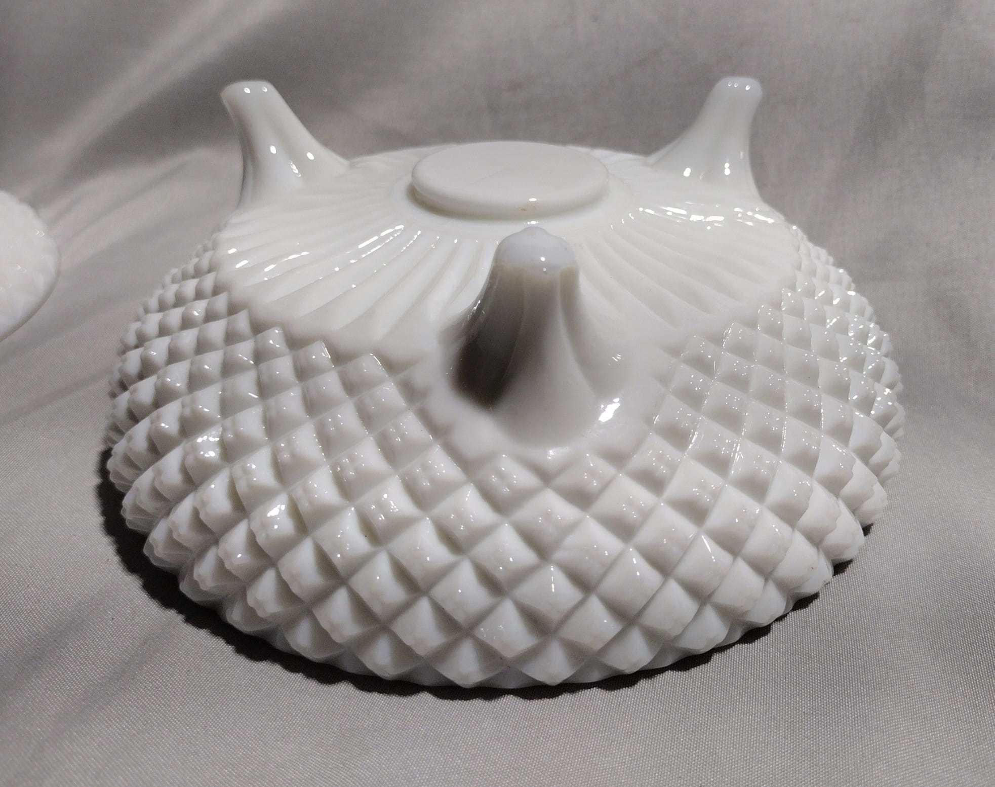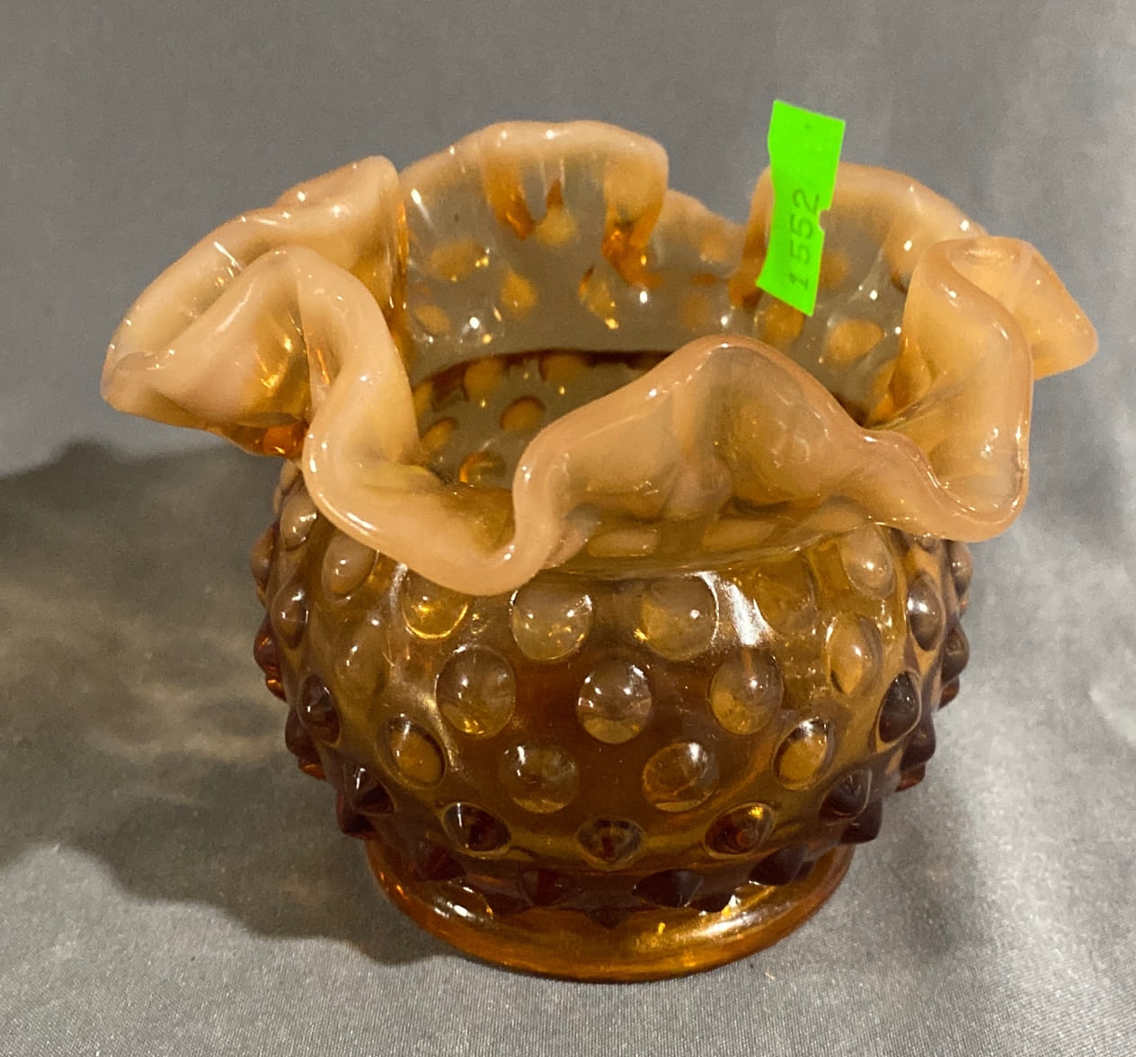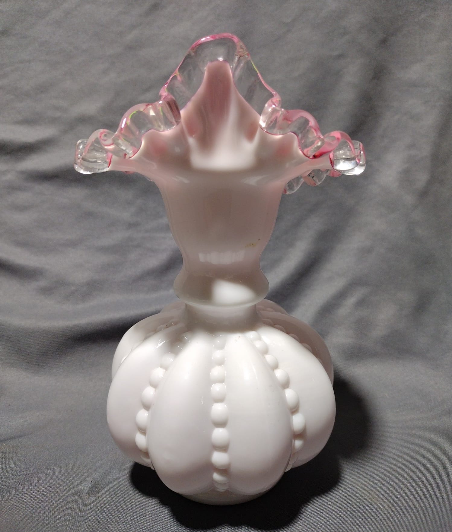 1207 Hobnail ruffle milk glass vase 6"x6", milk glass pedestal dish 6"