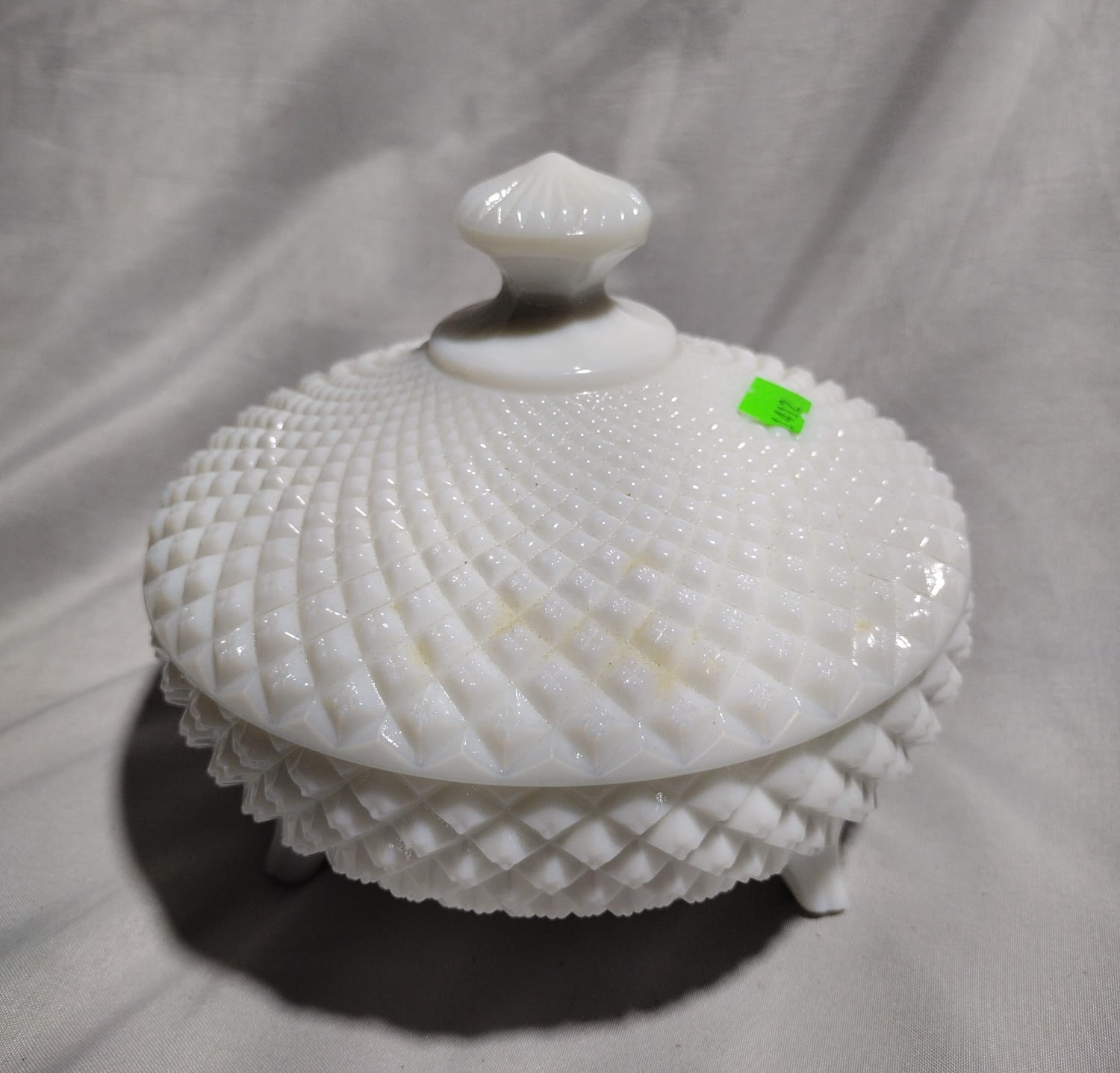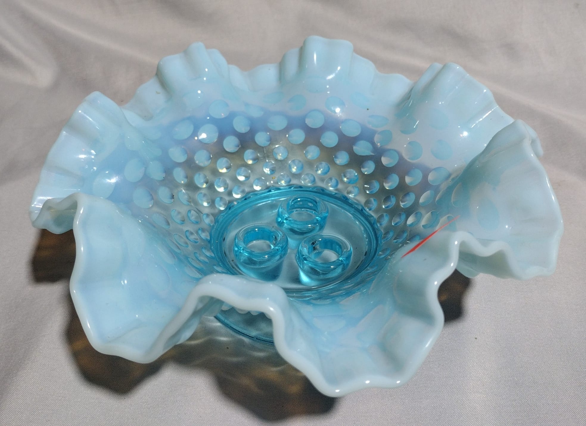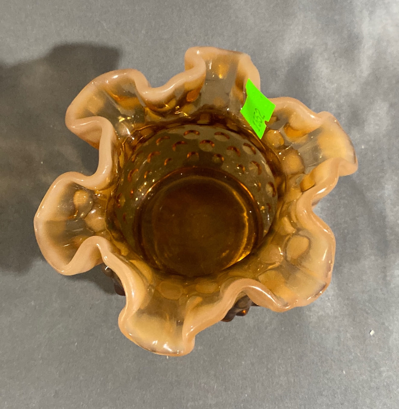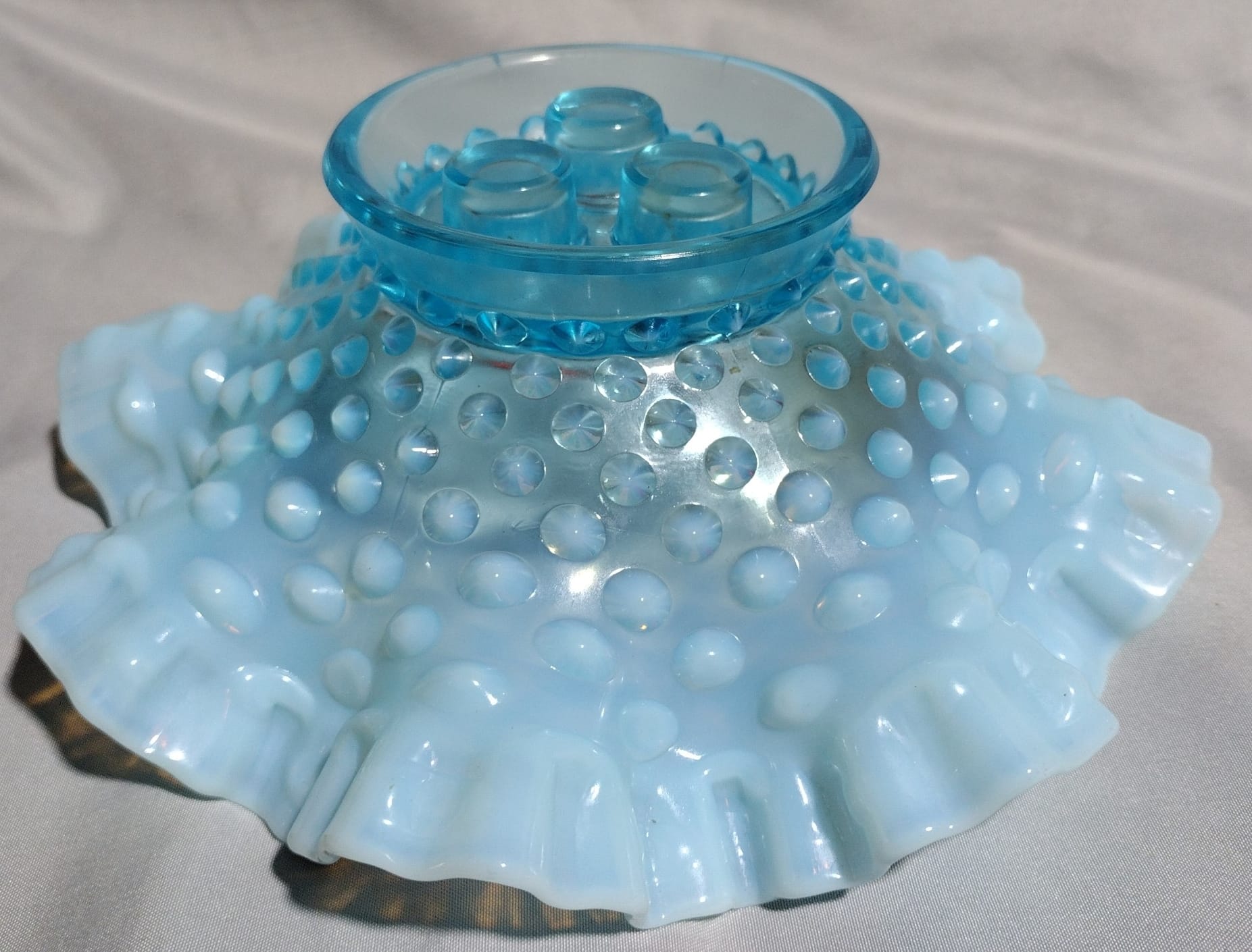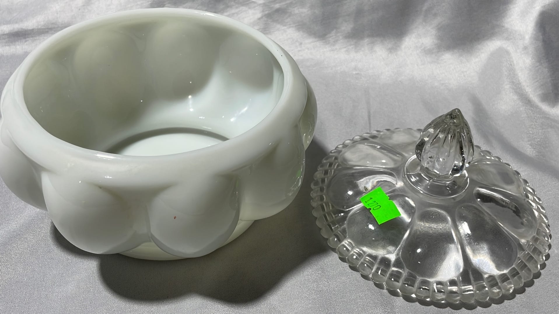 1207 Hobnail ruffle milk glass vase 6"x6", milk glass pedestal dish 6"