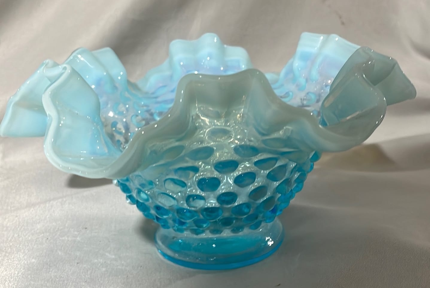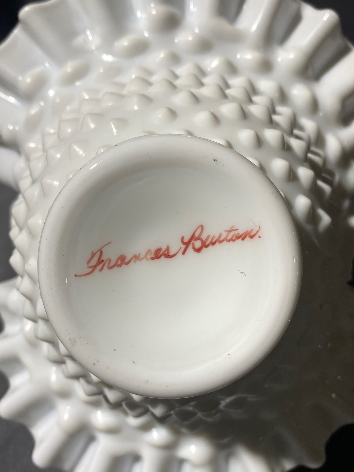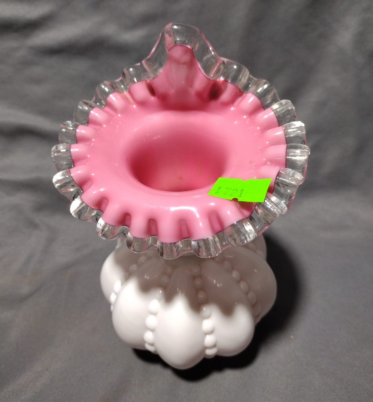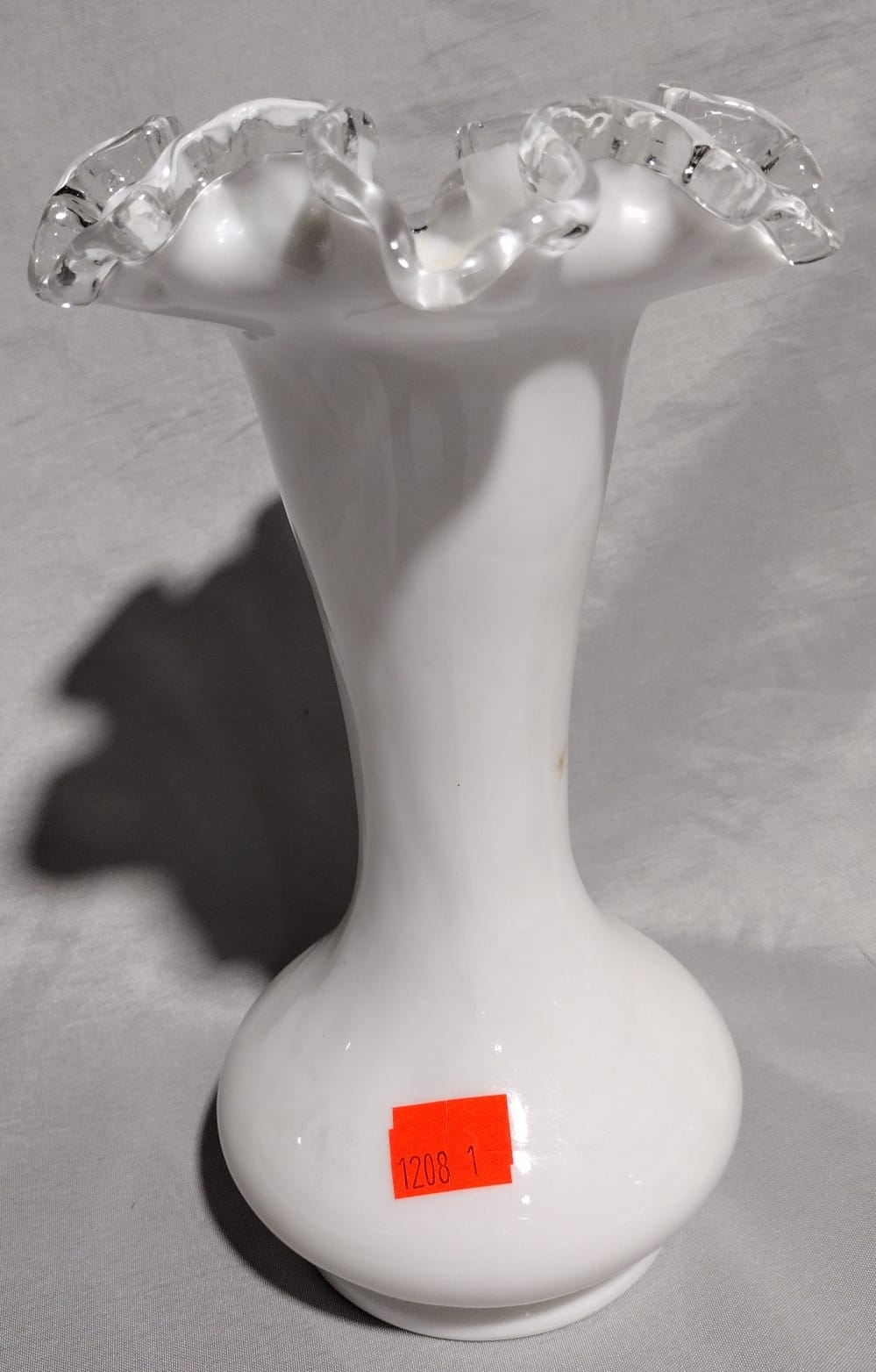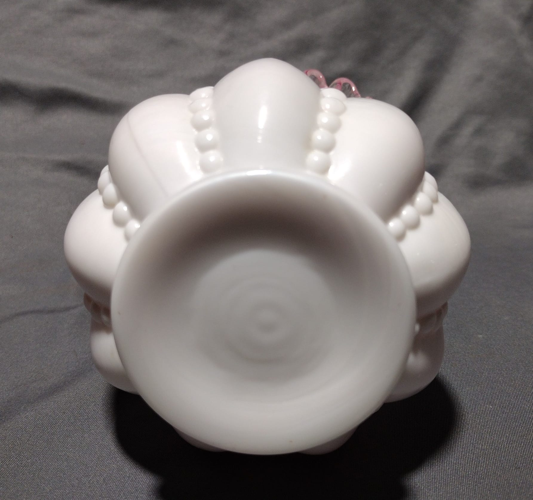 1207 Hobnail ruffle milk glass vase 6"x6", milk glass pedestal dish 6"