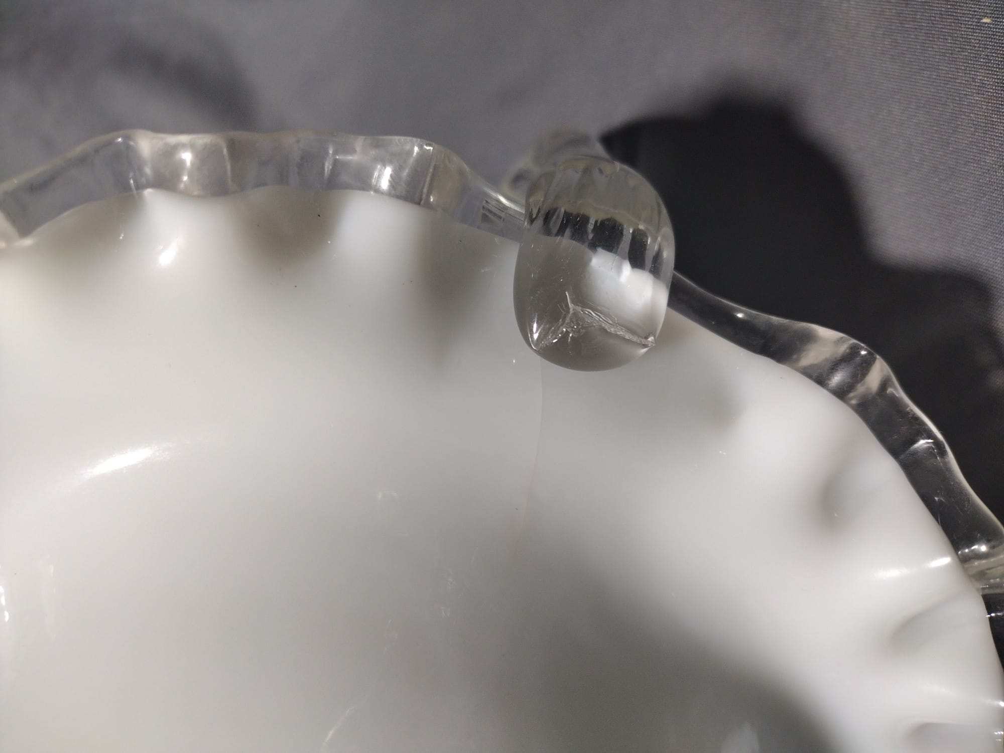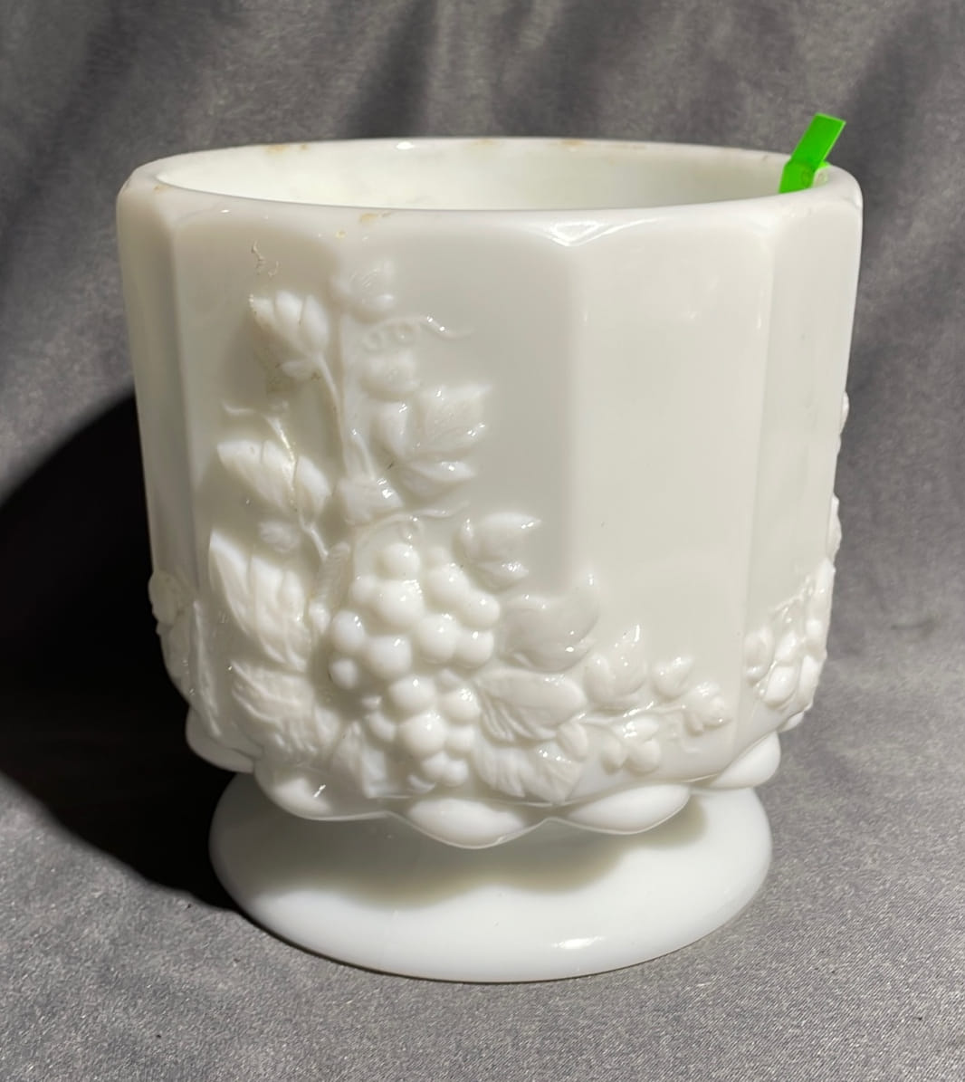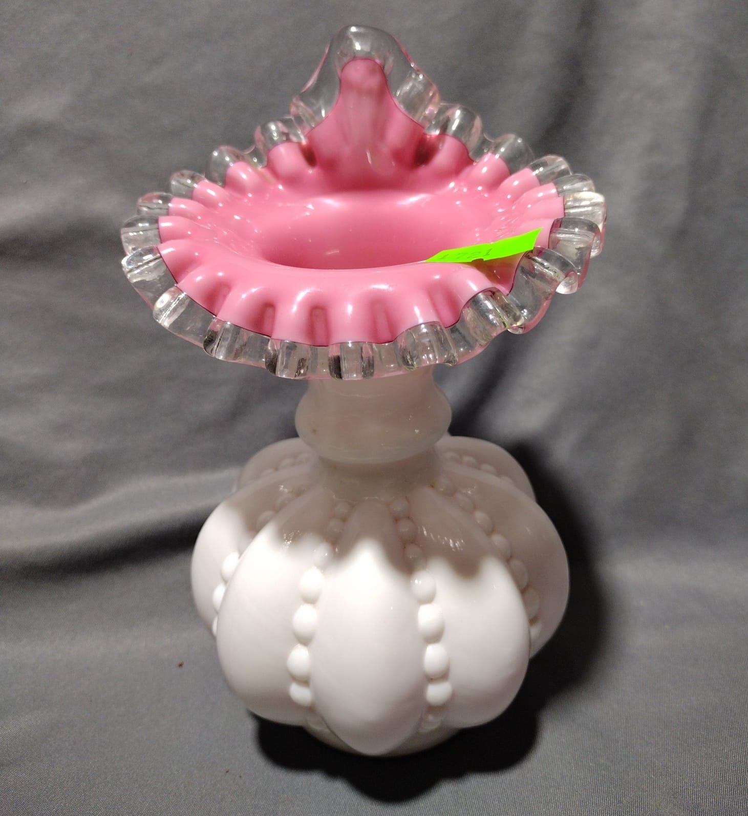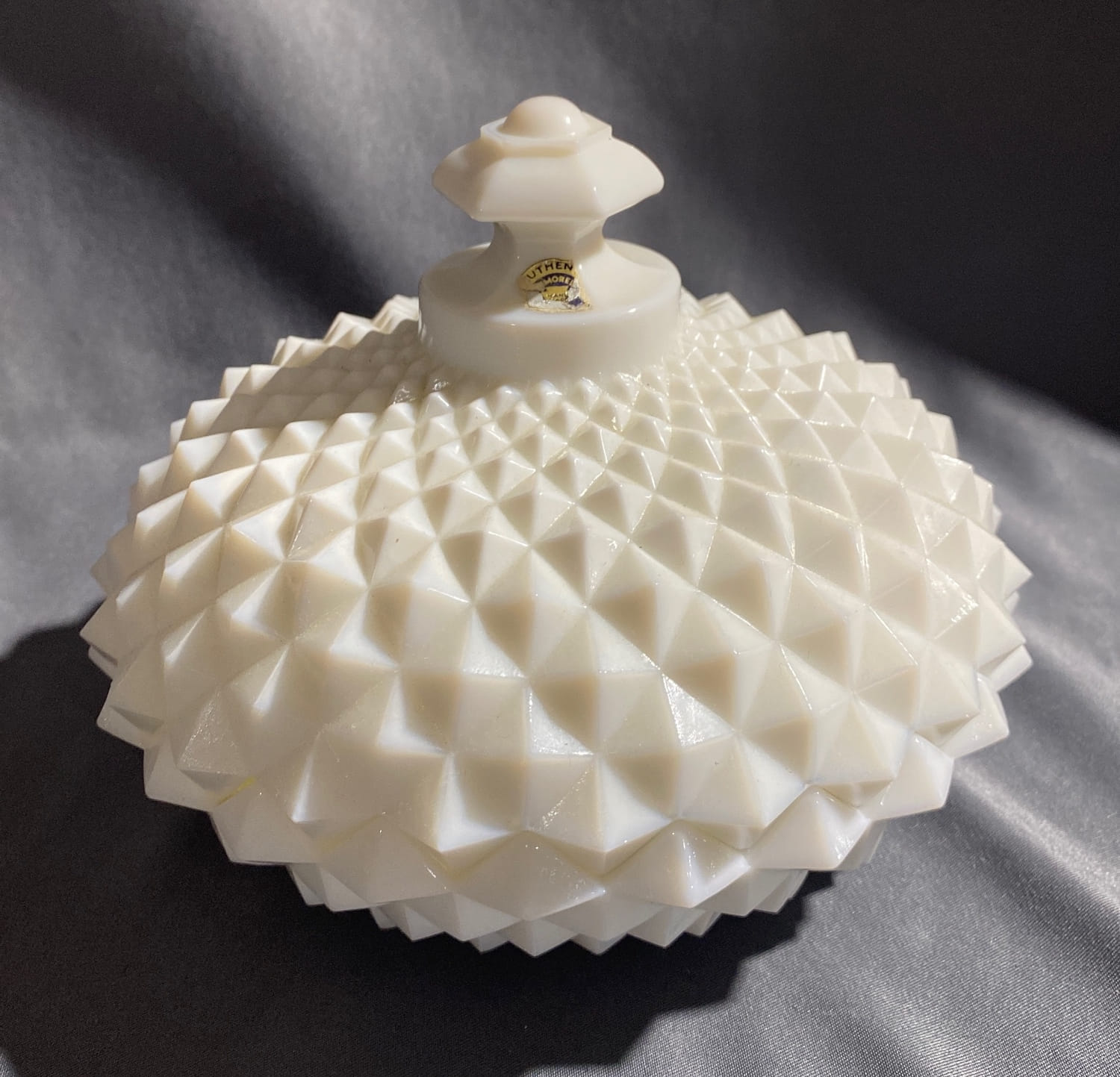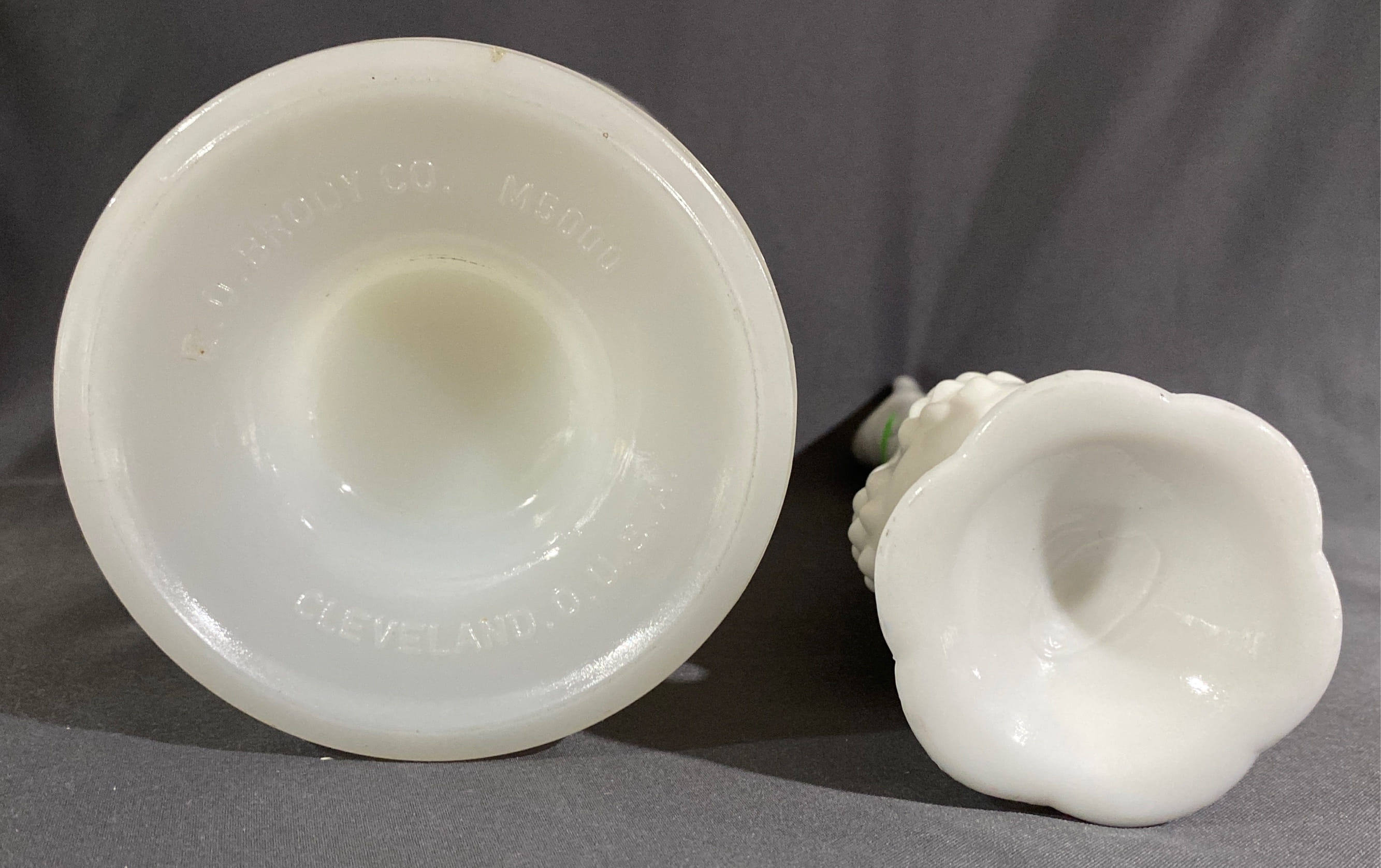 1207 Hobnail ruffle milk glass vase 6"x6", milk glass pedestal dish 6"