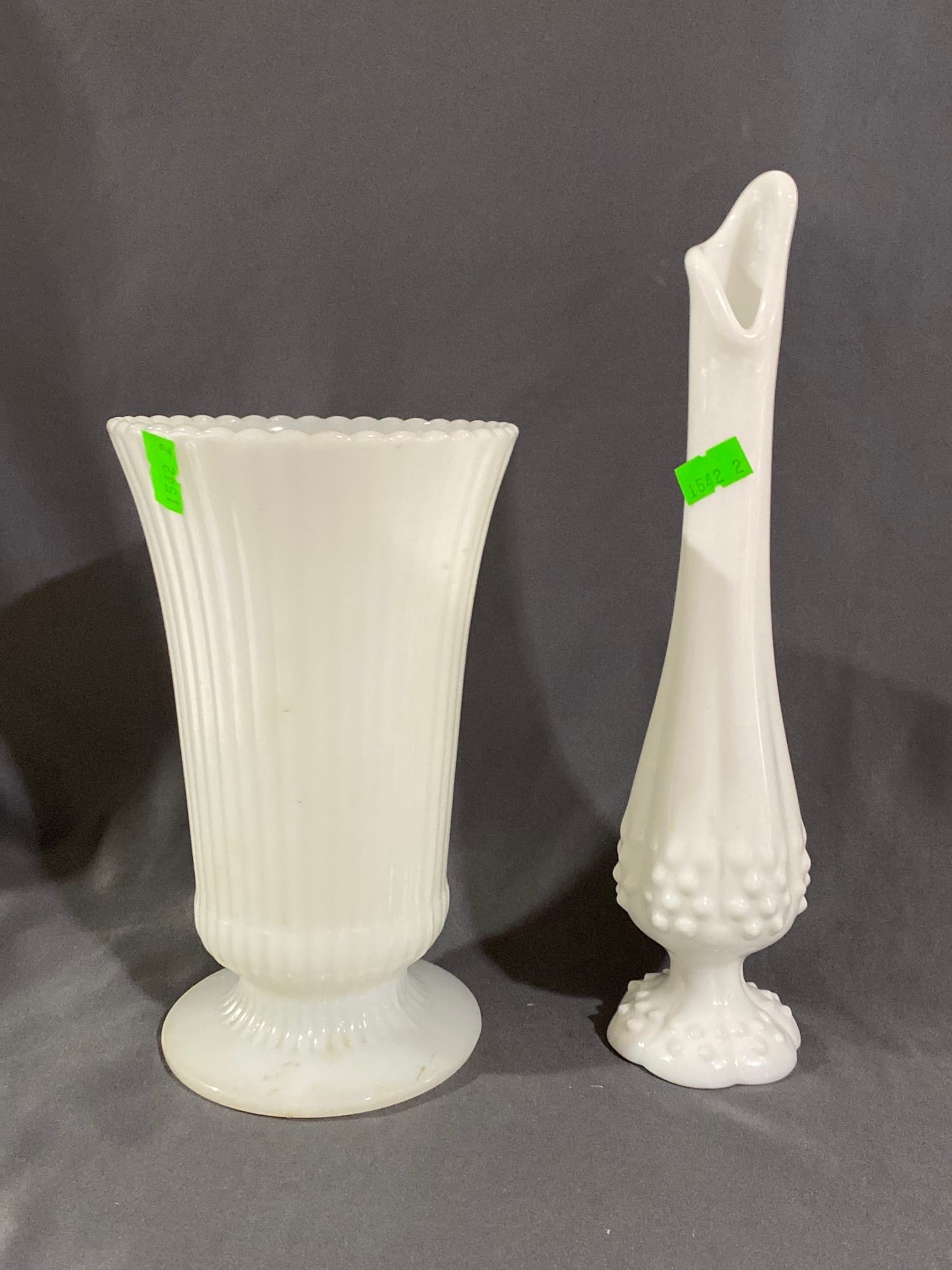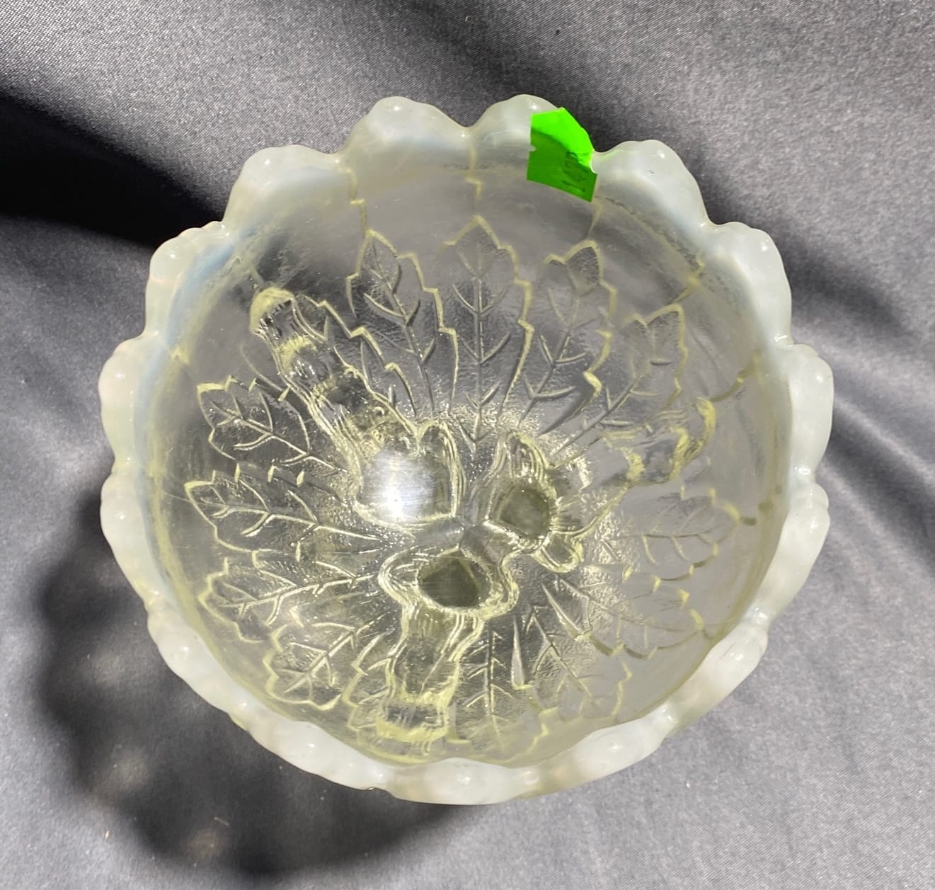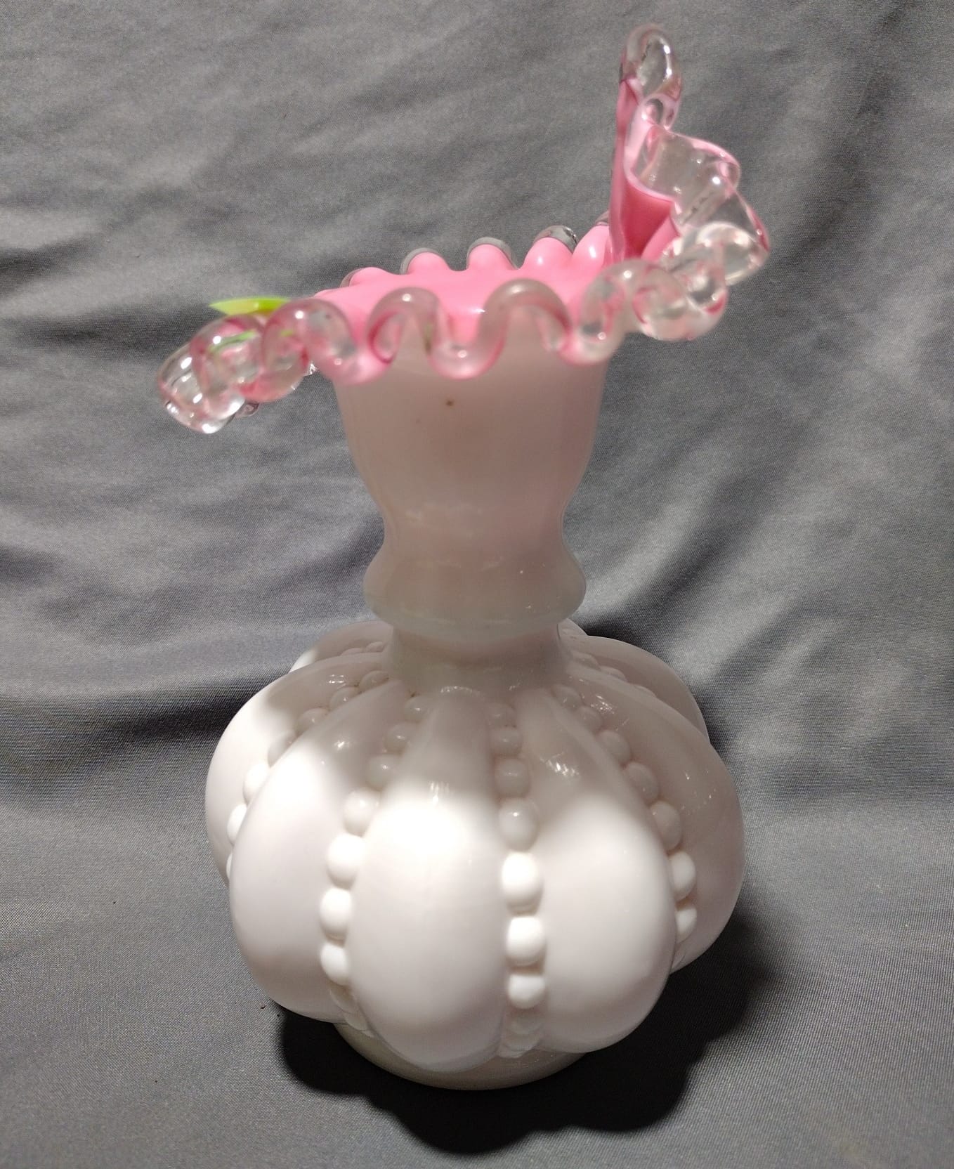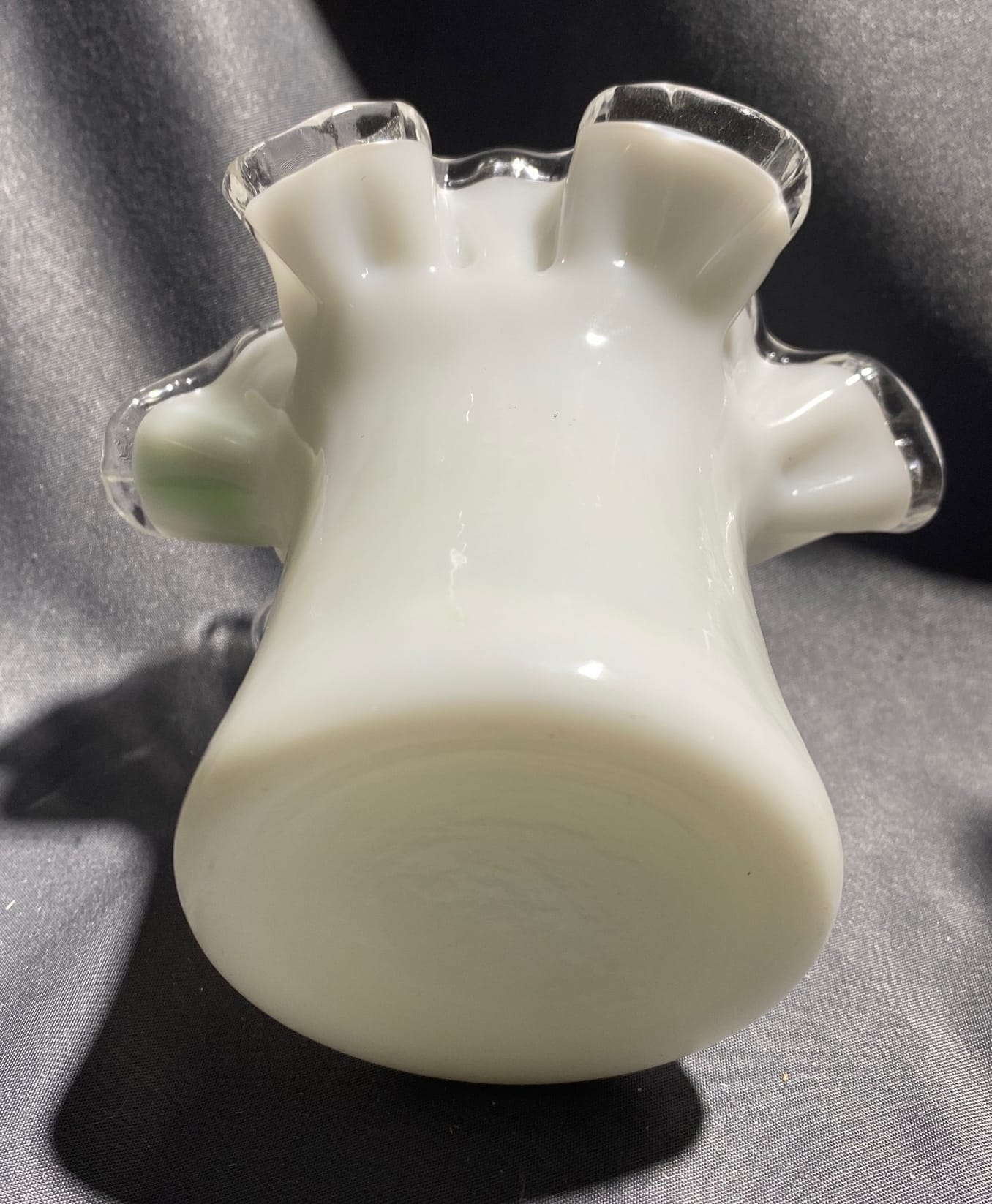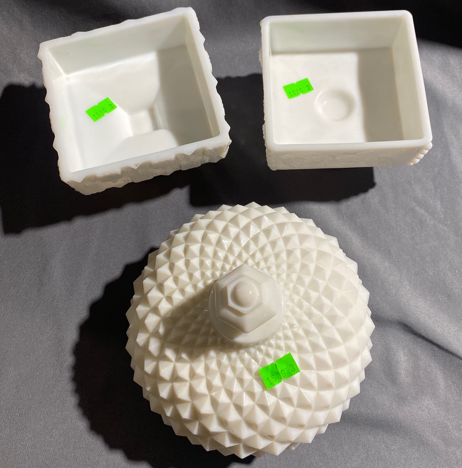 1207 Hobnail ruffle milk glass vase 6"x6", milk glass pedestal dish 6"