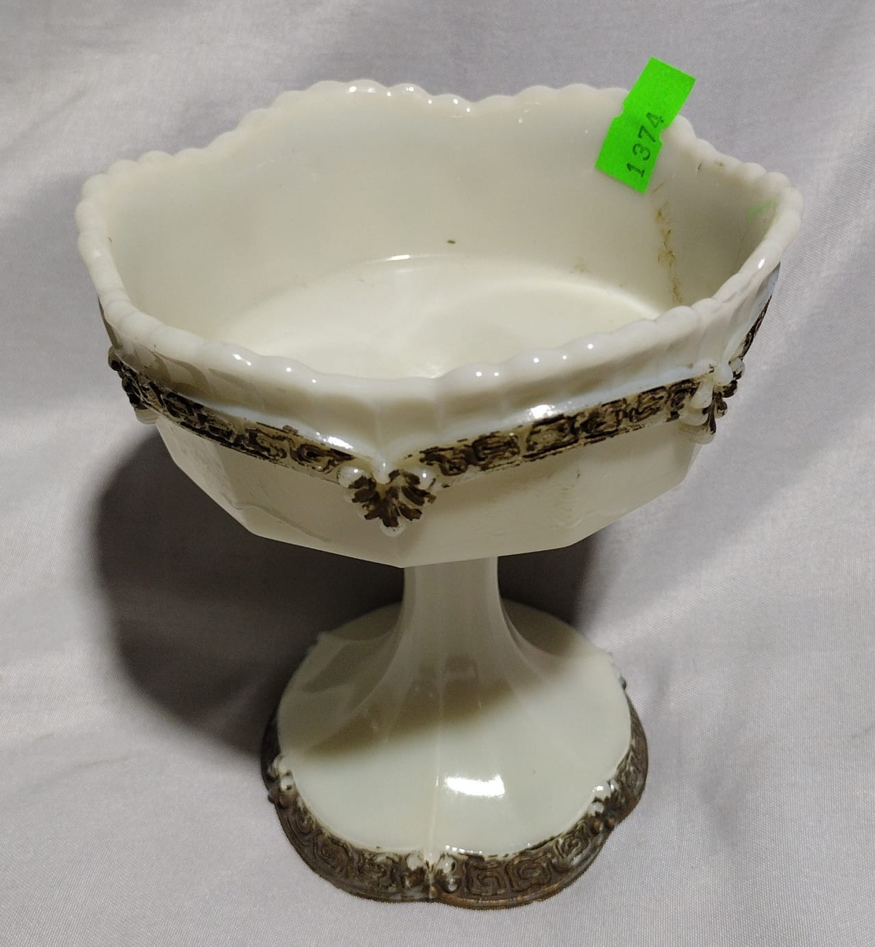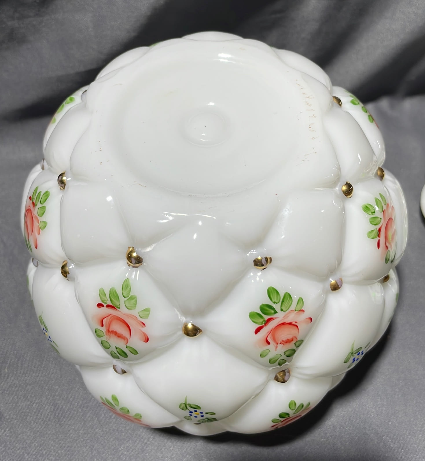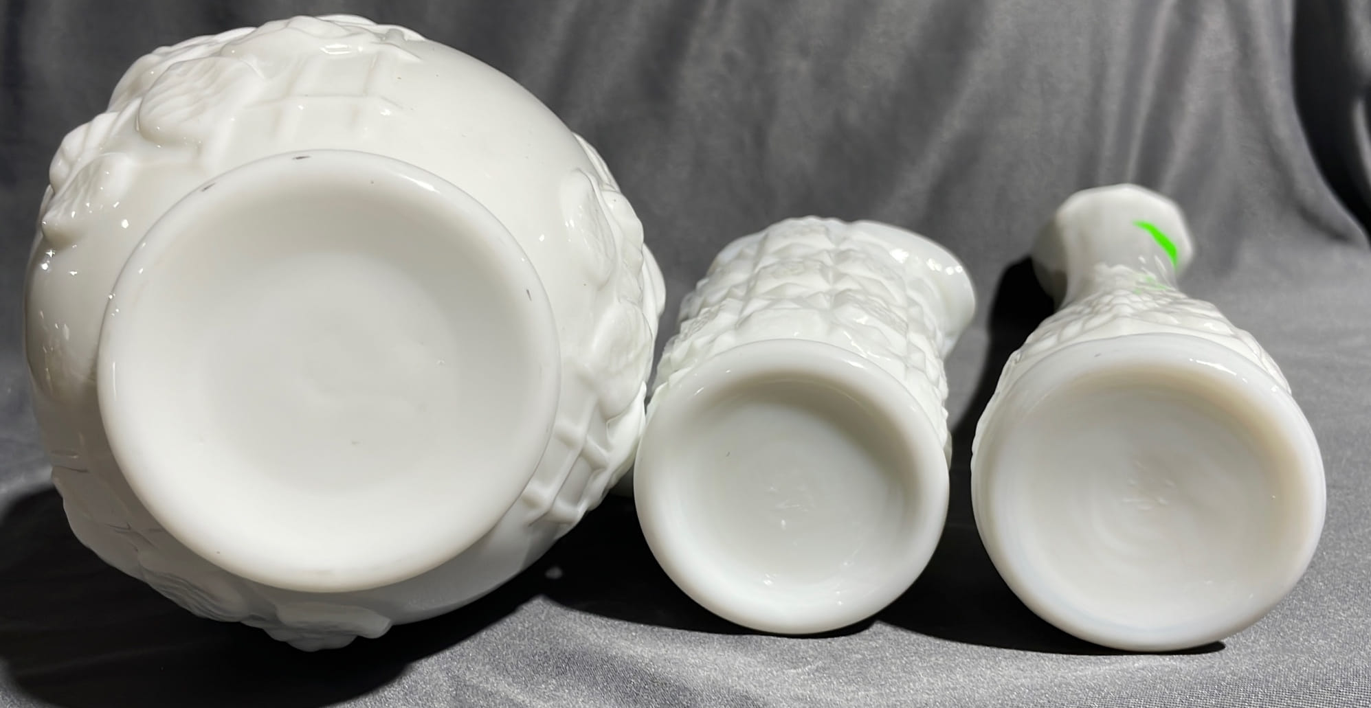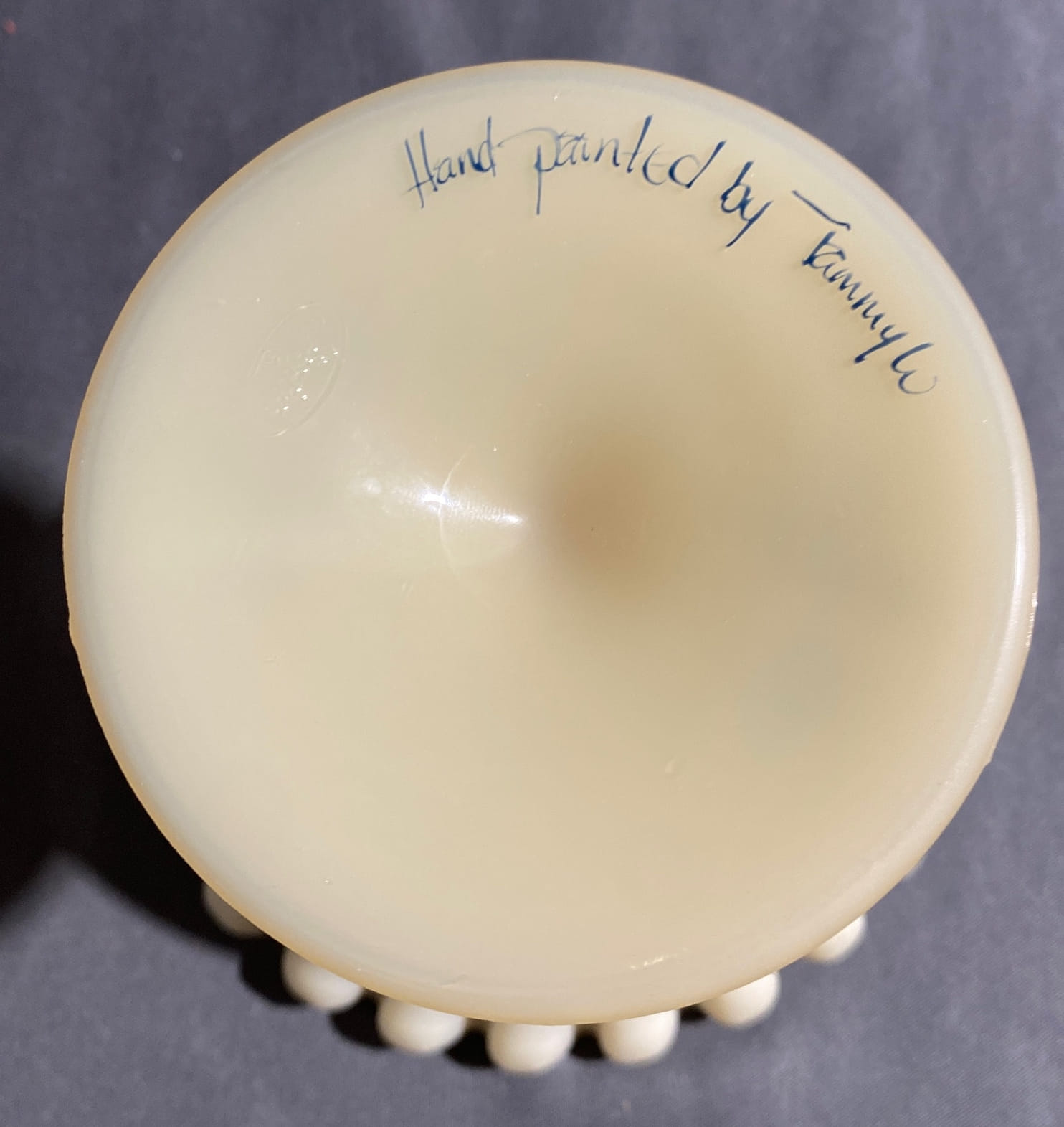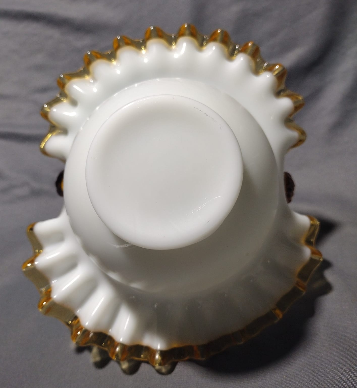 1207 Hobnail ruffle milk glass vase 6"x6", milk glass pedestal dish 6"