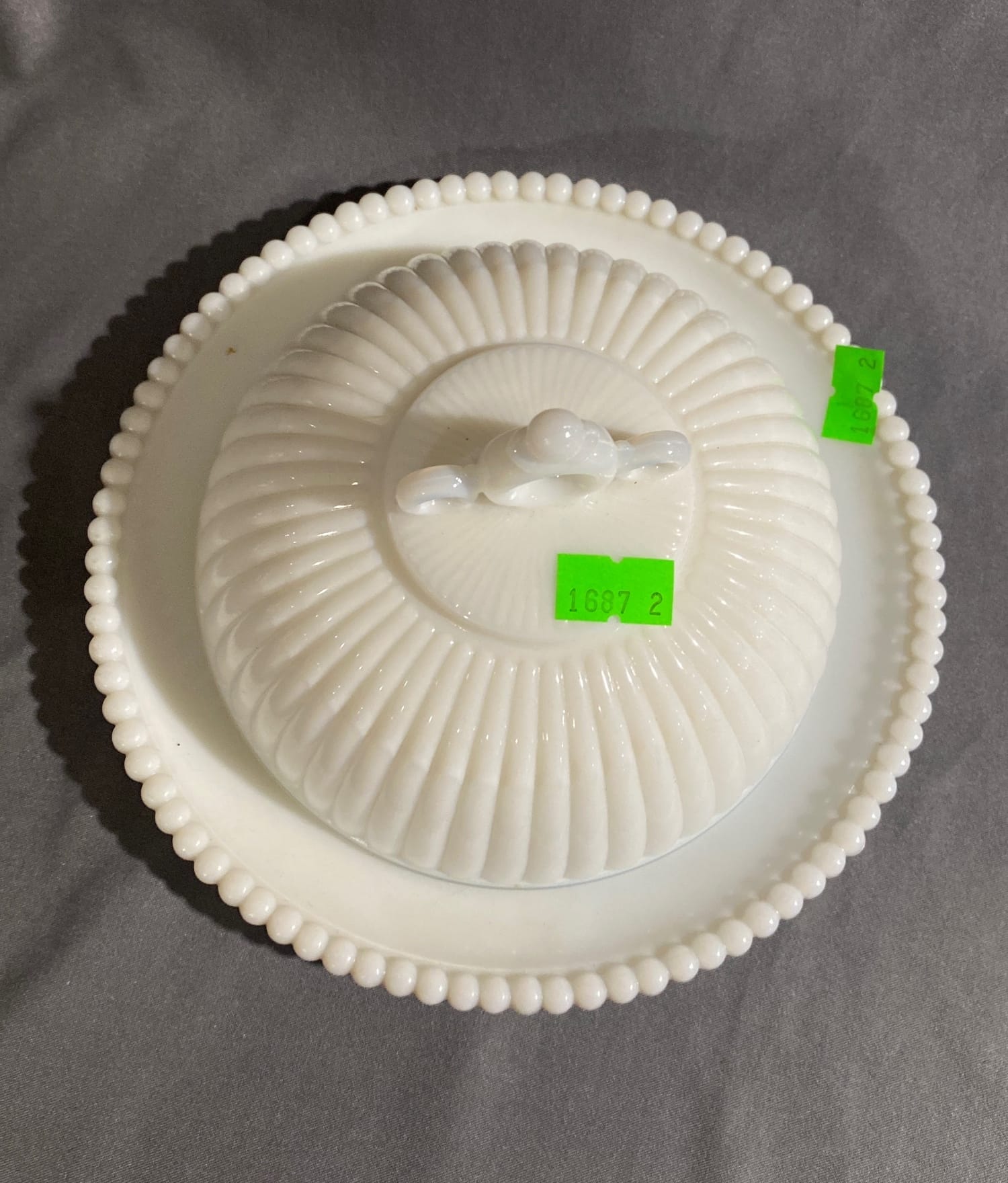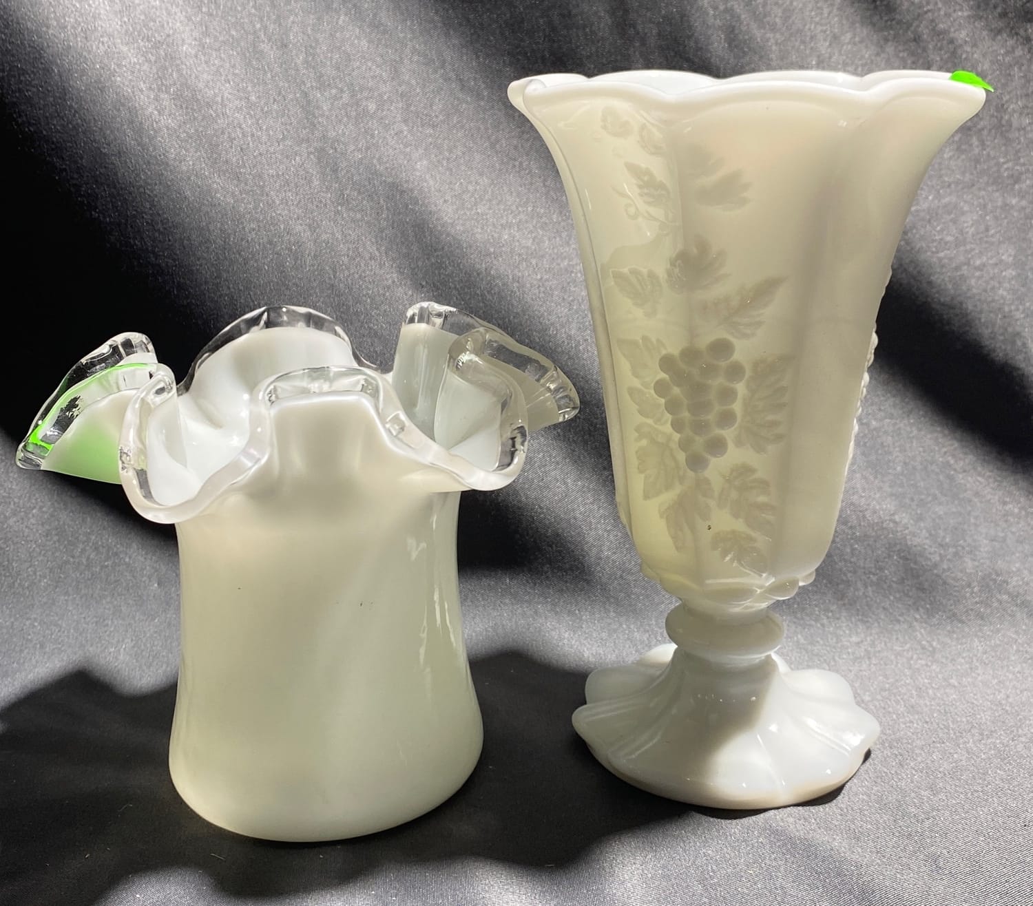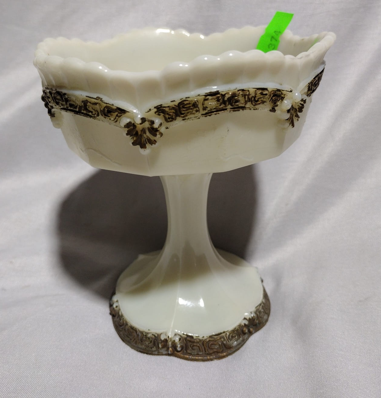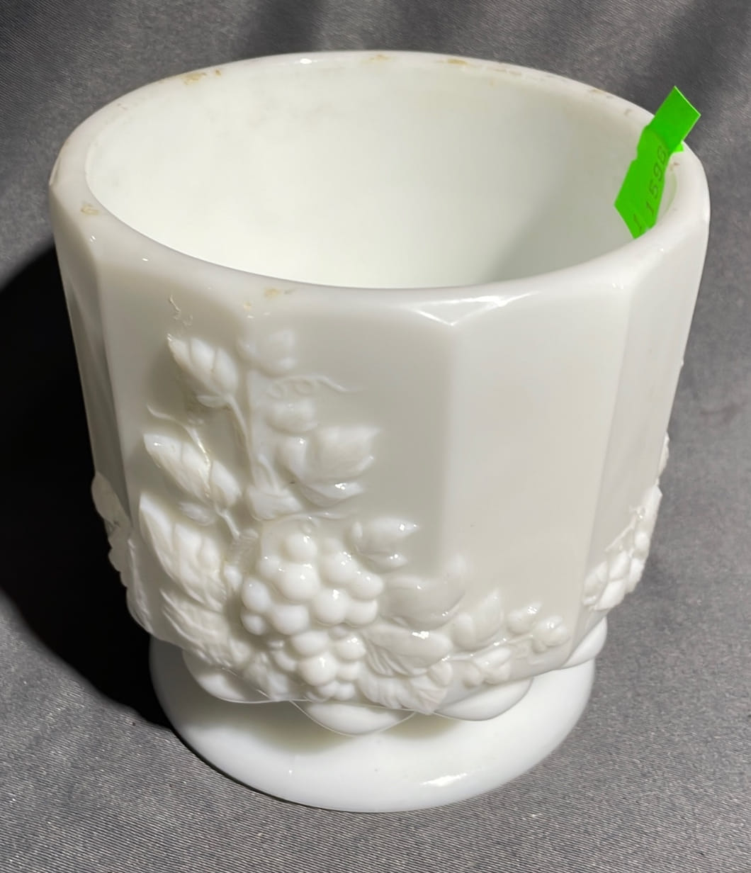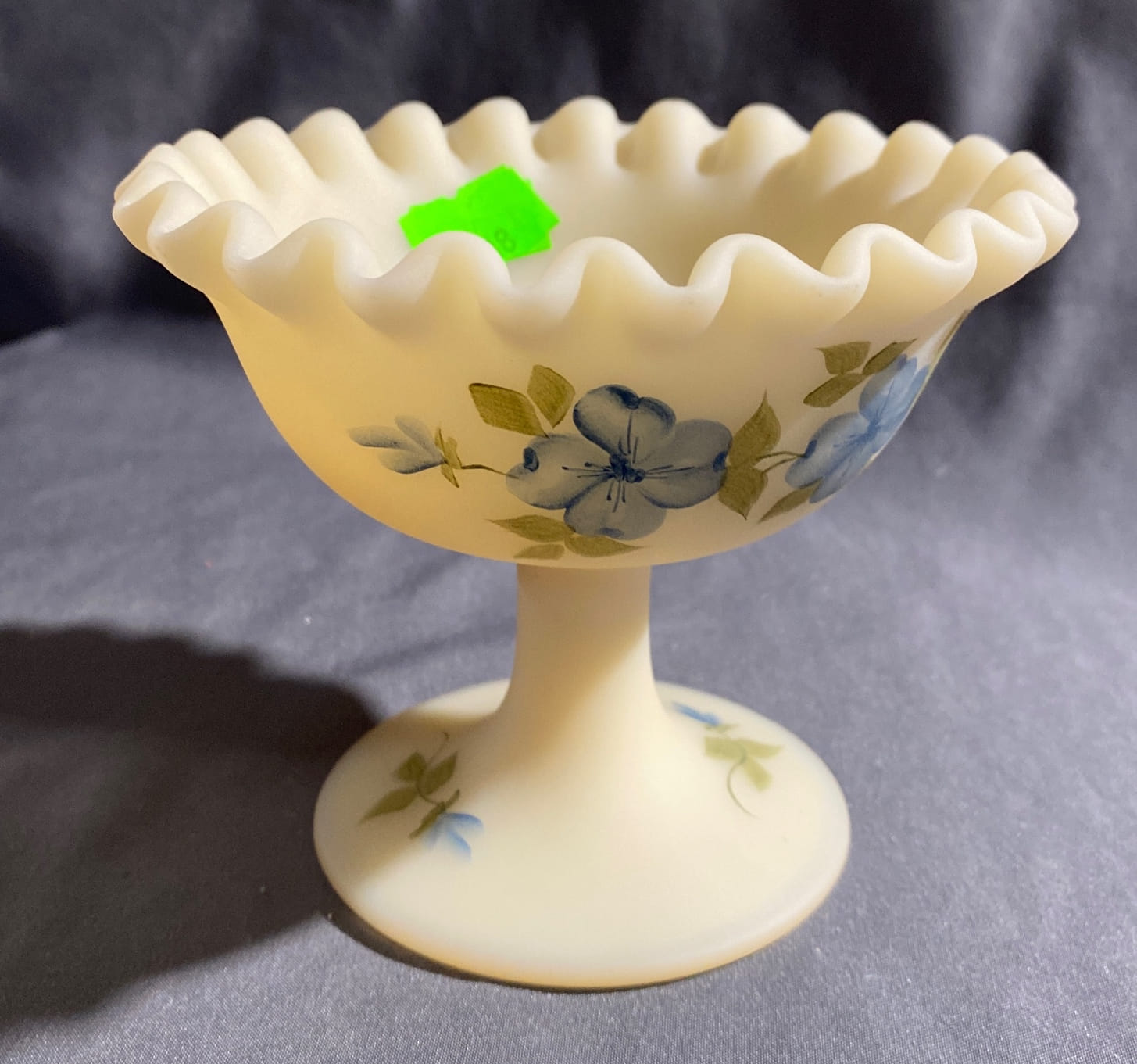 1207 Hobnail ruffle milk glass vase 6"x6", milk glass pedestal dish 6"