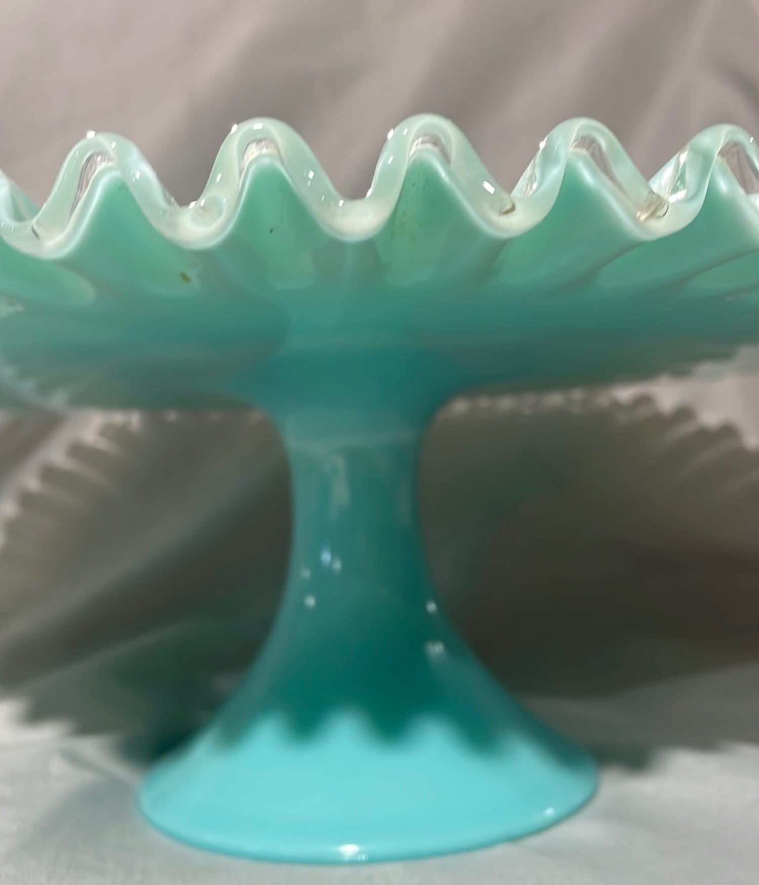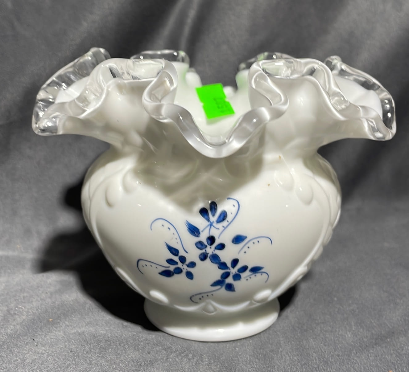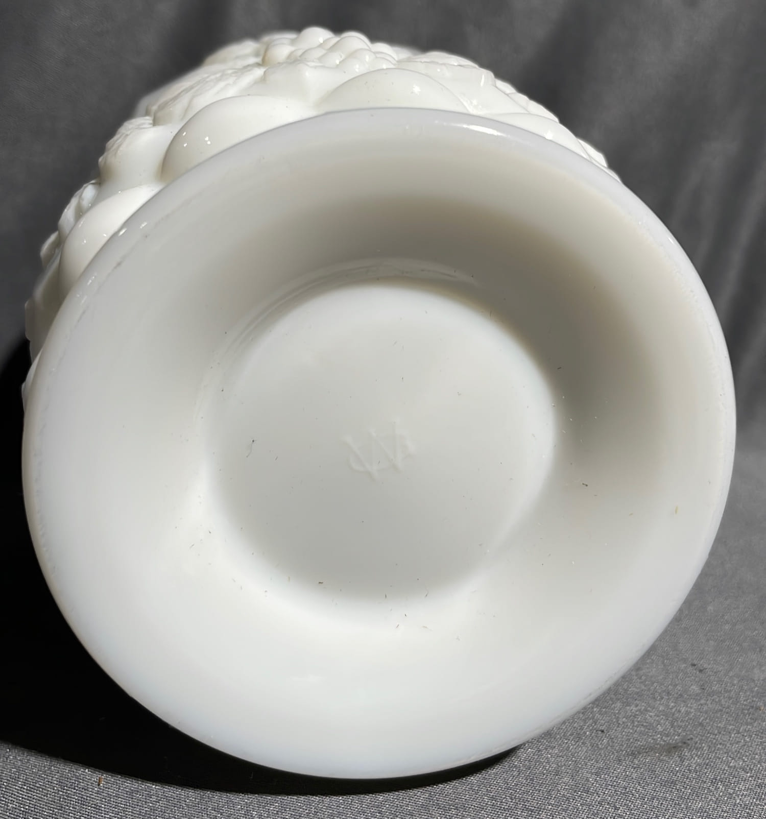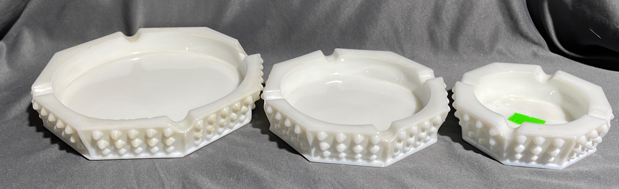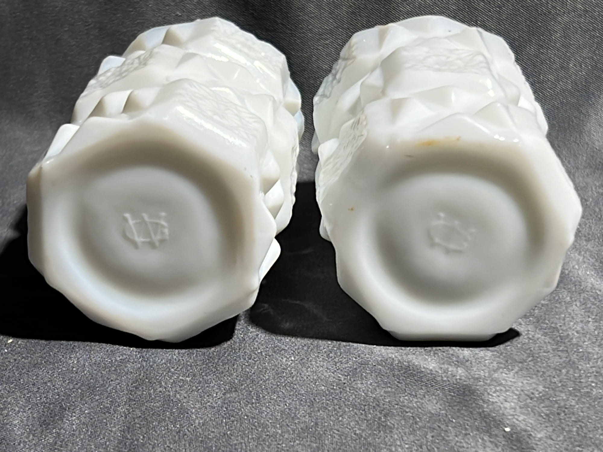 1207 Hobnail ruffle milk glass vase 6"x6", milk glass pedestal dish 6"