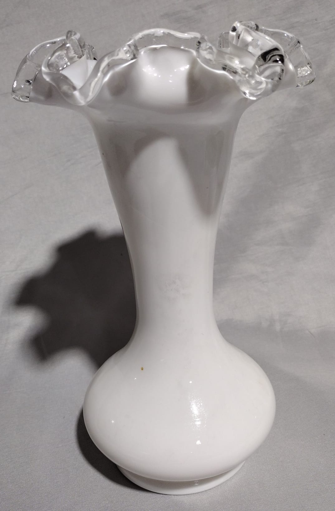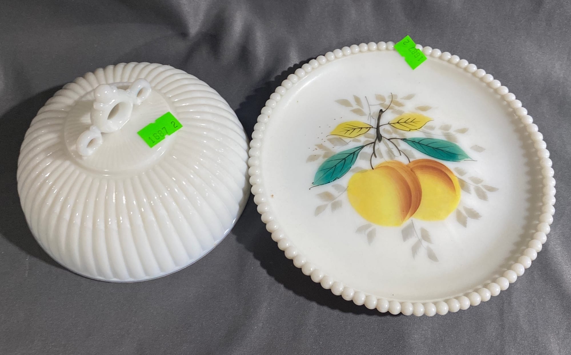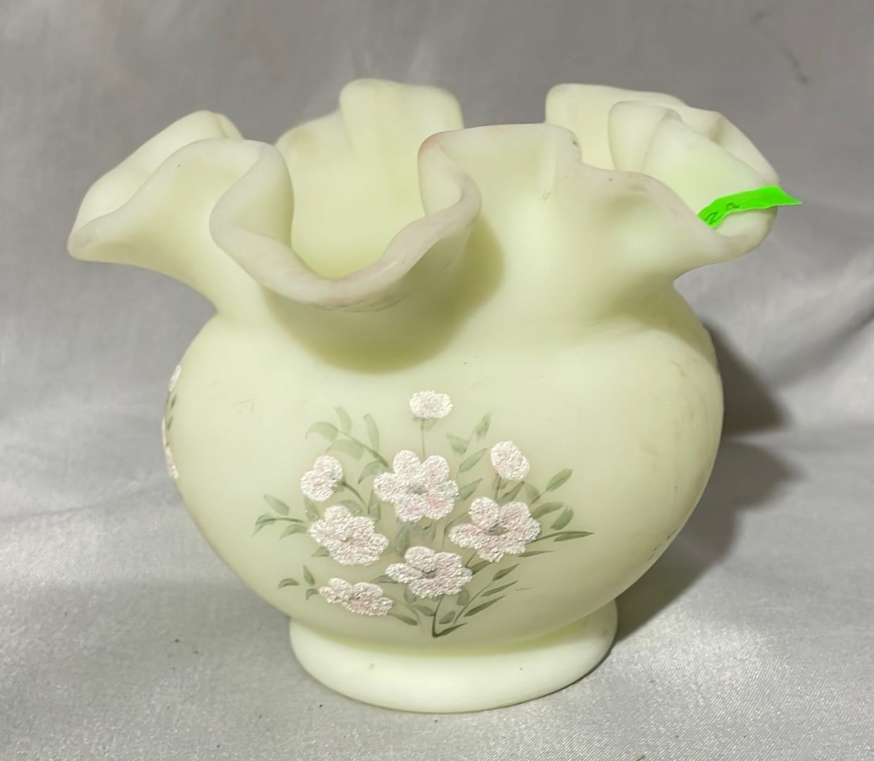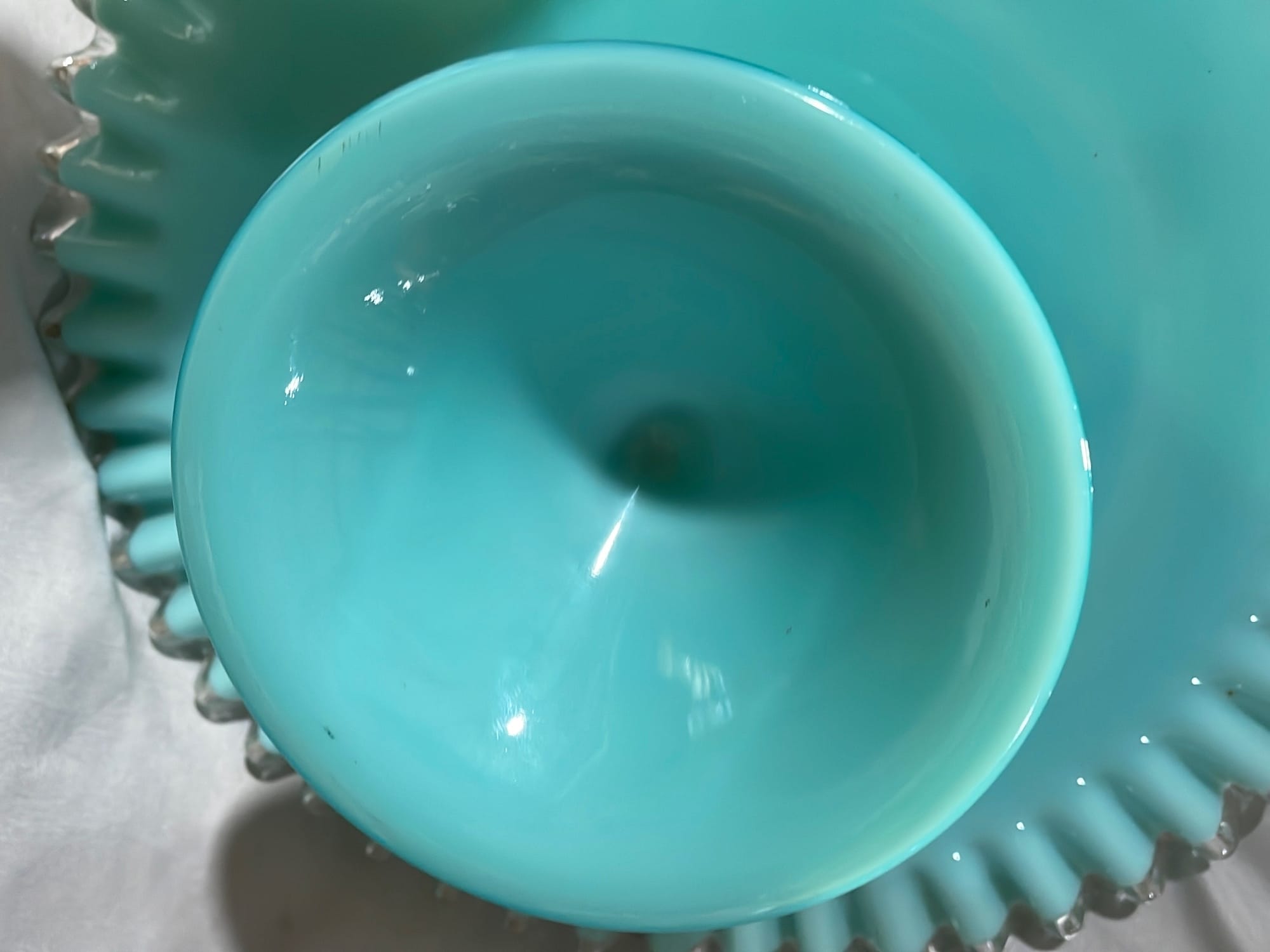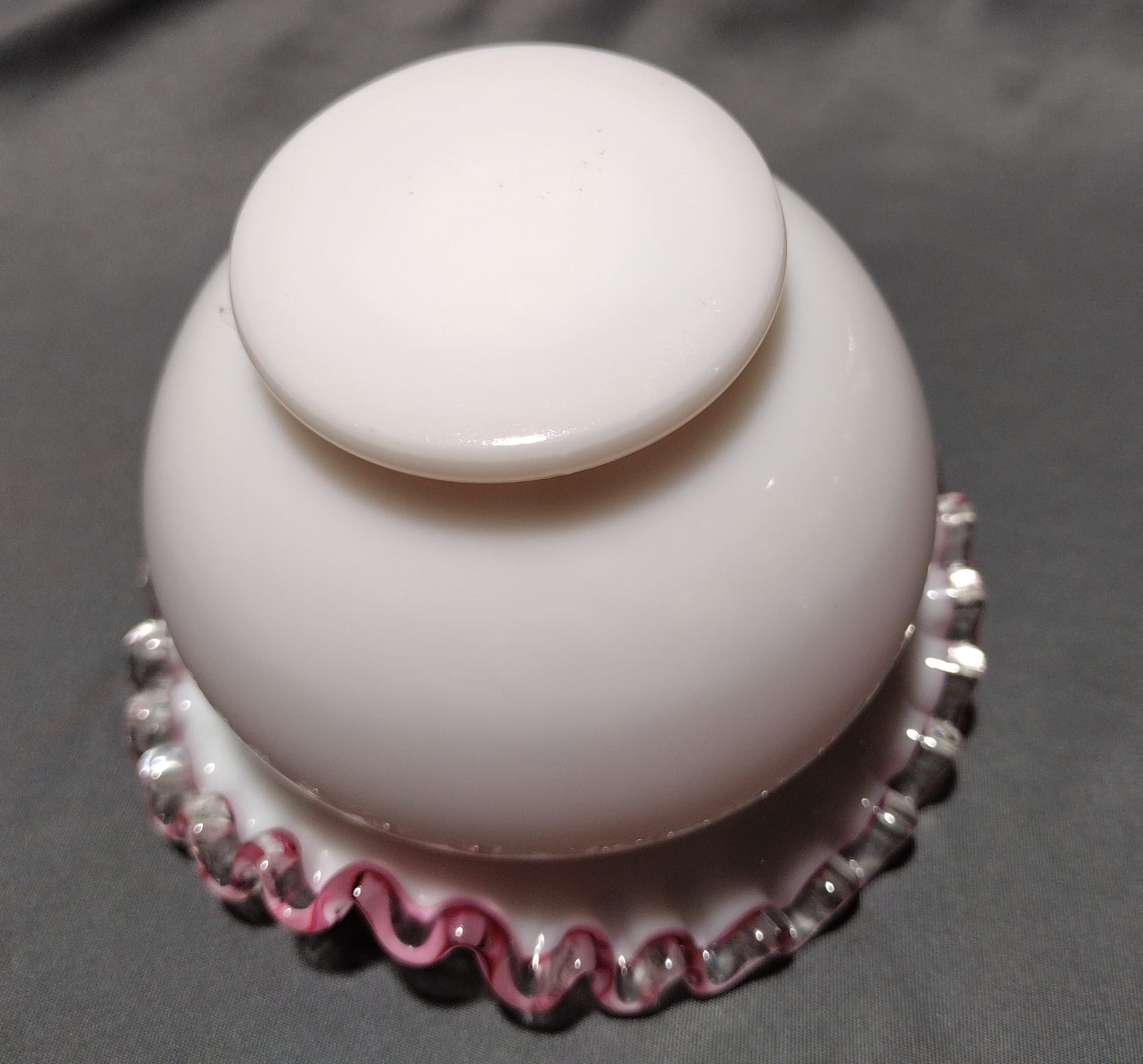 1207 Hobnail ruffle milk glass vase 6"x6", milk glass pedestal dish 6"