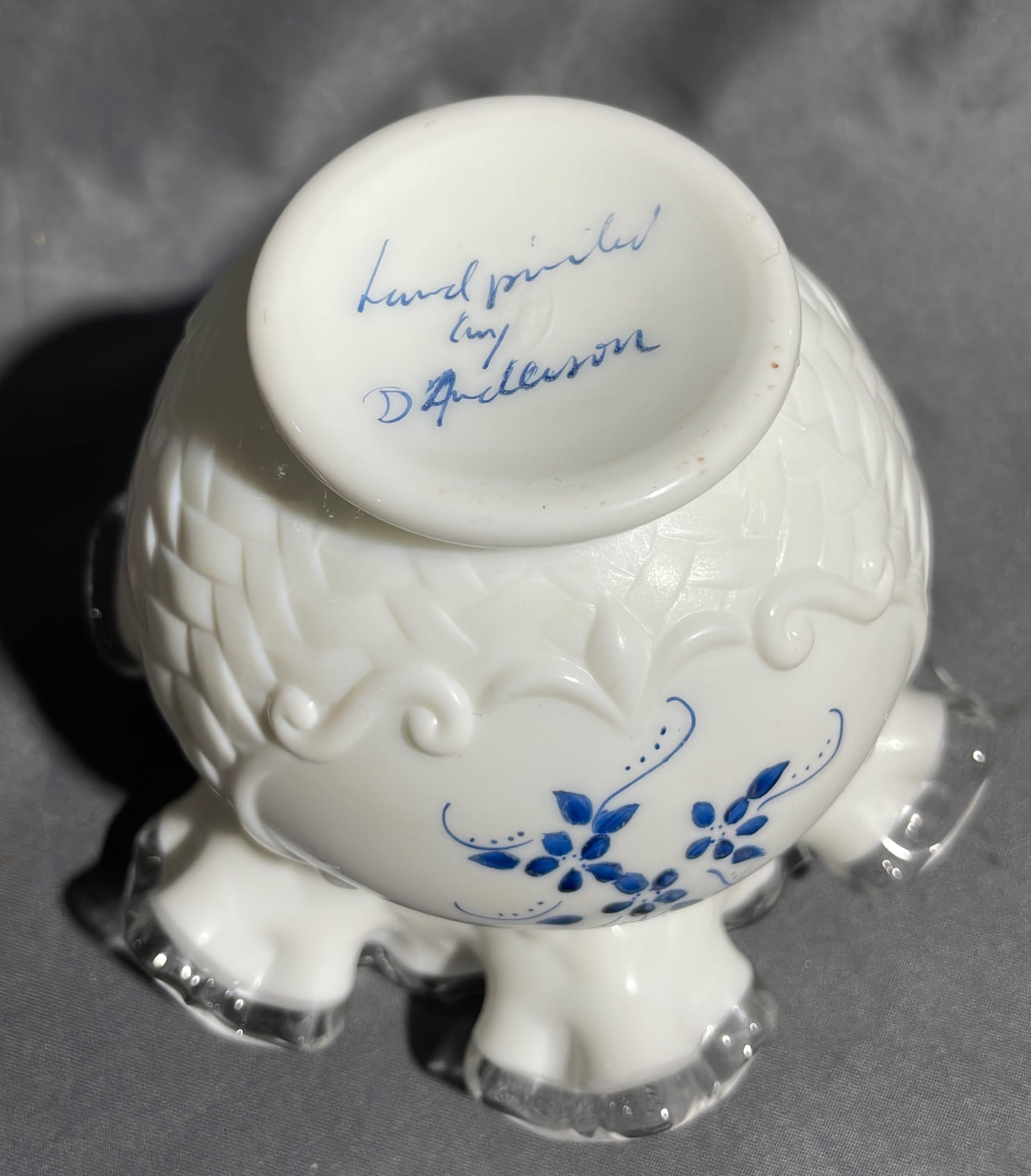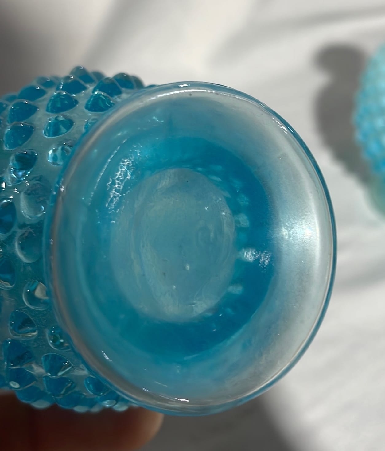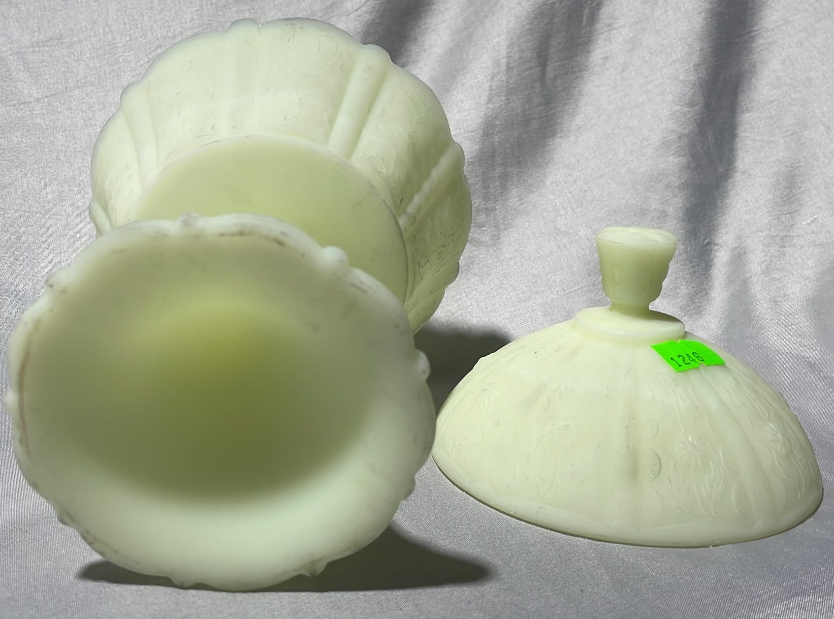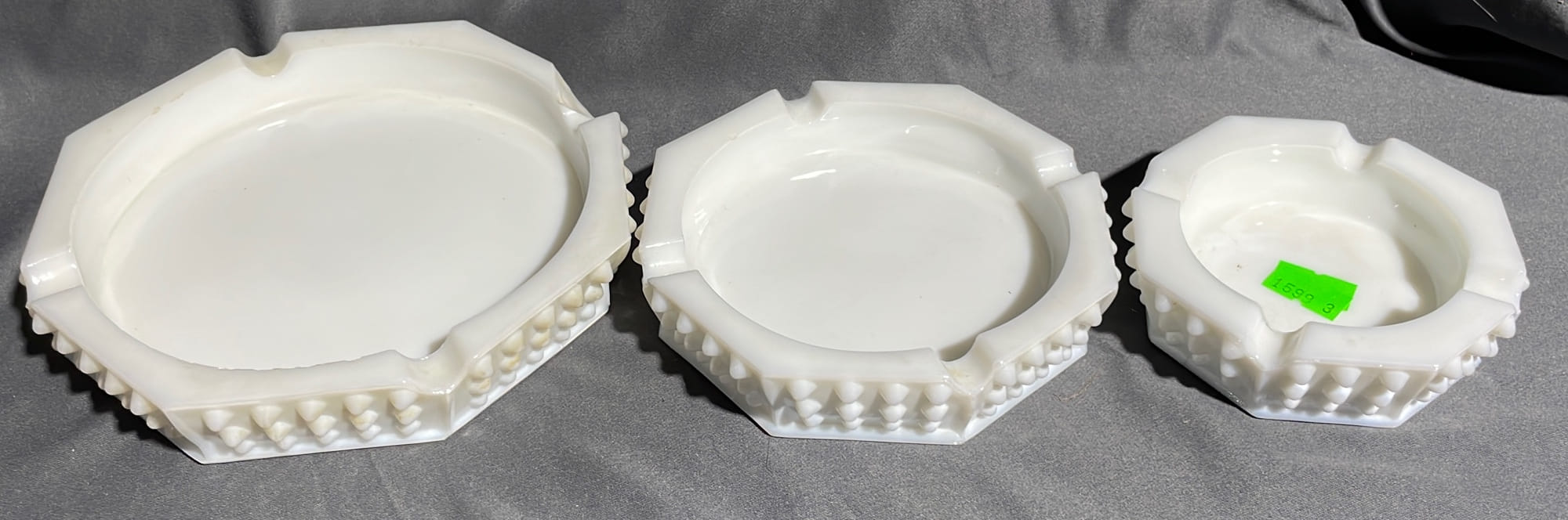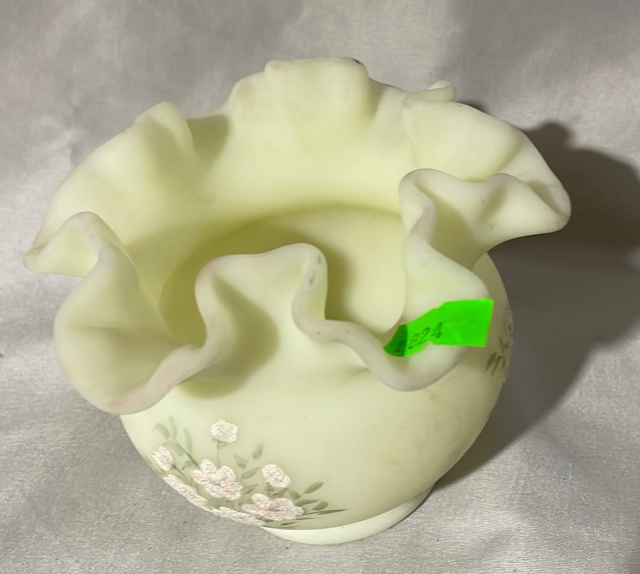 1207 Hobnail ruffle milk glass vase 6"x6", milk glass pedestal dish 6"