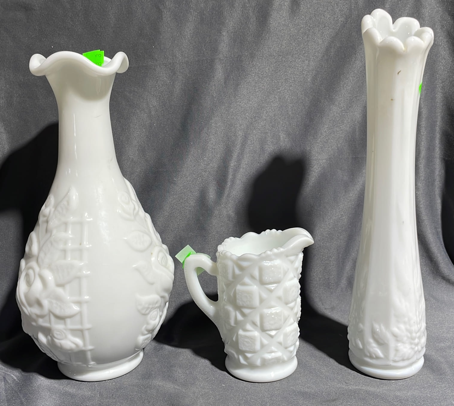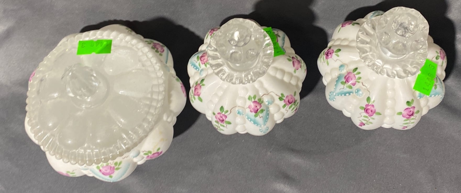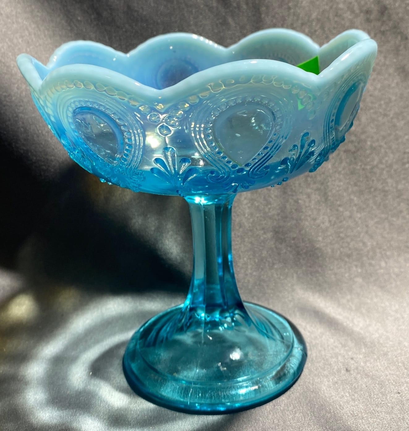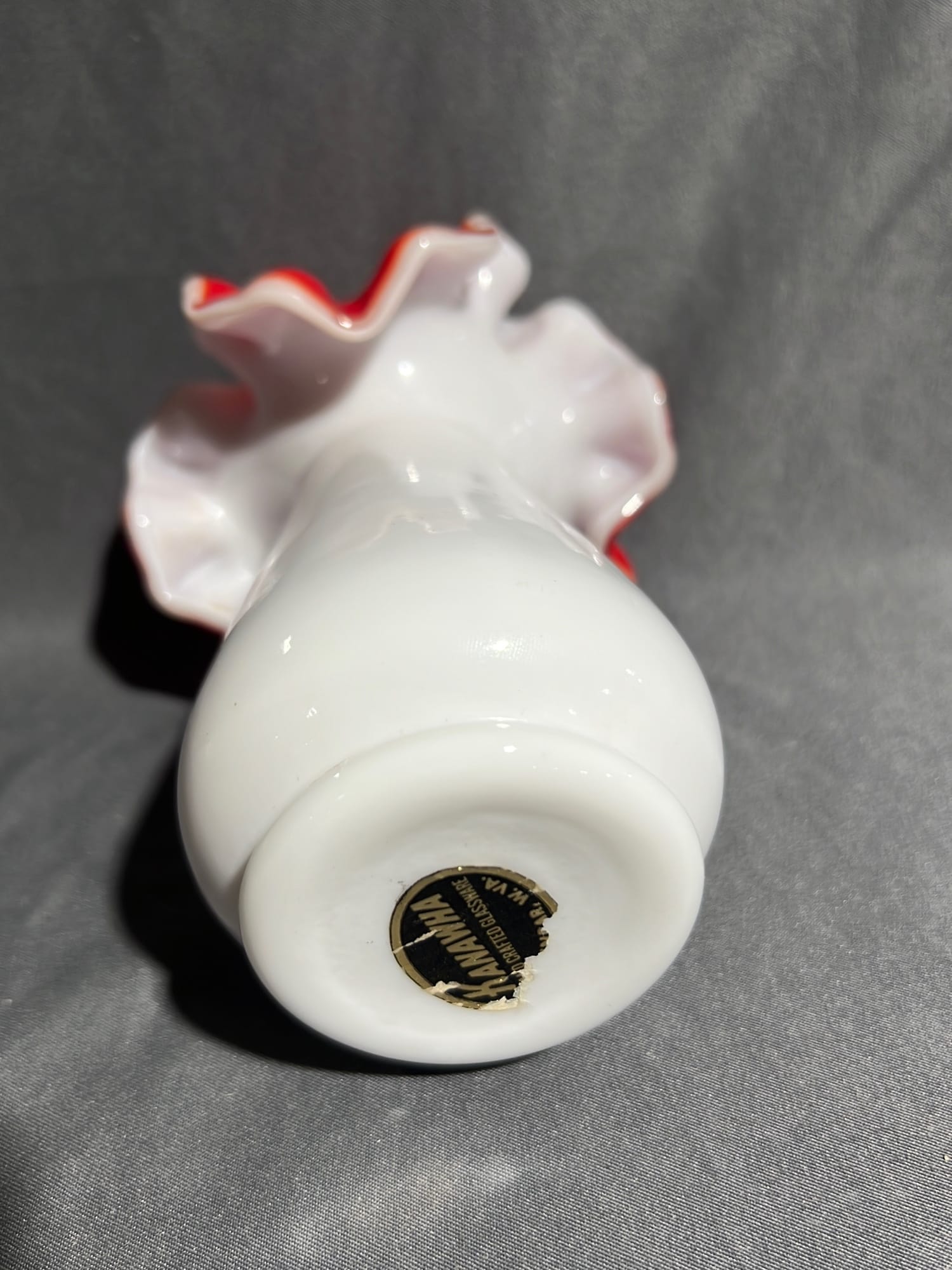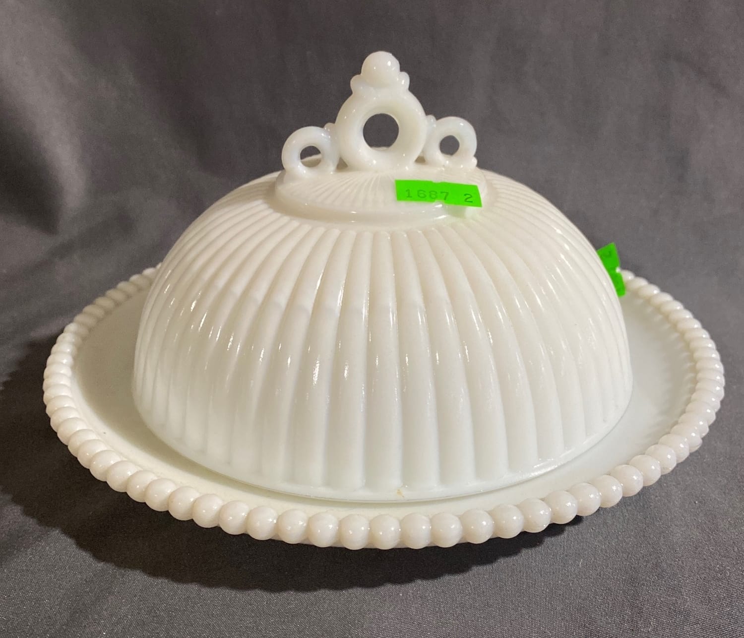 1207 Hobnail ruffle milk glass vase 6"x6", milk glass pedestal dish 6"