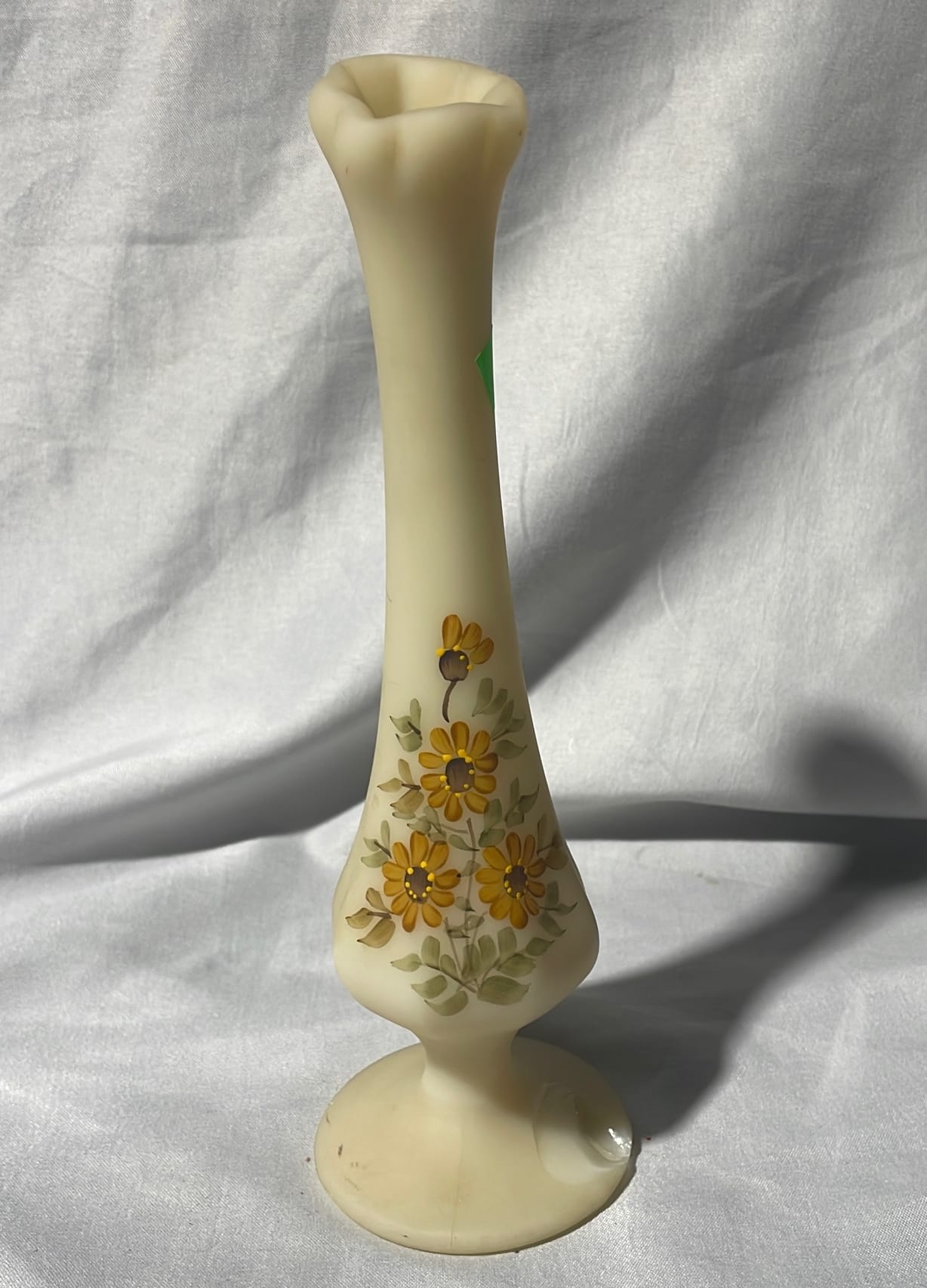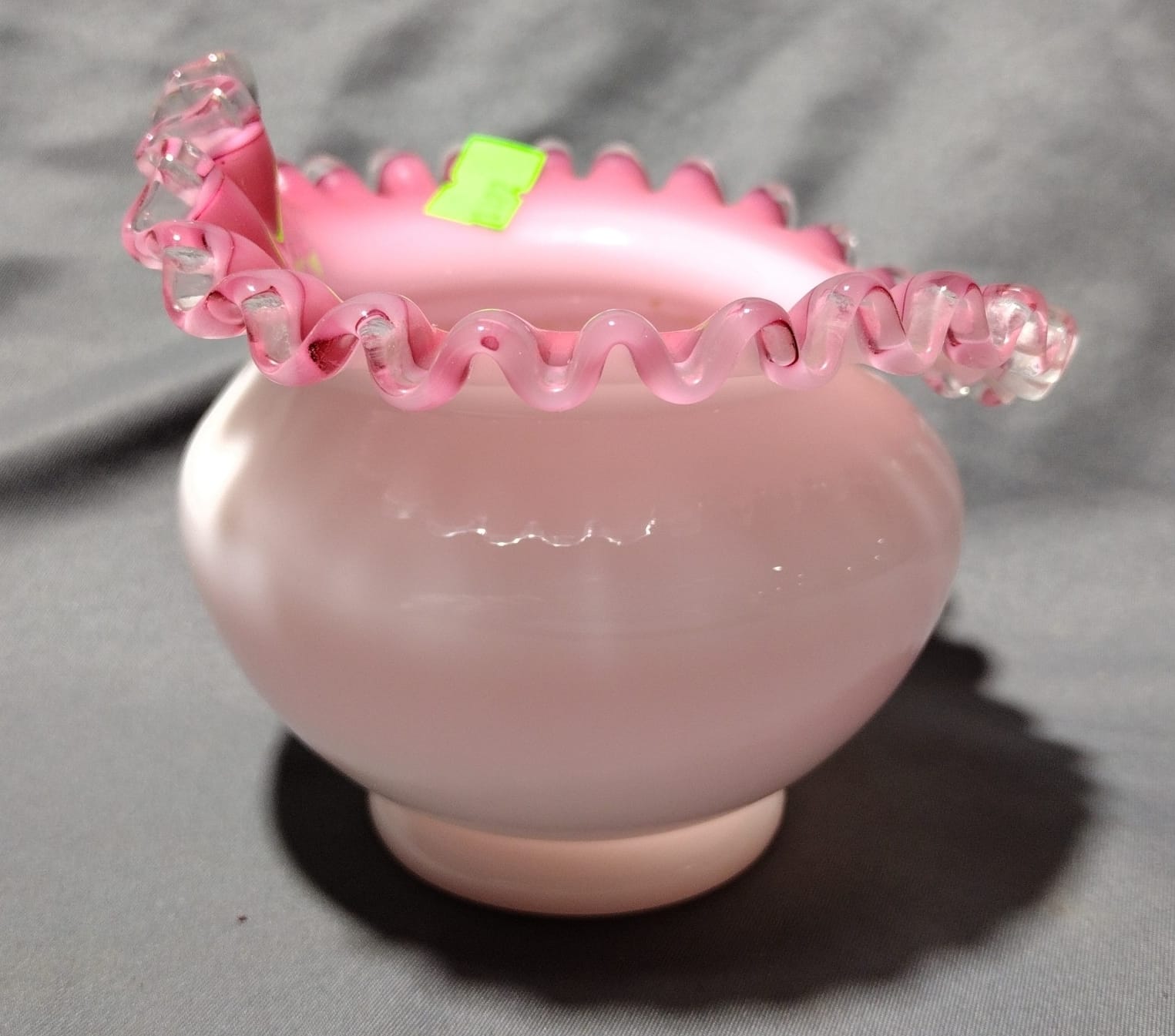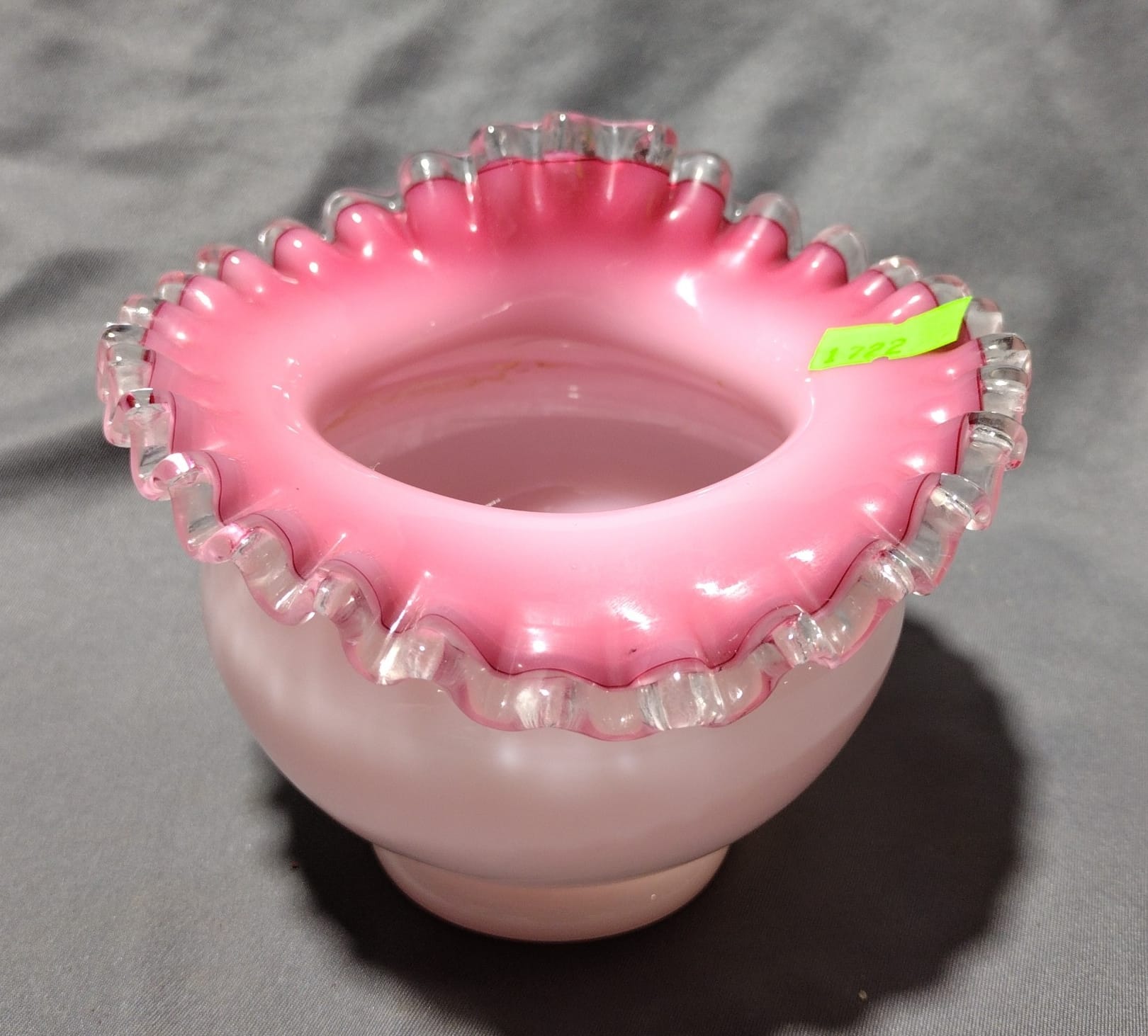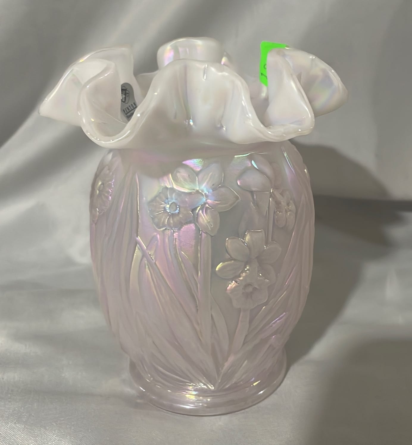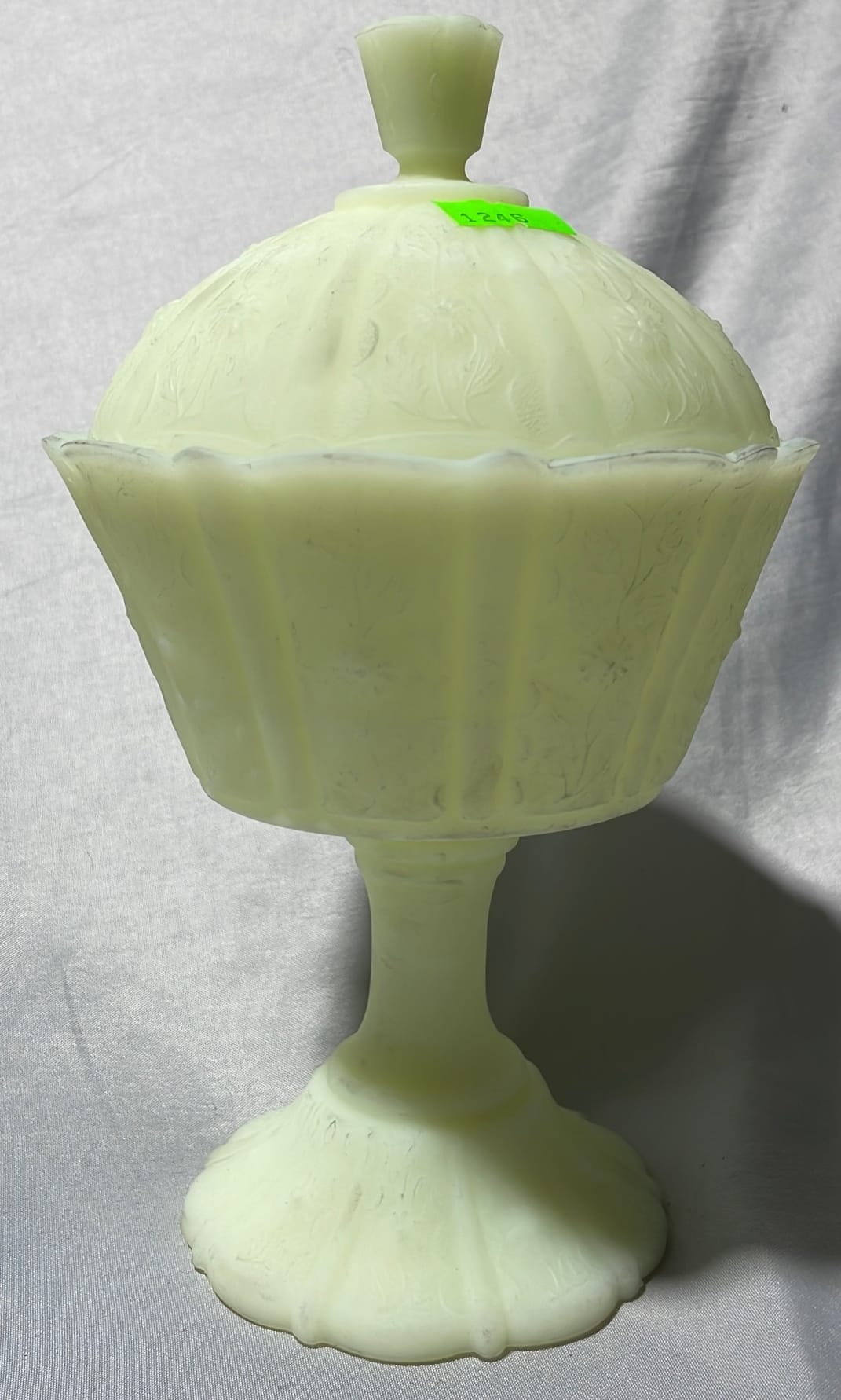 1207 Hobnail ruffle milk glass vase 6"x6", milk glass pedestal dish 6"