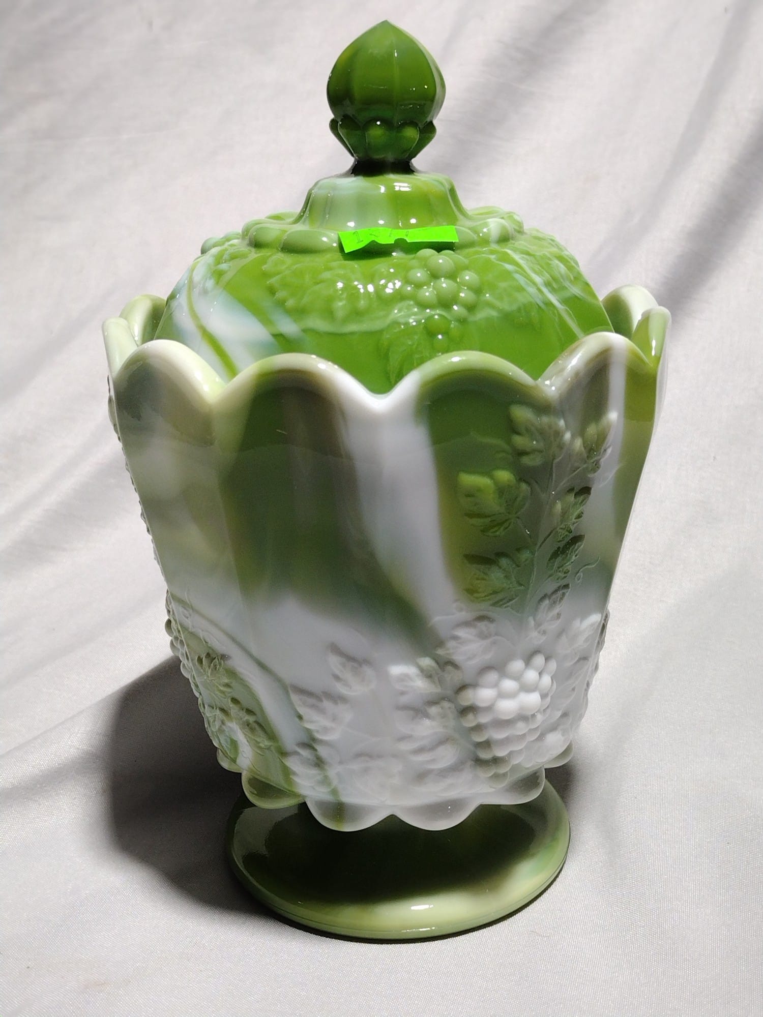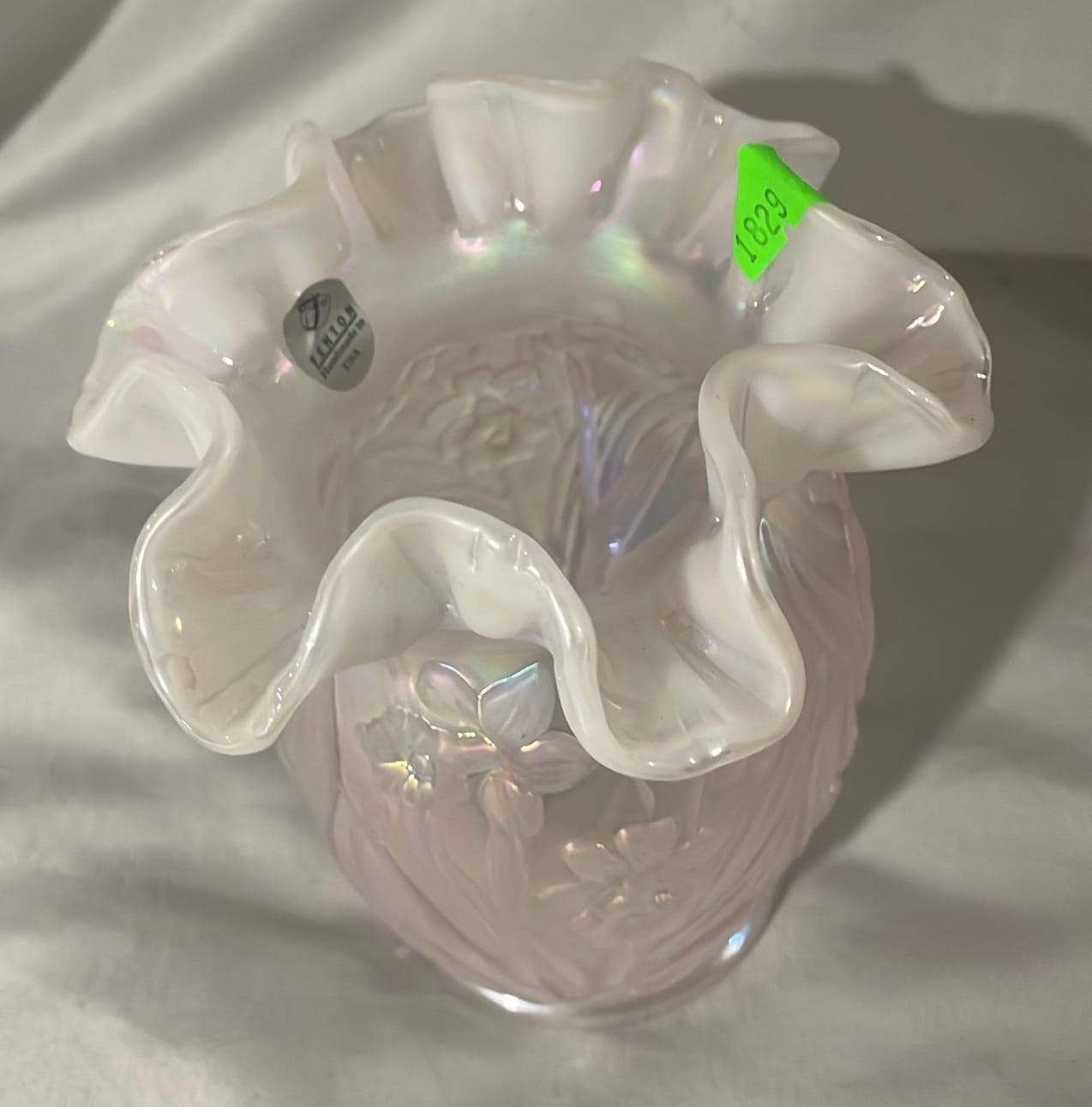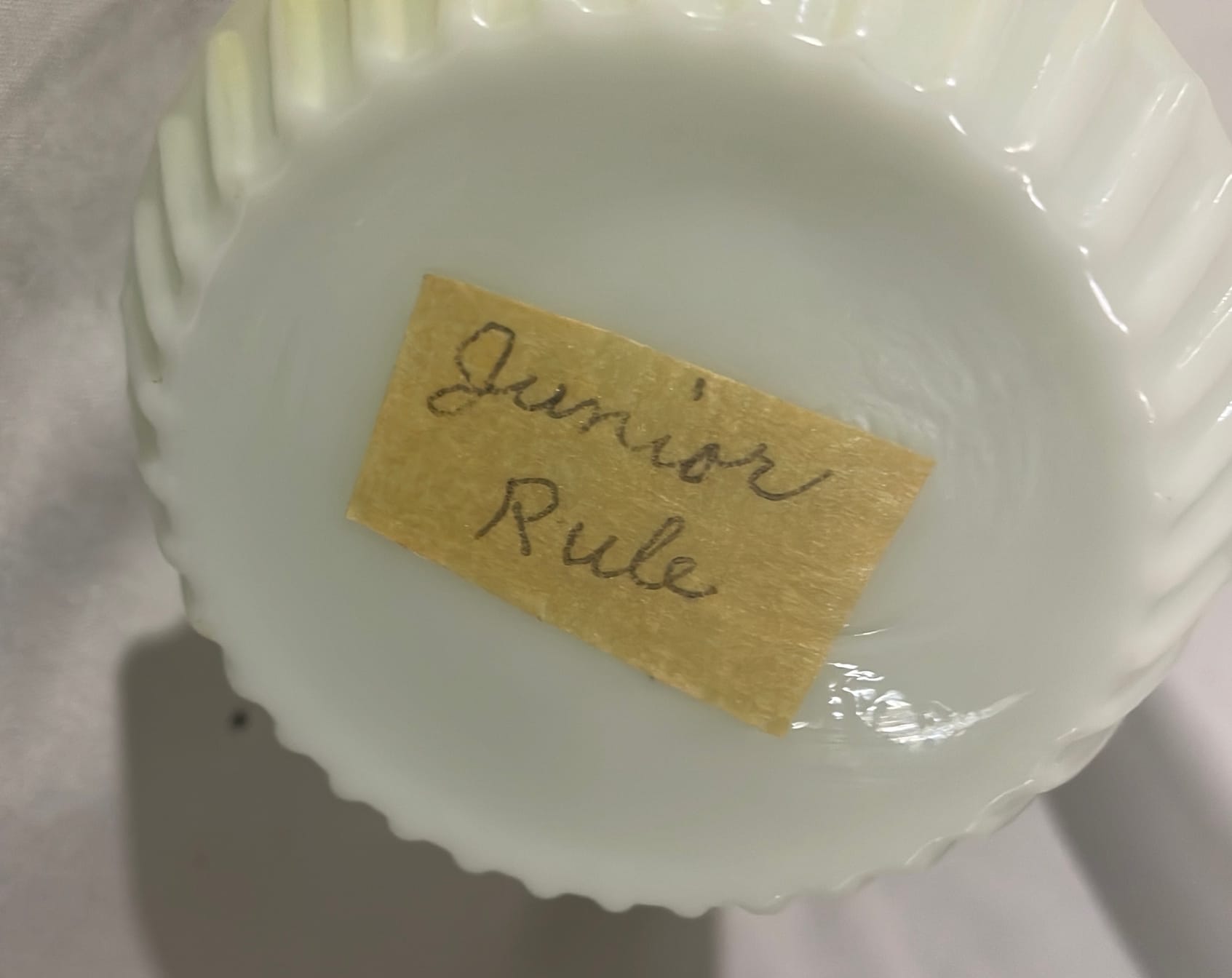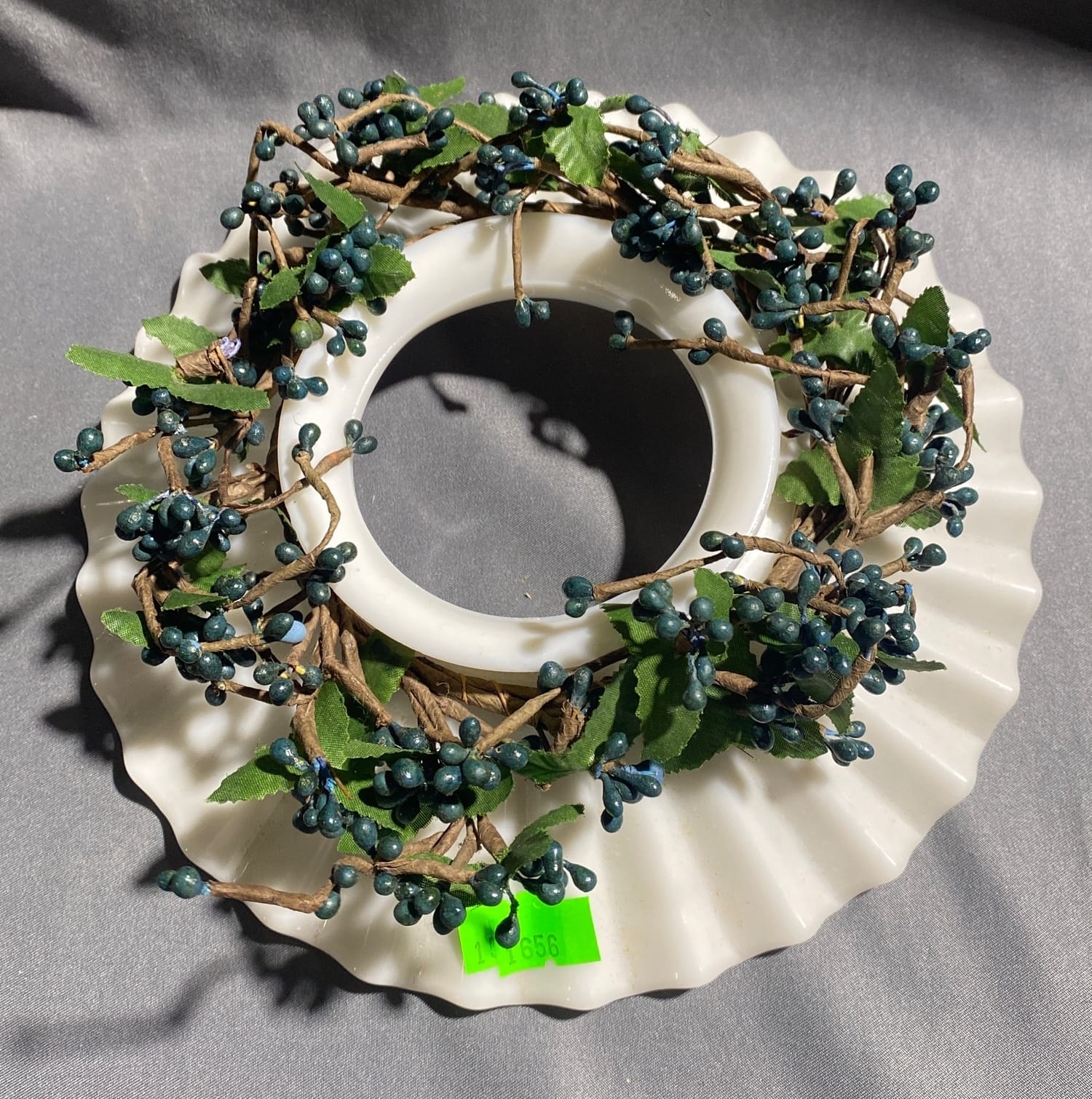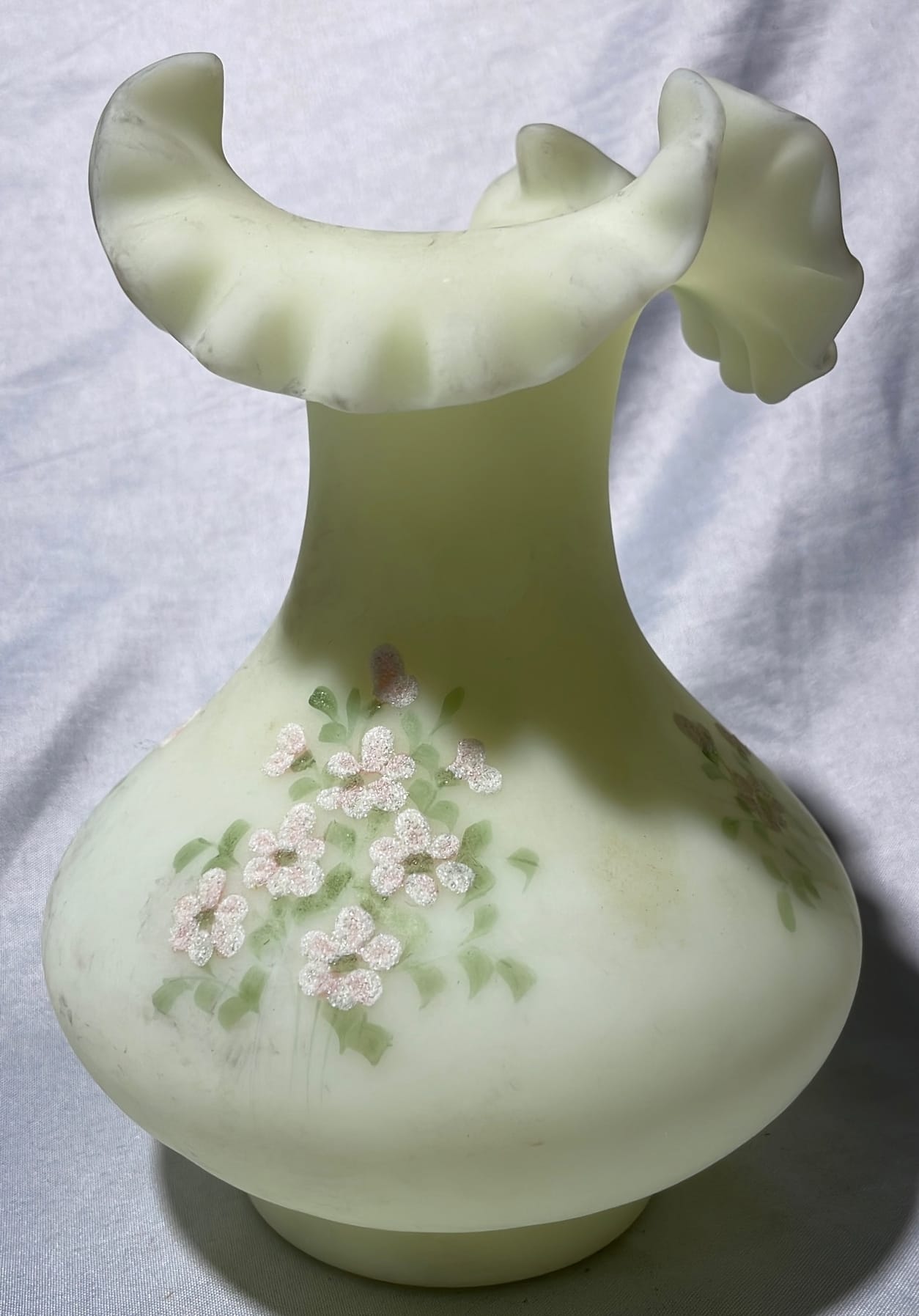 1207 Hobnail ruffle milk glass vase 6"x6", milk glass pedestal dish 6"