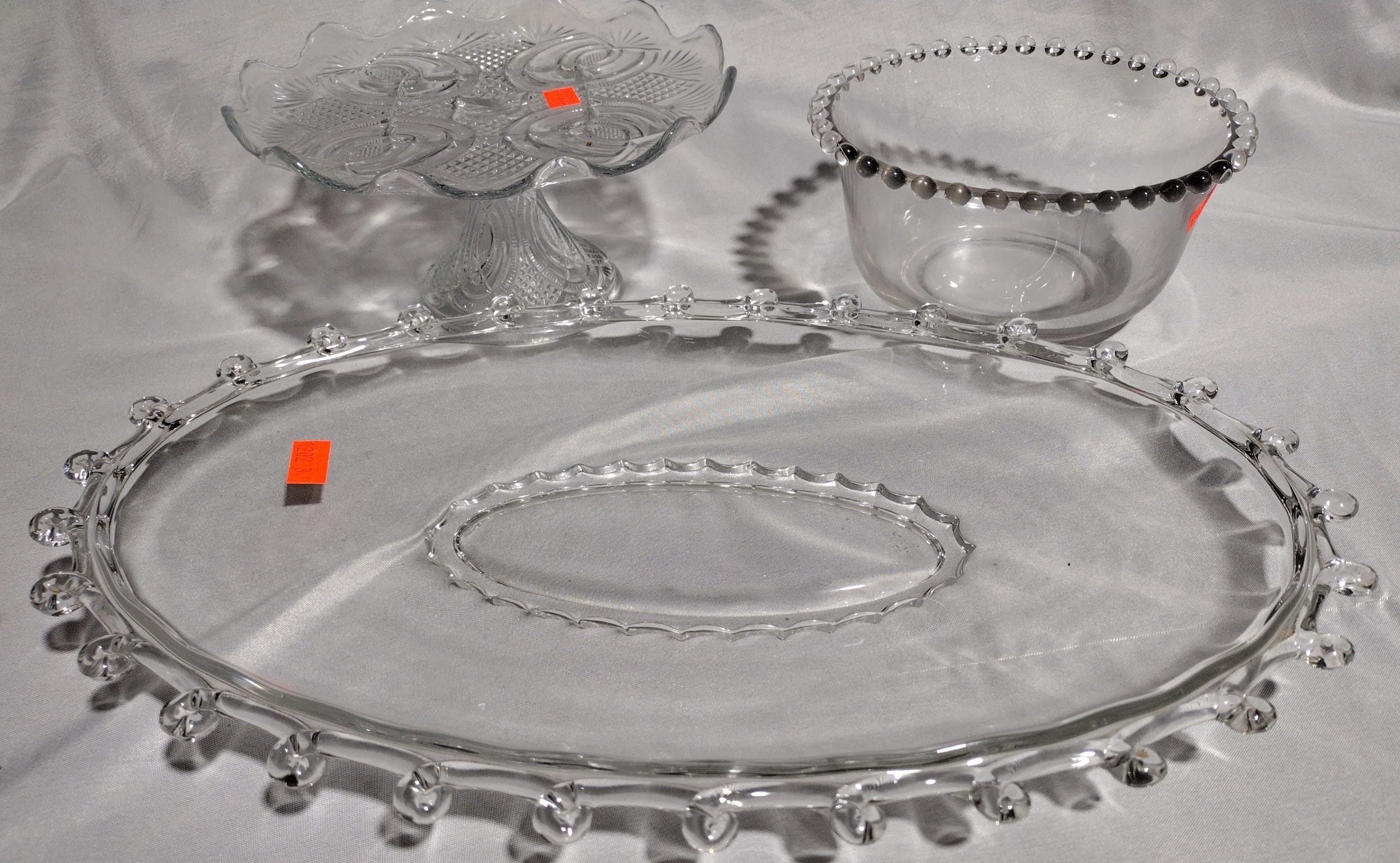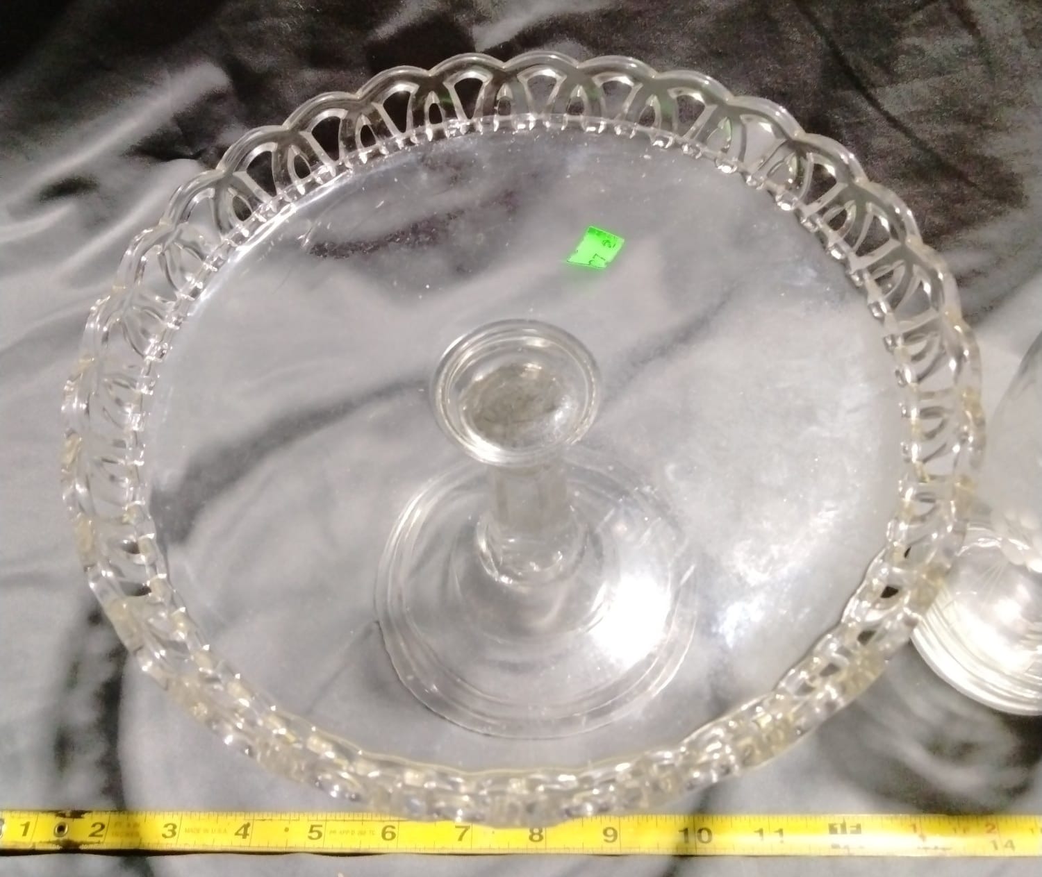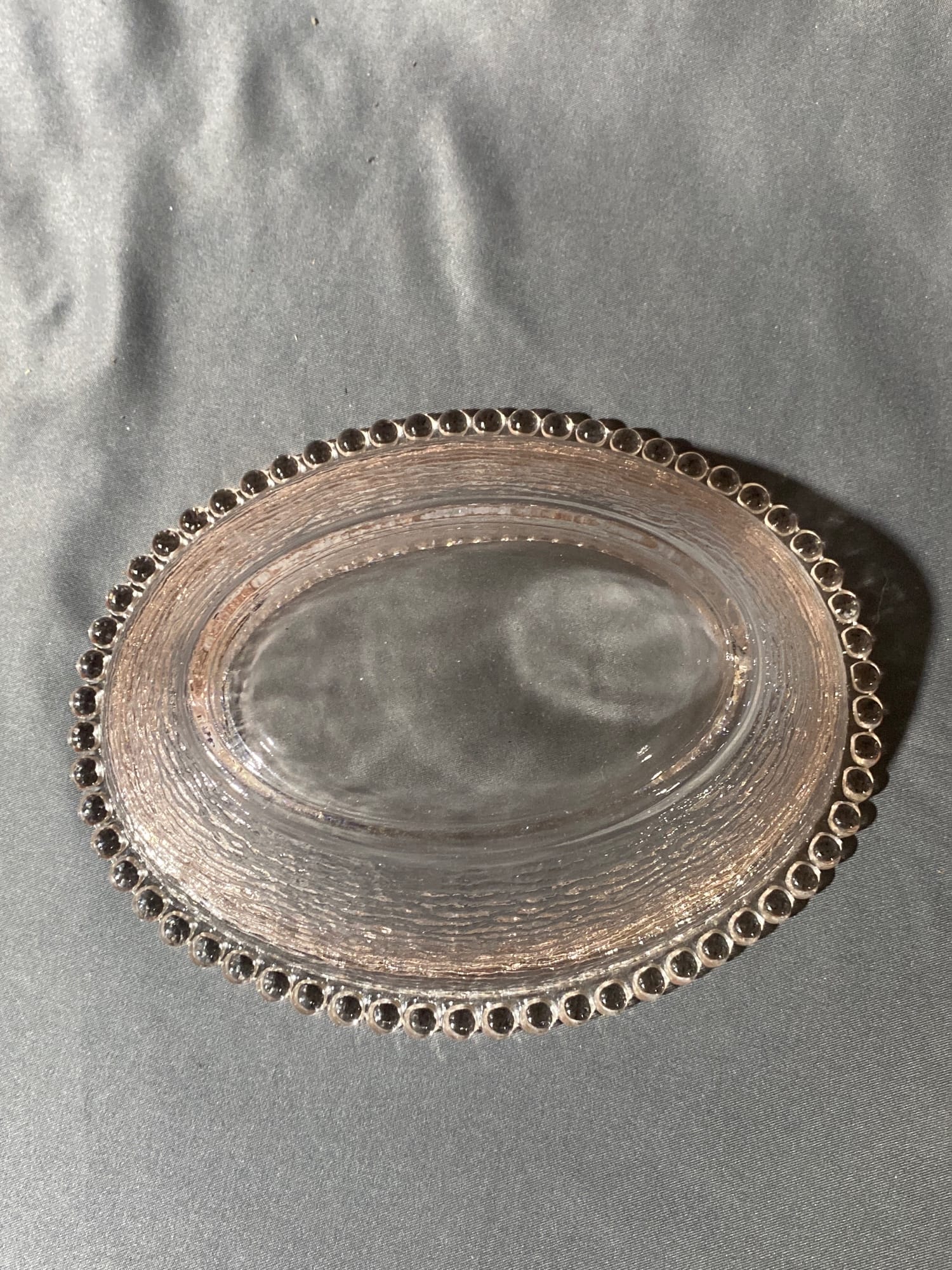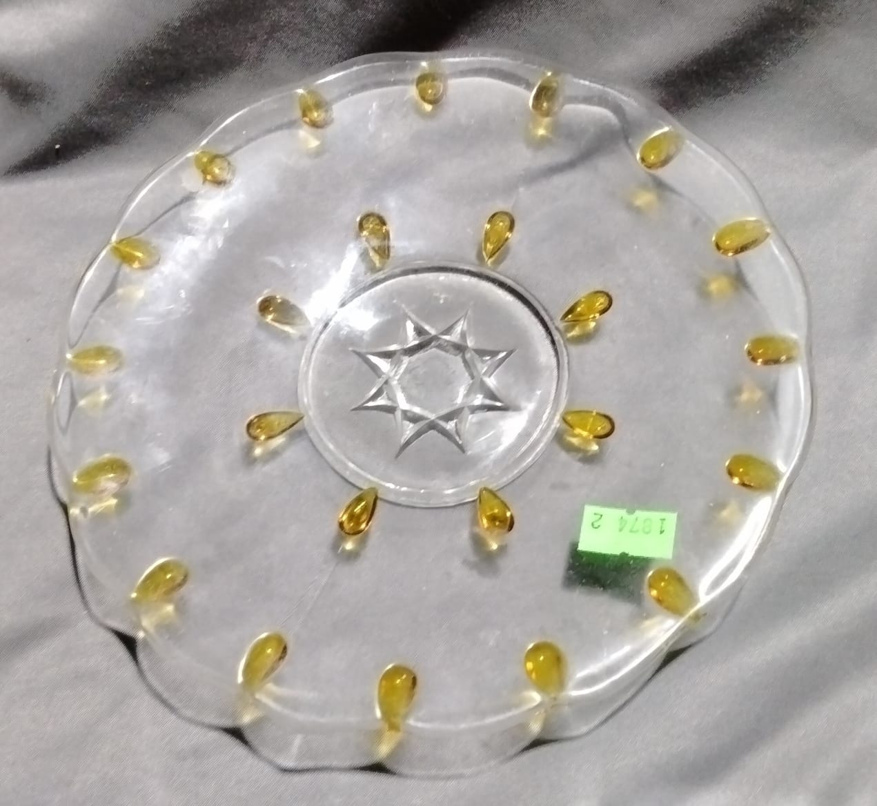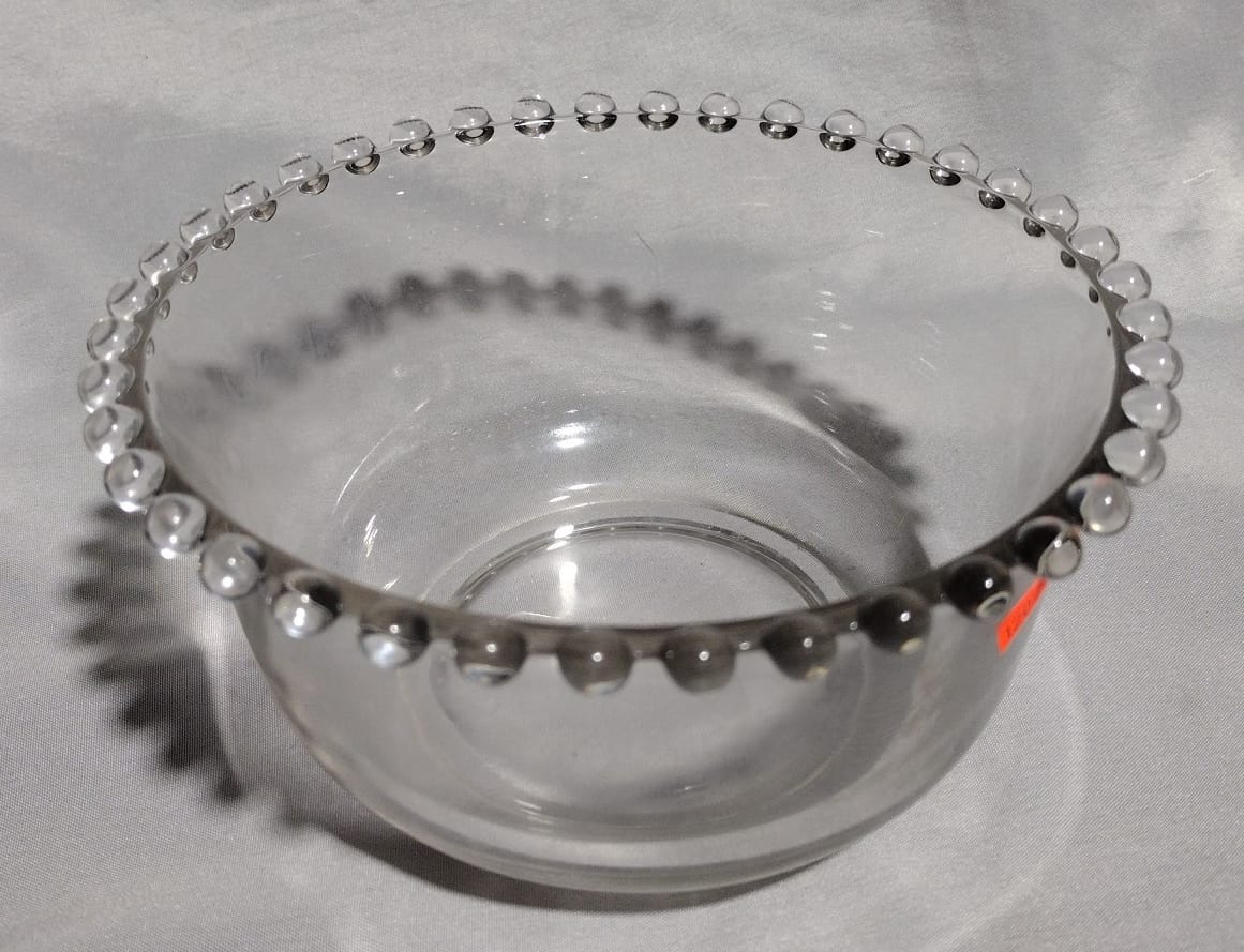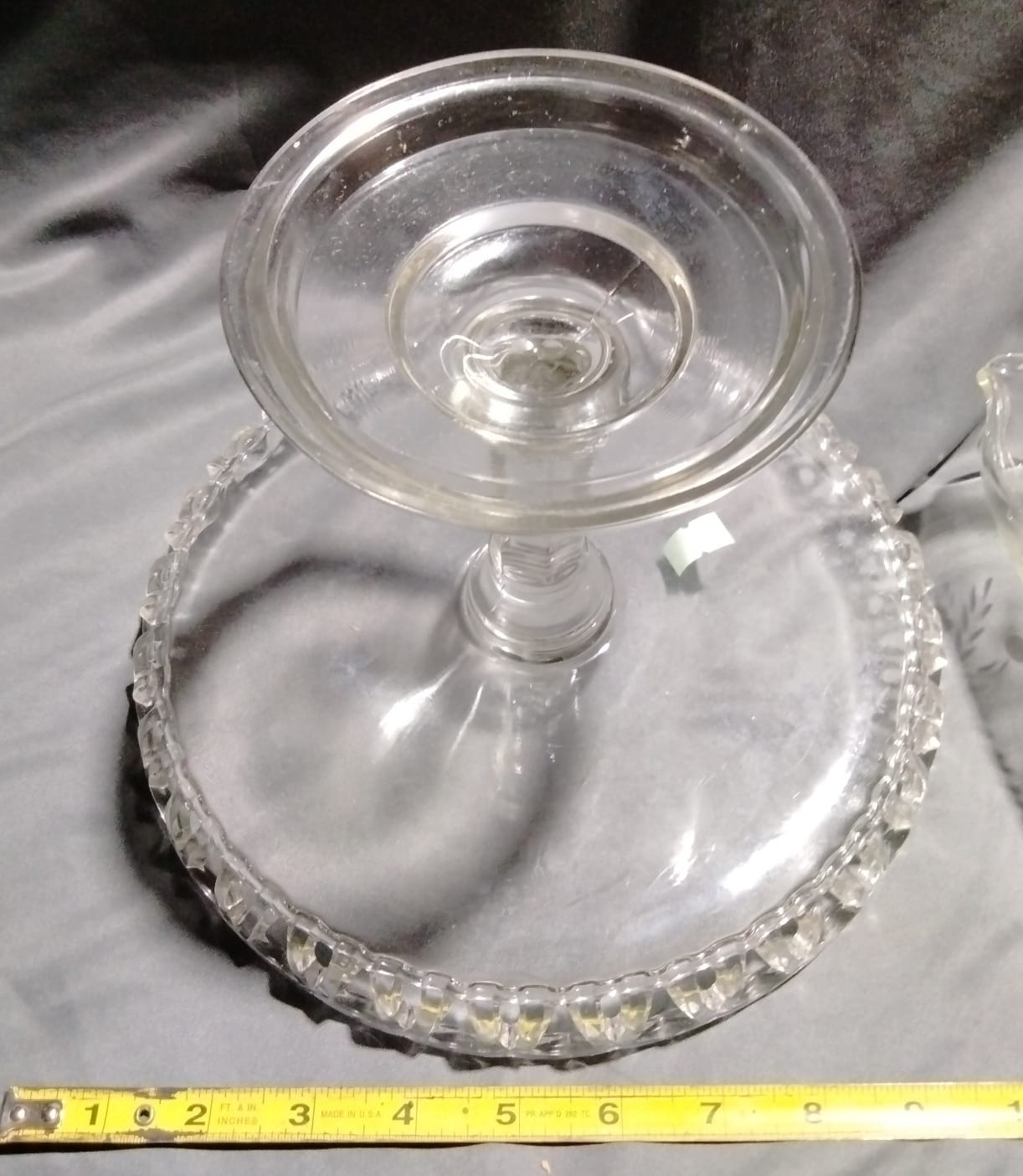 1202 Glass bubble edge bowl 3"x6", glass pedestal plate 4"x7", glass serving plate 14"