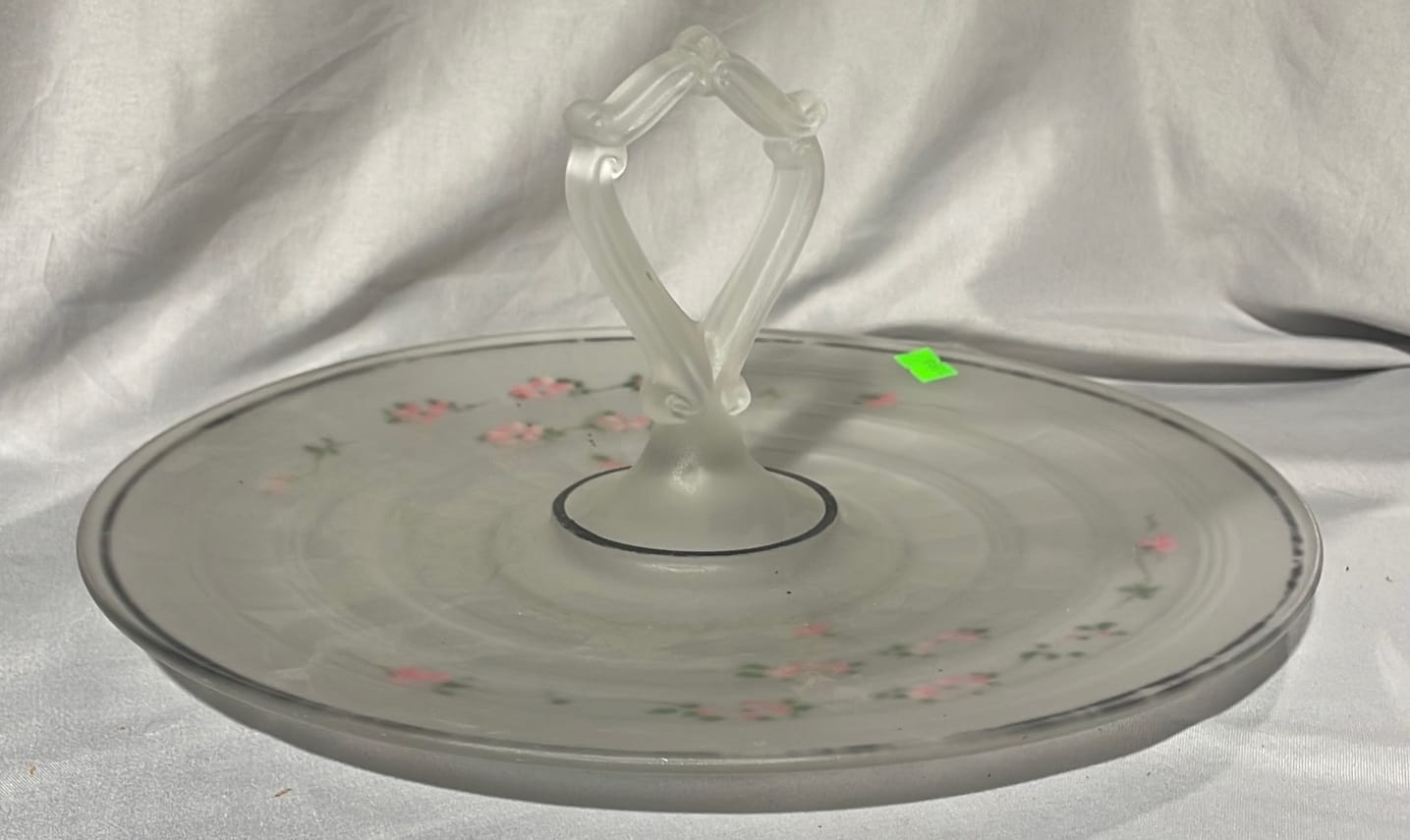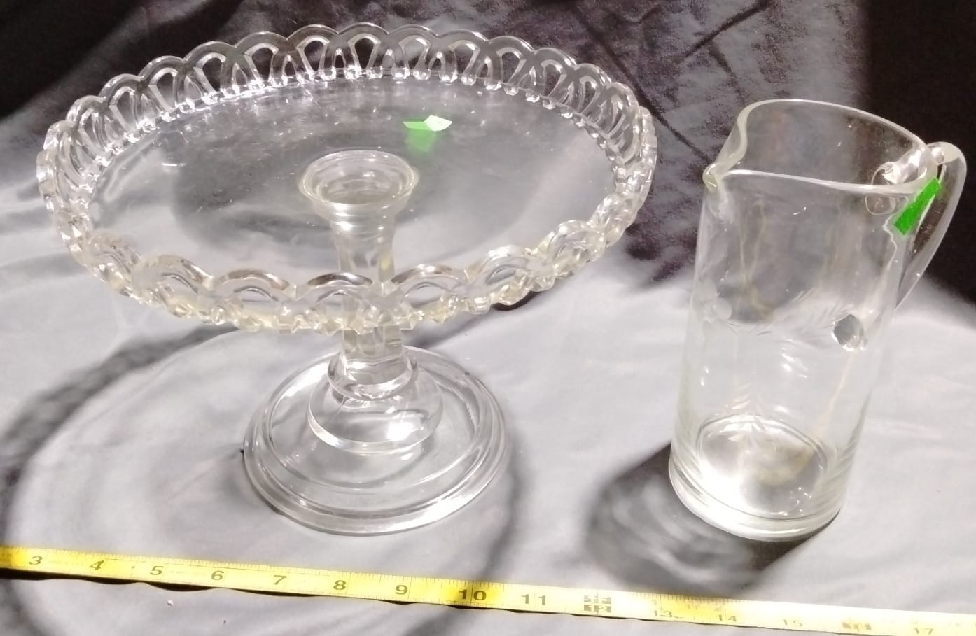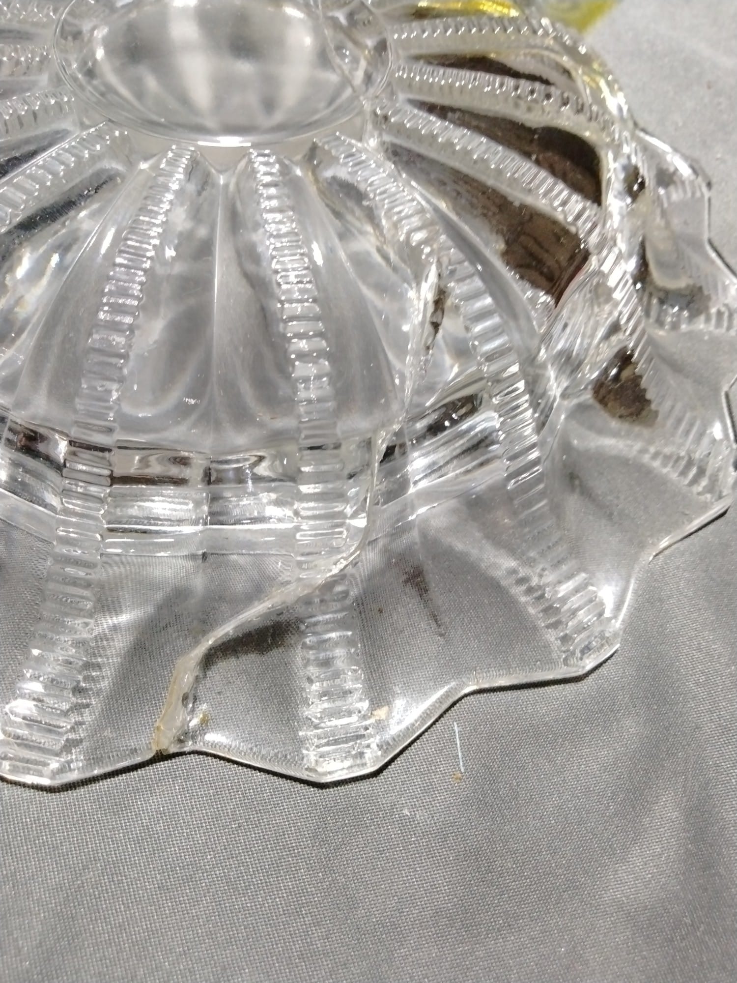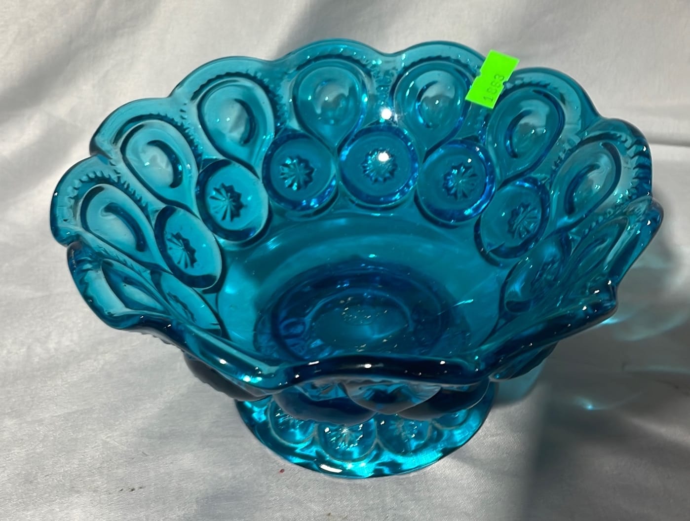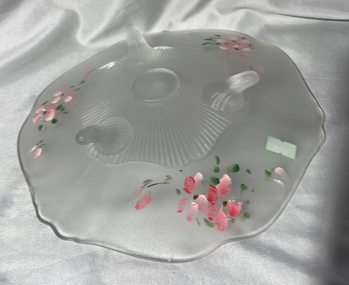 1202 Glass bubble edge bowl 3"x6", glass pedestal plate 4"x7", glass serving plate 14"