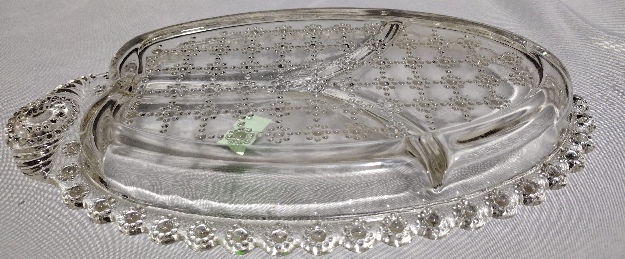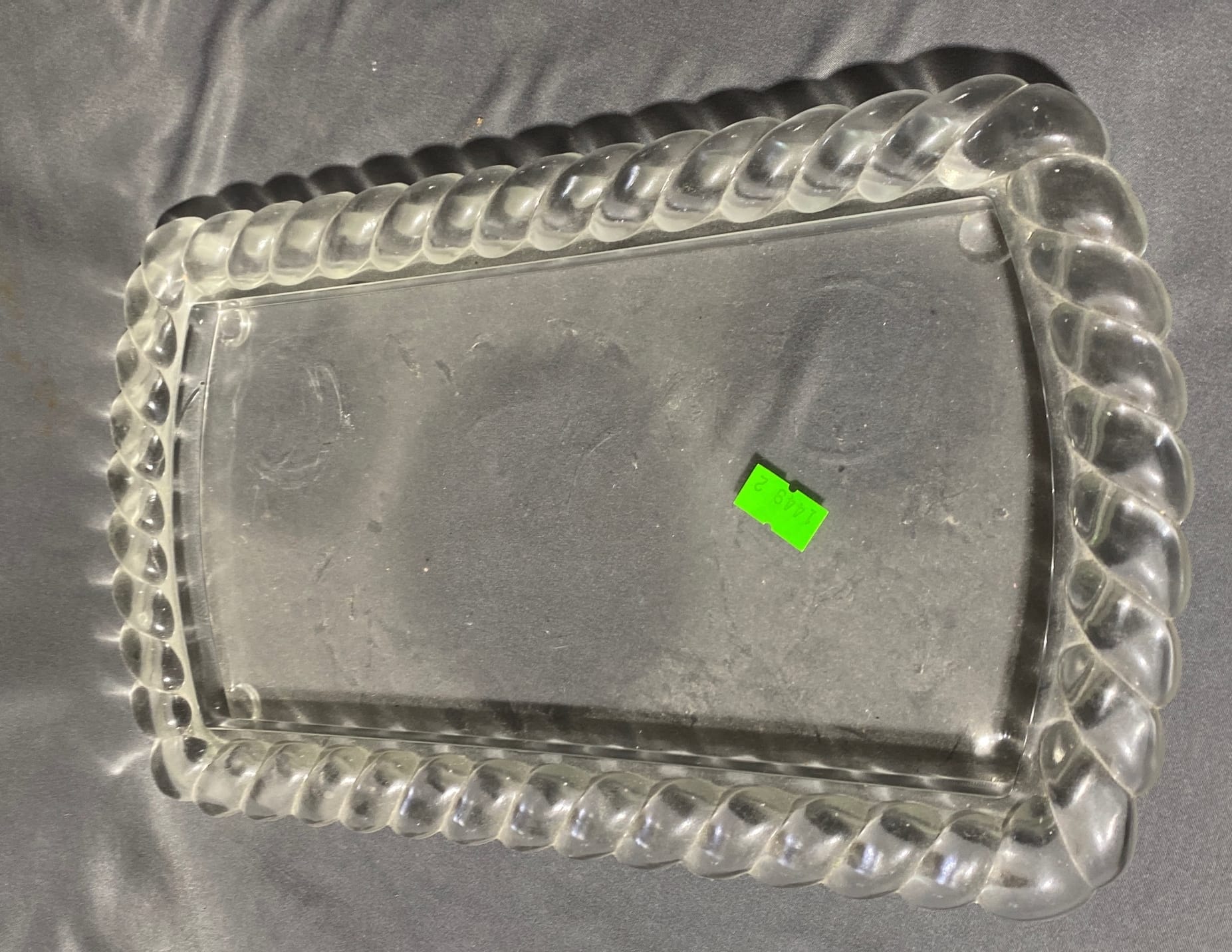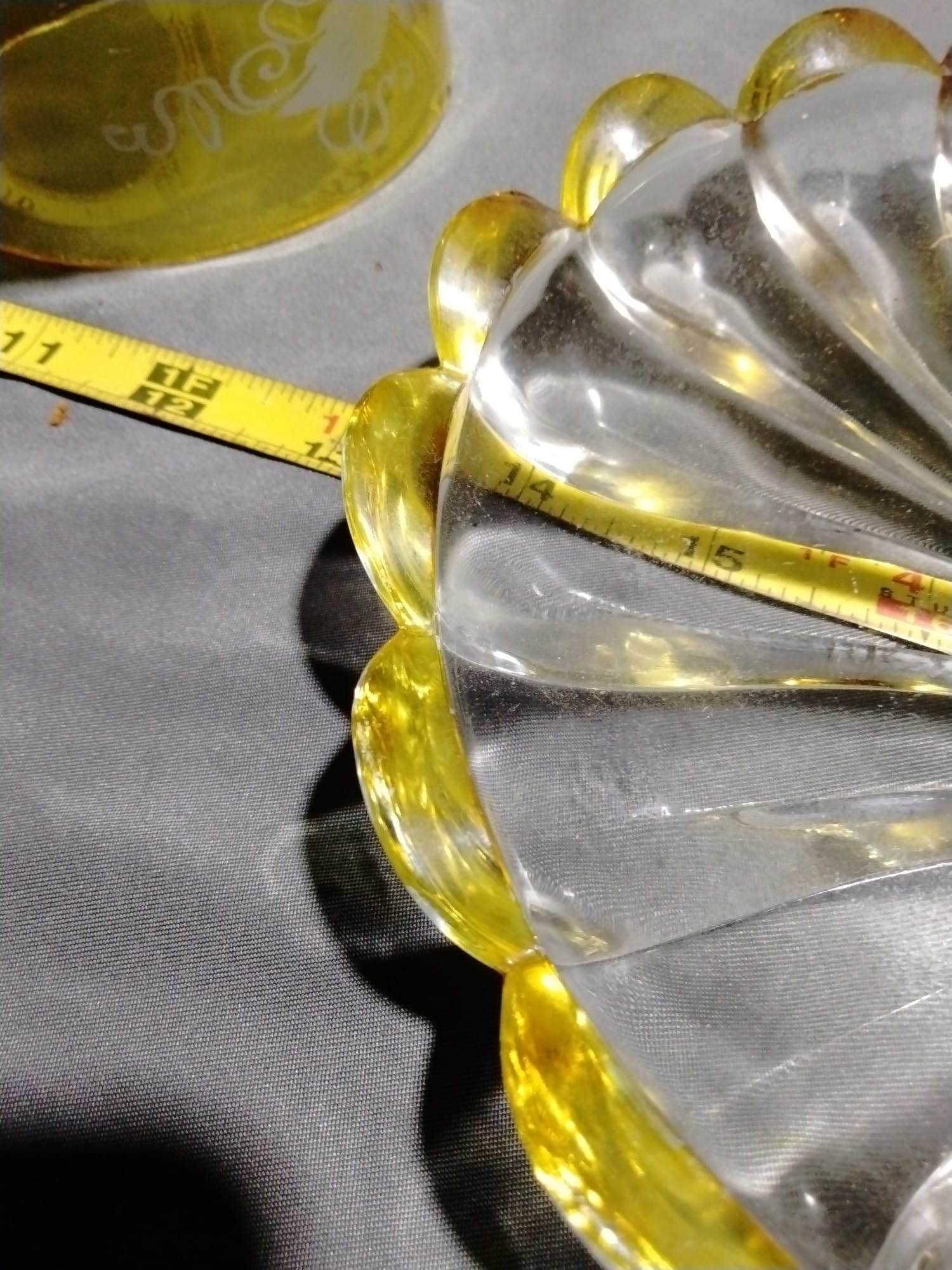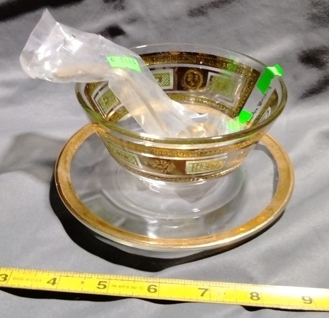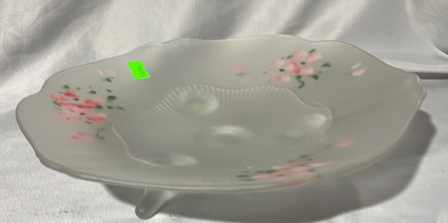 1202 Glass bubble edge bowl 3"x6", glass pedestal plate 4"x7", glass serving plate 14"