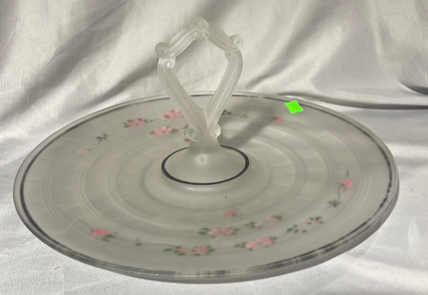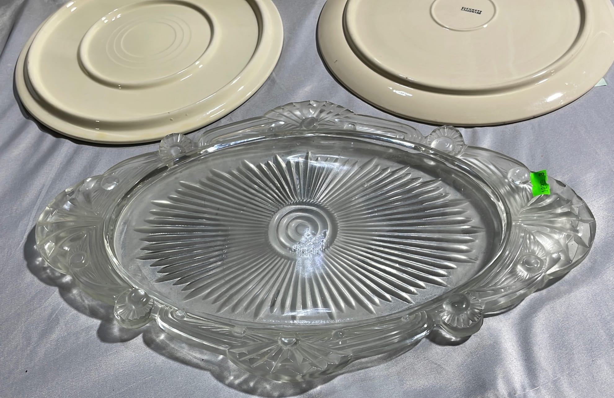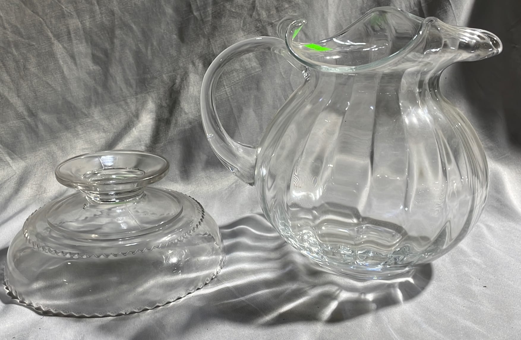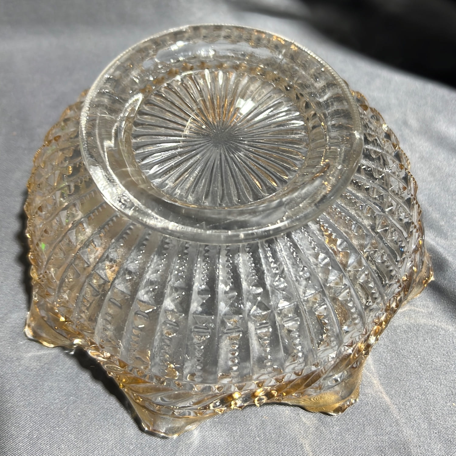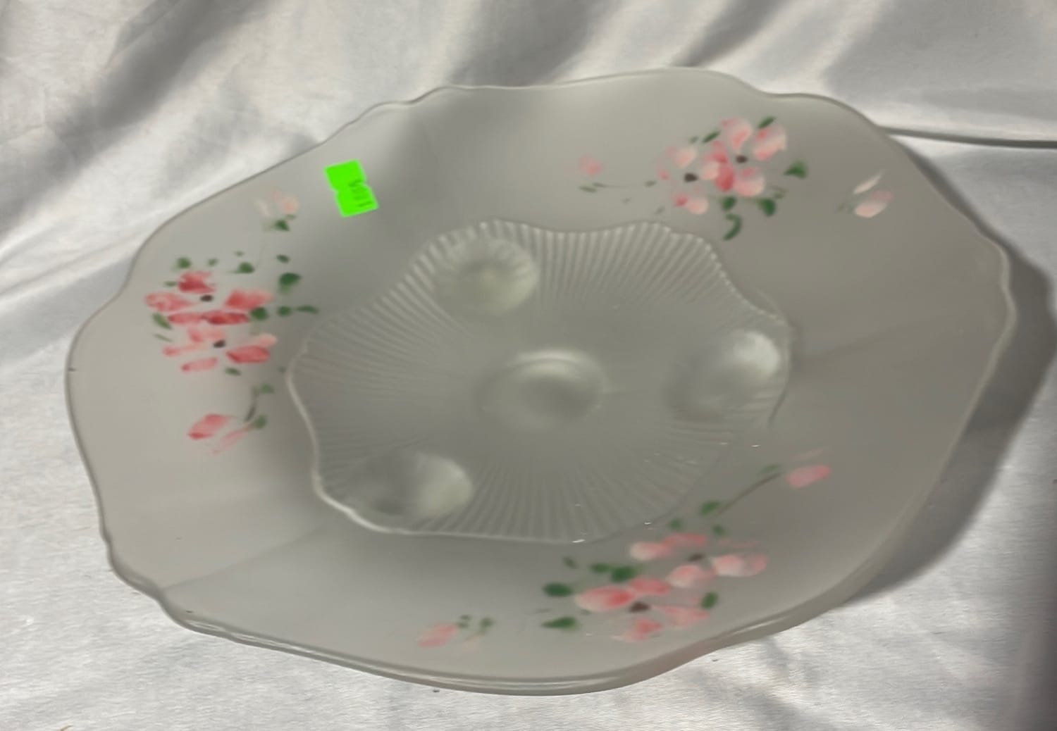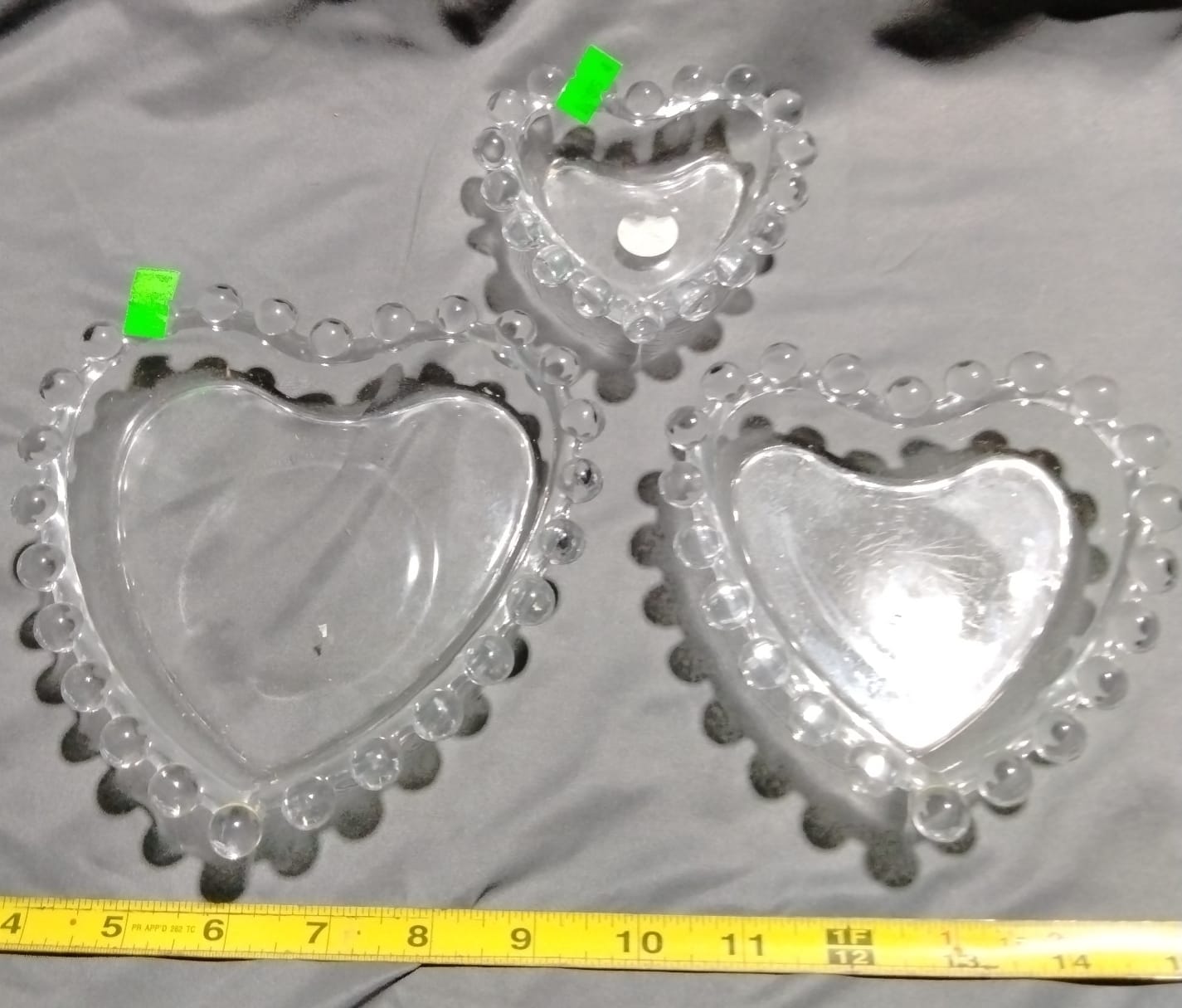 1202 Glass bubble edge bowl 3"x6", glass pedestal plate 4"x7", glass serving plate 14"