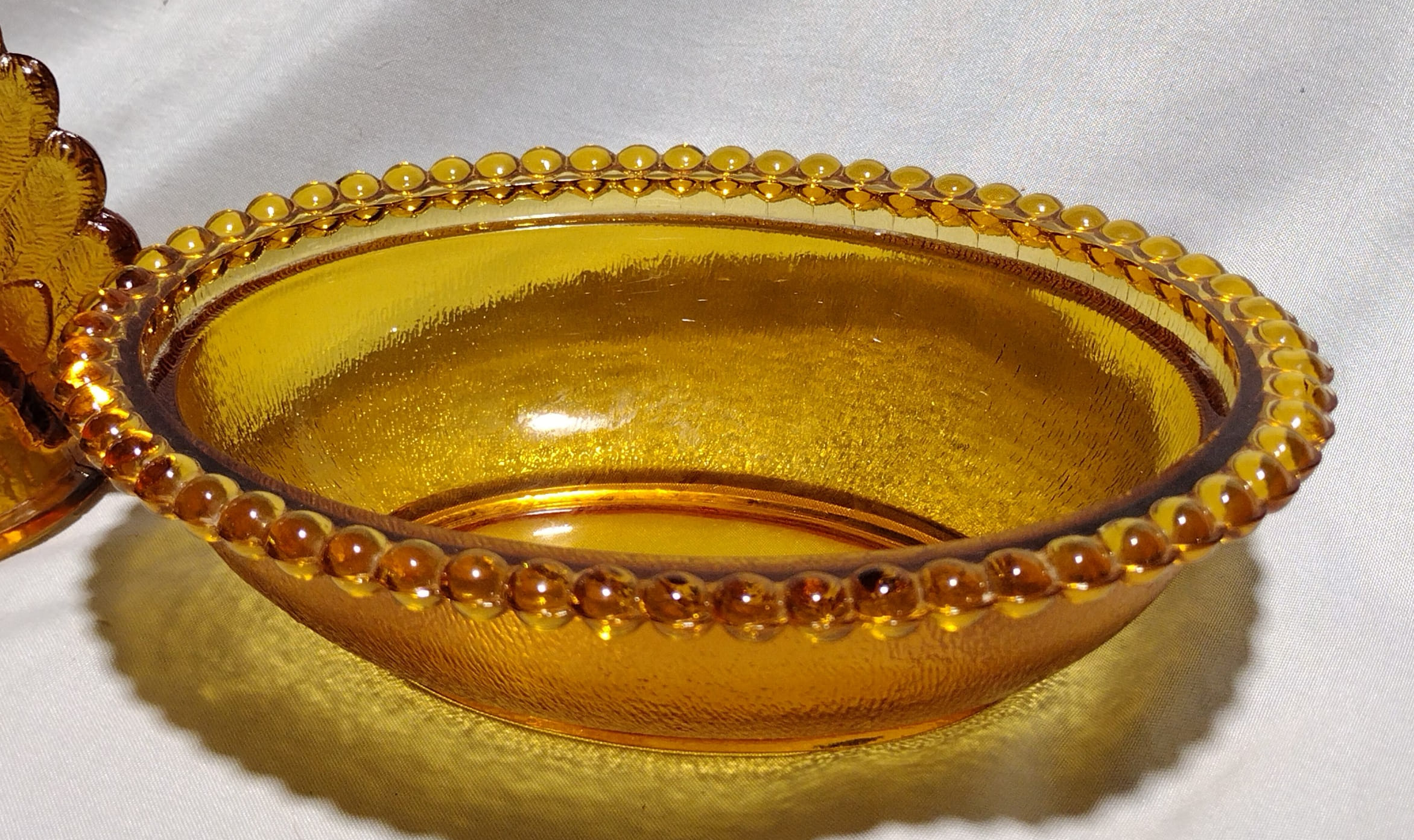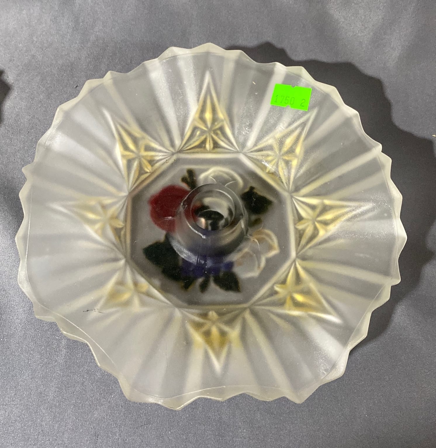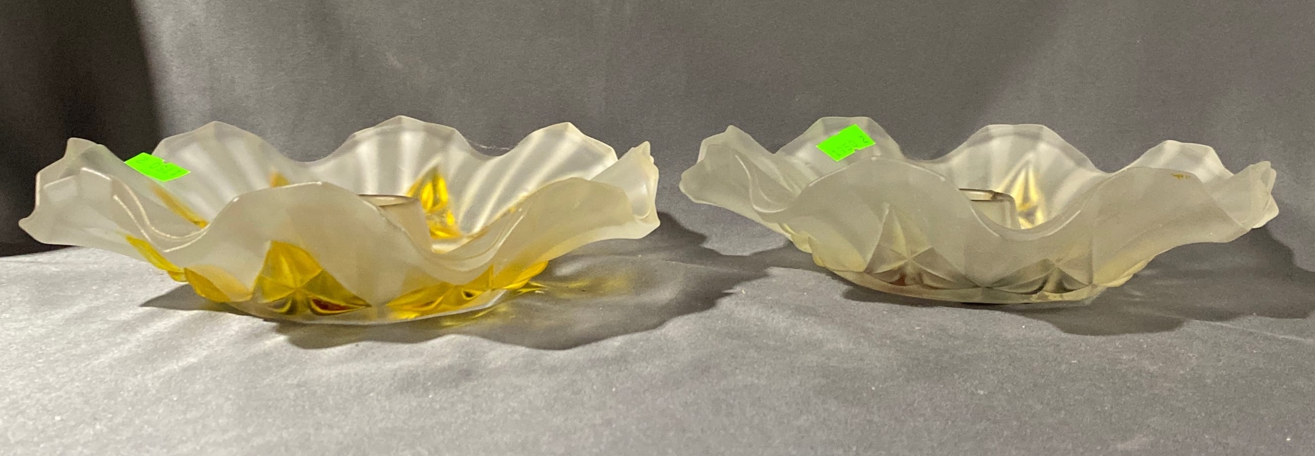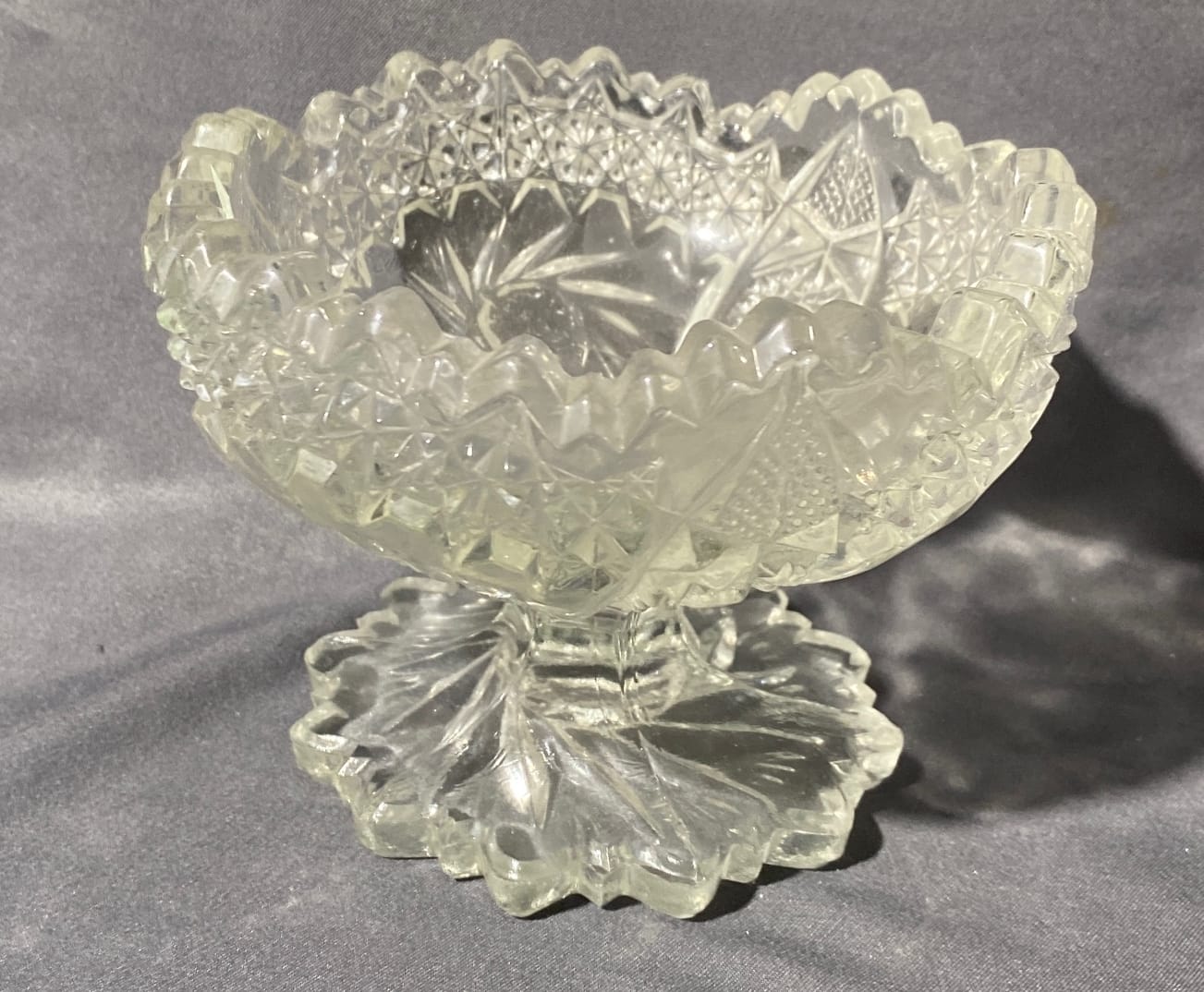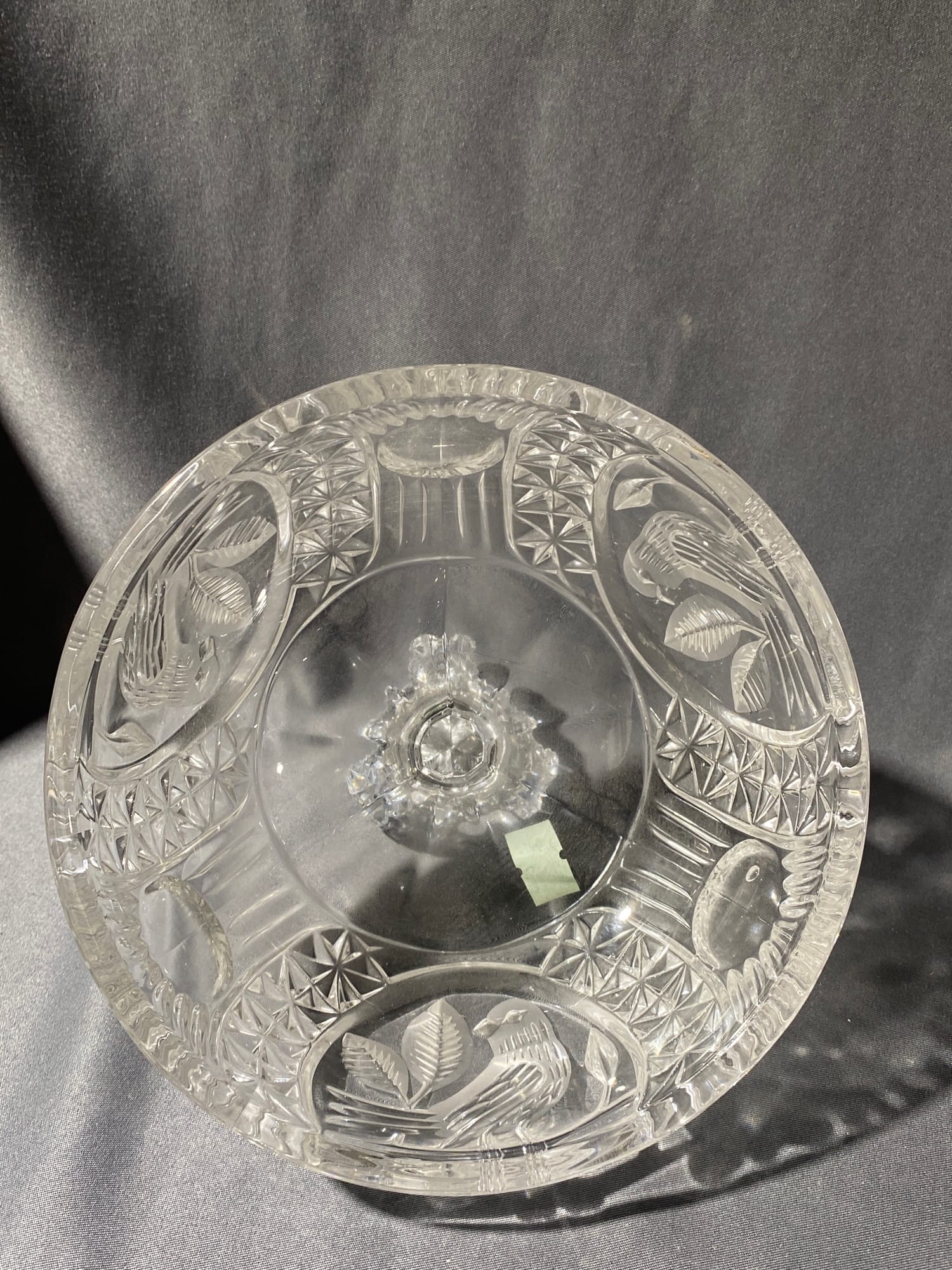 1202 Glass bubble edge bowl 3"x6", glass pedestal plate 4"x7", glass serving plate 14"