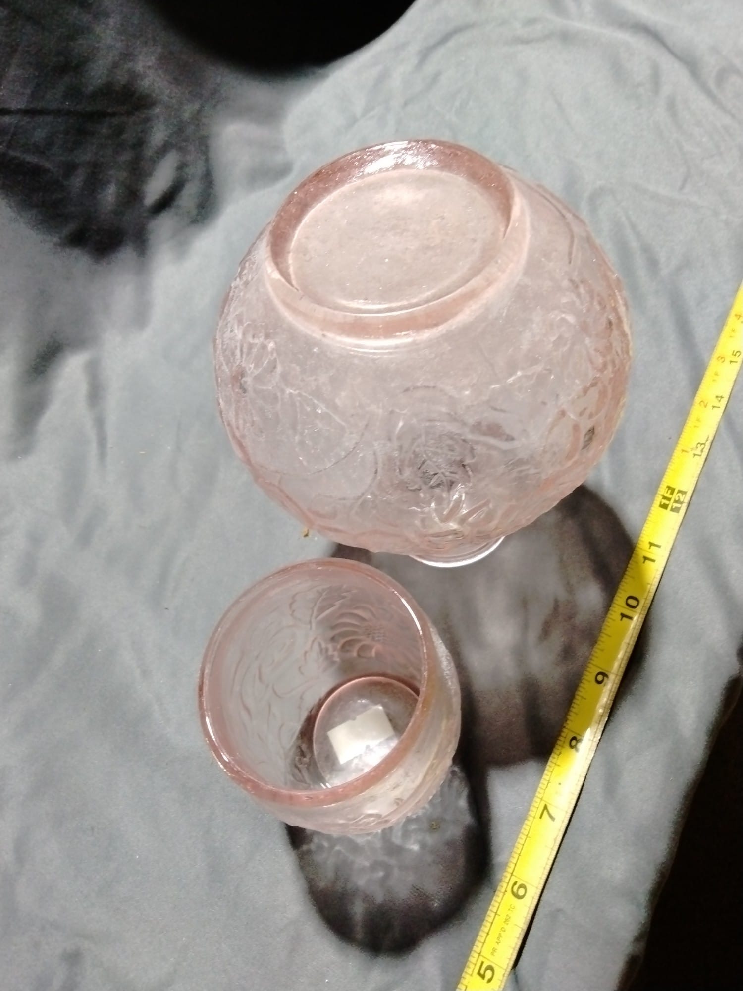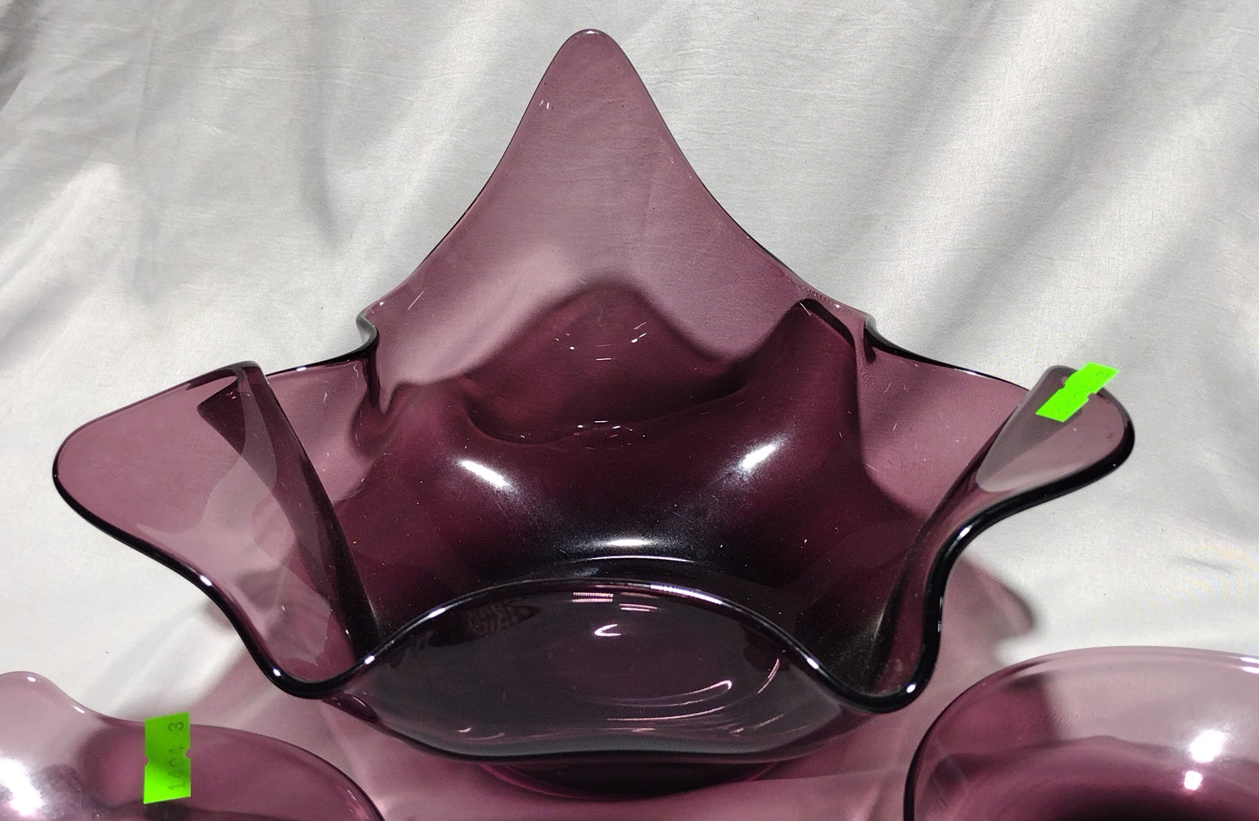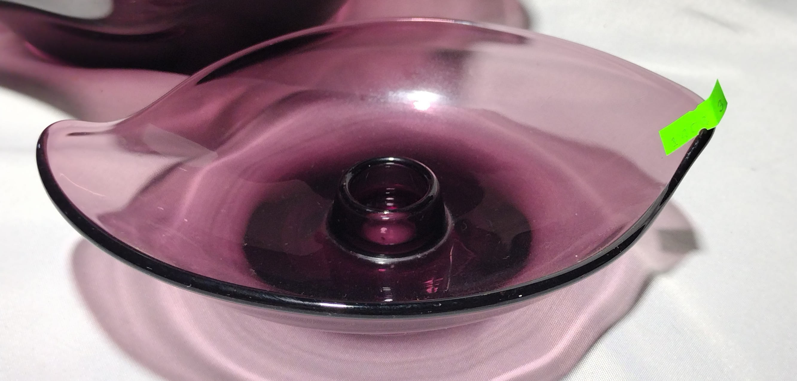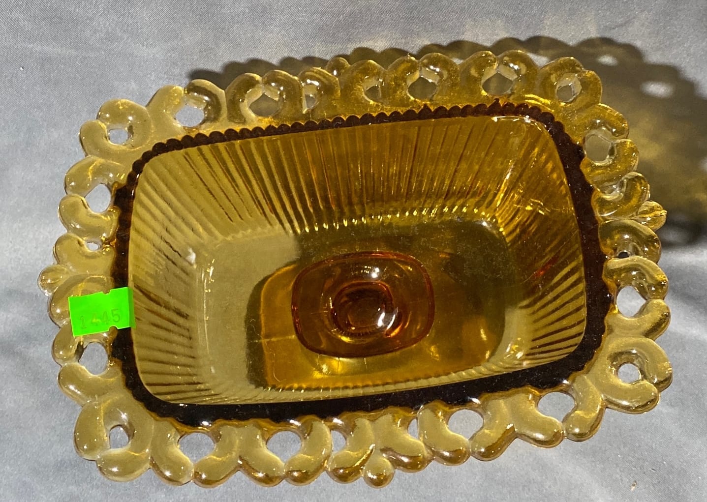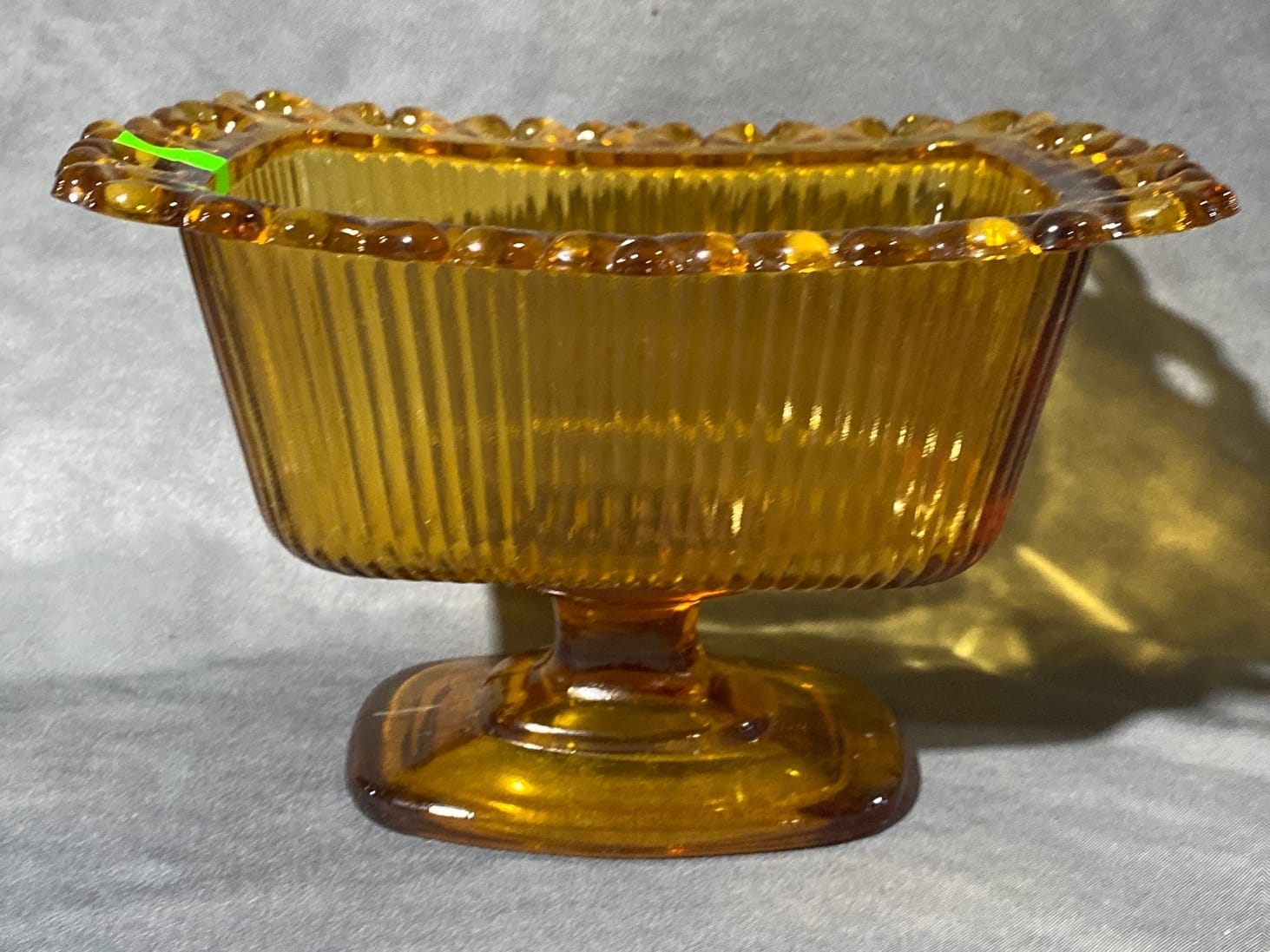 1202 Glass bubble edge bowl 3"x6", glass pedestal plate 4"x7", glass serving plate 14"