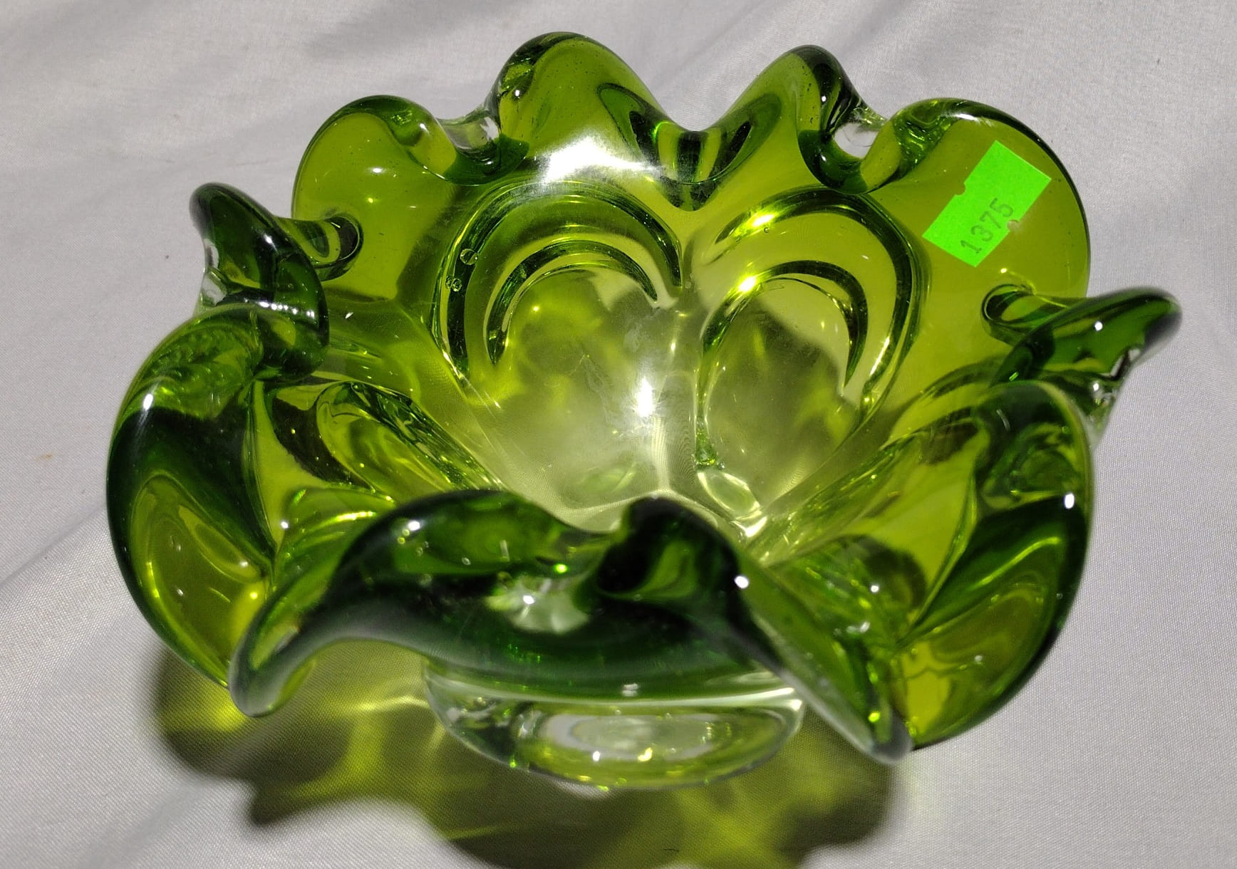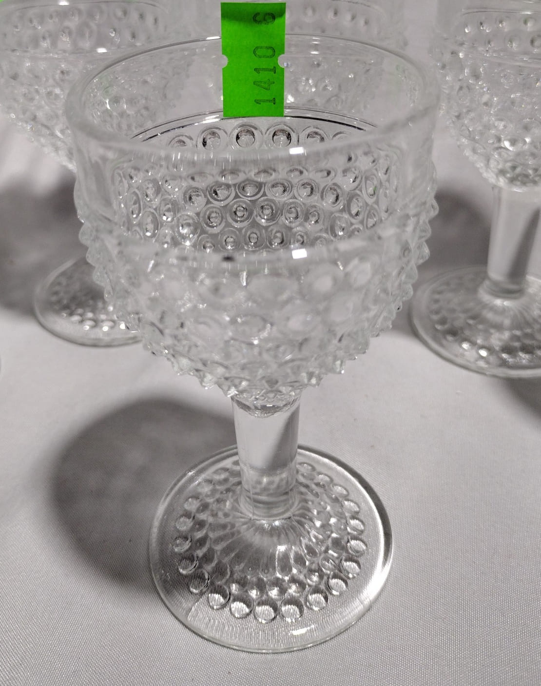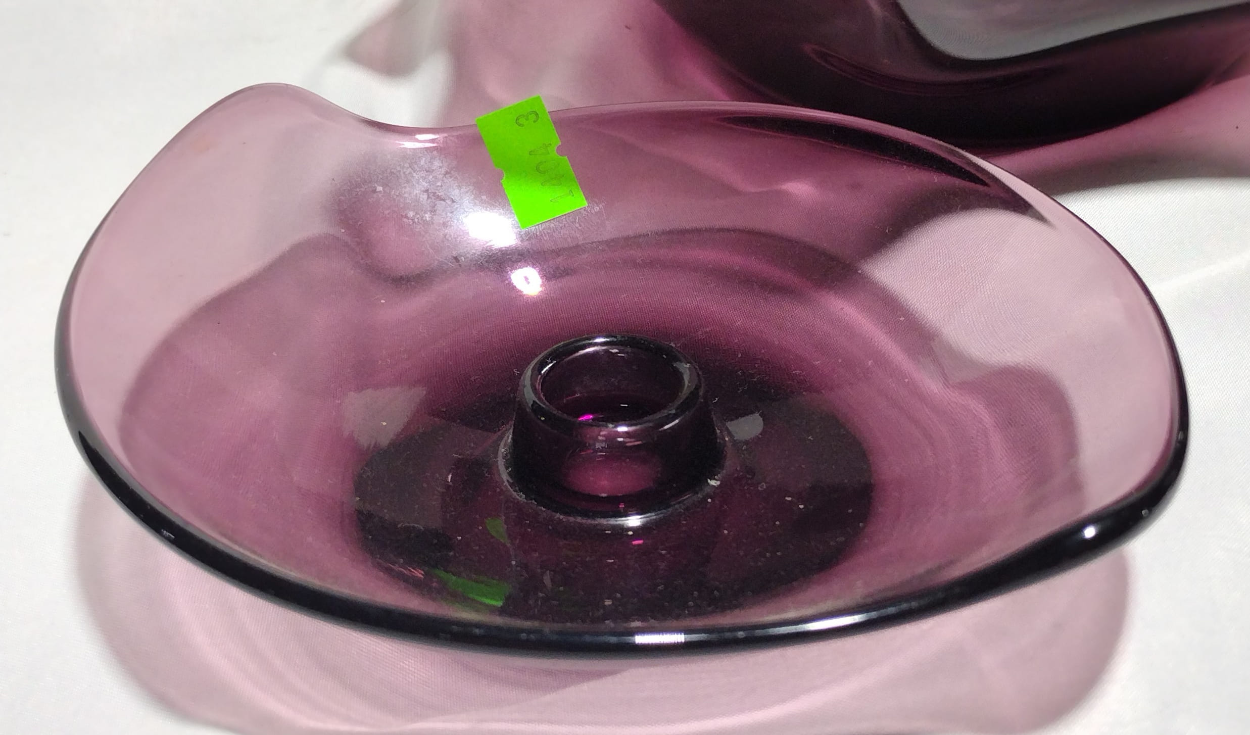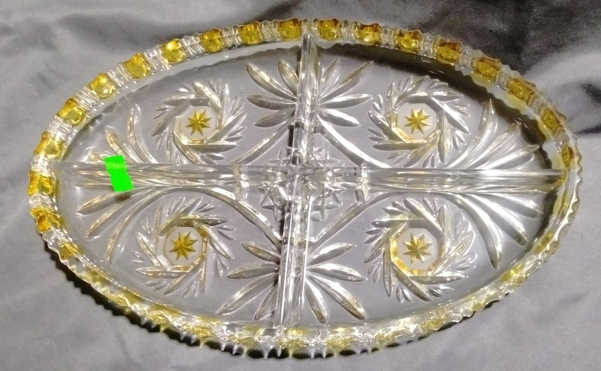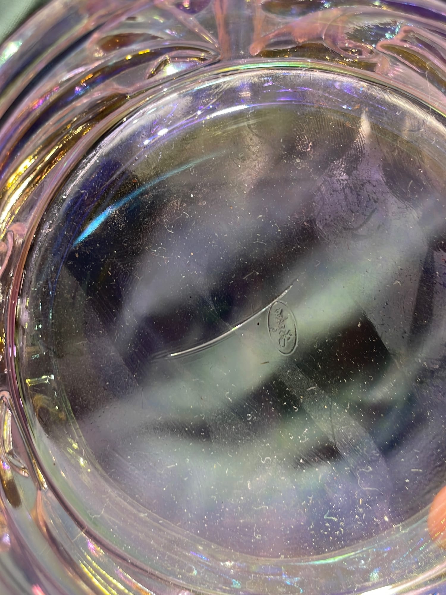 1202 Glass bubble edge bowl 3"x6", glass pedestal plate 4"x7", glass serving plate 14"