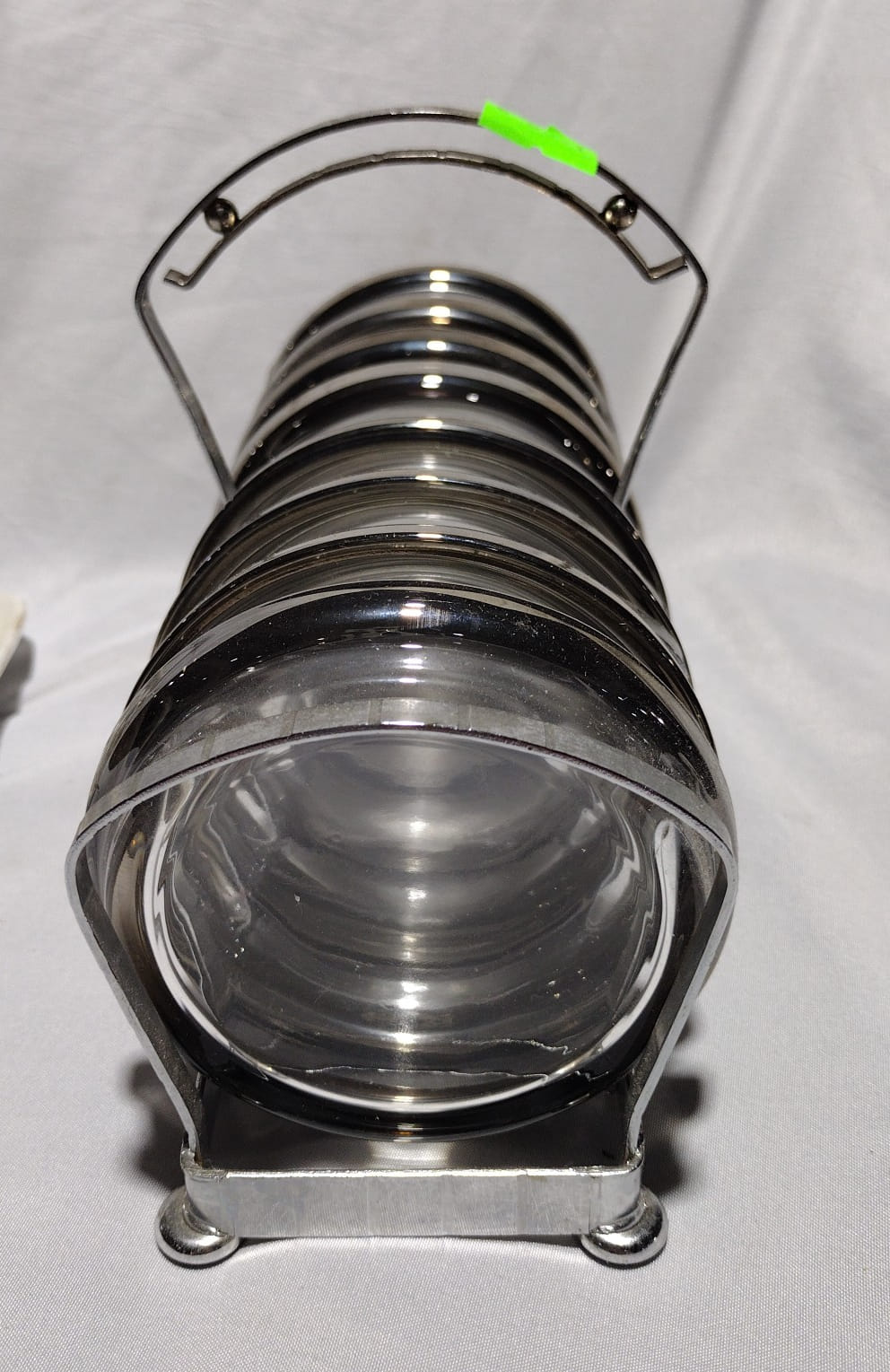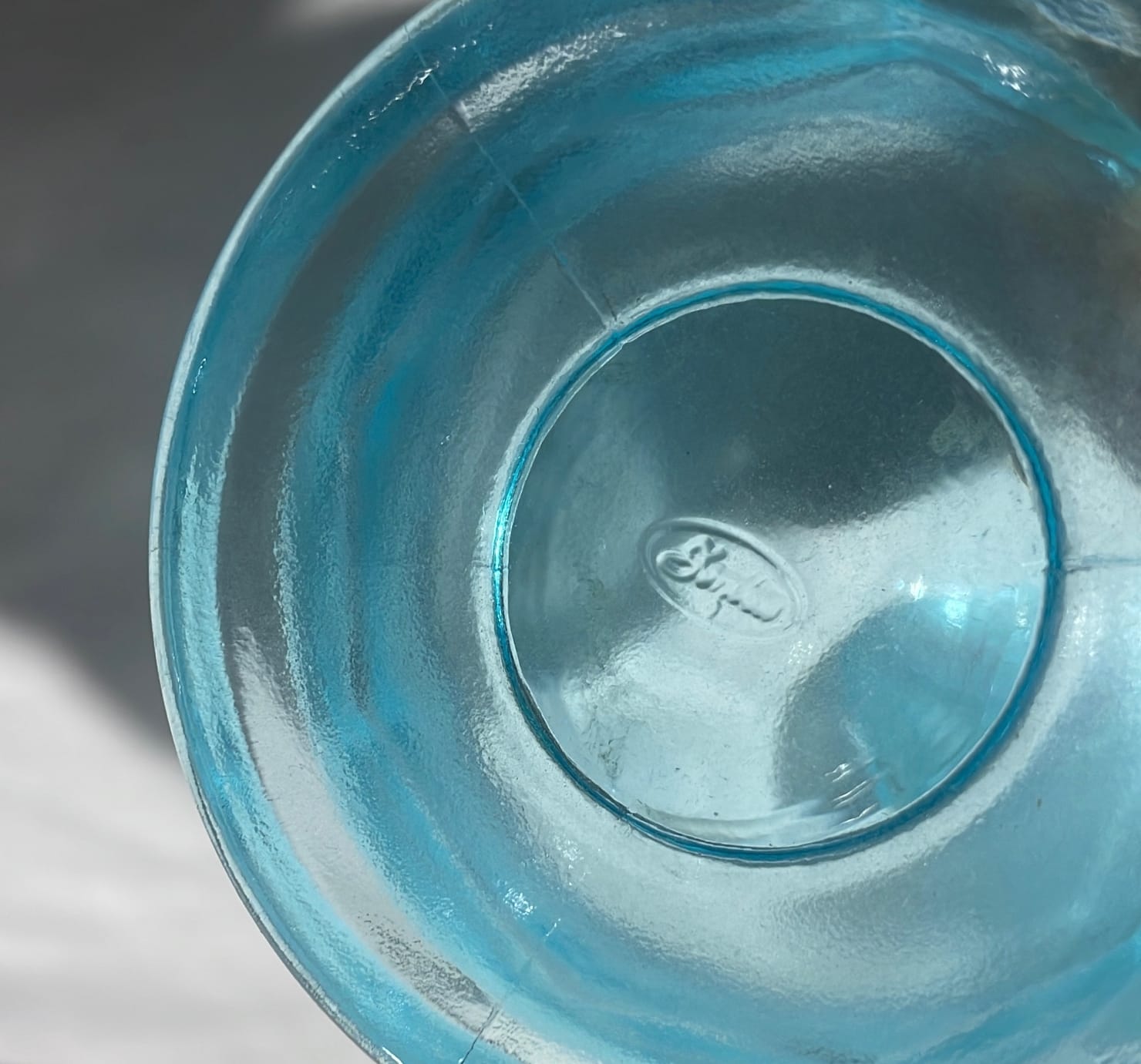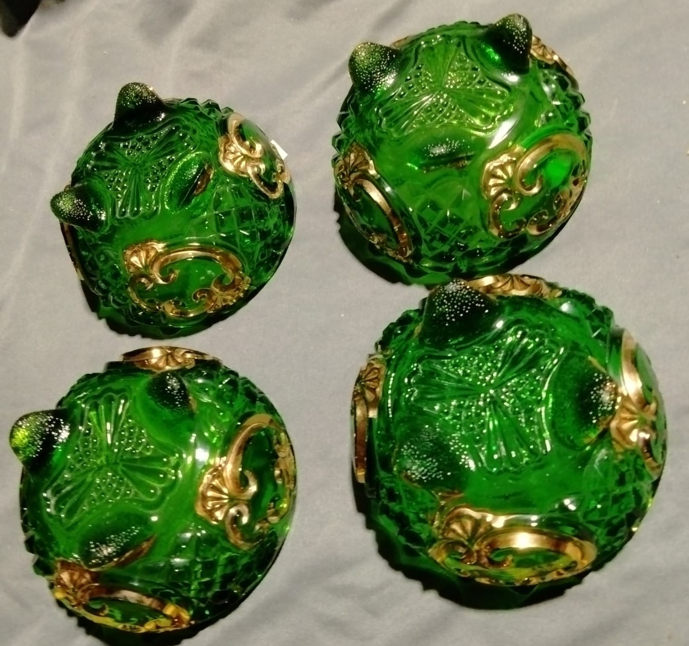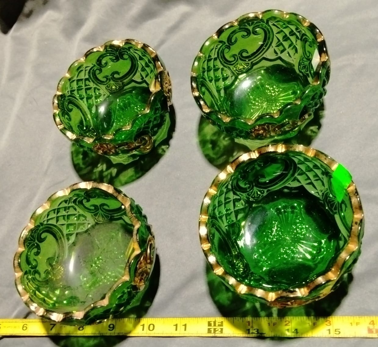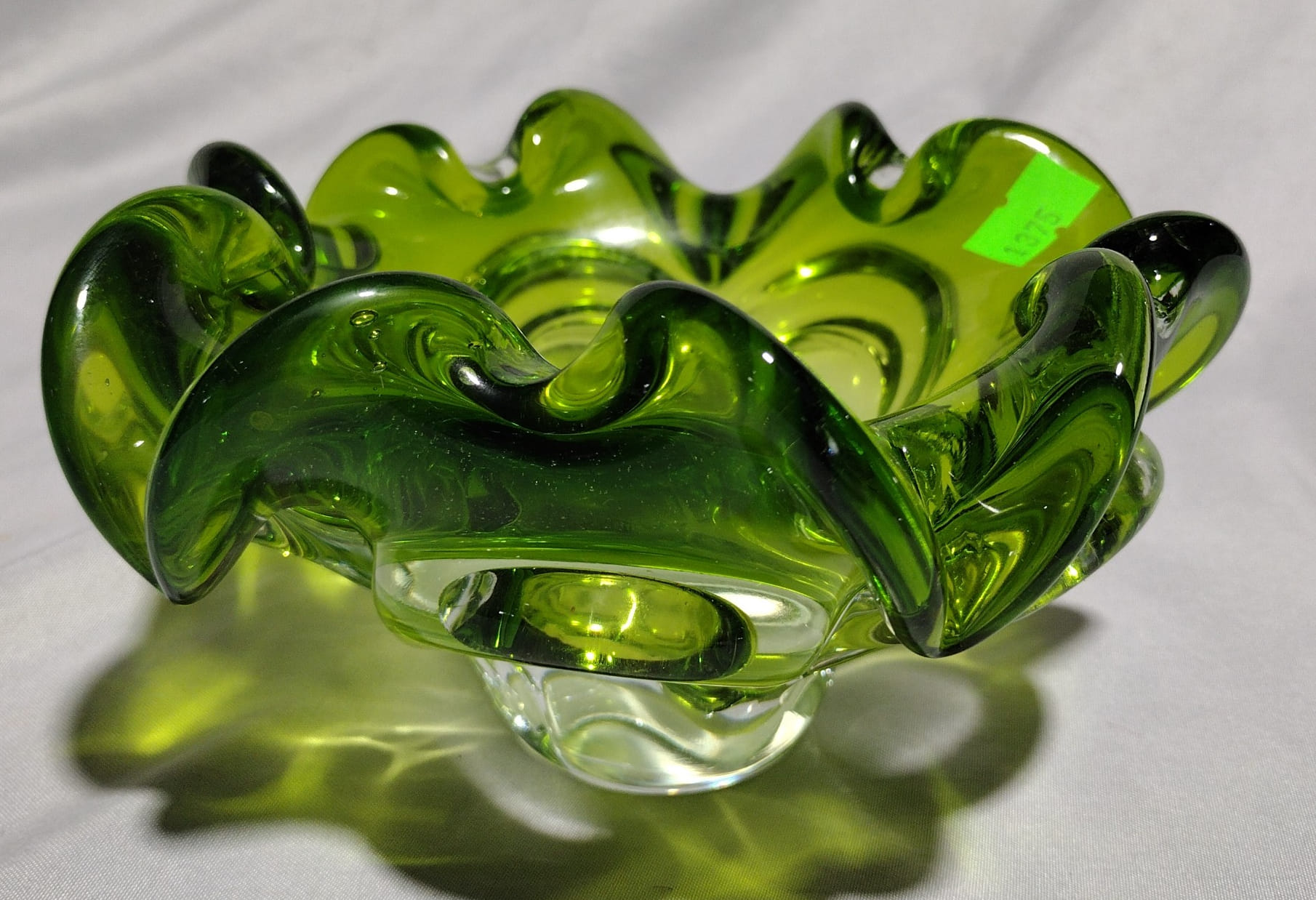 1202 Glass bubble edge bowl 3"x6", glass pedestal plate 4"x7", glass serving plate 14"