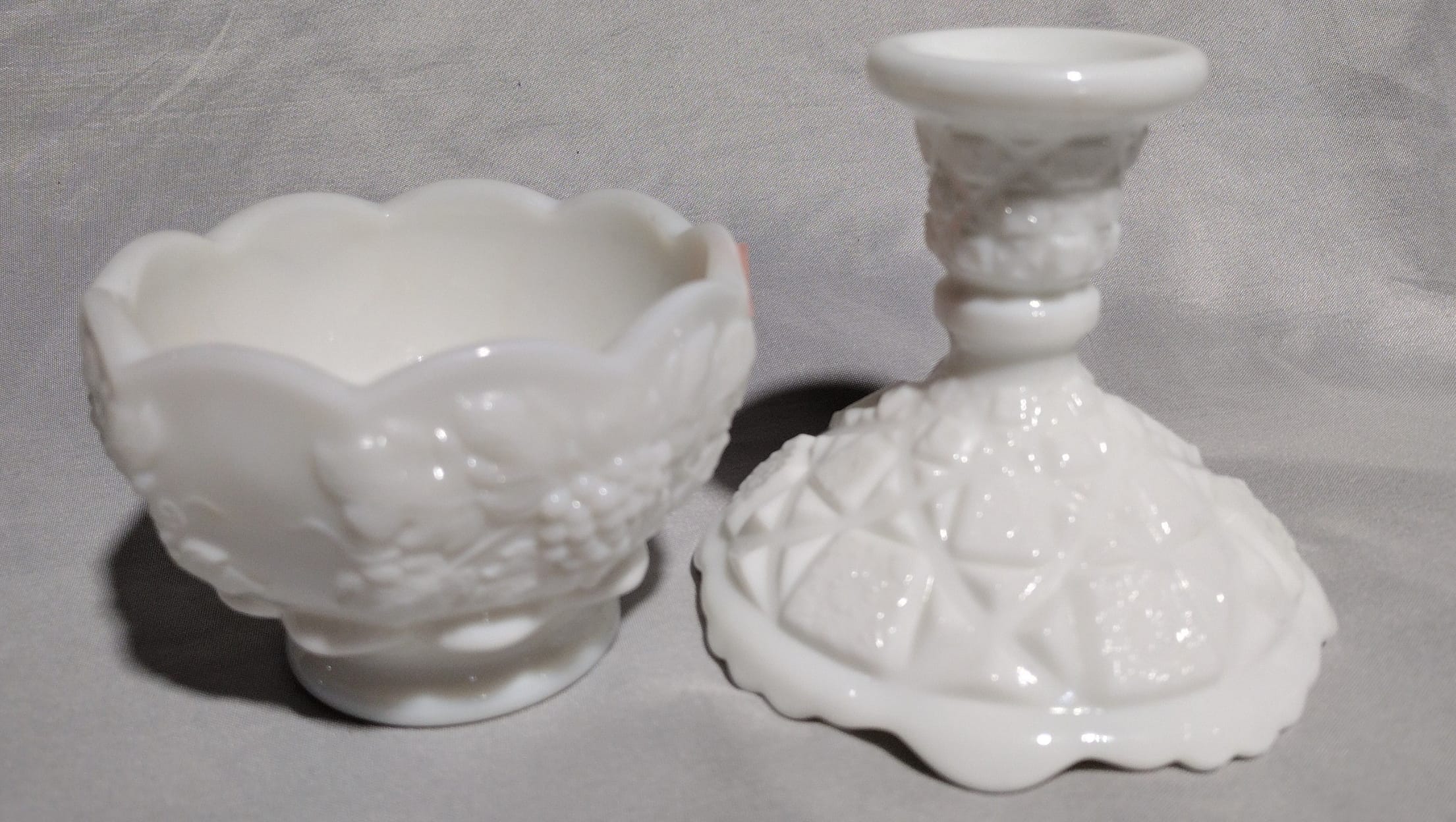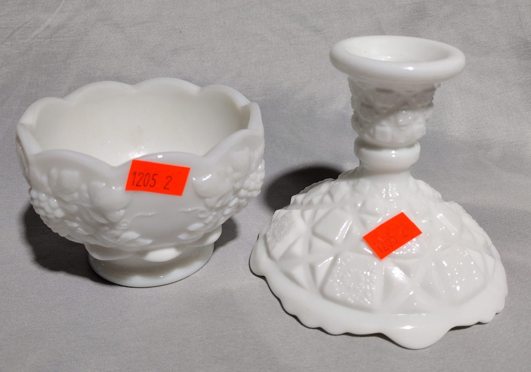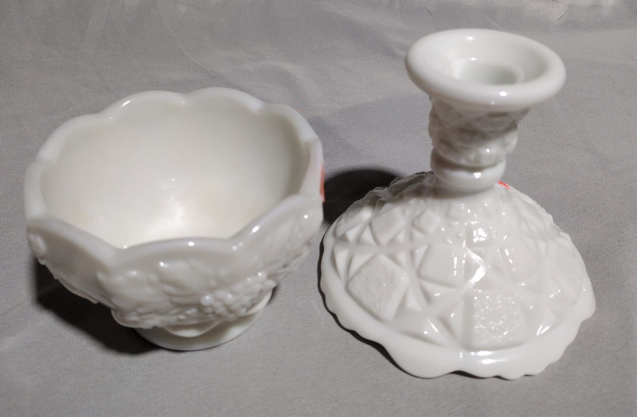 1205 Westmoreland milk glass candlestick holder 4", Westmoreland milk glass bowl 3"x4"