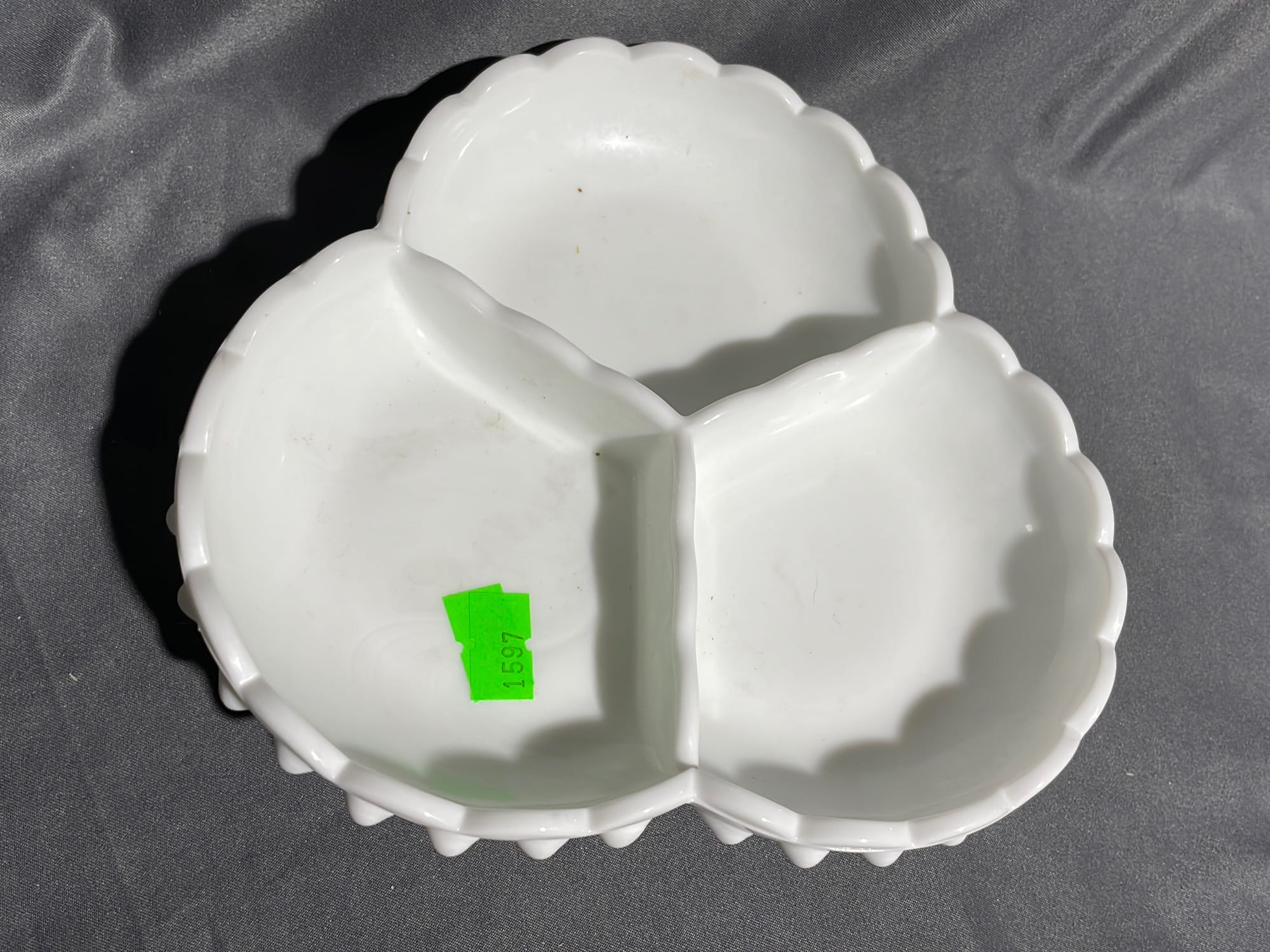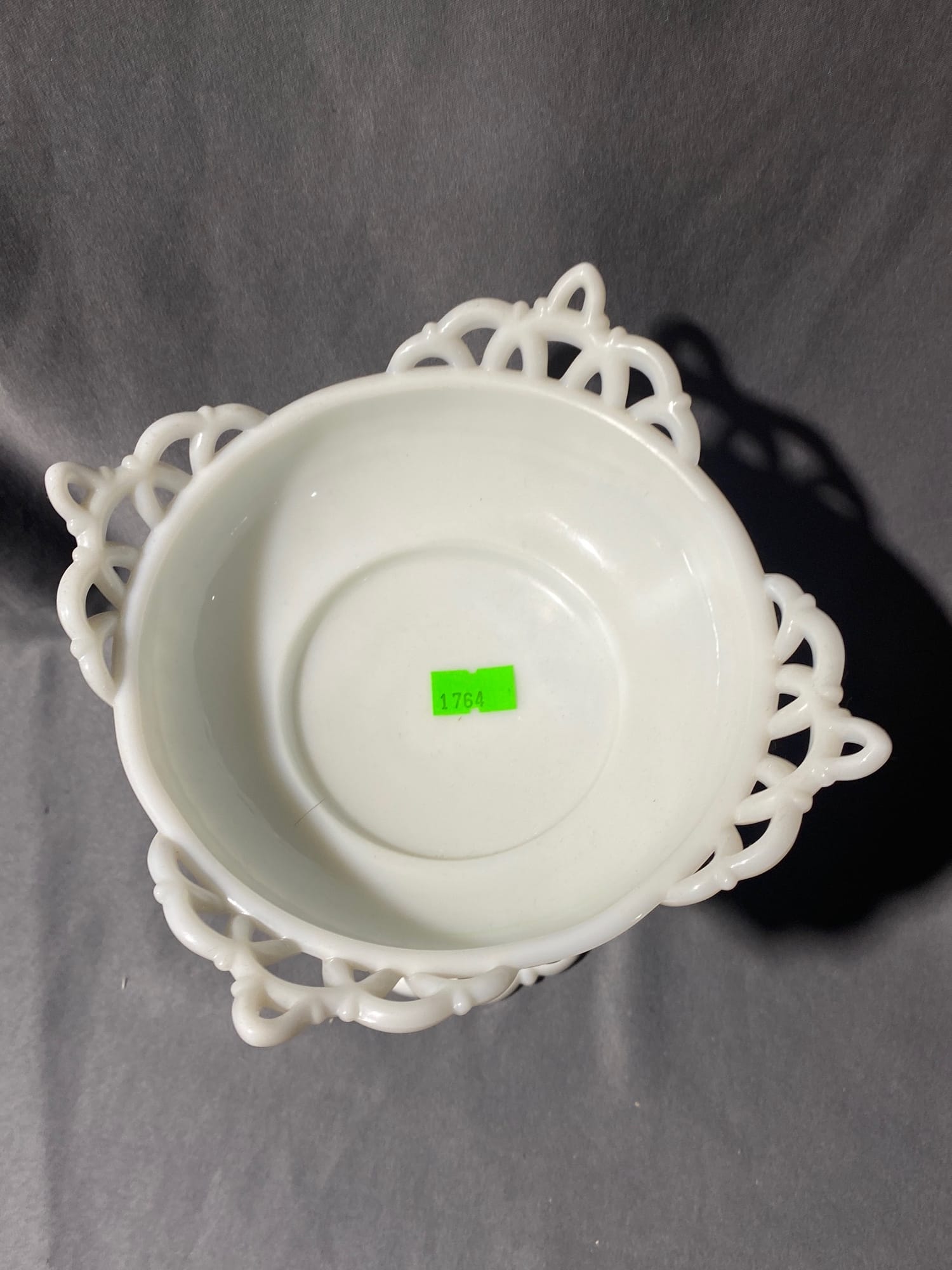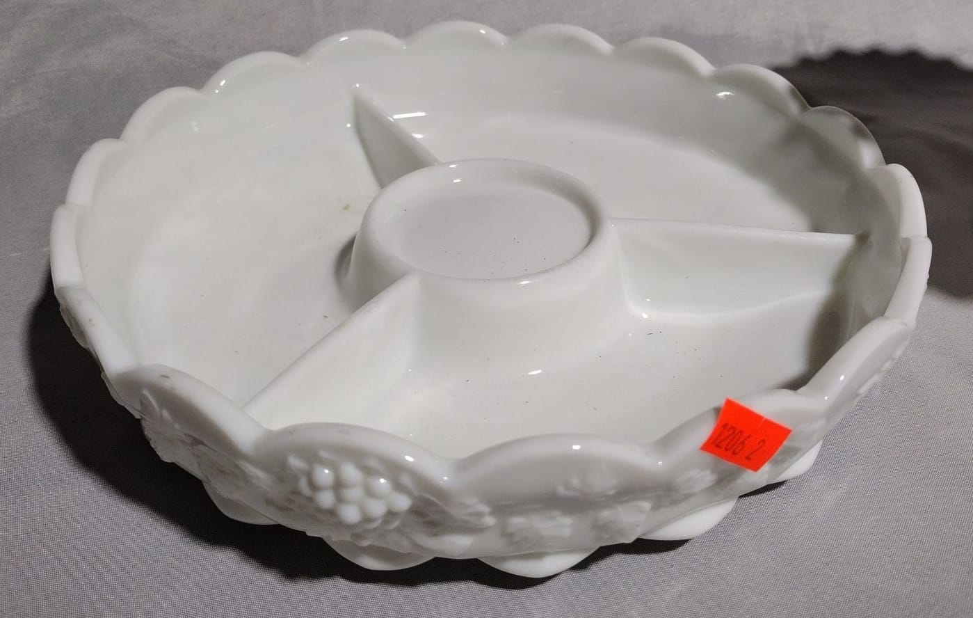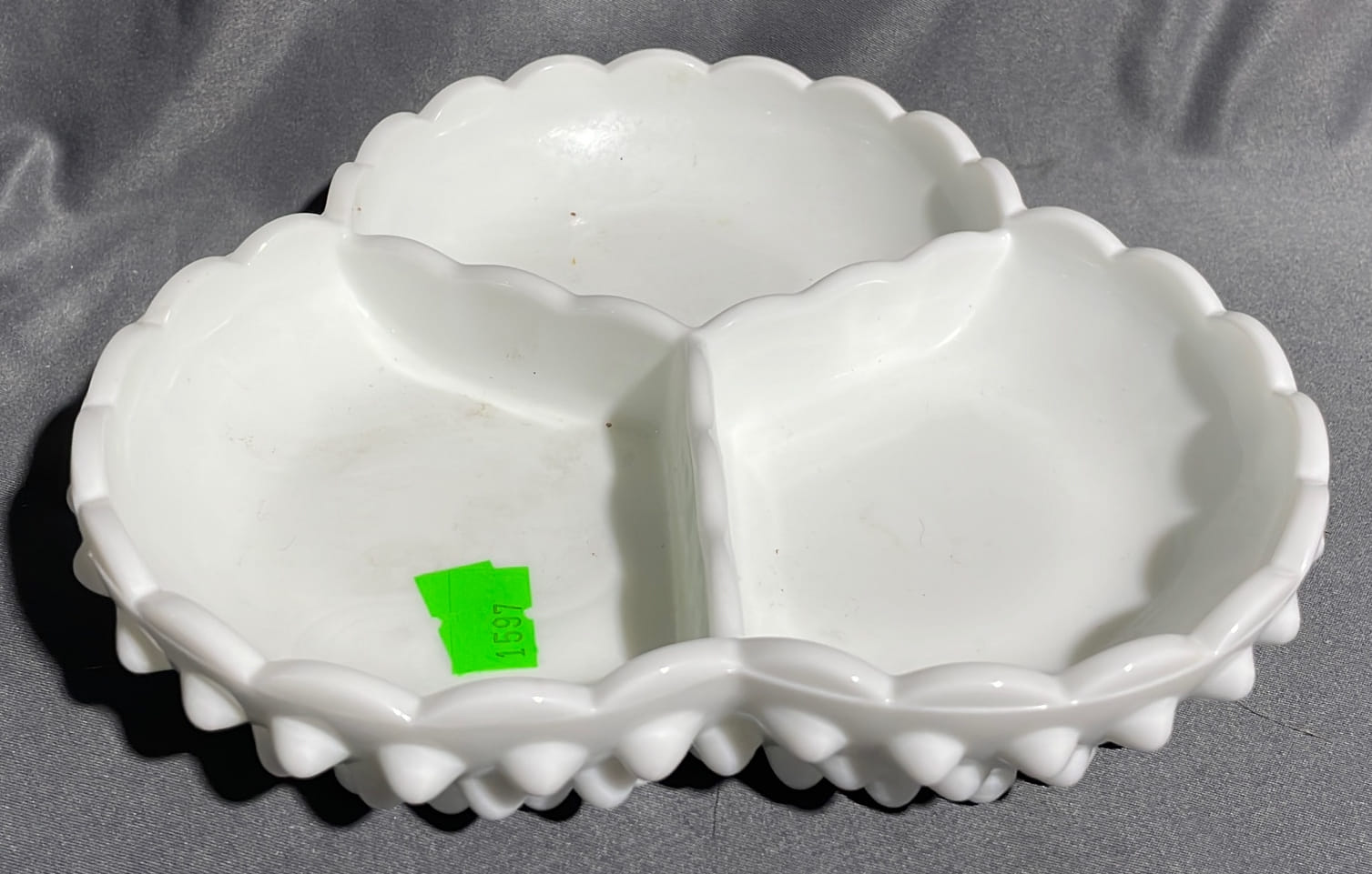 1206 Westmoreland milk glass divided dish 9", Westmoreland pedestal dish 4"x6"