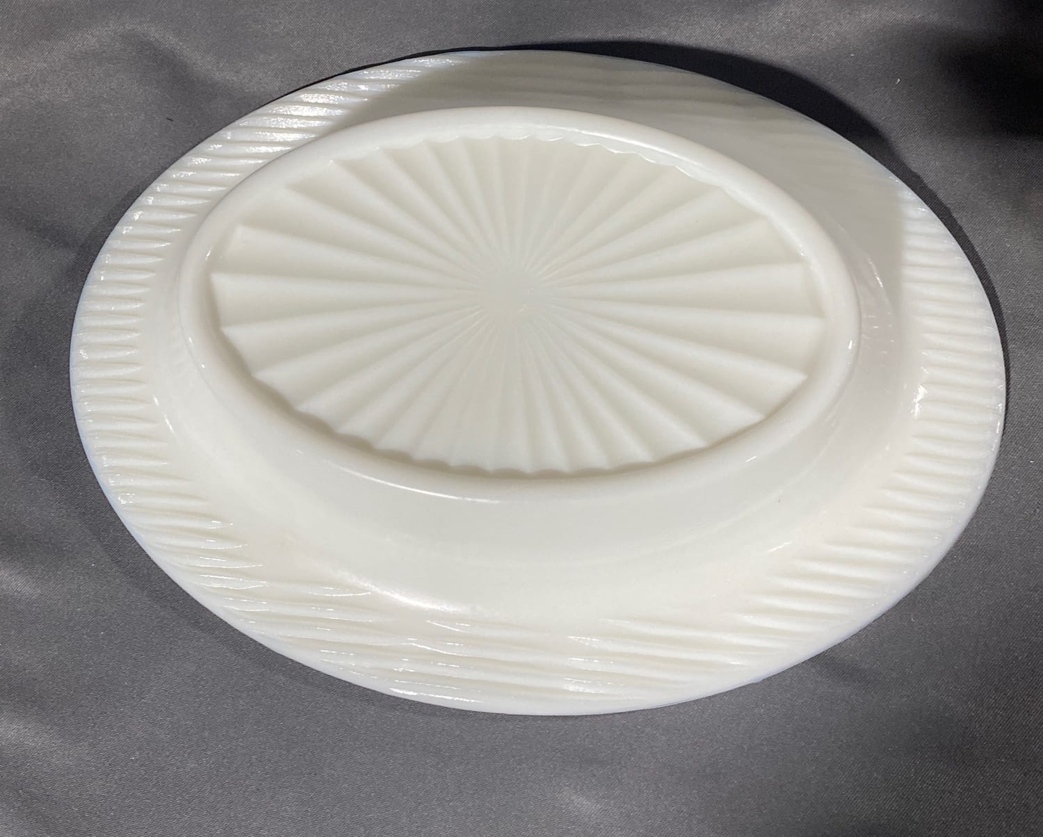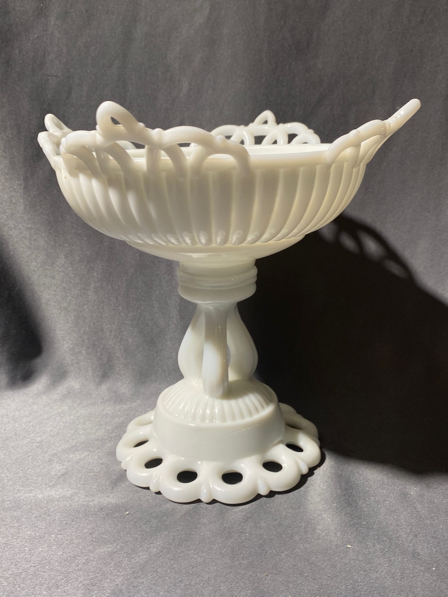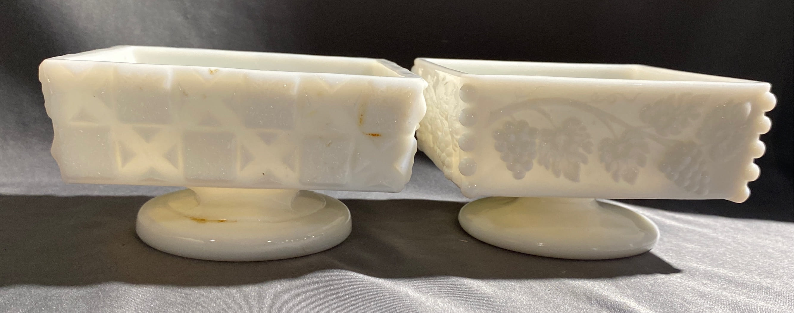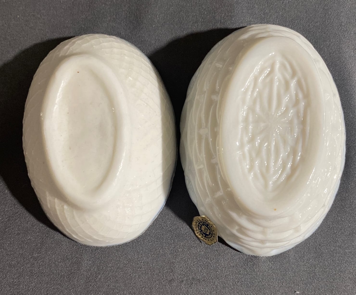 1206 Westmoreland milk glass divided dish 9", Westmoreland pedestal dish 4"x6"