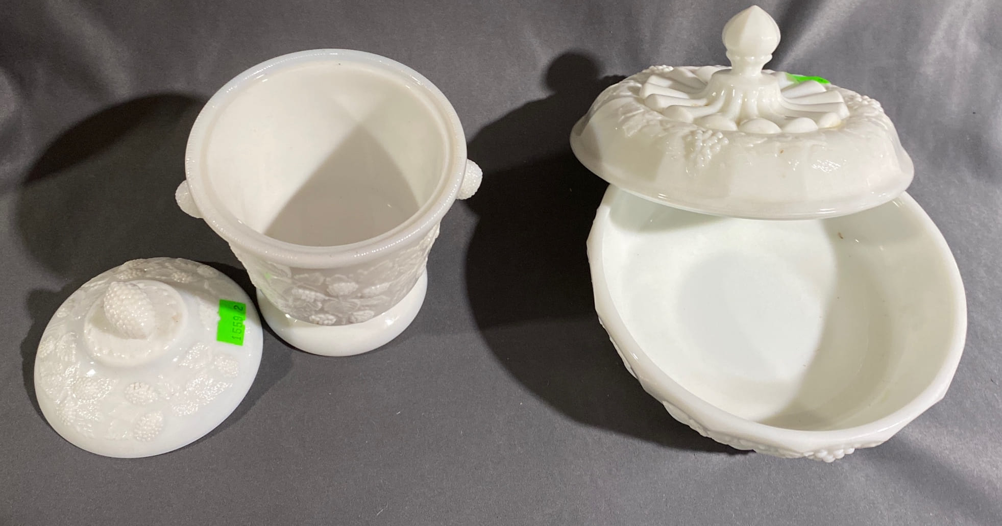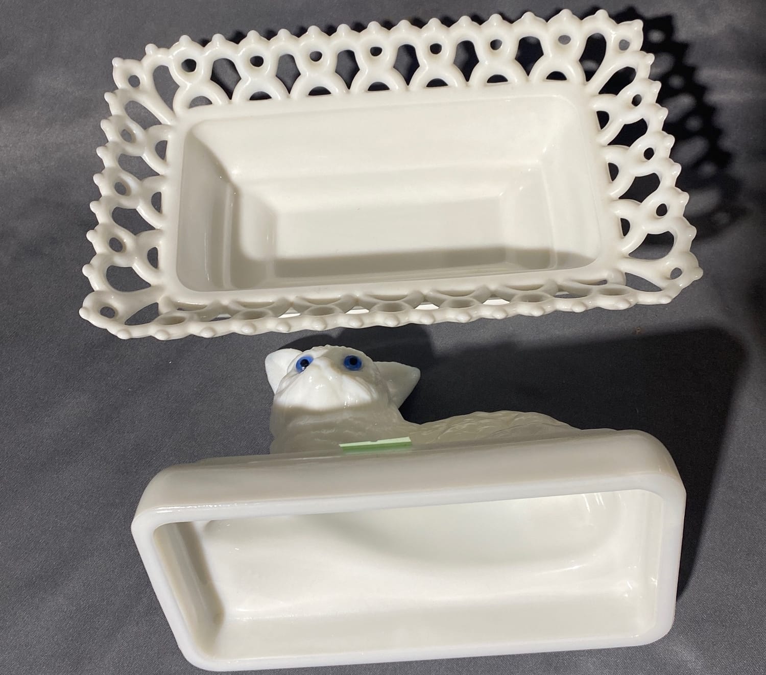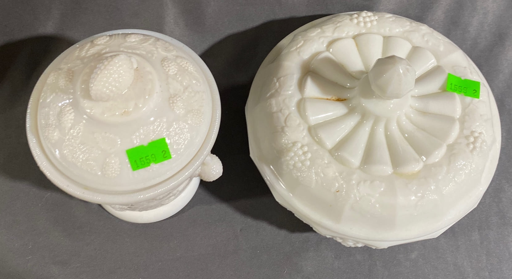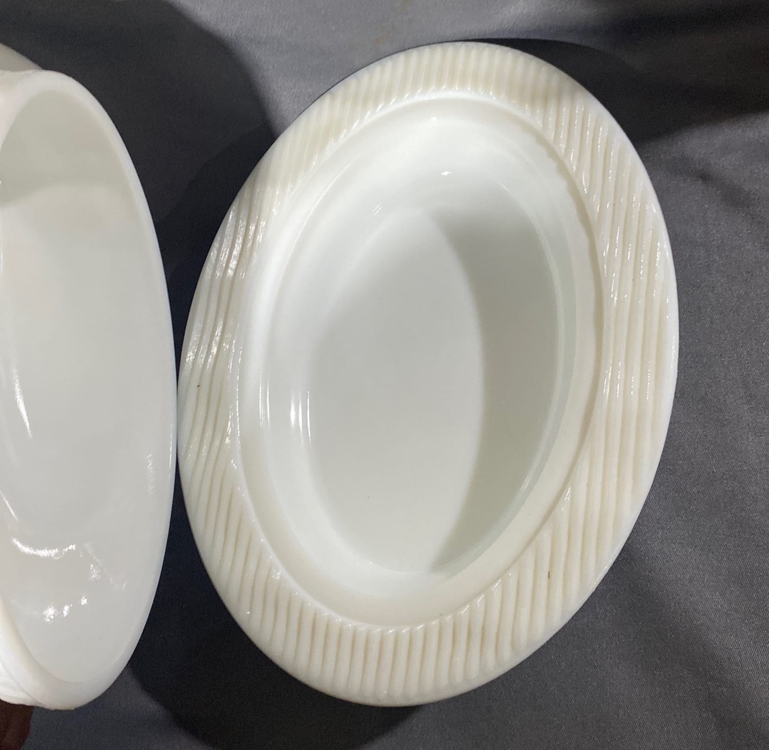 1206 Westmoreland milk glass divided dish 9", Westmoreland pedestal dish 4"x6"