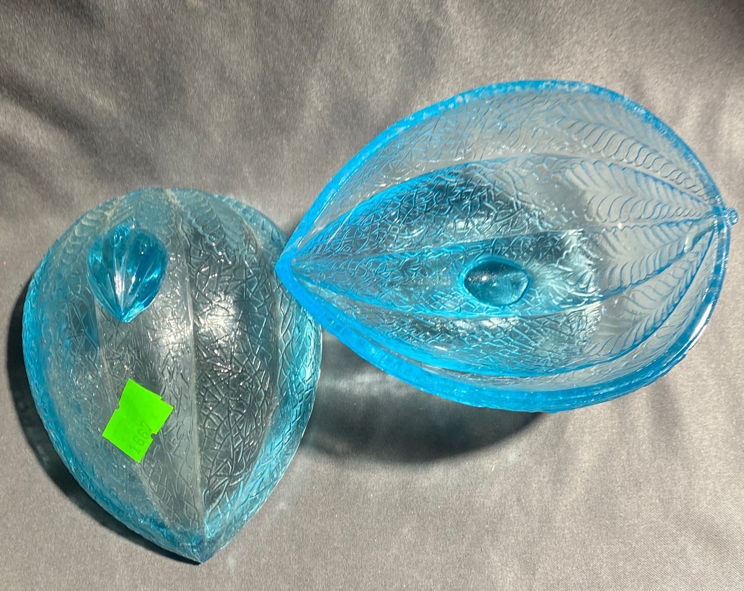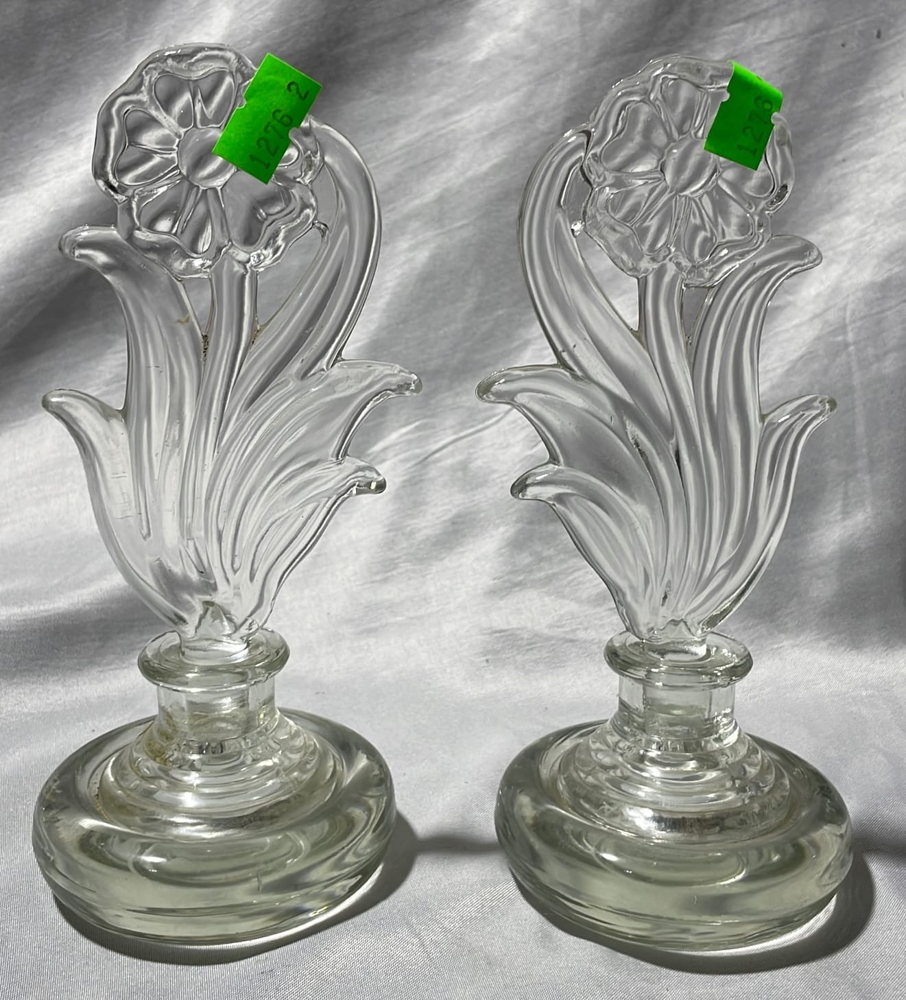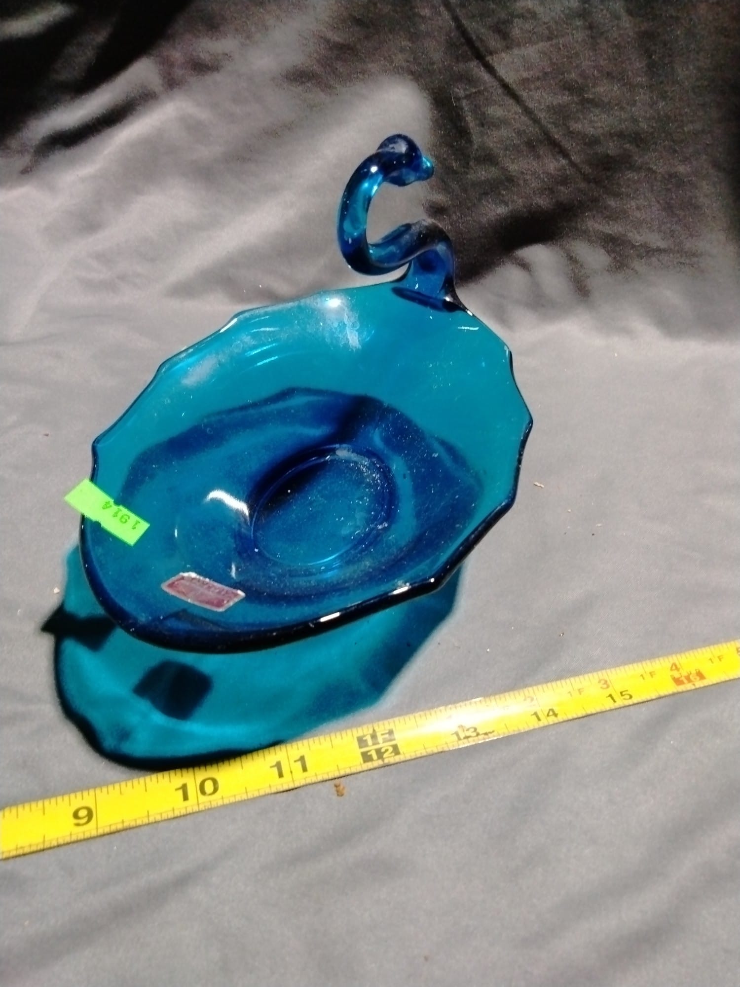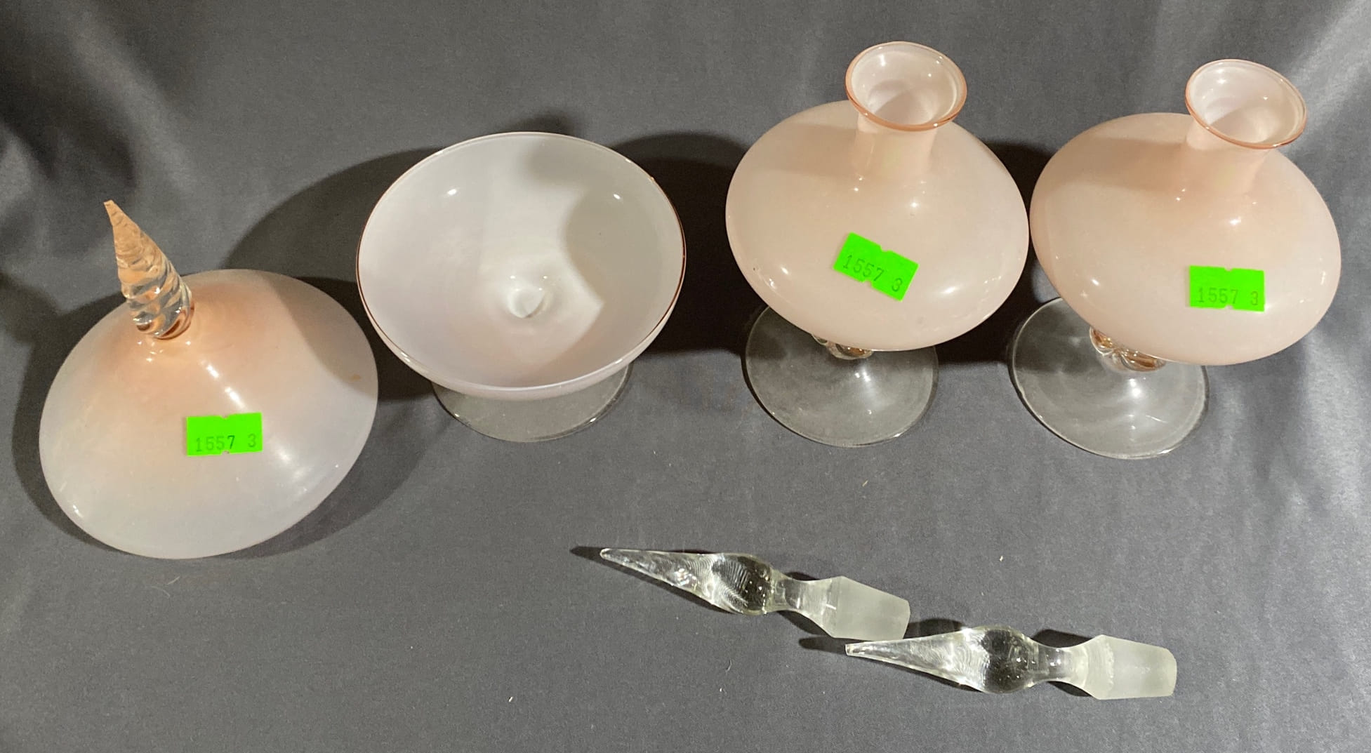 1210 2- Glass bowls 3"x8", 4"x9", relish dish 10", glass utensils-fork is chipped