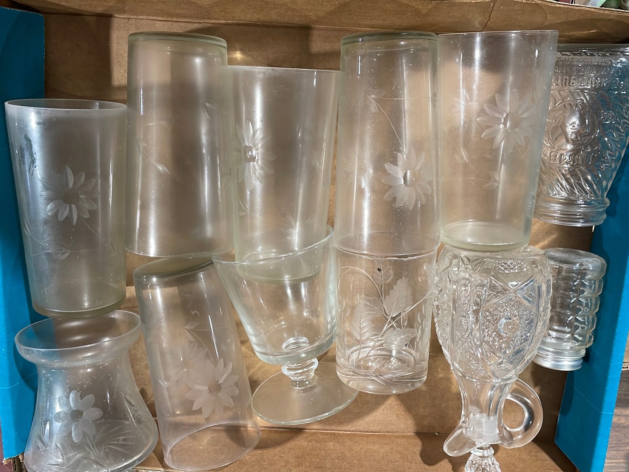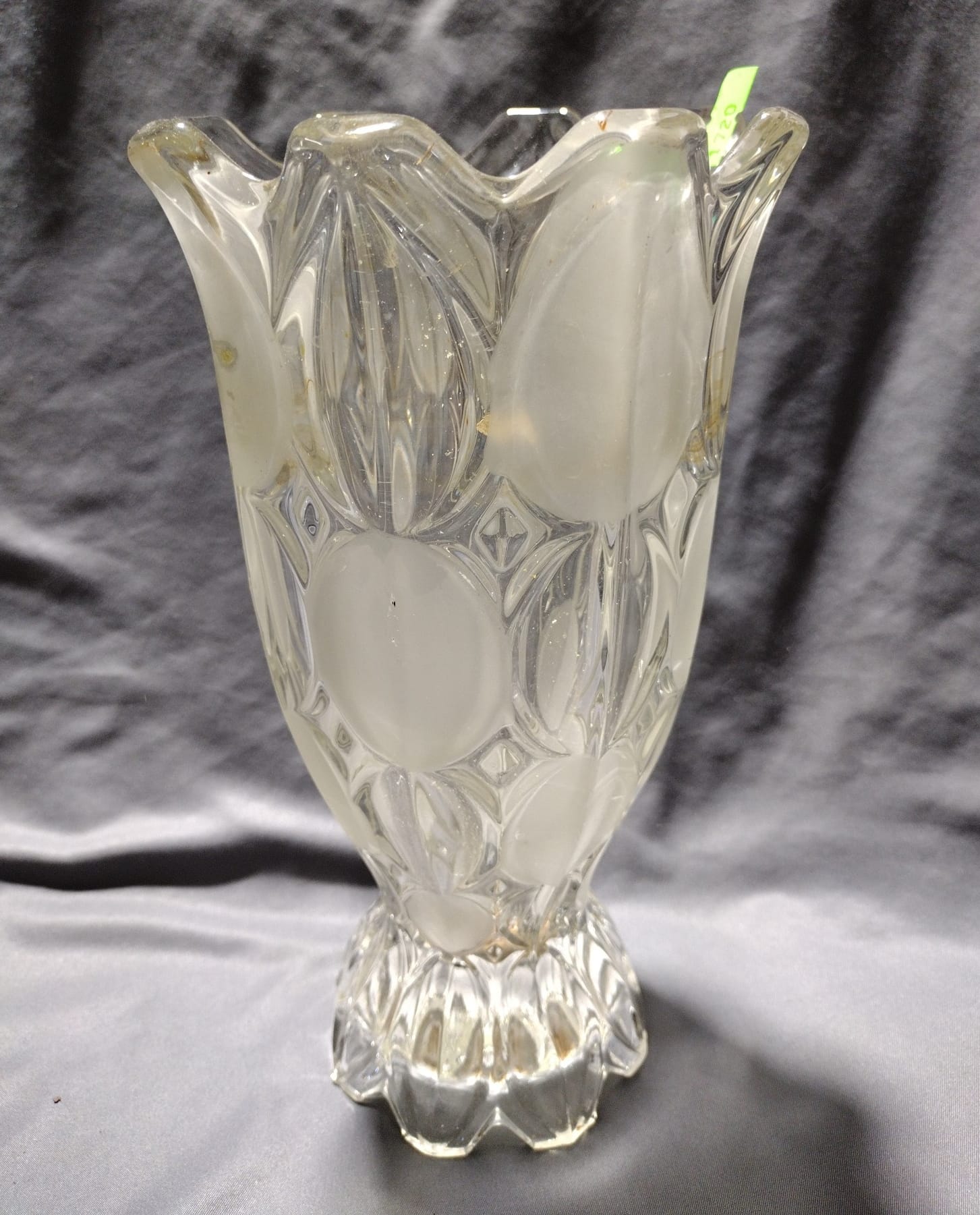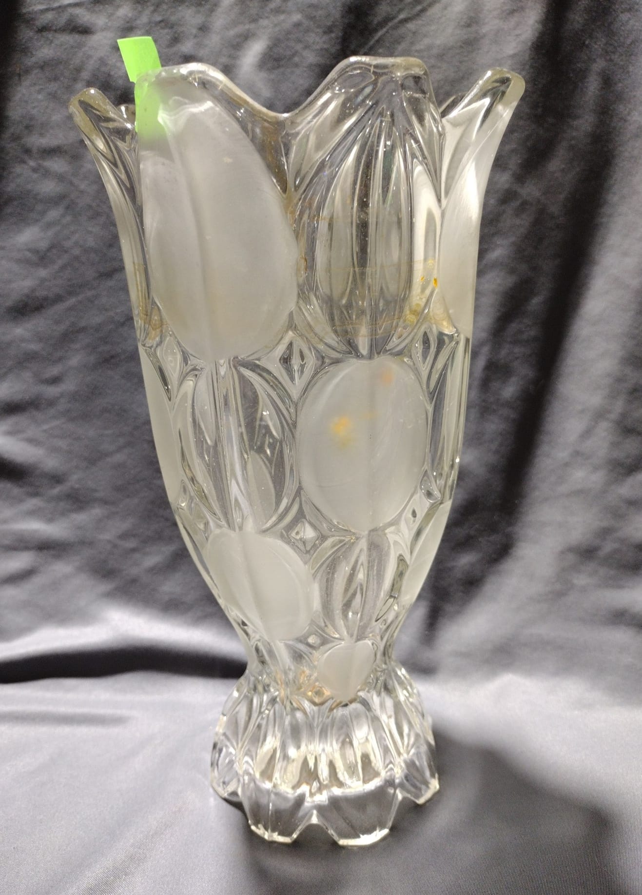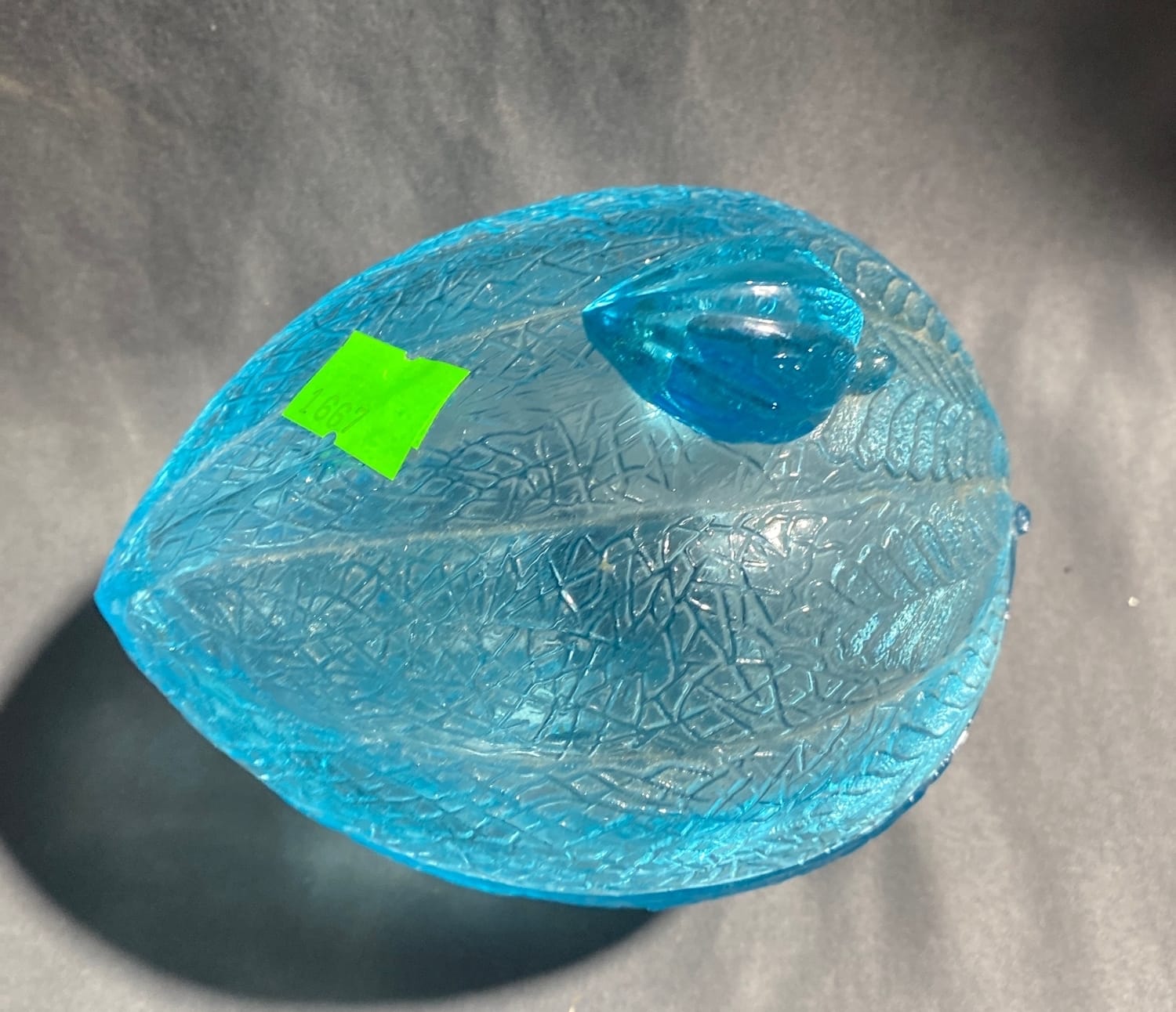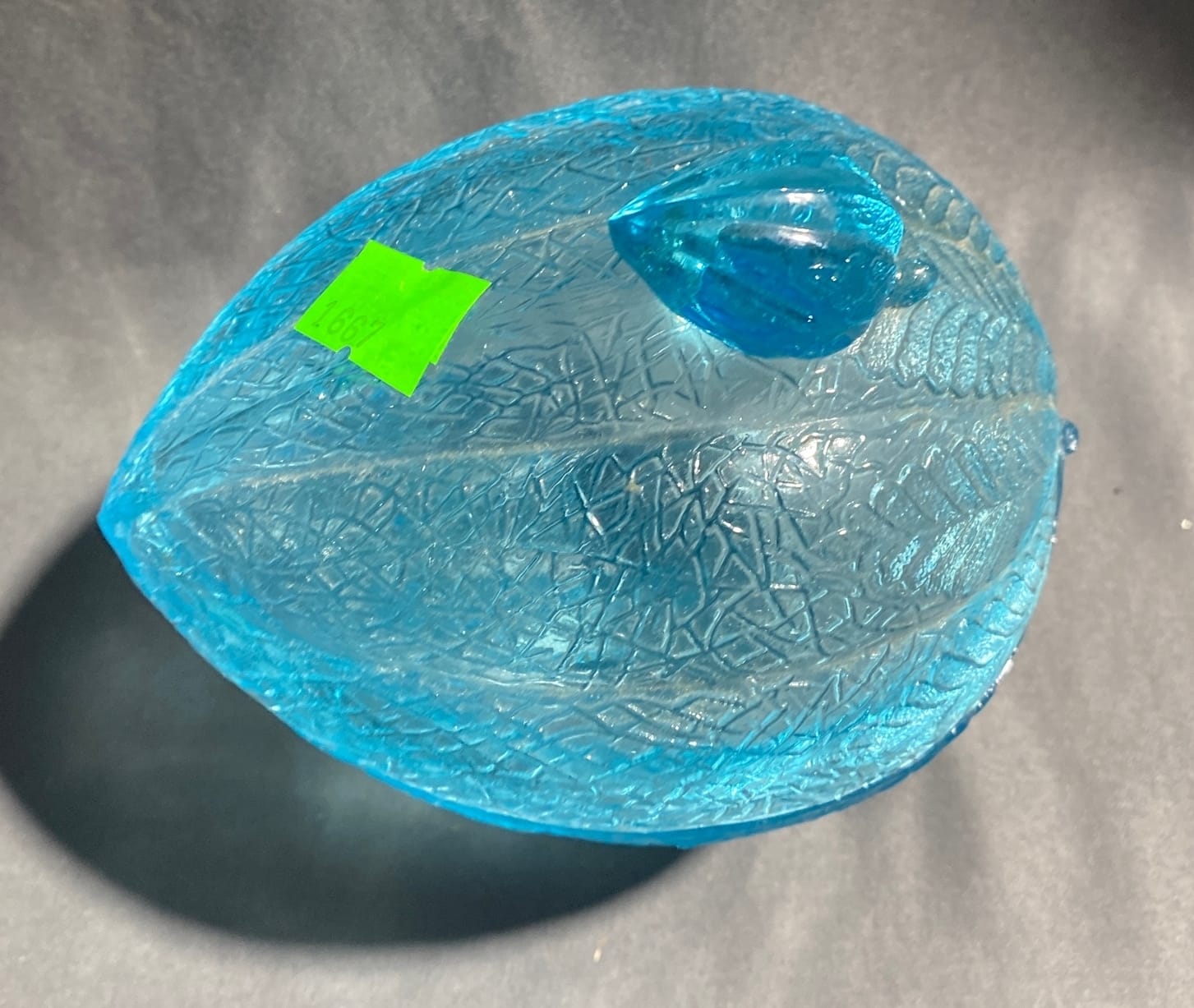 1210 2- Glass bowls 3"x8", 4"x9", relish dish 10", glass utensils-fork is chipped