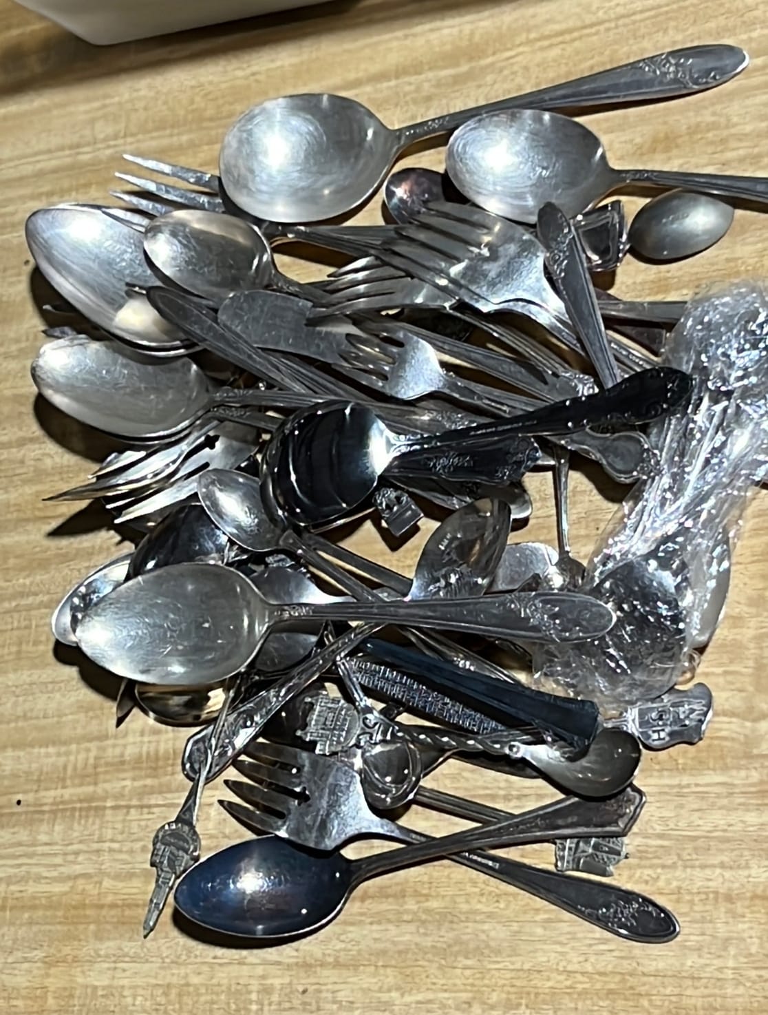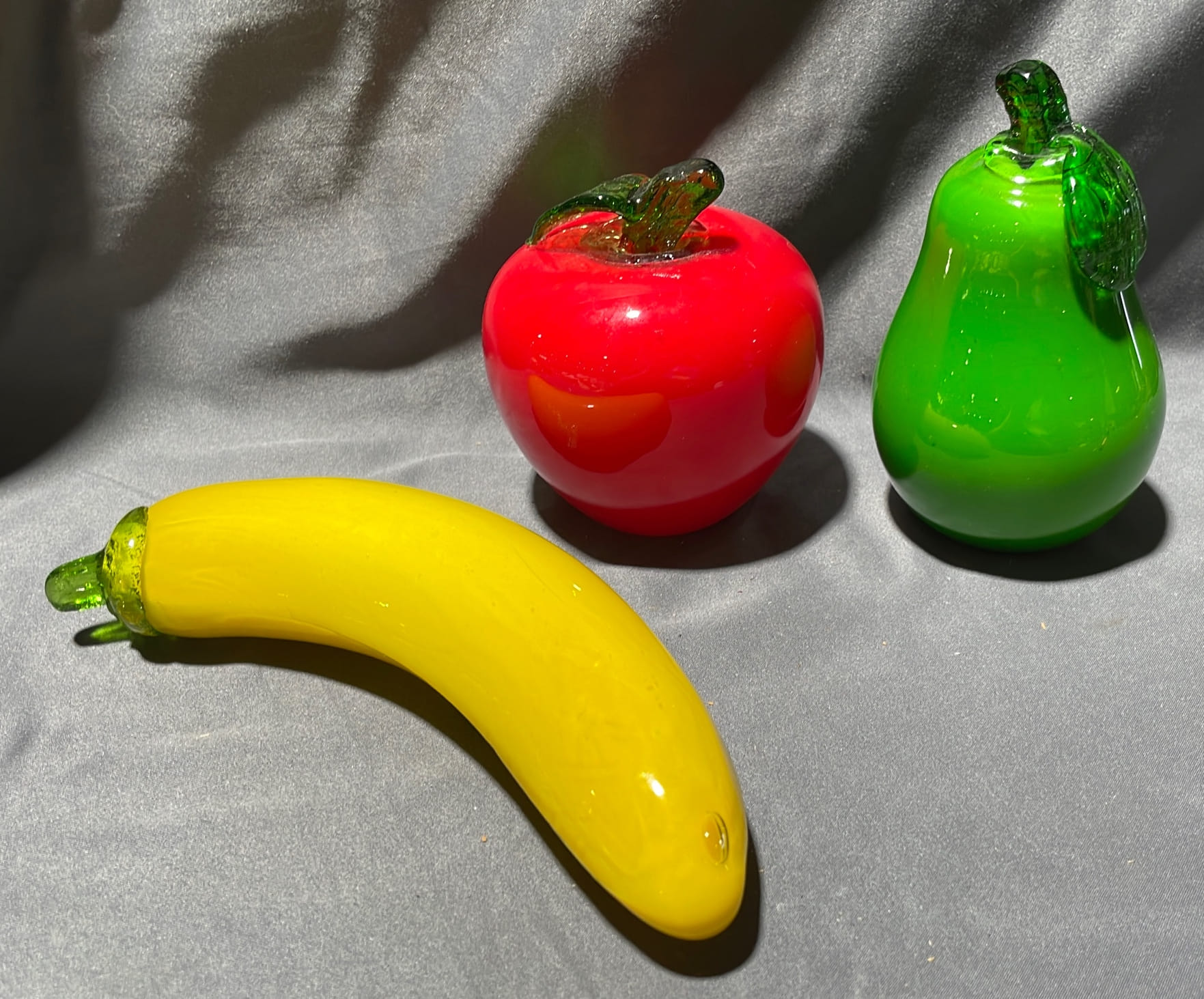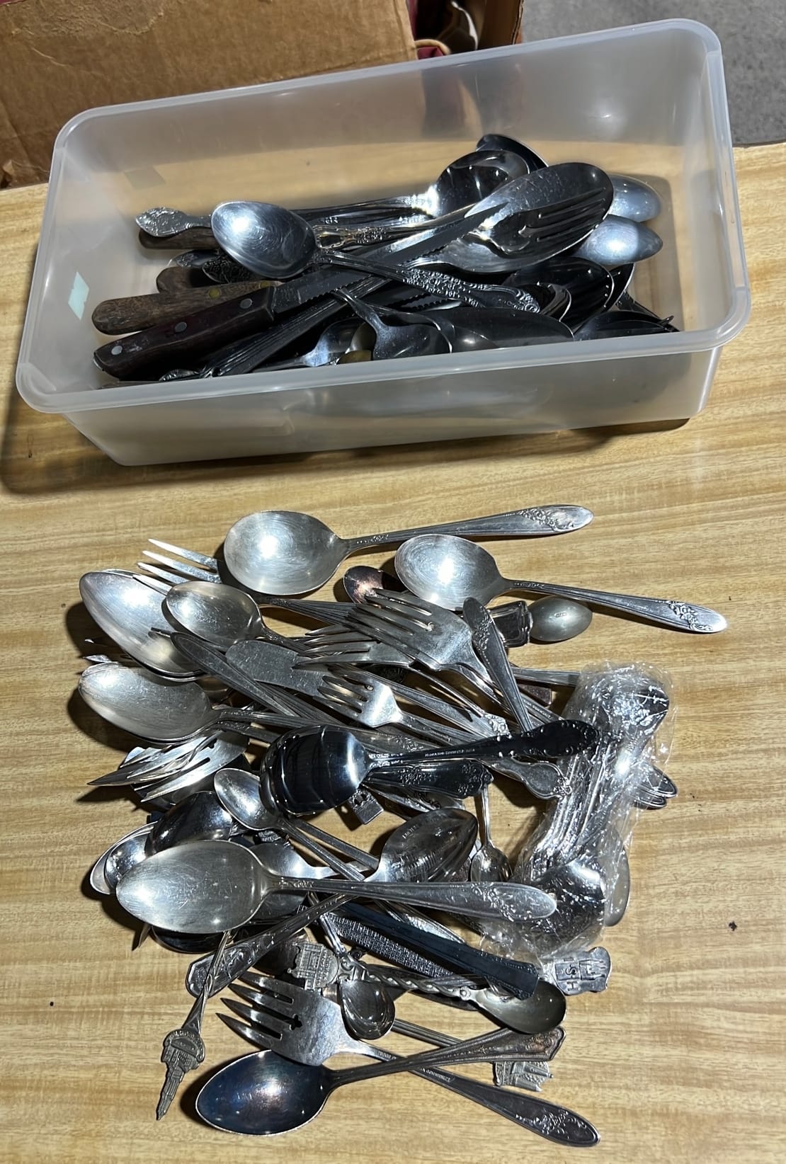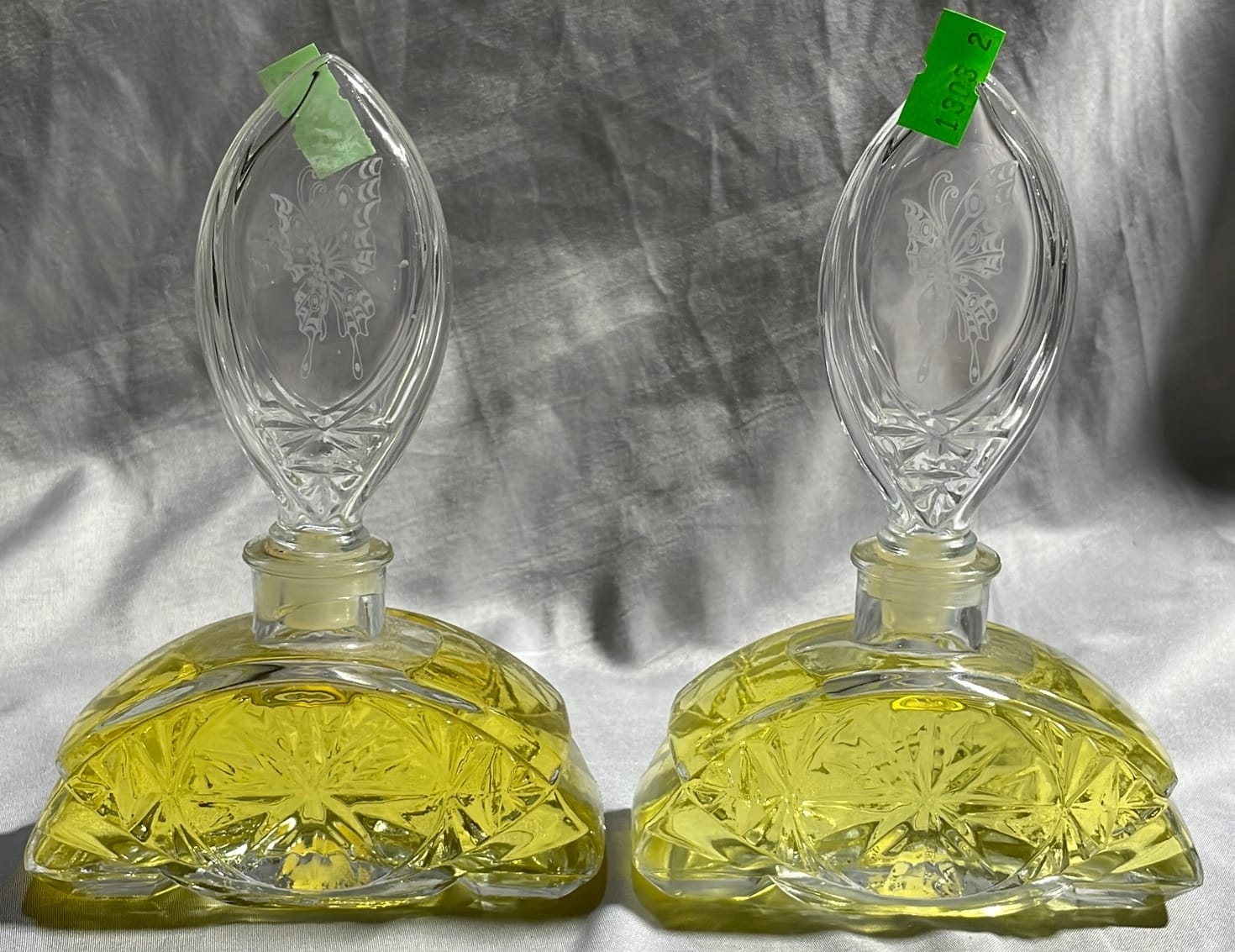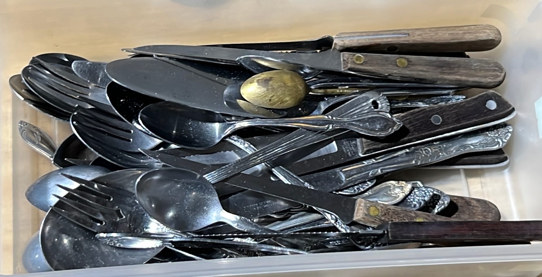 1210 2- Glass bowls 3"x8", 4"x9", relish dish 10", glass utensils-fork is chipped