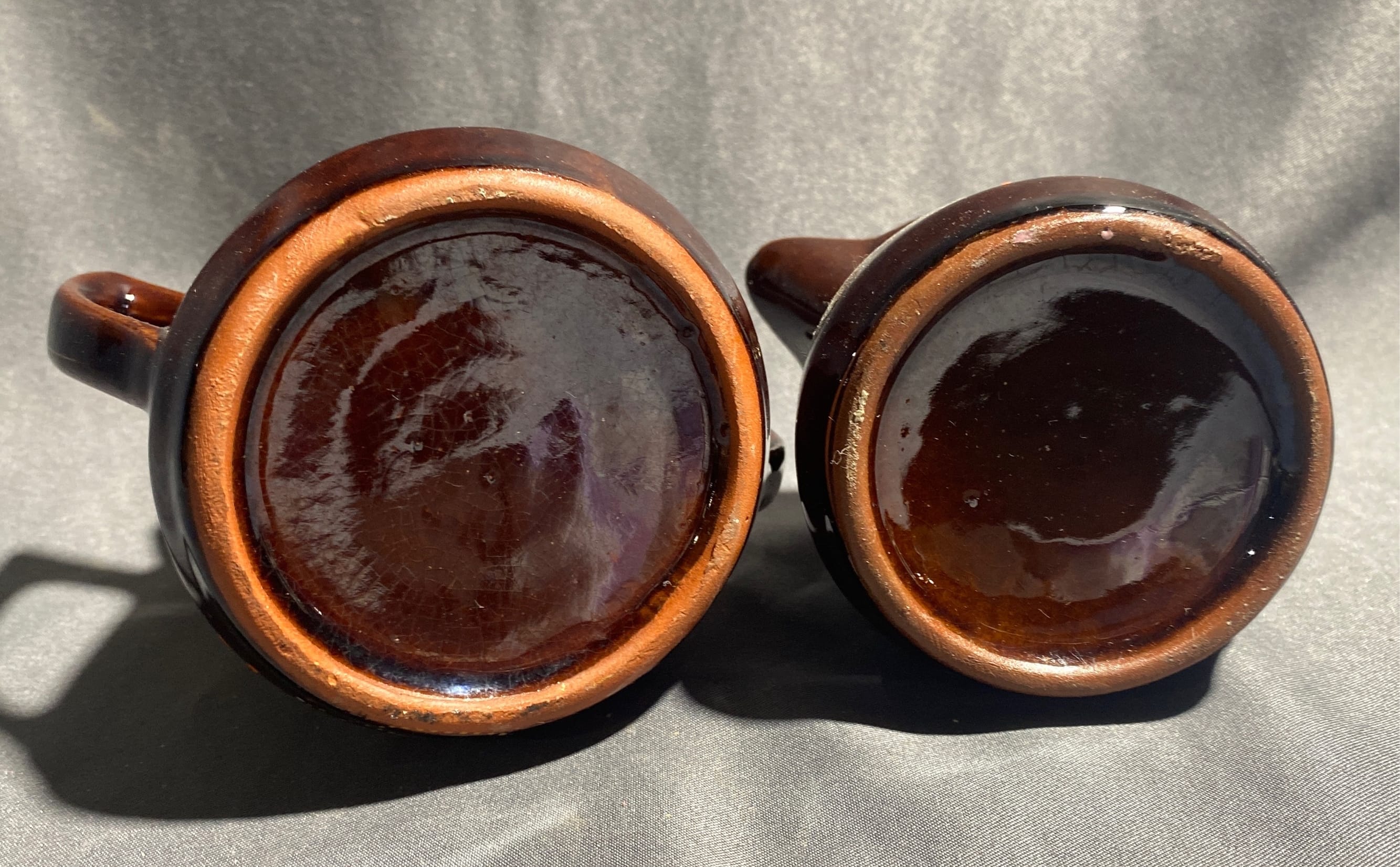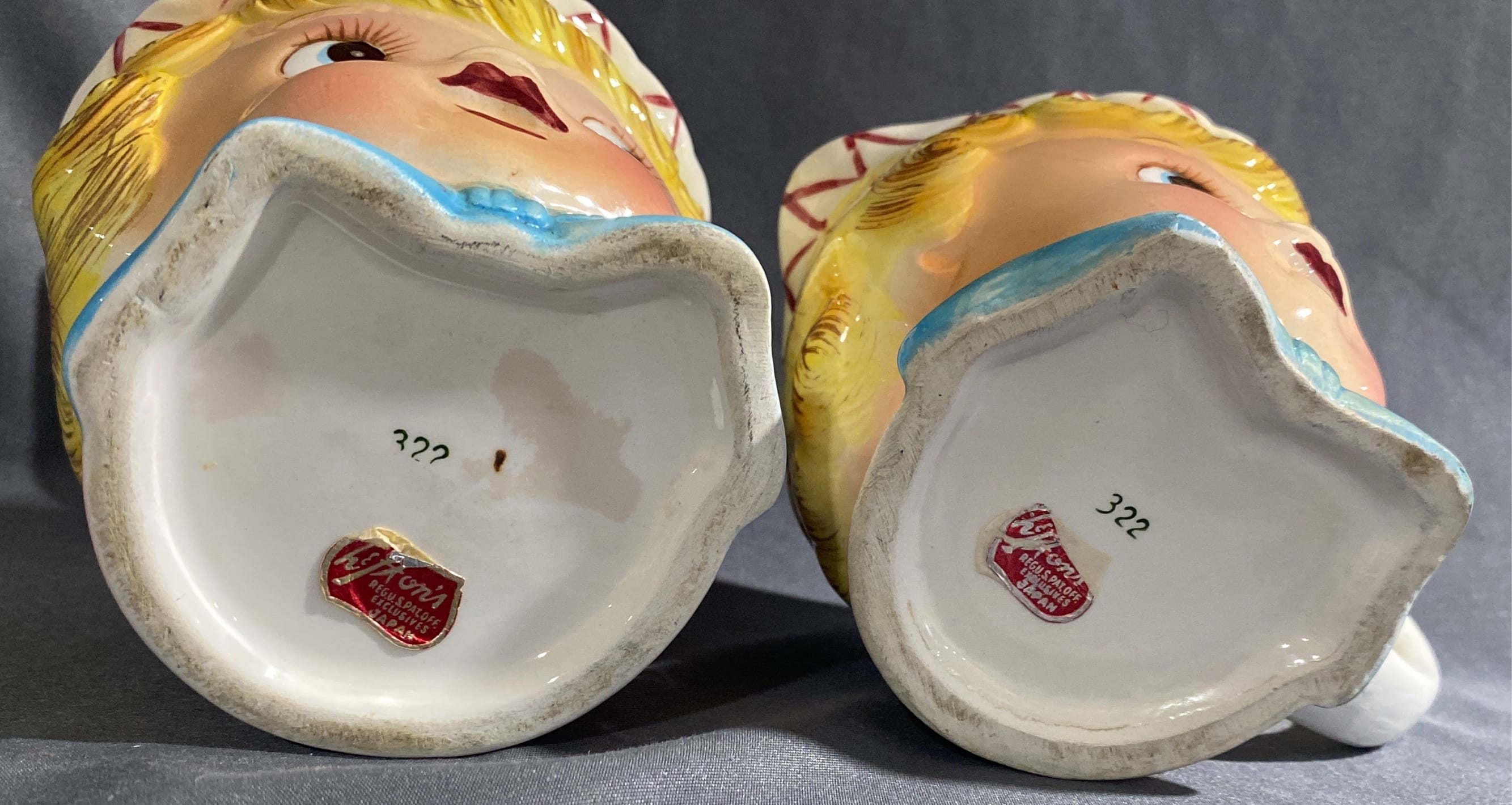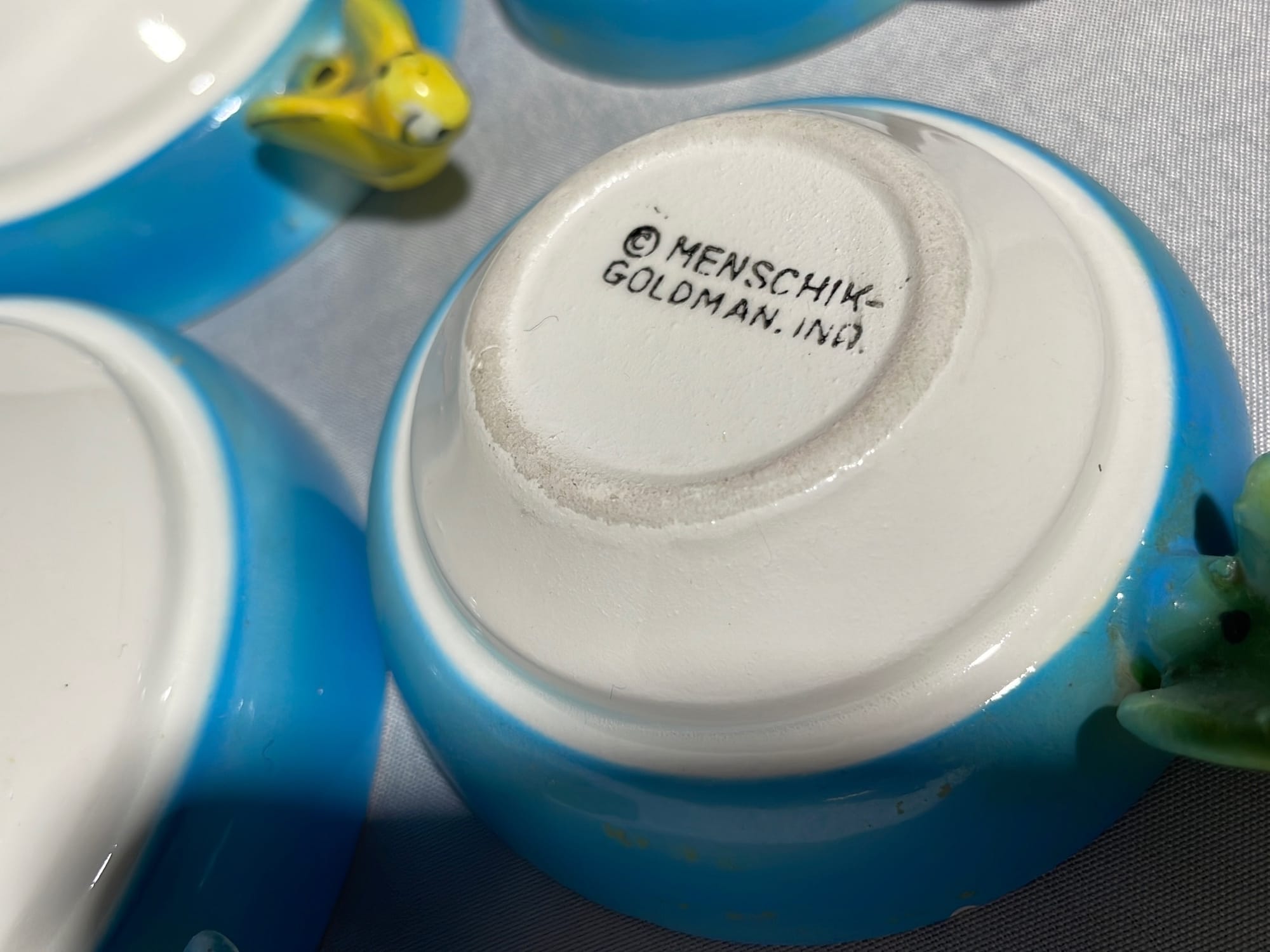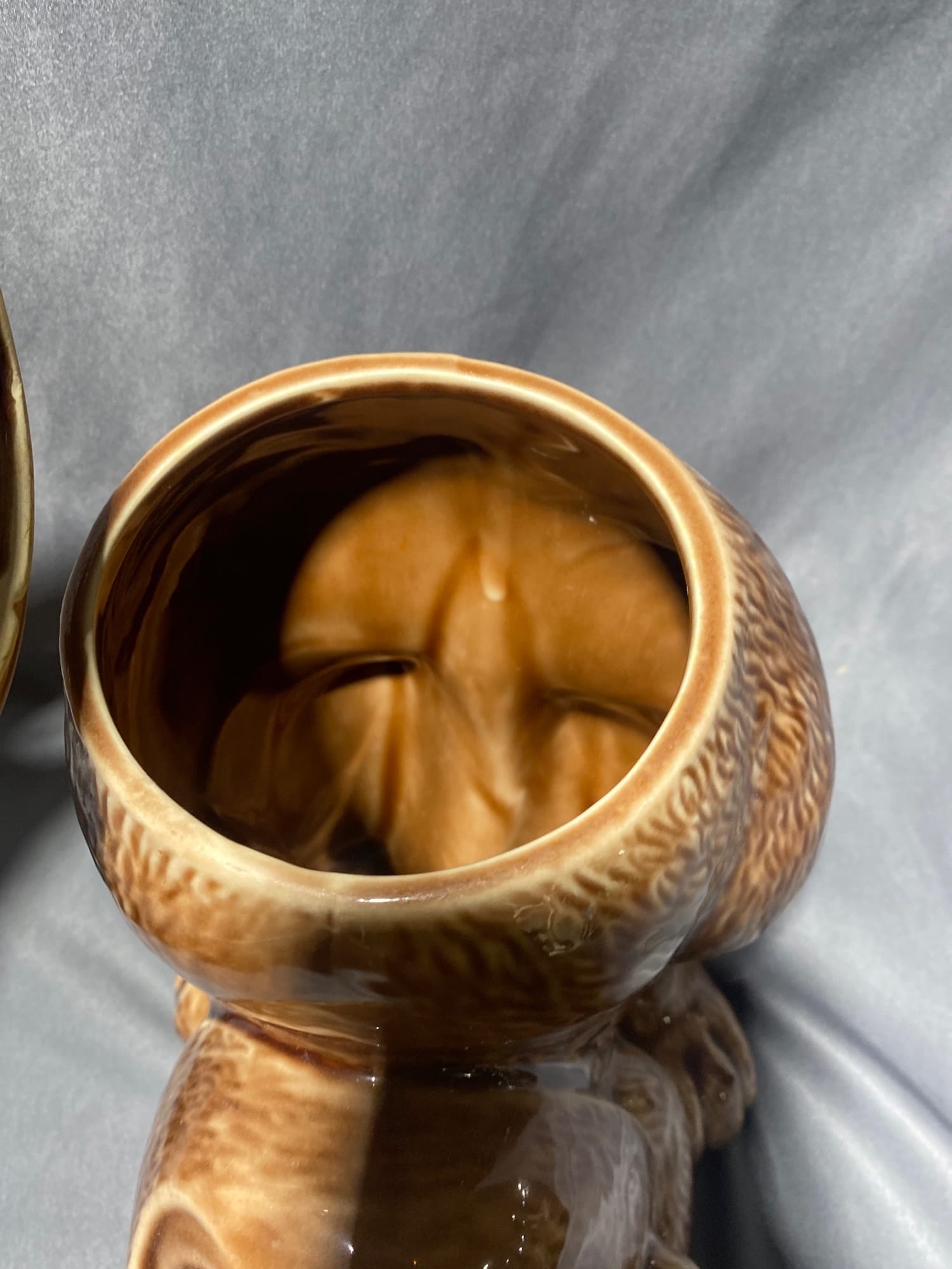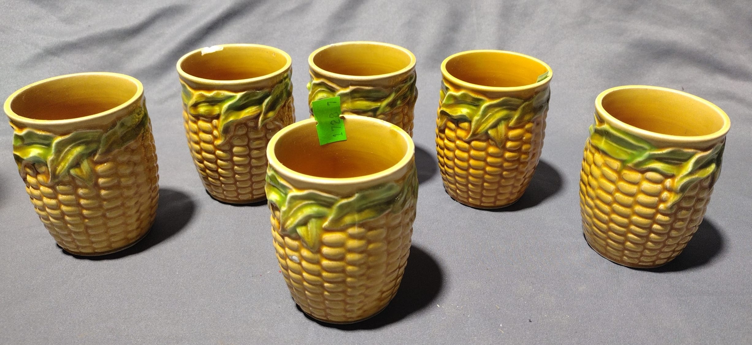 1211 Phlatzgraff ceramic snack trays 9", McCoy ceramic salt and pepper shakers 4", McCoy ceramic mugs-rim is chipped on one 3"