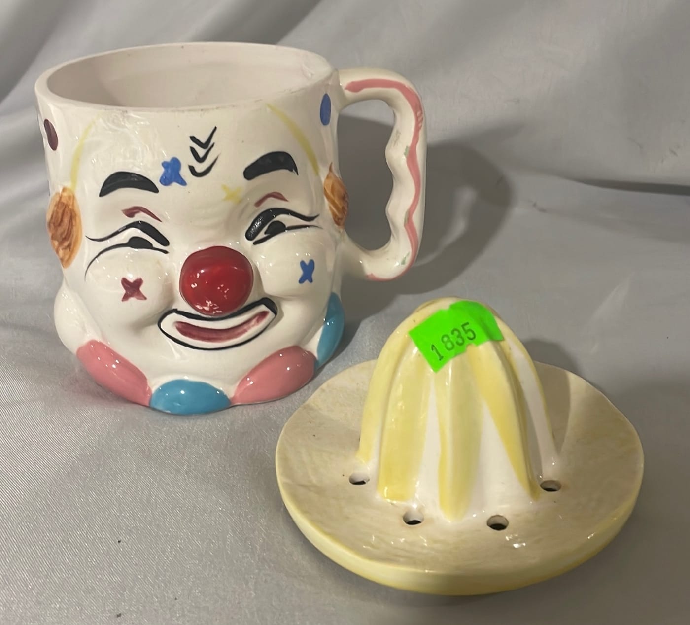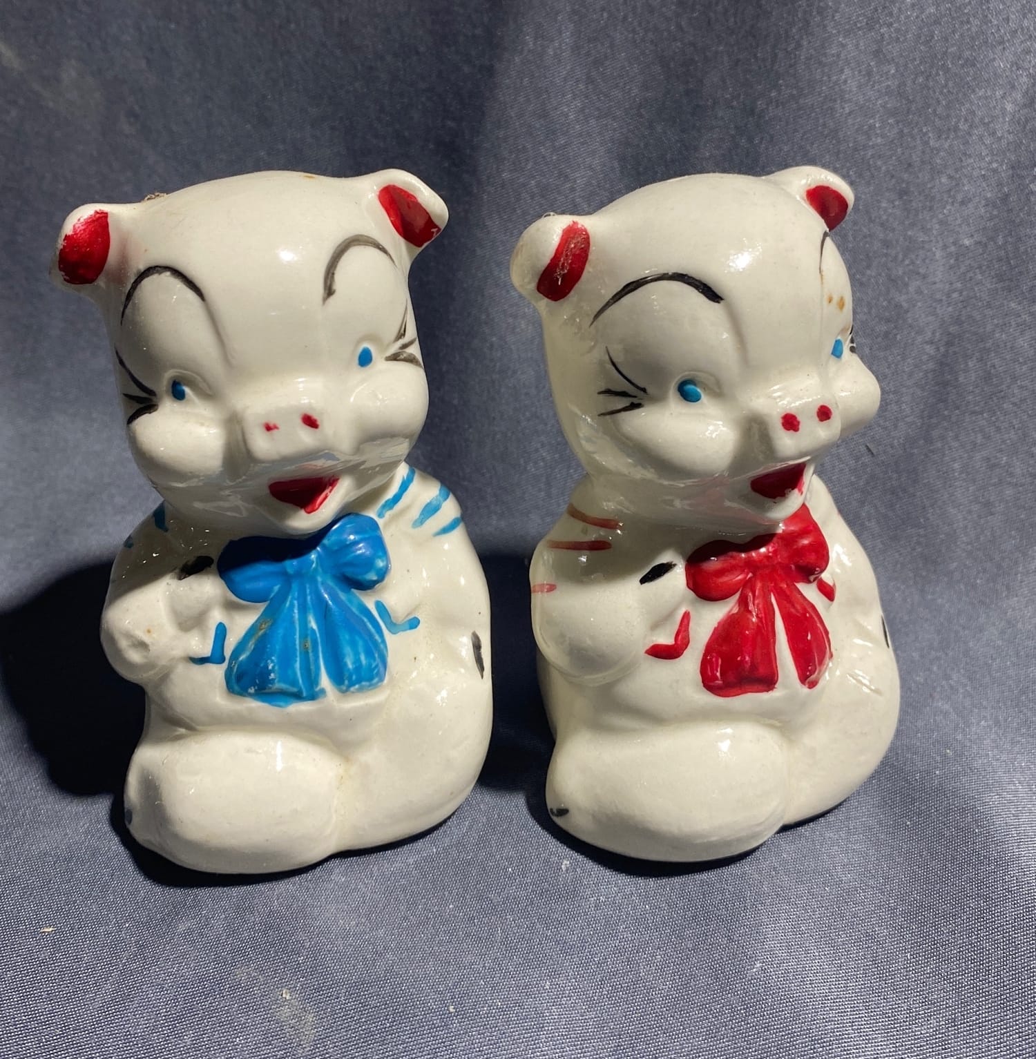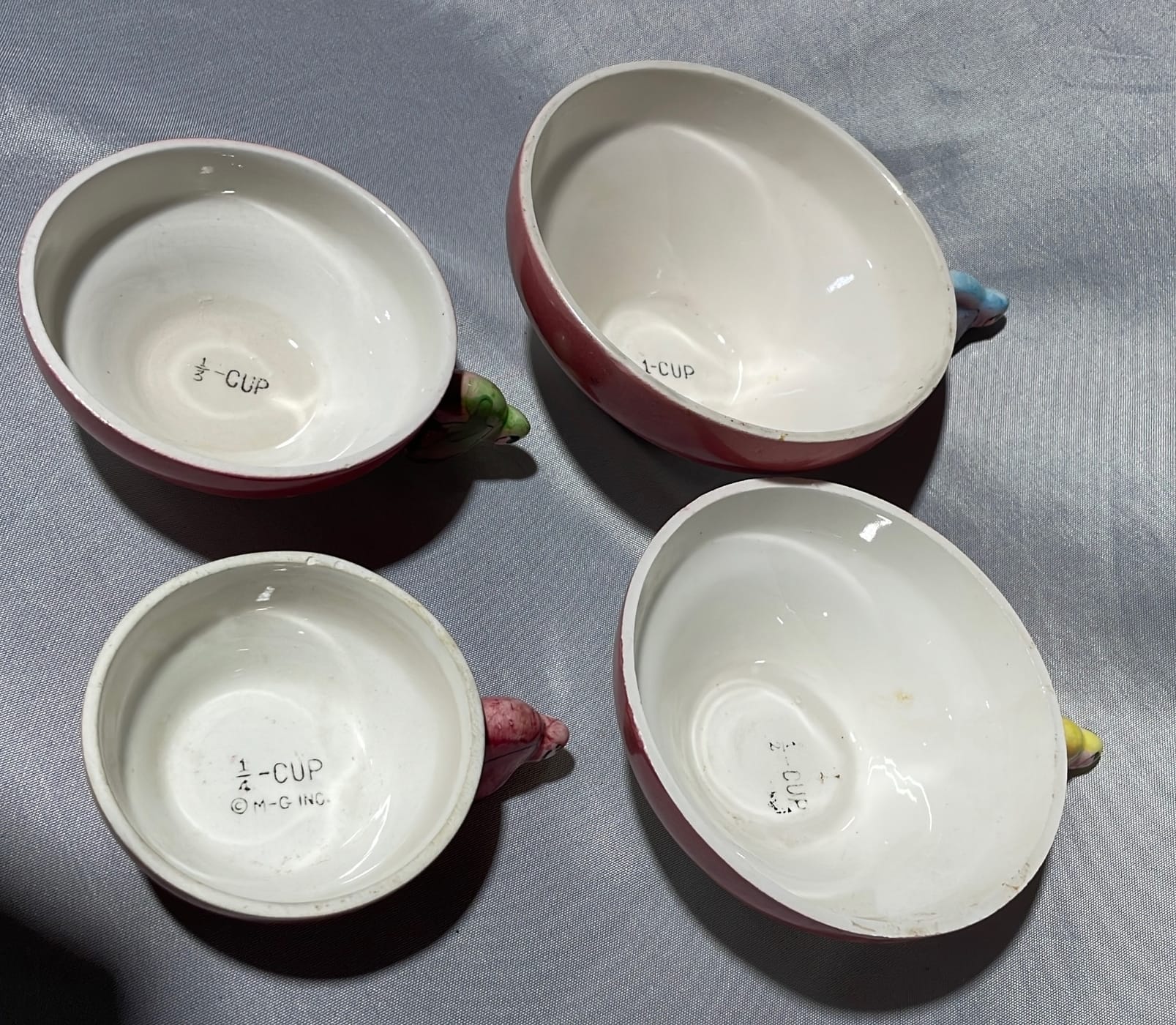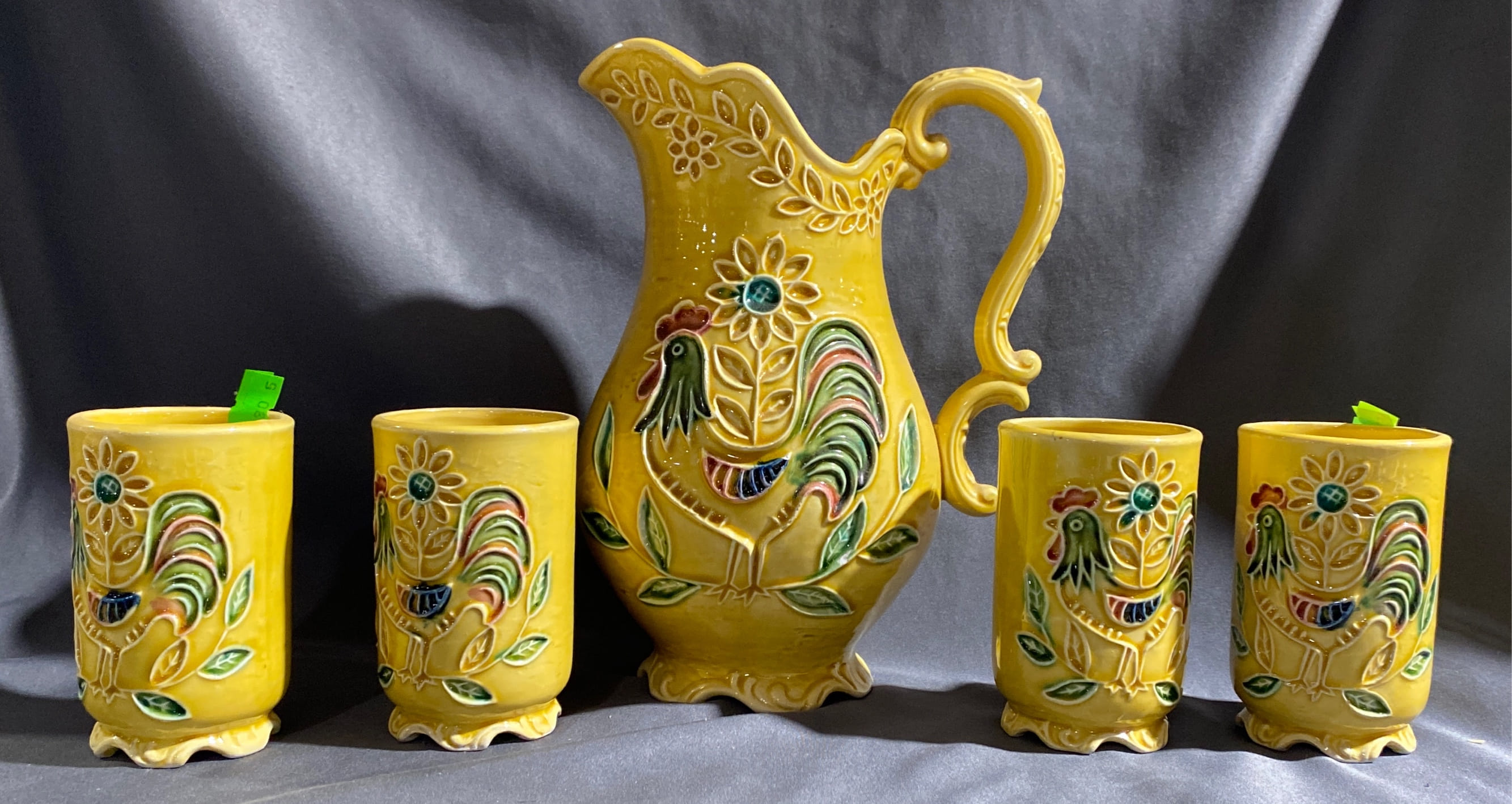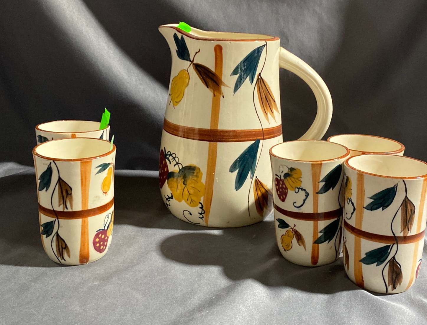 1211 Phlatzgraff ceramic snack trays 9", McCoy ceramic salt and pepper shakers 4", McCoy ceramic mugs-rim is chipped on one 3"