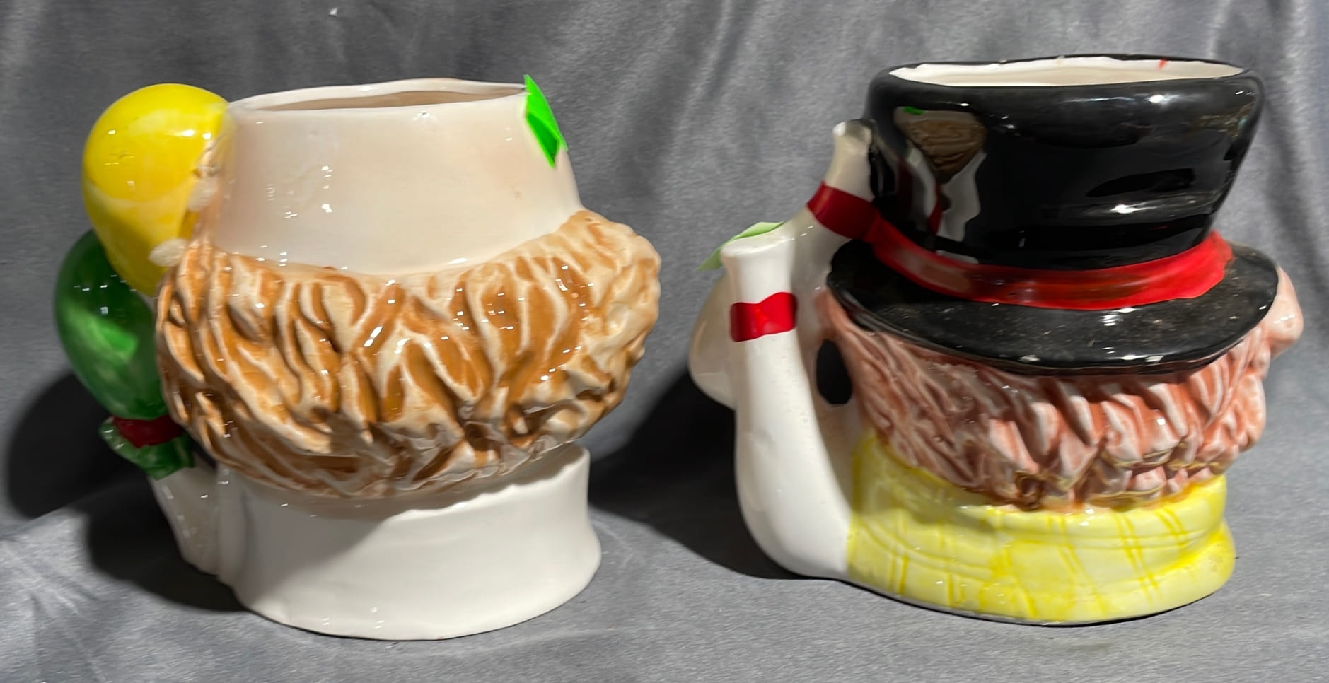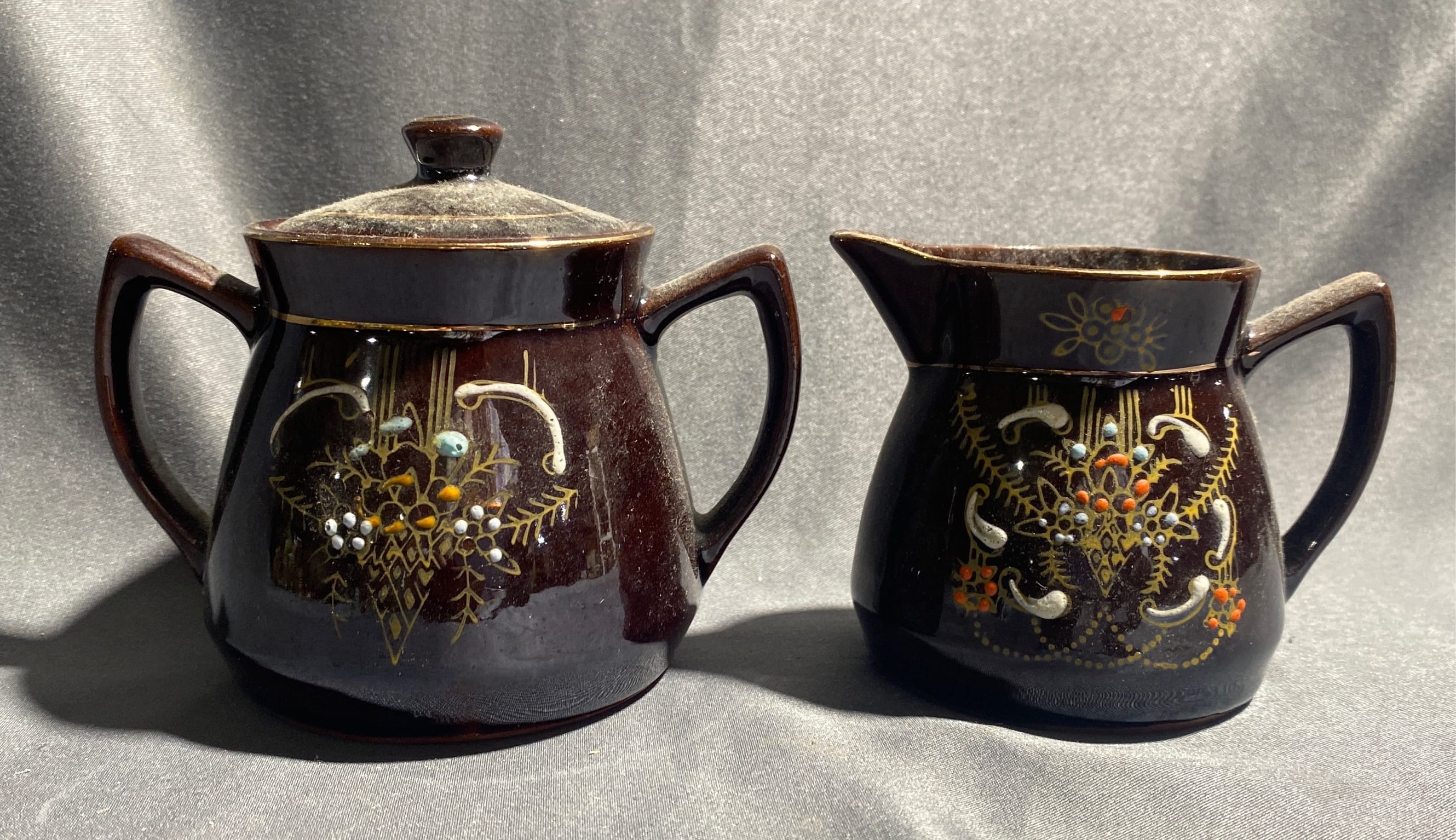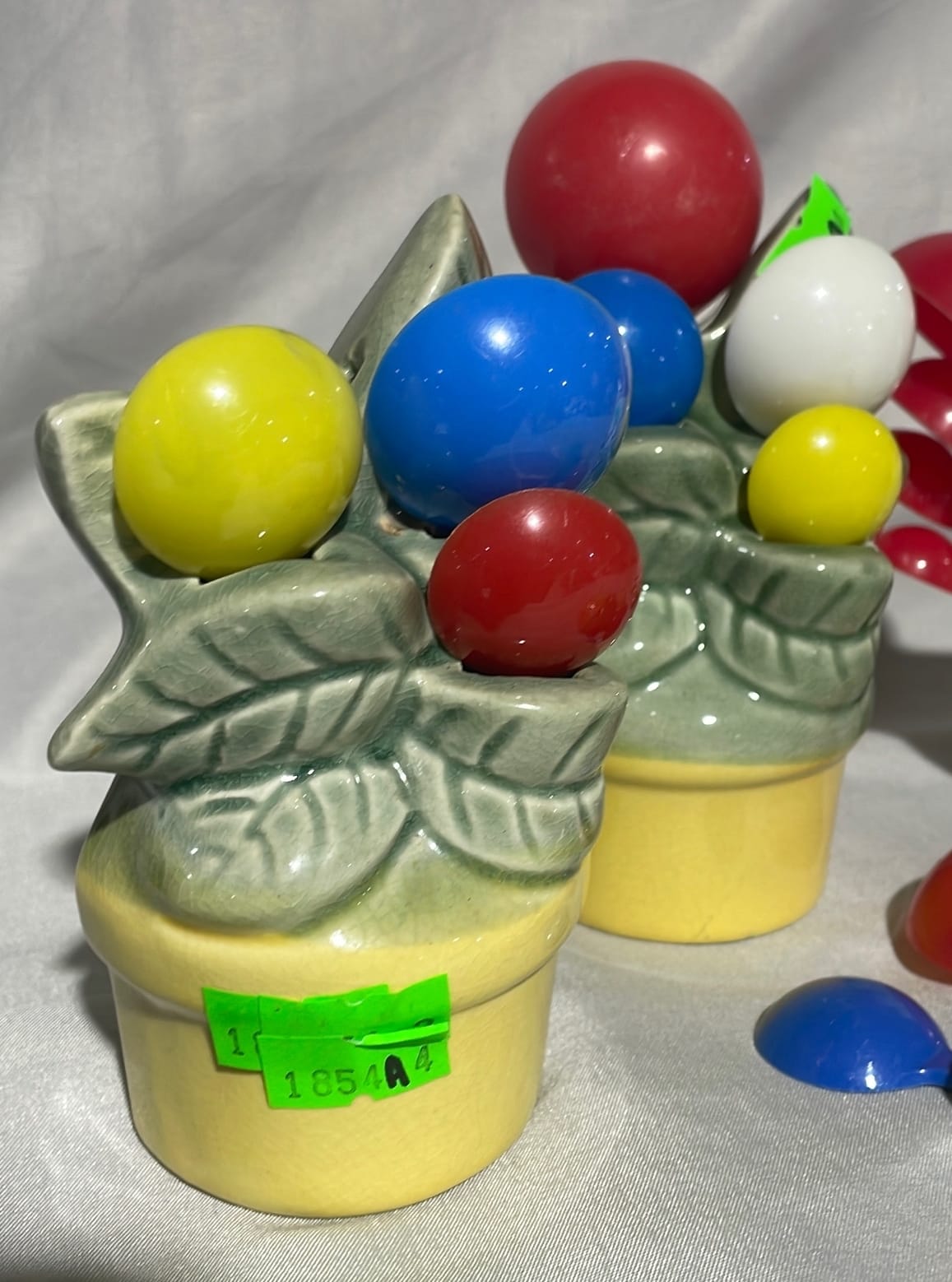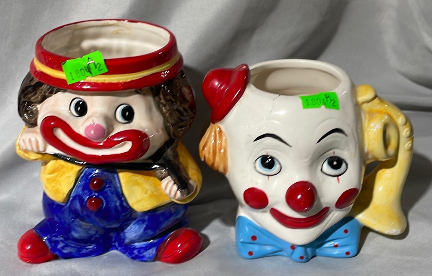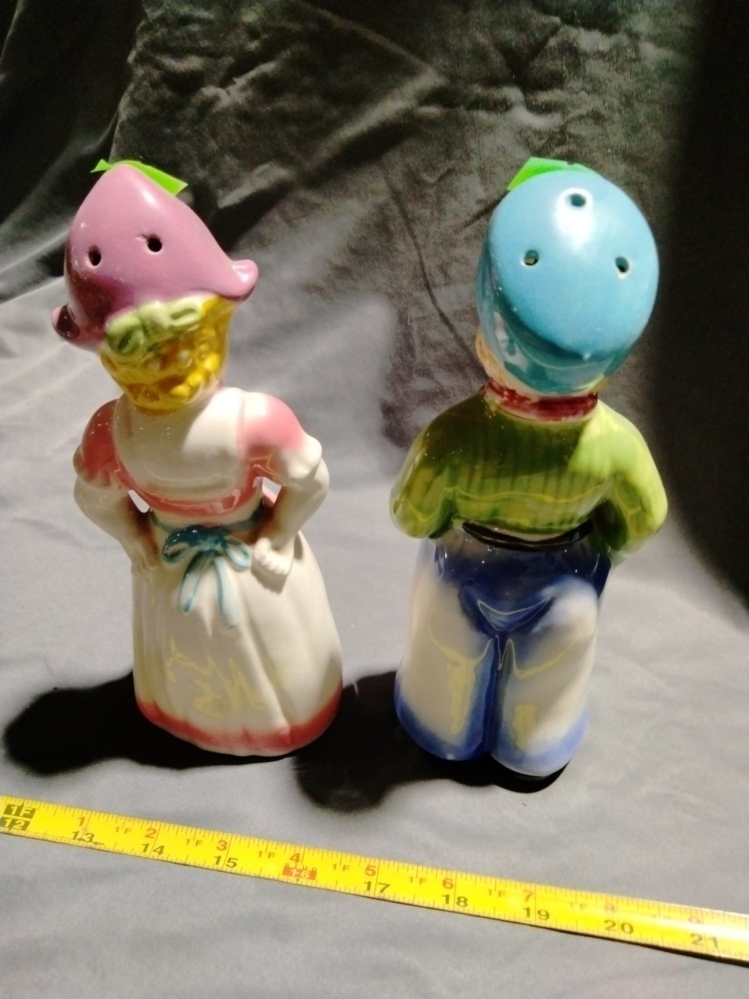 1211 Phlatzgraff ceramic snack trays 9", McCoy ceramic salt and pepper shakers 4", McCoy ceramic mugs-rim is chipped on one 3"