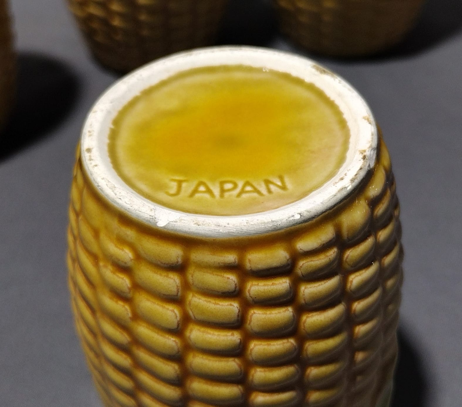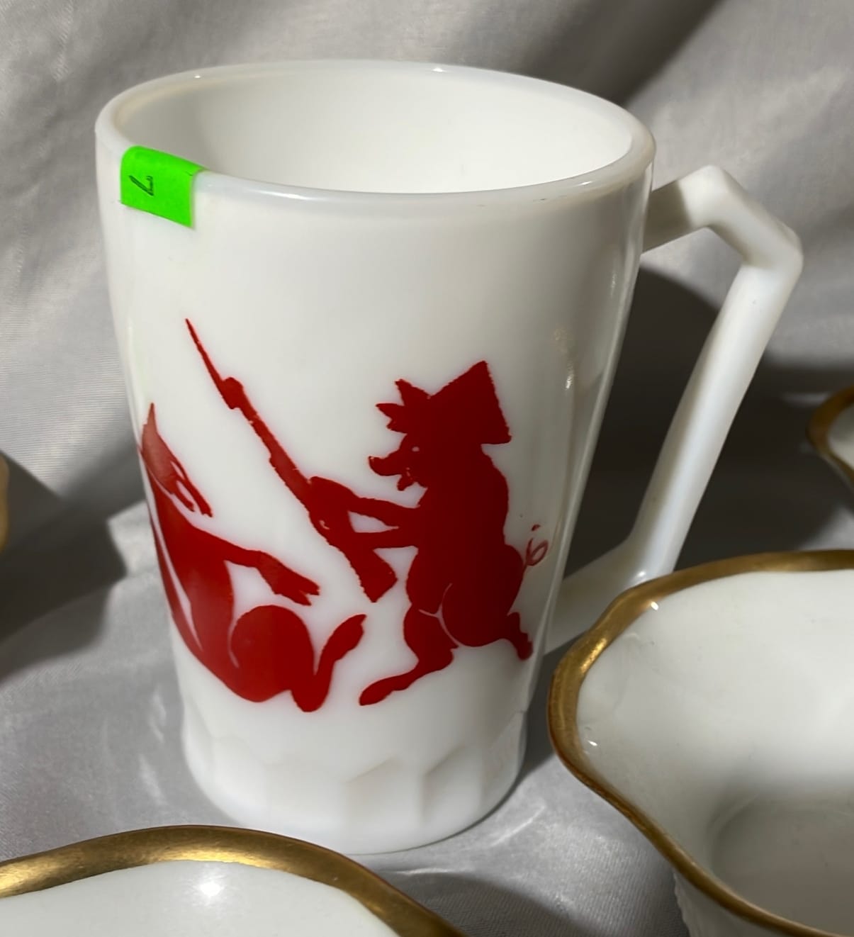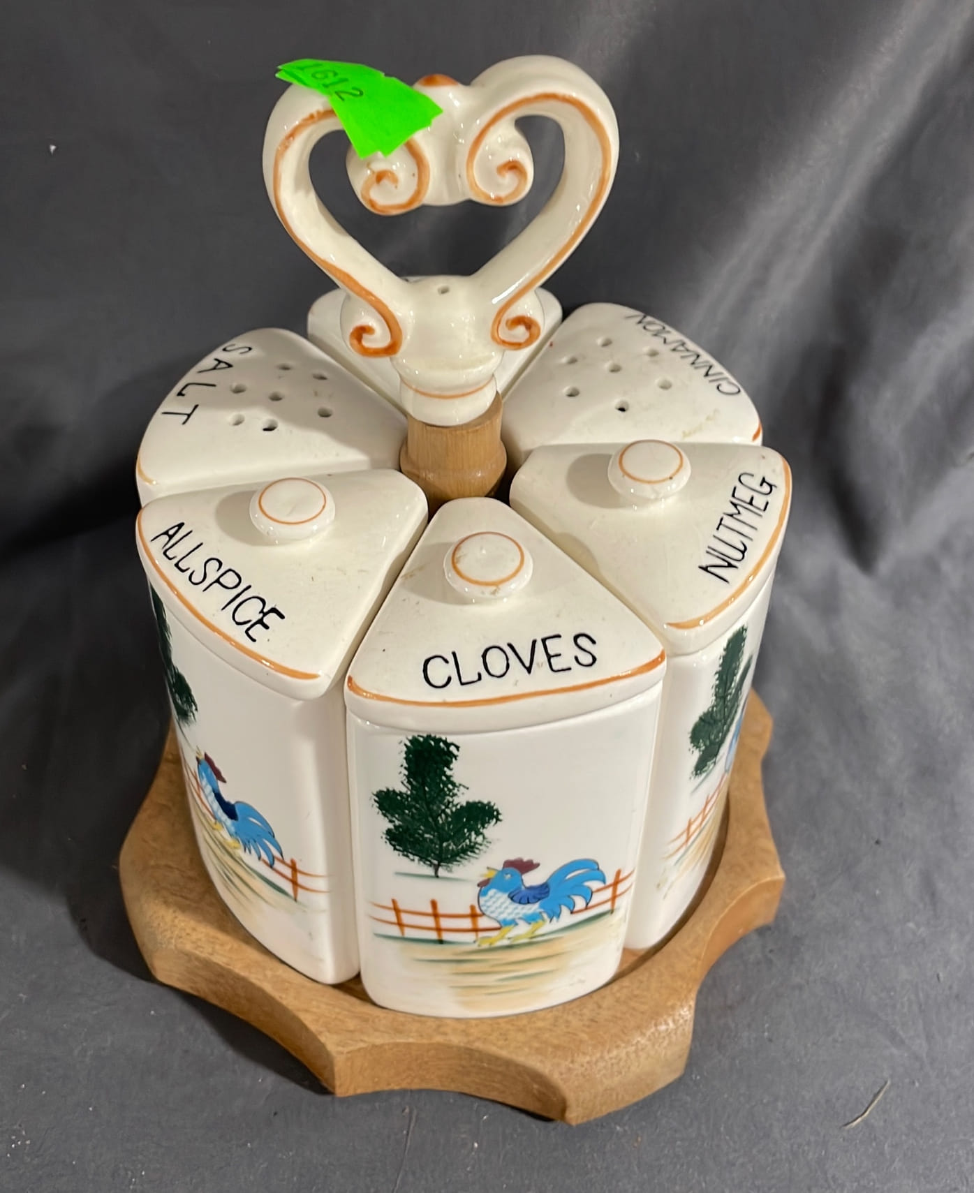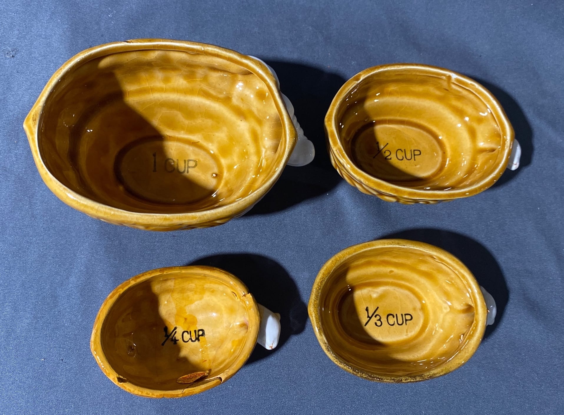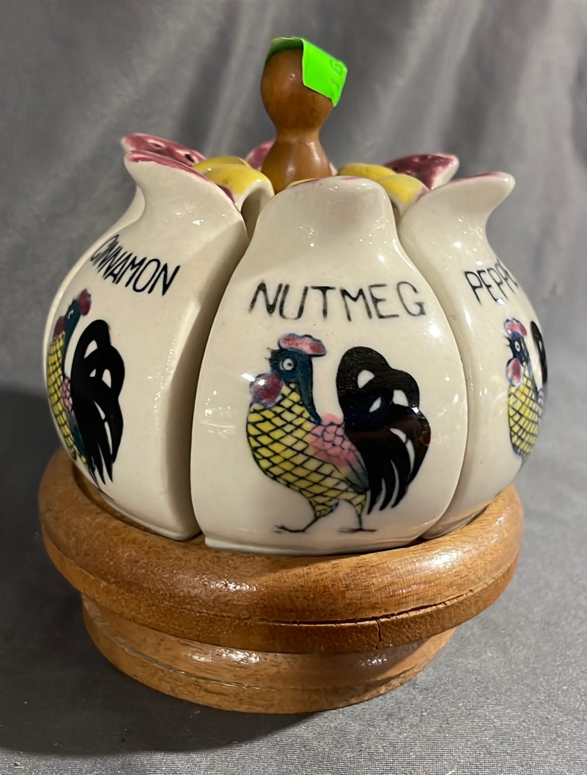 1211 Phlatzgraff ceramic snack trays 9", McCoy ceramic salt and pepper shakers 4", McCoy ceramic mugs-rim is chipped on one 3"