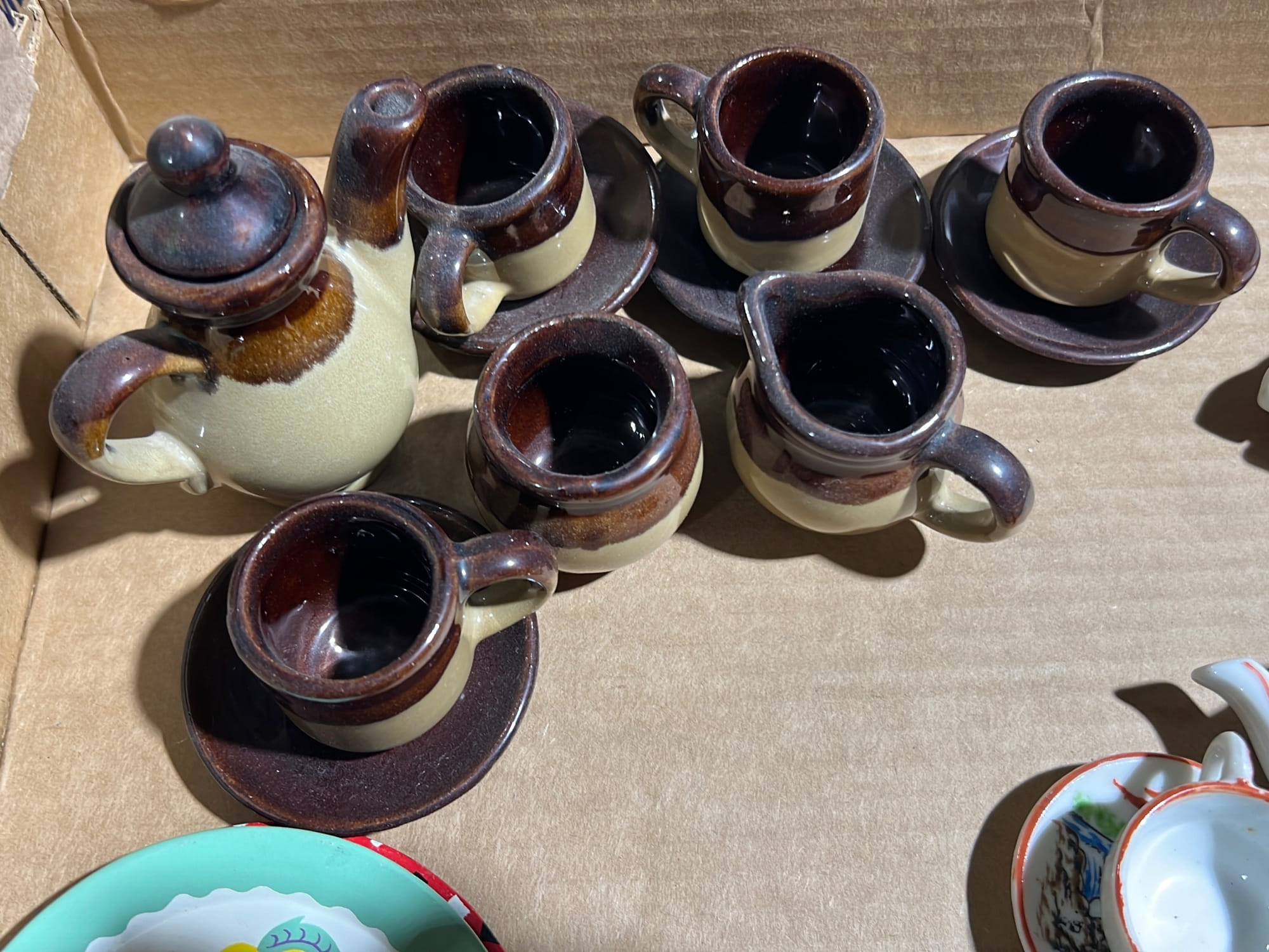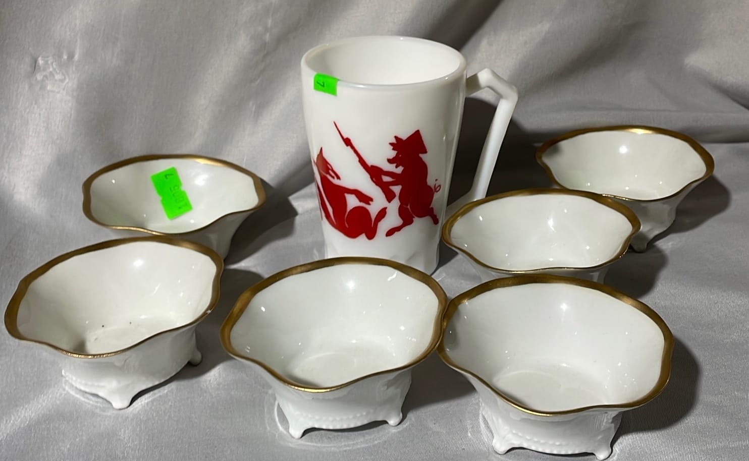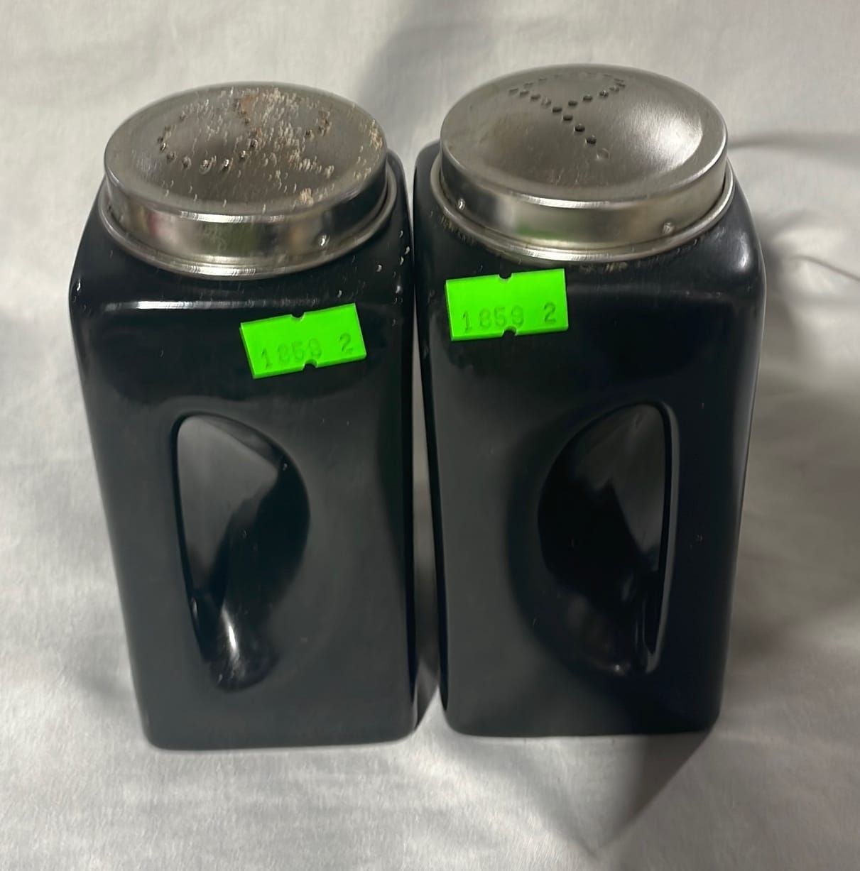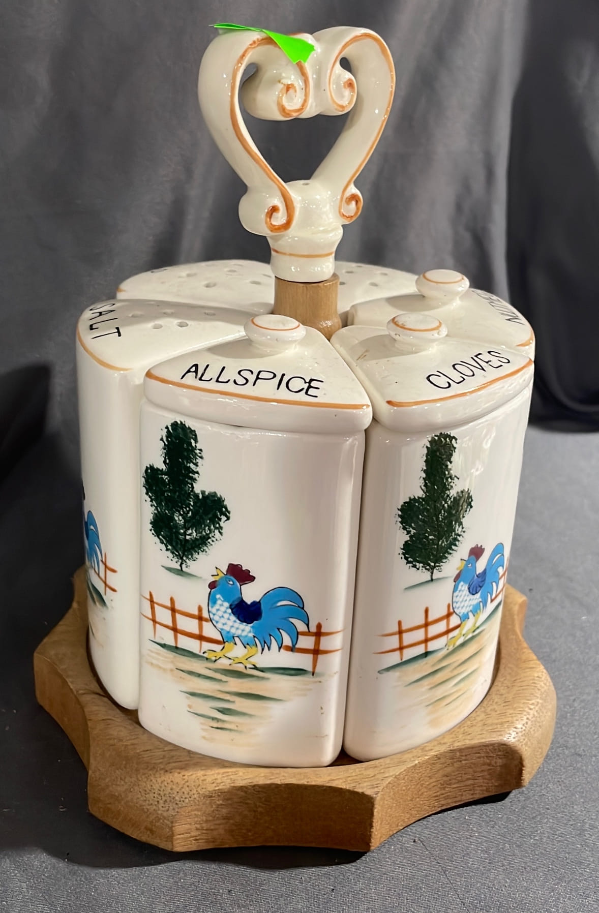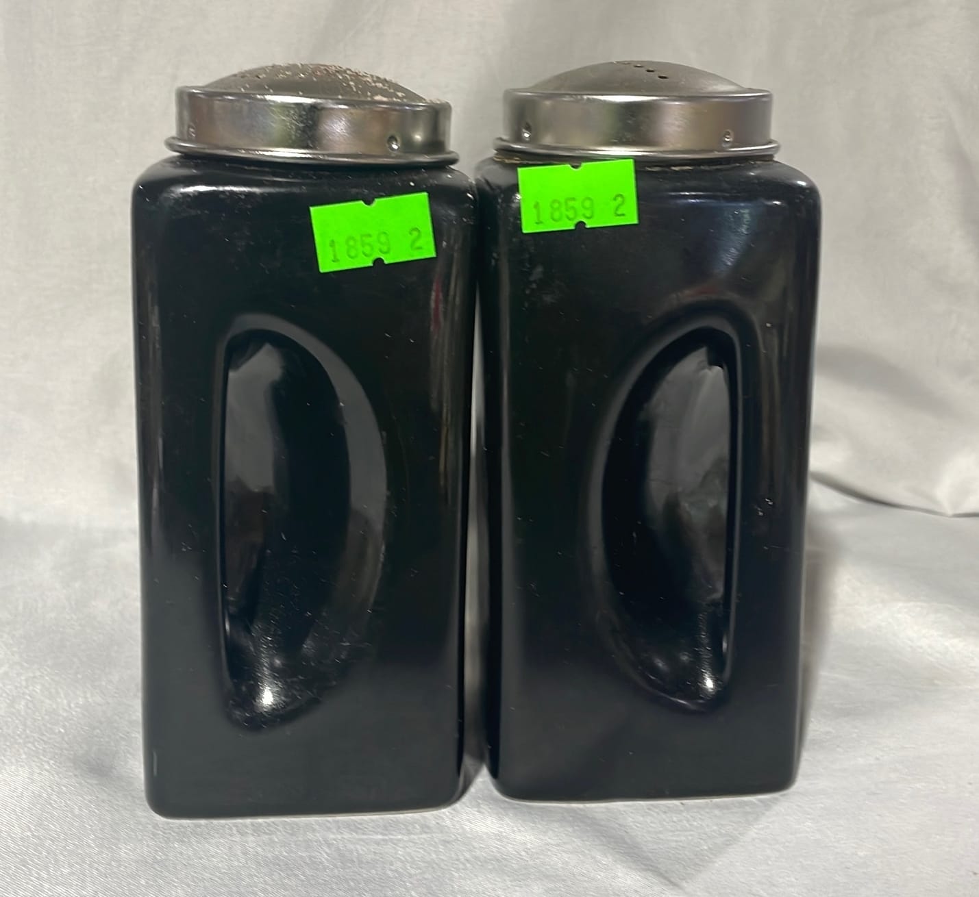 1211 Phlatzgraff ceramic snack trays 9", McCoy ceramic salt and pepper shakers 4", McCoy ceramic mugs-rim is chipped on one 3"