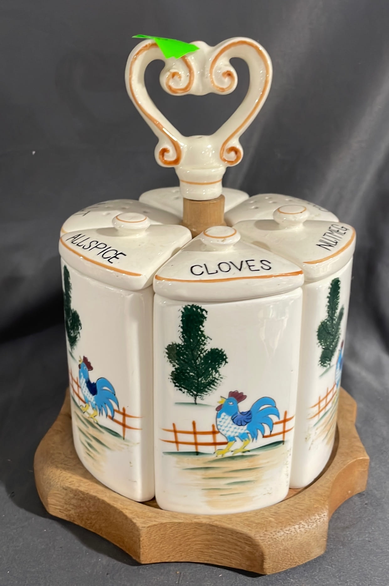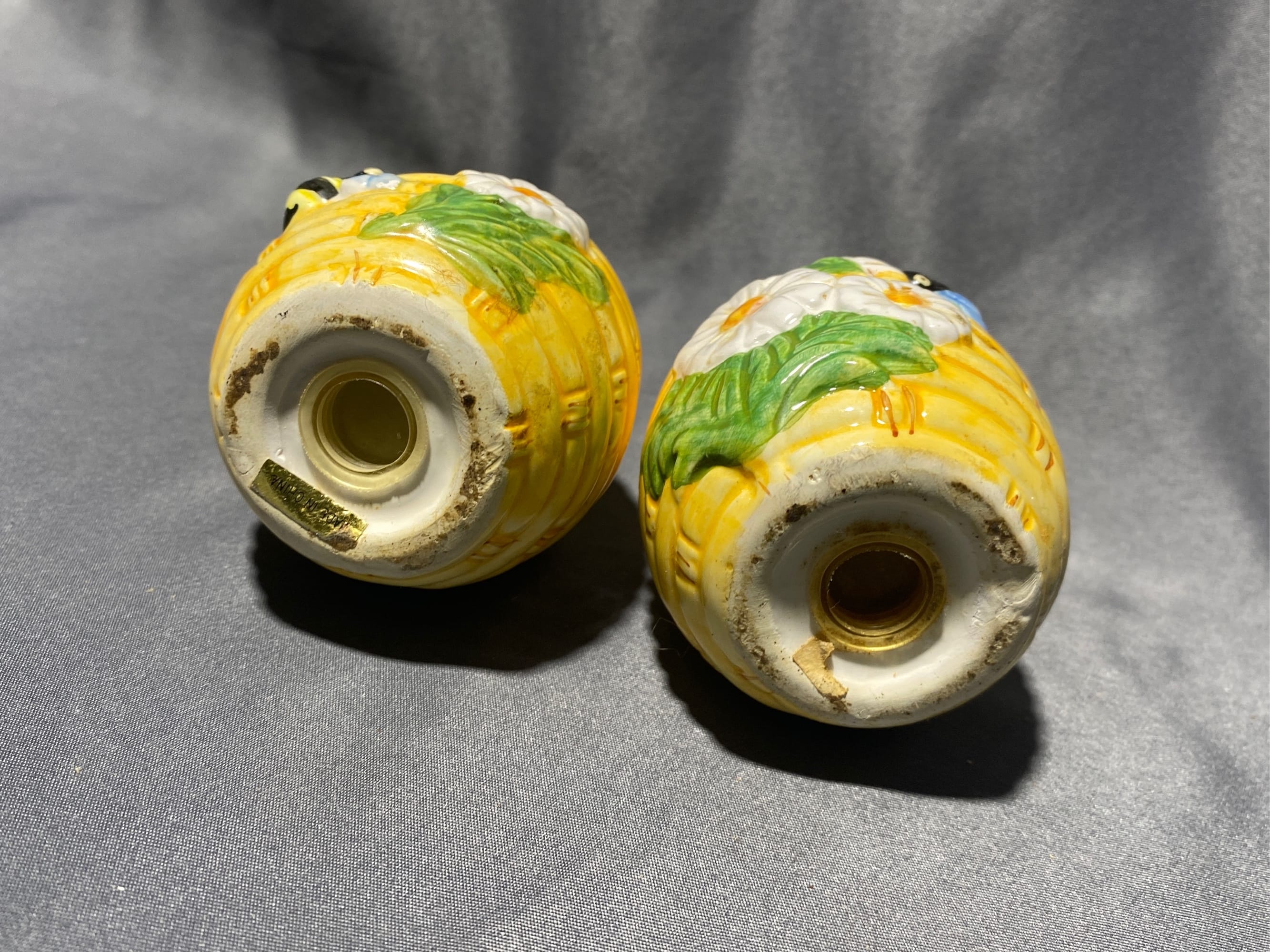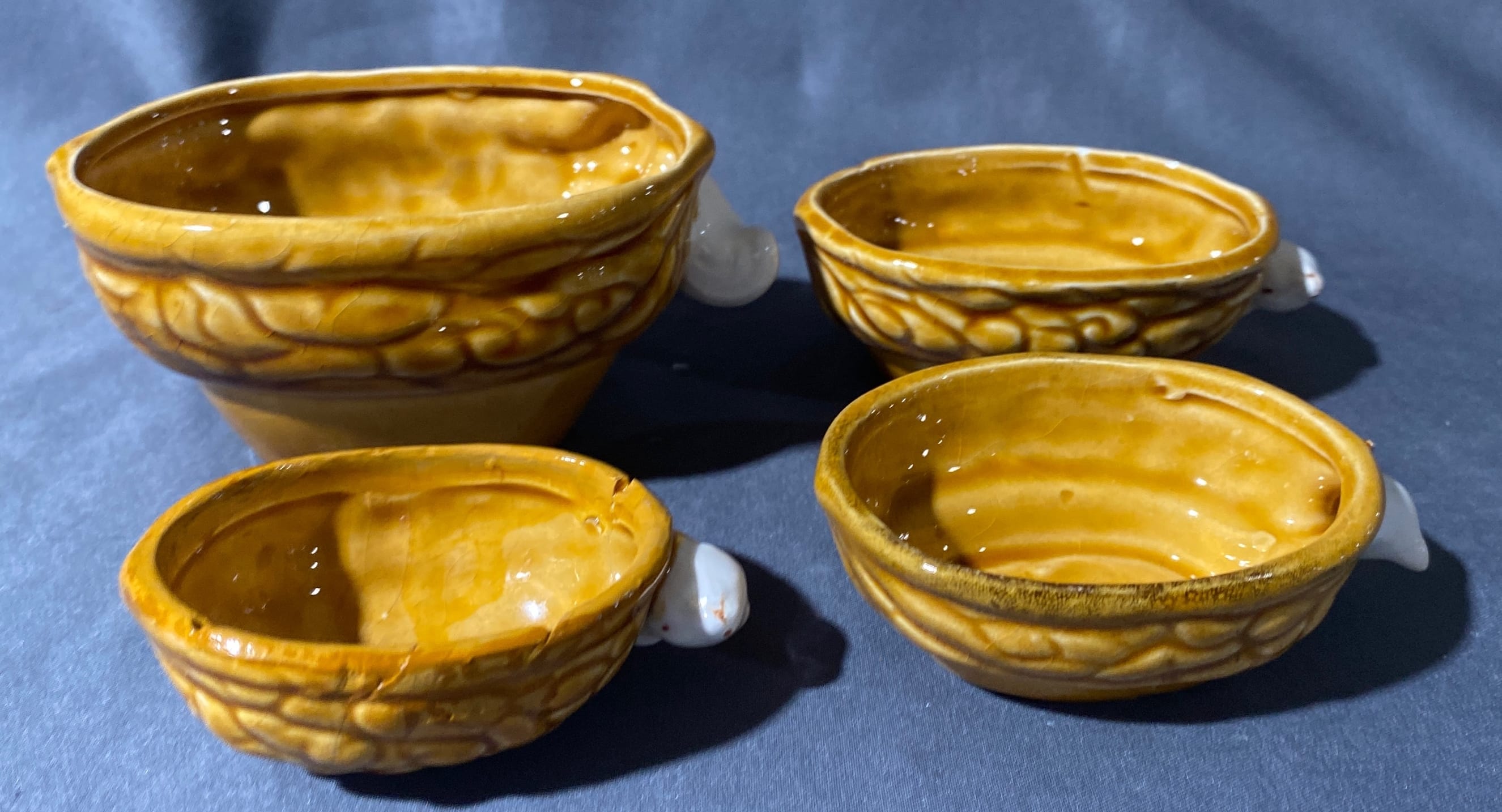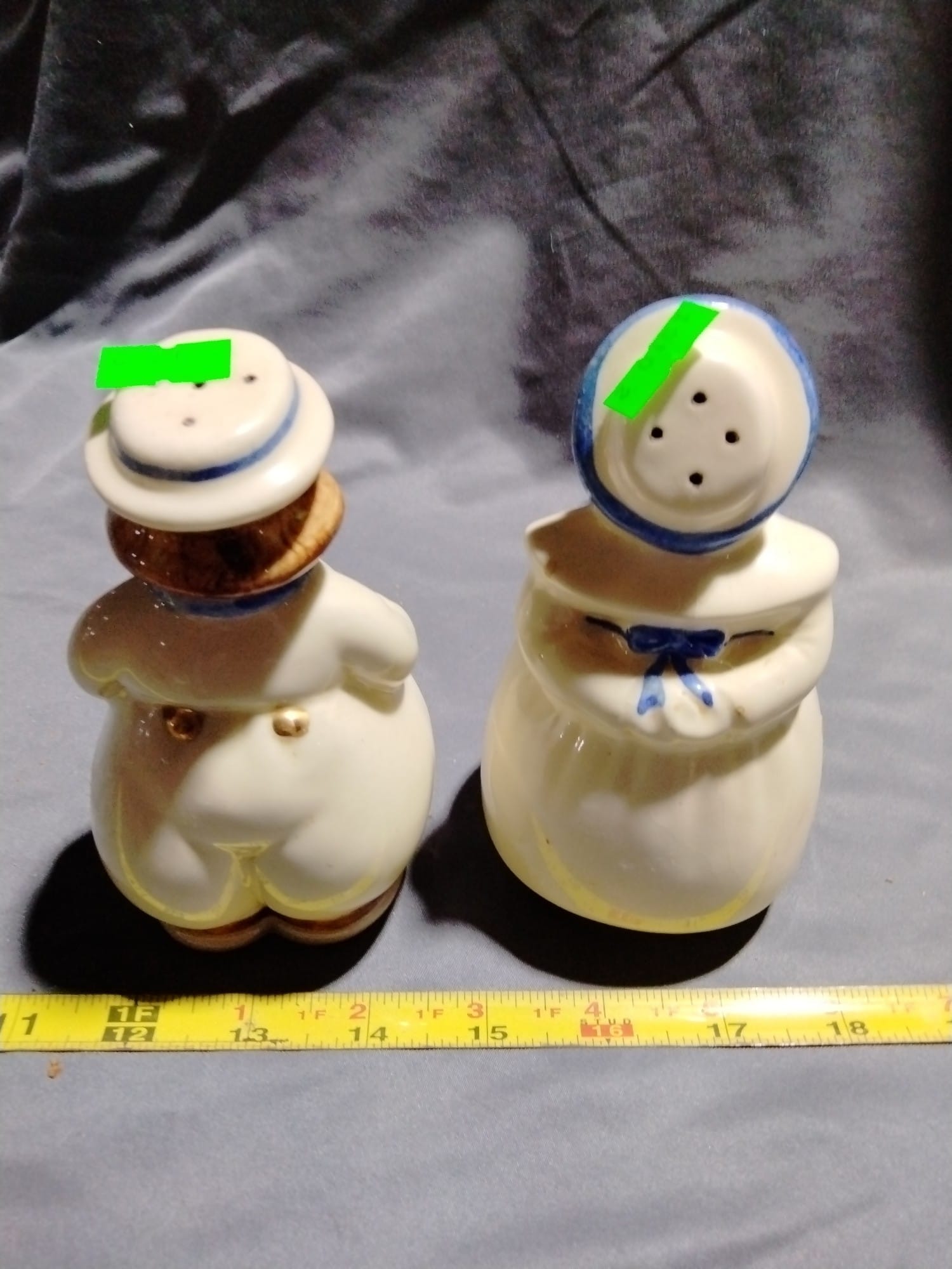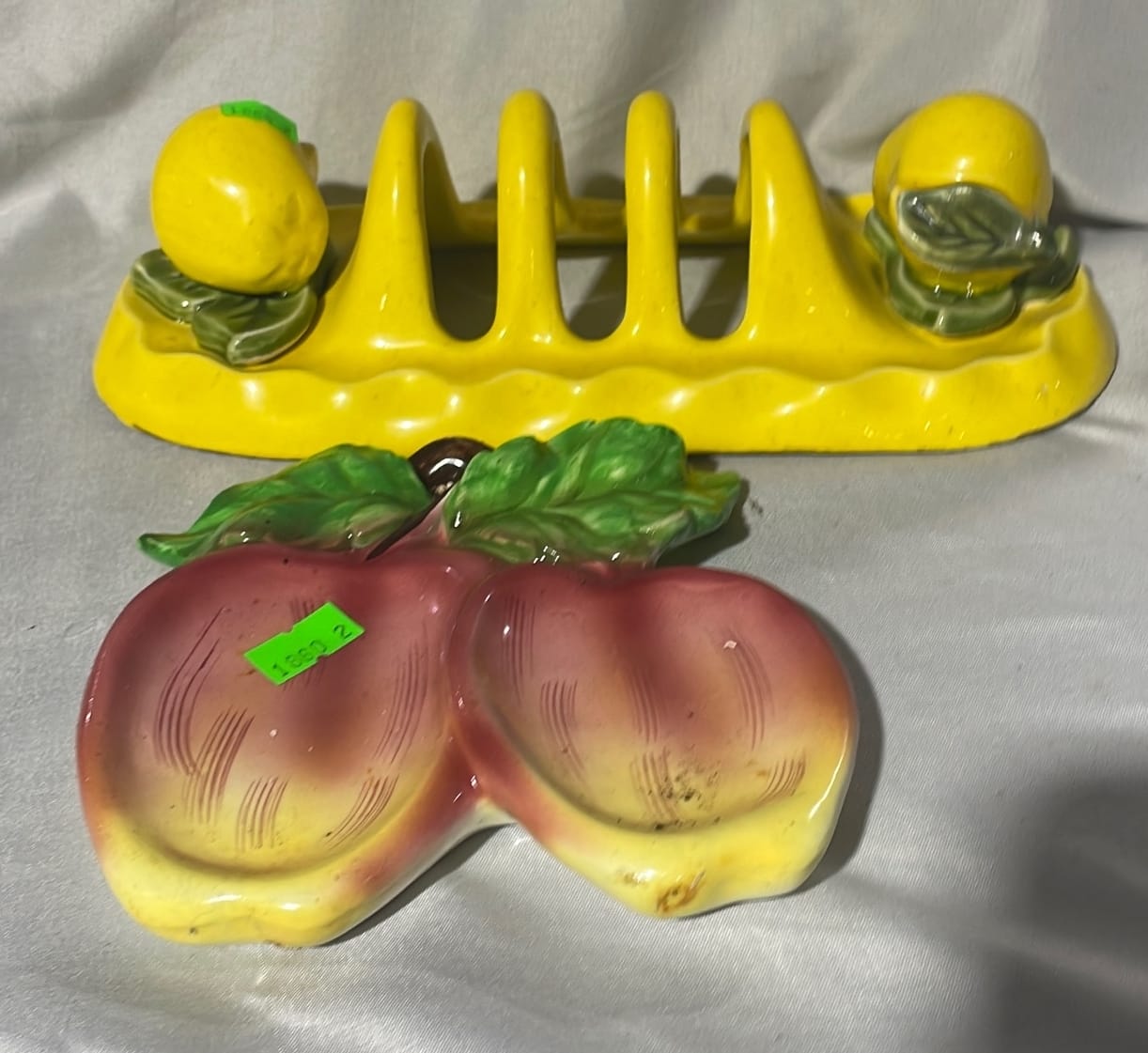 1211 Phlatzgraff ceramic snack trays 9", McCoy ceramic salt and pepper shakers 4", McCoy ceramic mugs-rim is chipped on one 3"