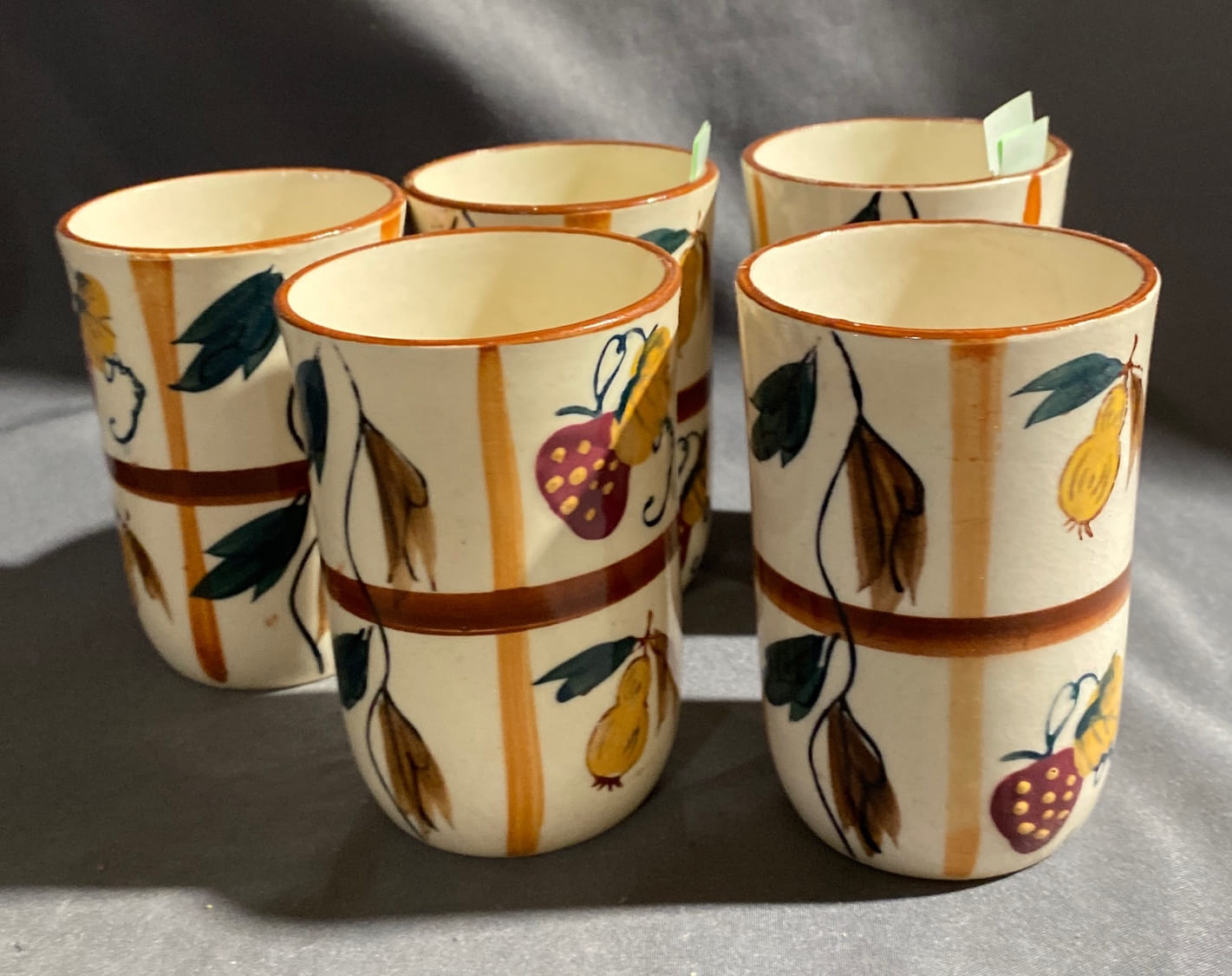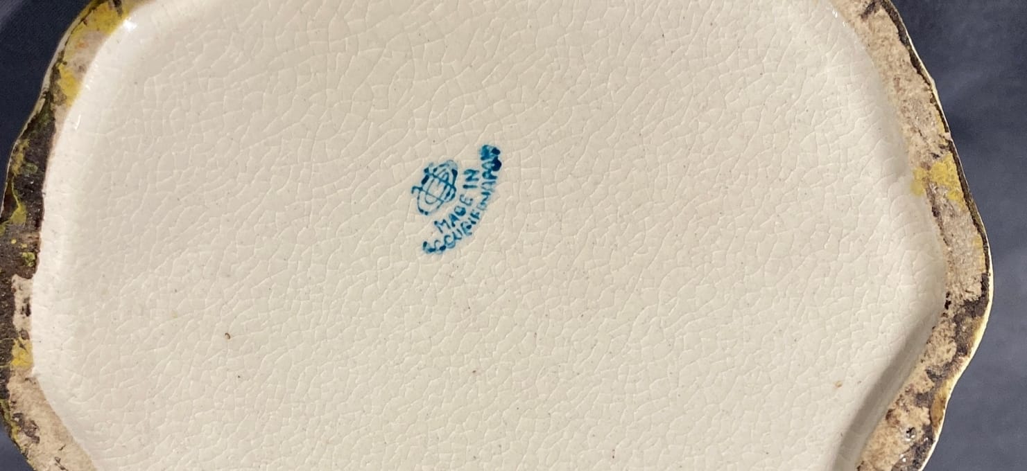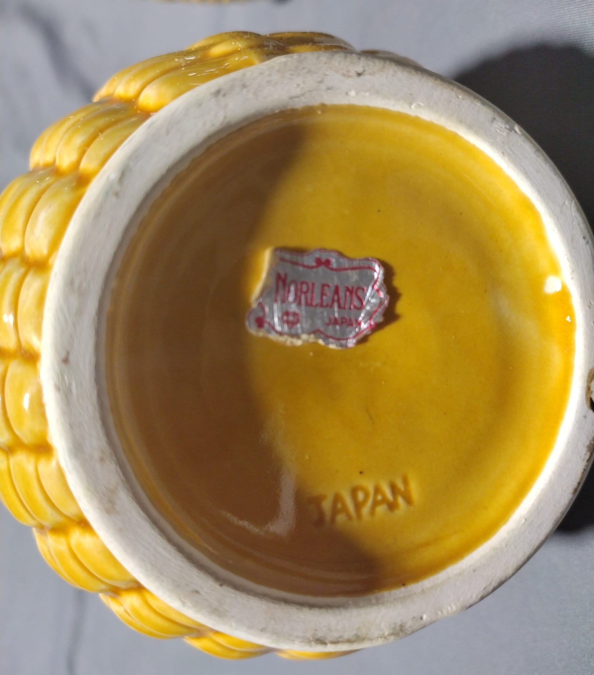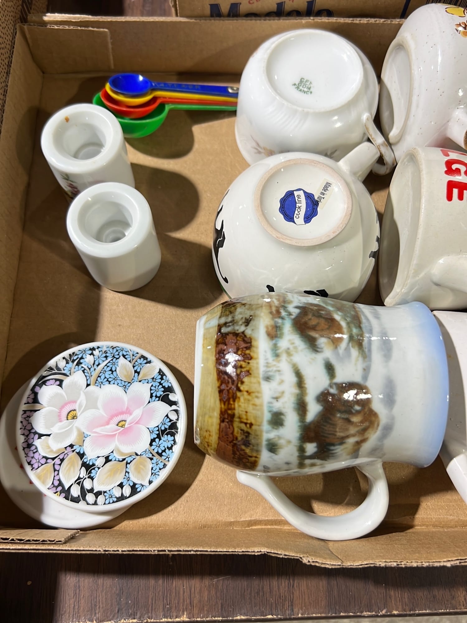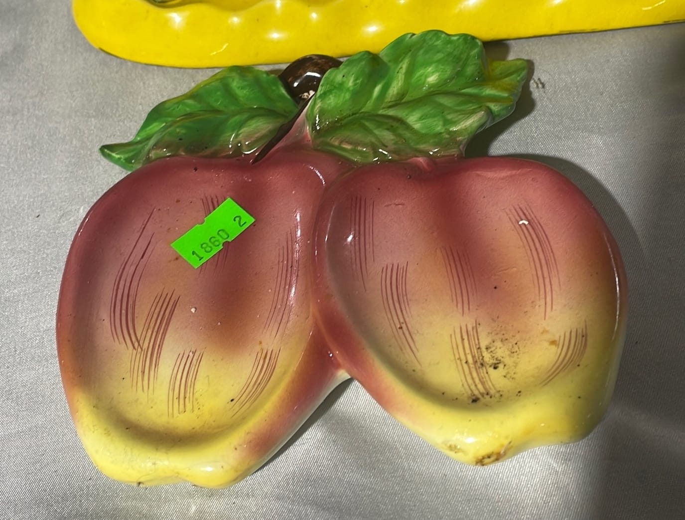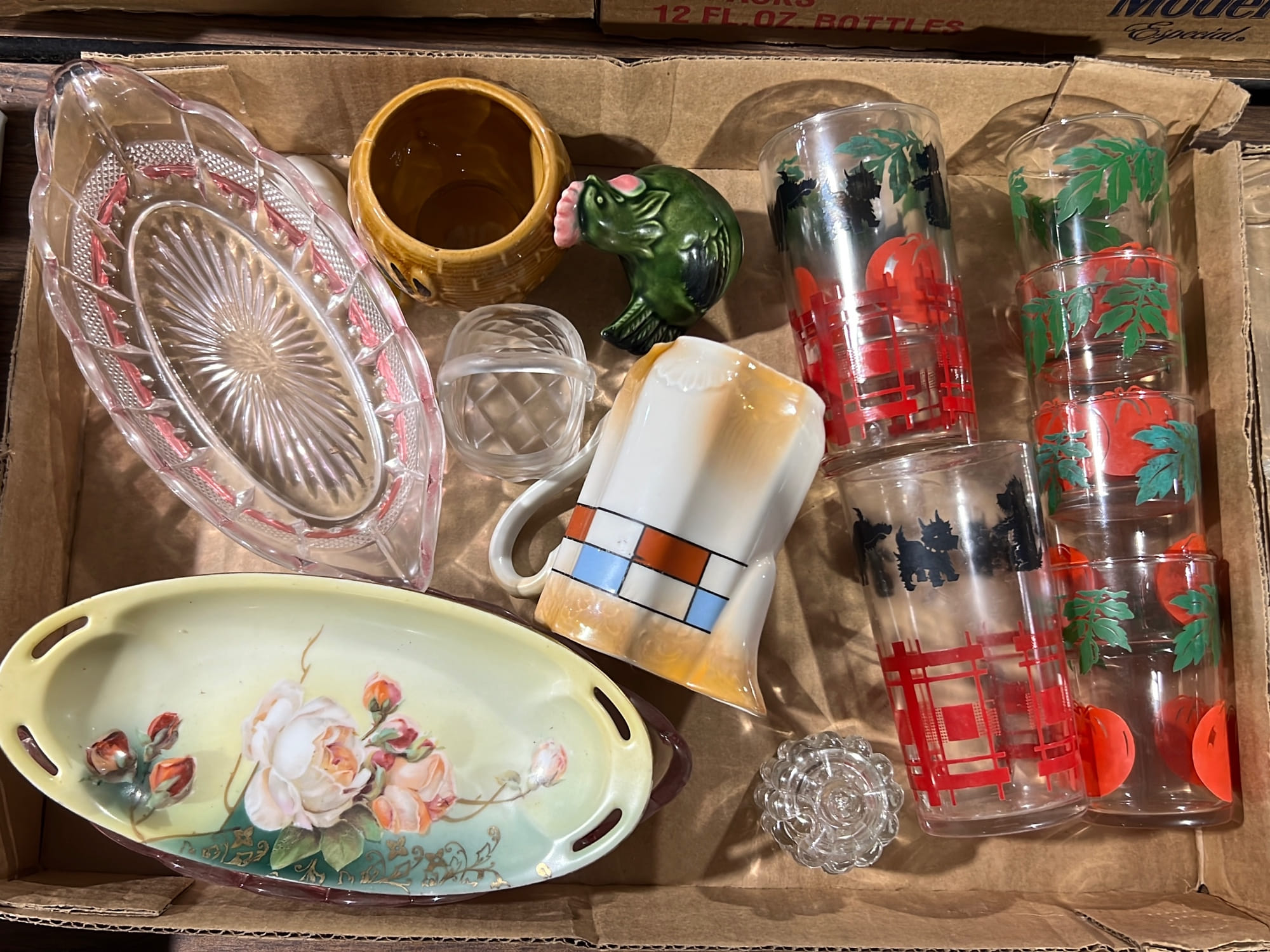 1211 Phlatzgraff ceramic snack trays 9", McCoy ceramic salt and pepper shakers 4", McCoy ceramic mugs-rim is chipped on one 3"