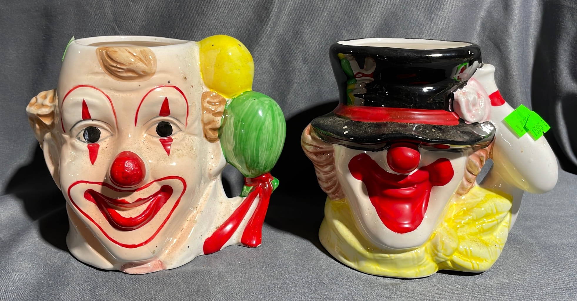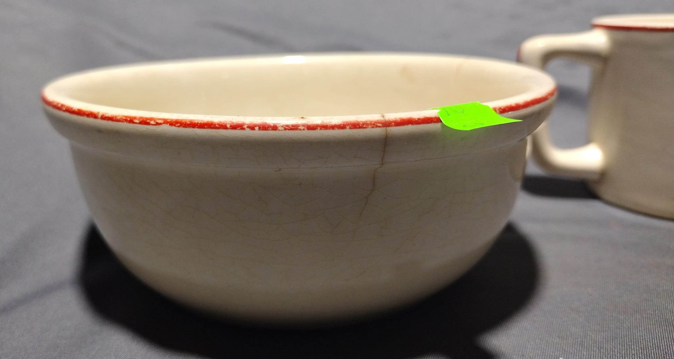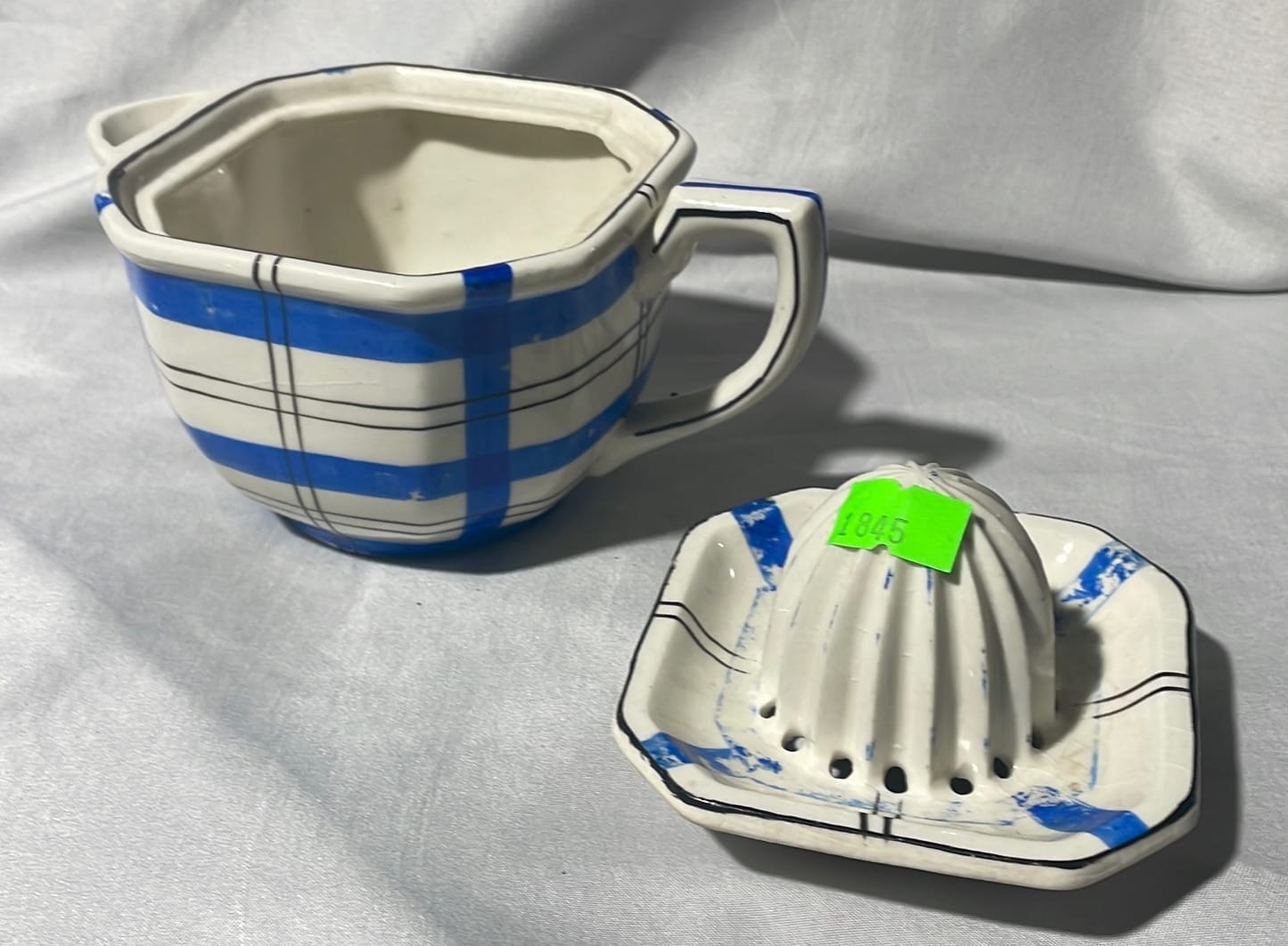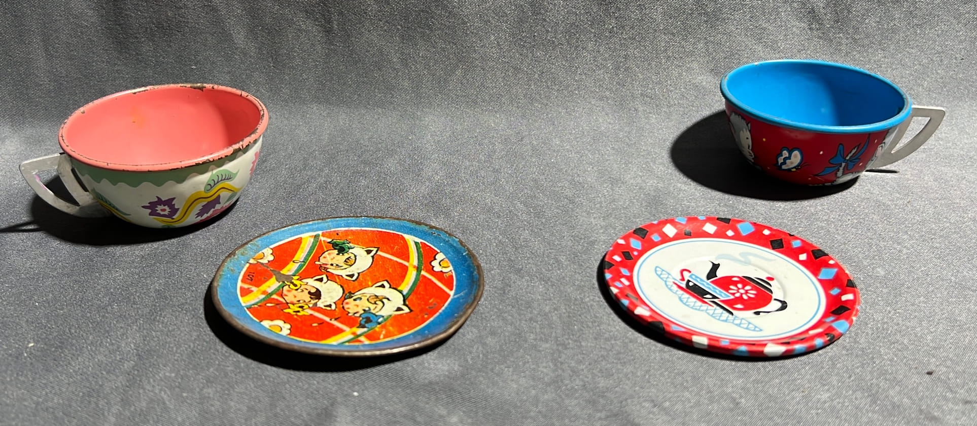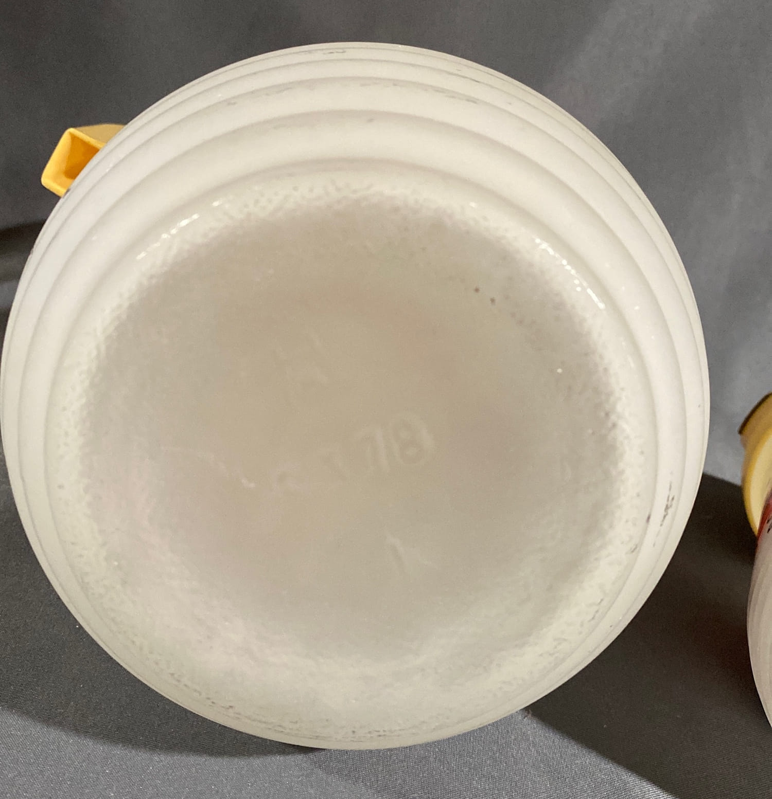1211 Phlatzgraff ceramic snack trays 9", McCoy ceramic salt and pepper shakers 4", McCoy ceramic mugs-rim is chipped on one 3"
