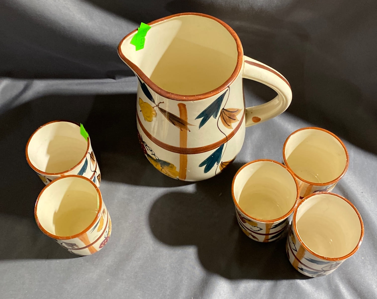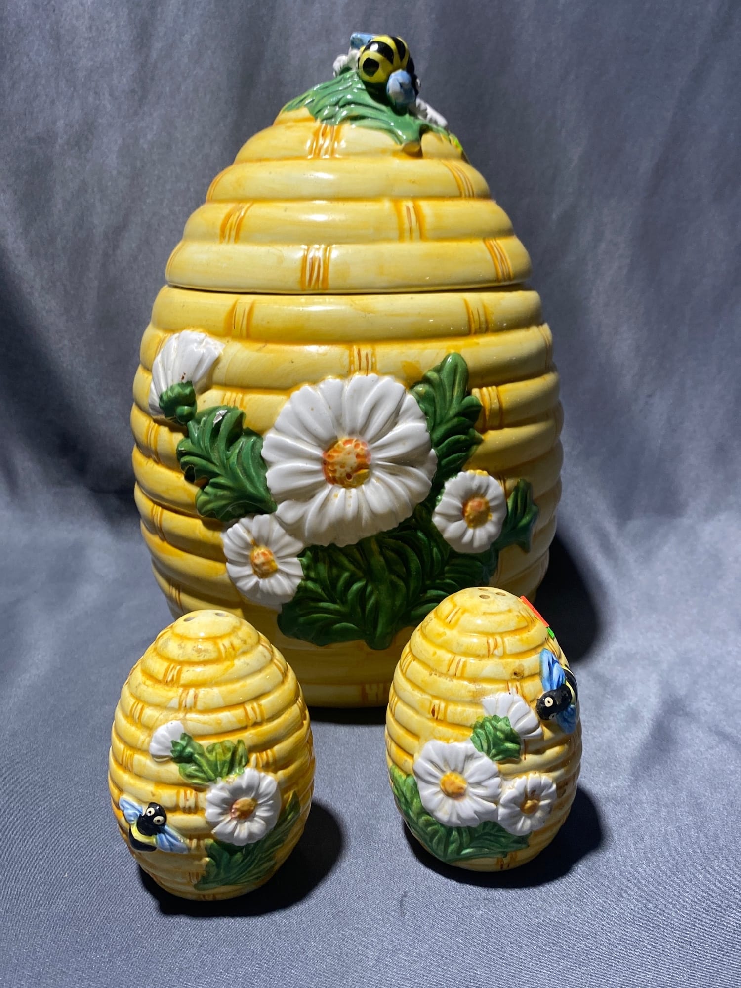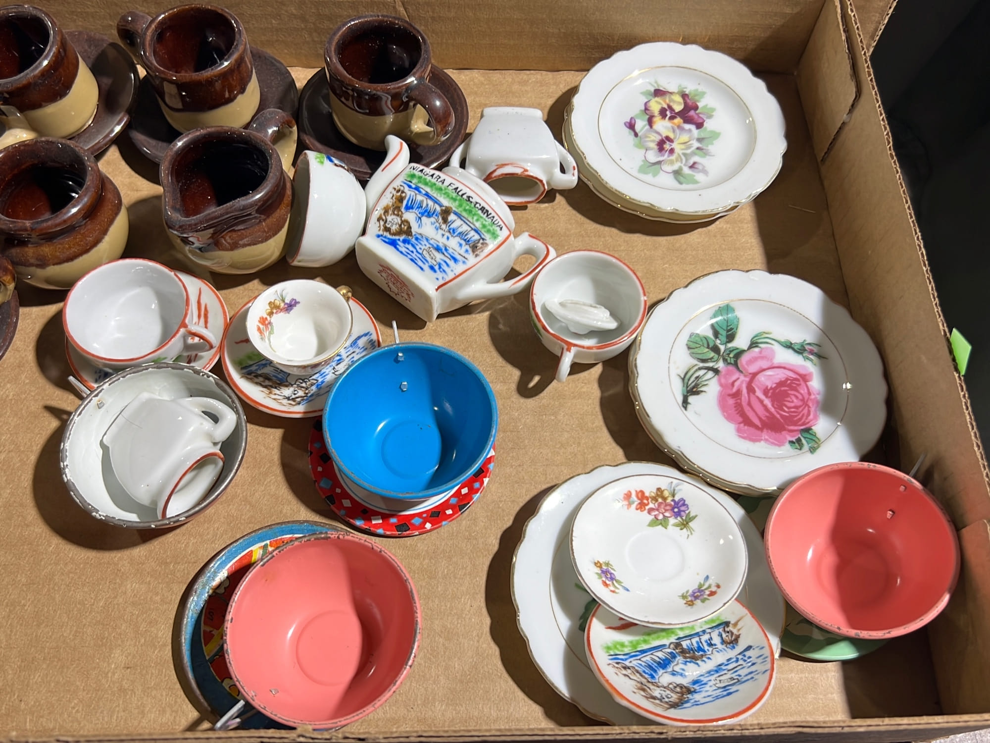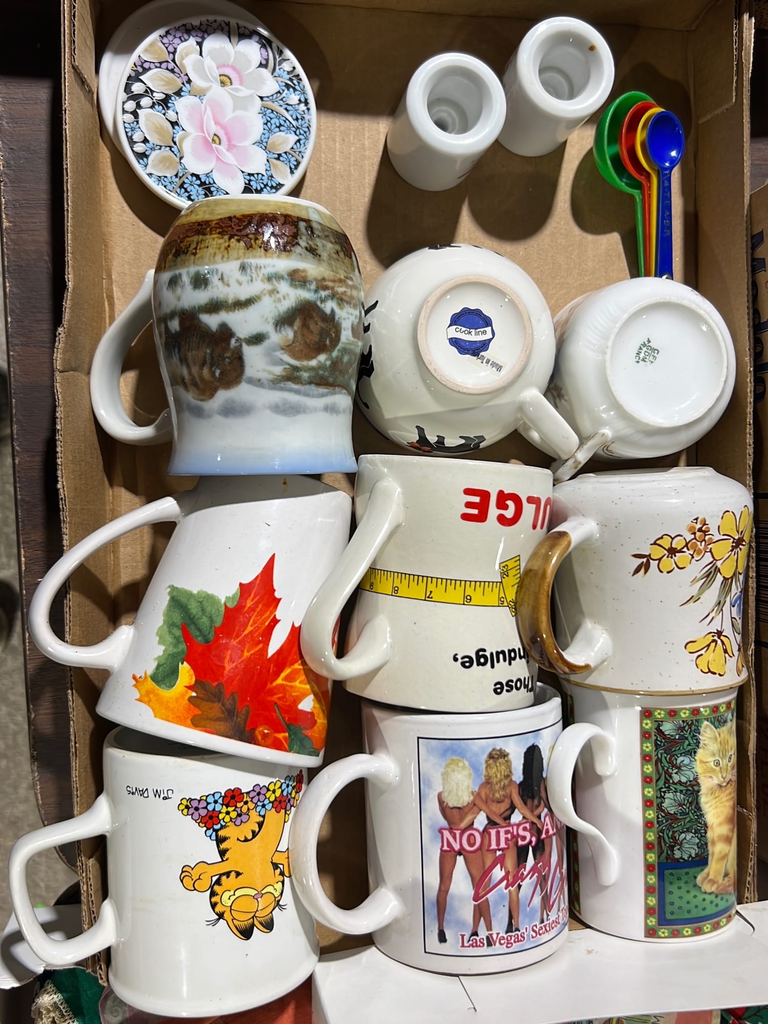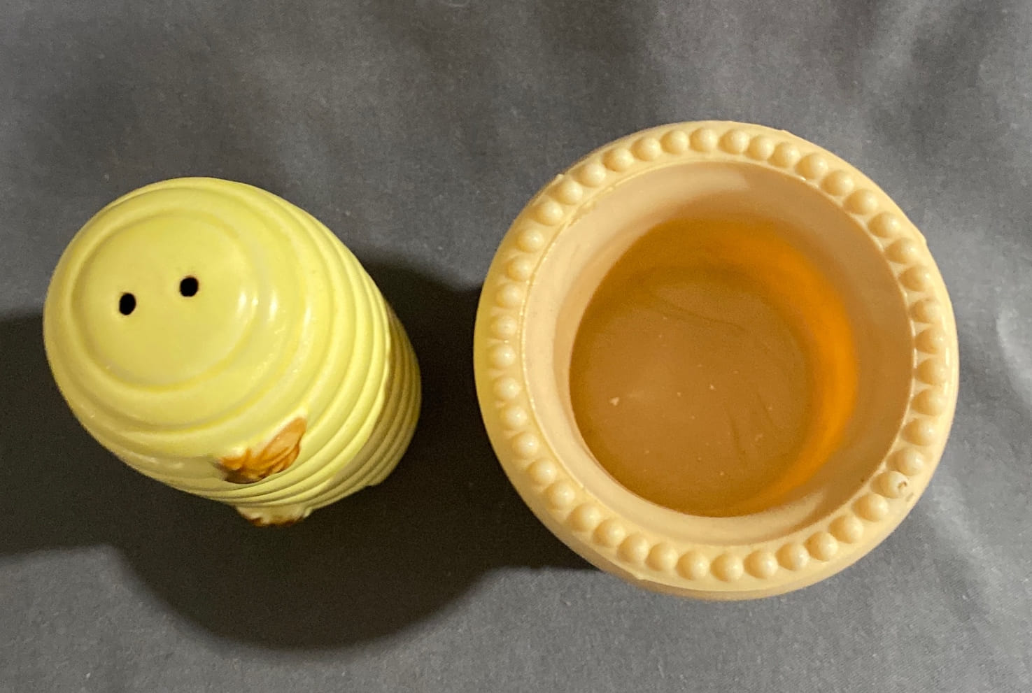 1211 Phlatzgraff ceramic snack trays 9", McCoy ceramic salt and pepper shakers 4", McCoy ceramic mugs-rim is chipped on one 3"