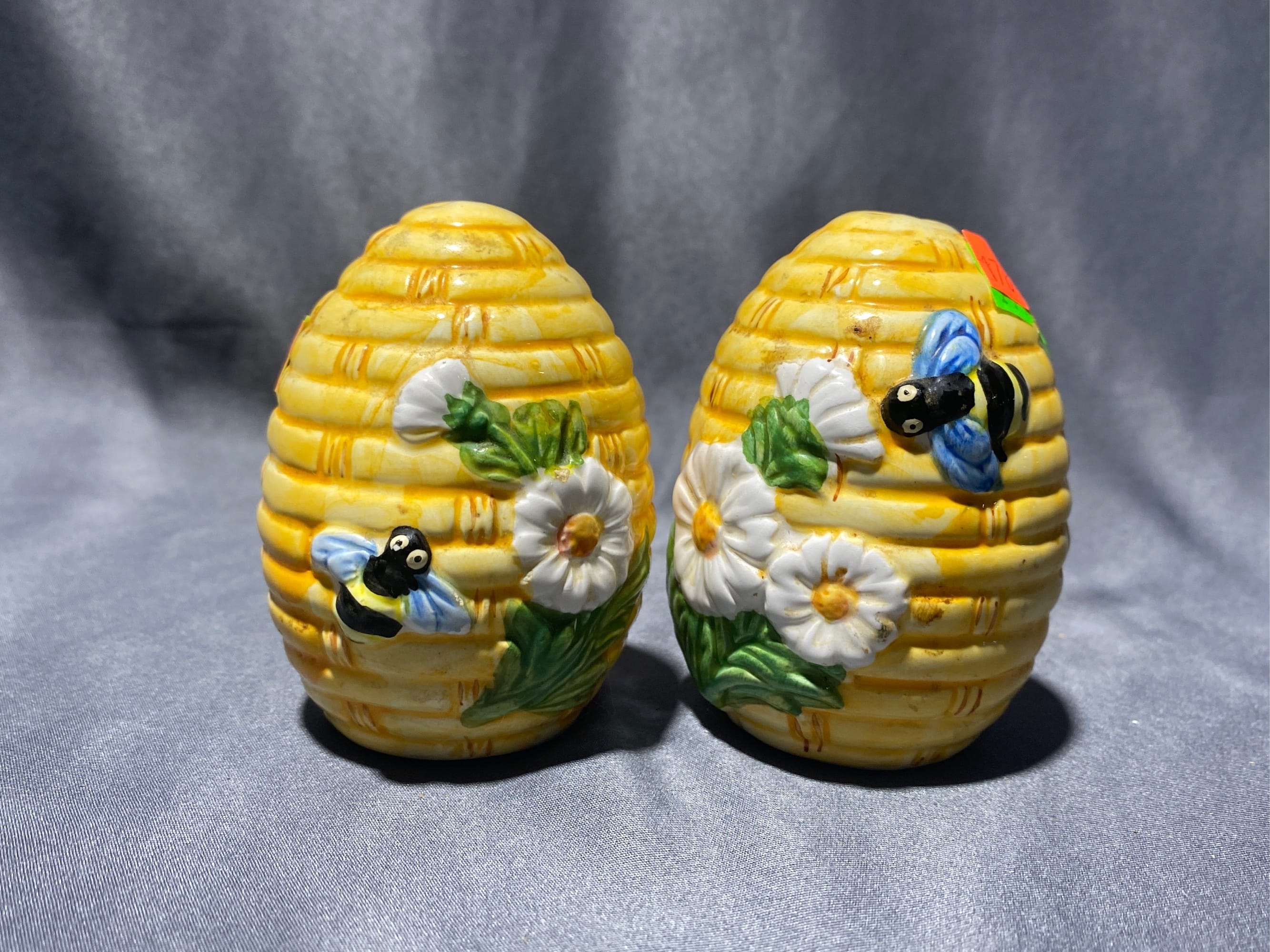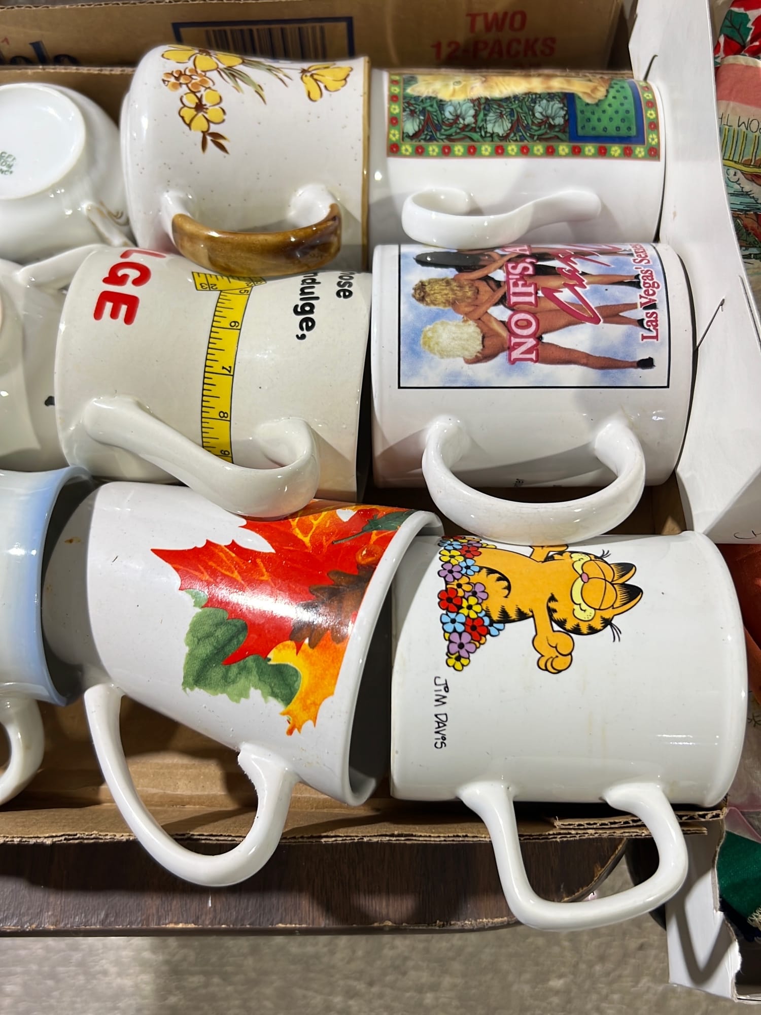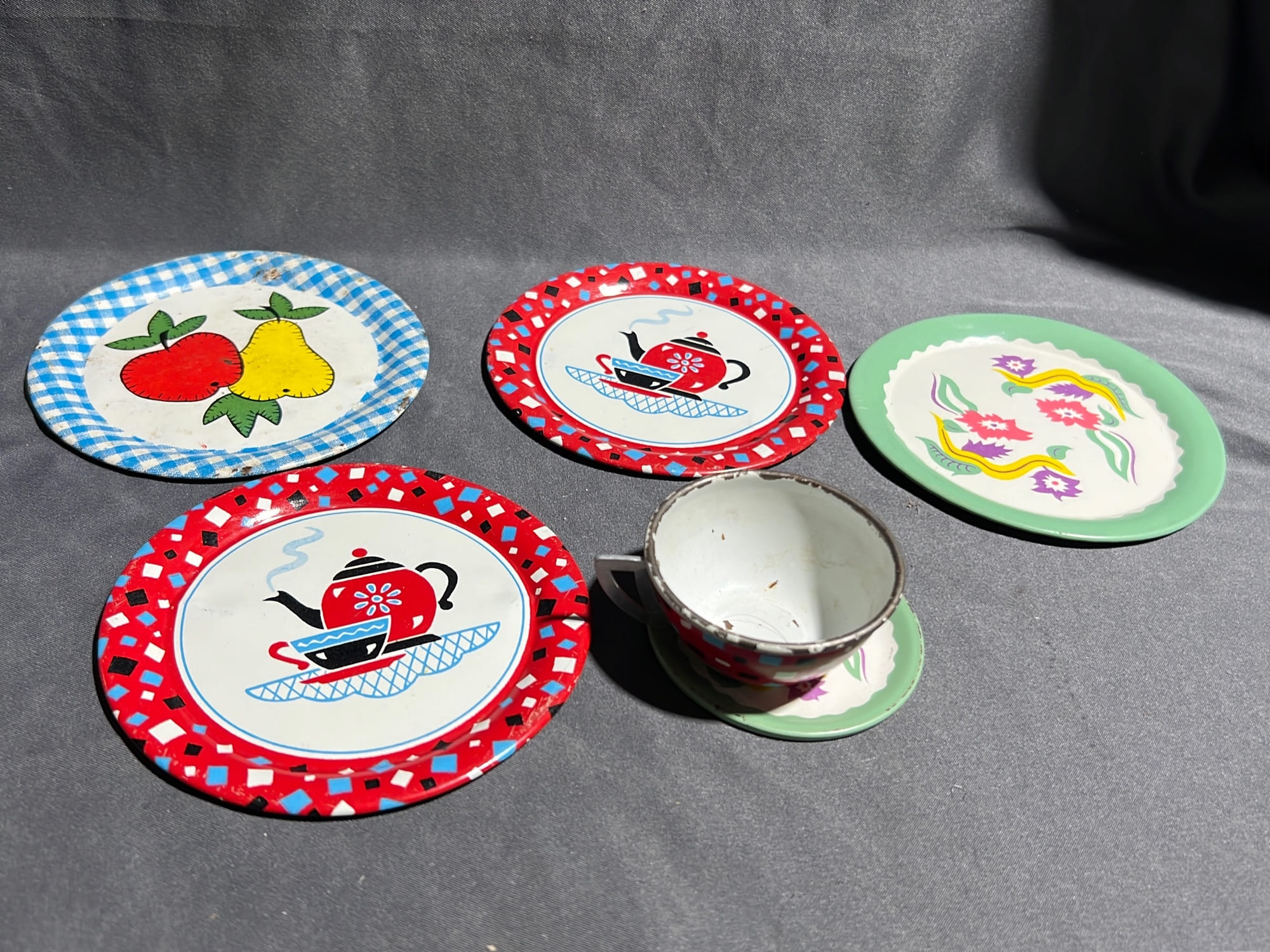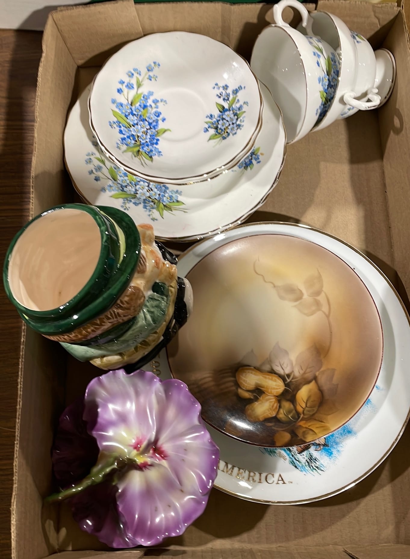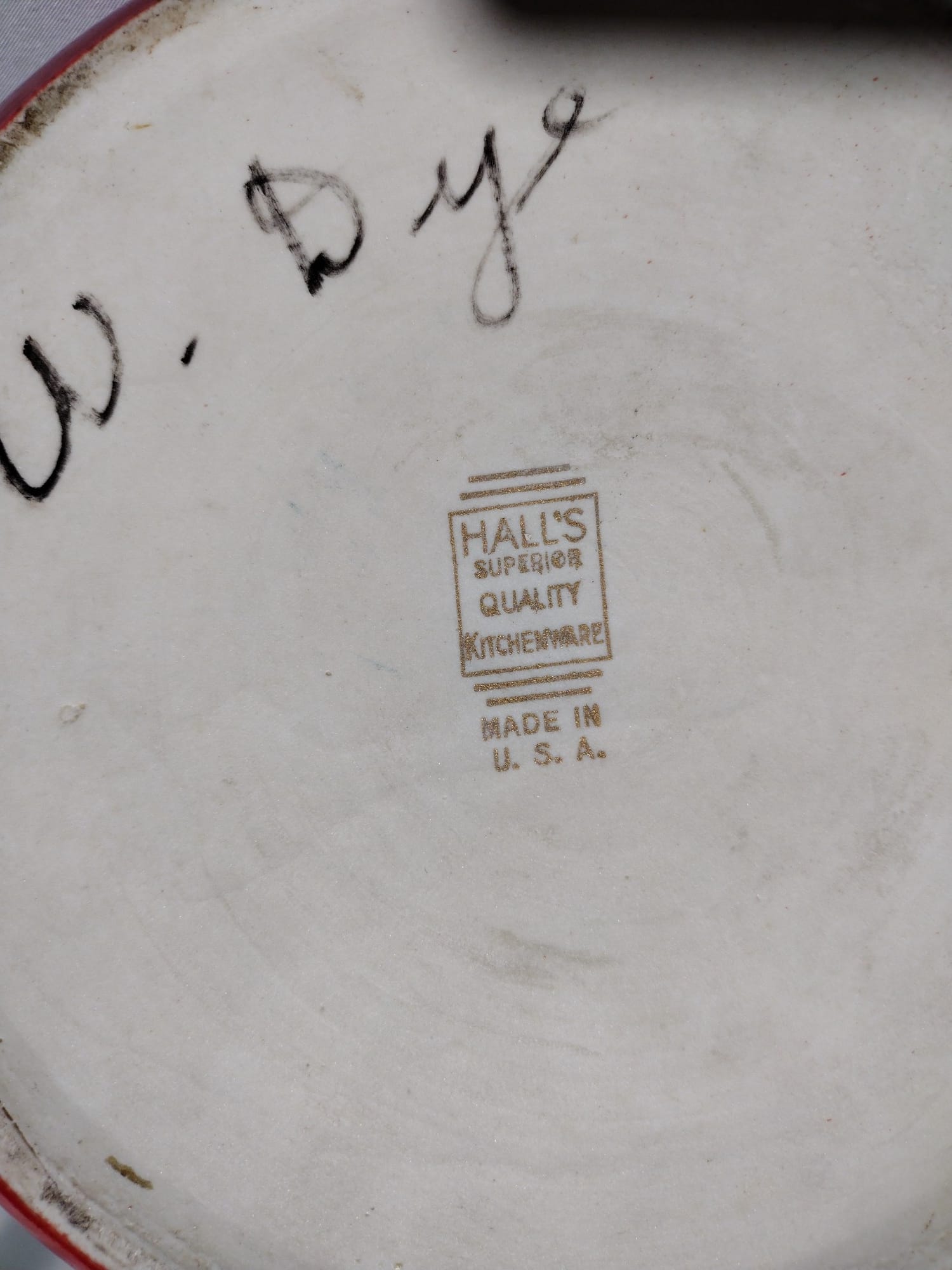 1211 Phlatzgraff ceramic snack trays 9", McCoy ceramic salt and pepper shakers 4", McCoy ceramic mugs-rim is chipped on one 3"